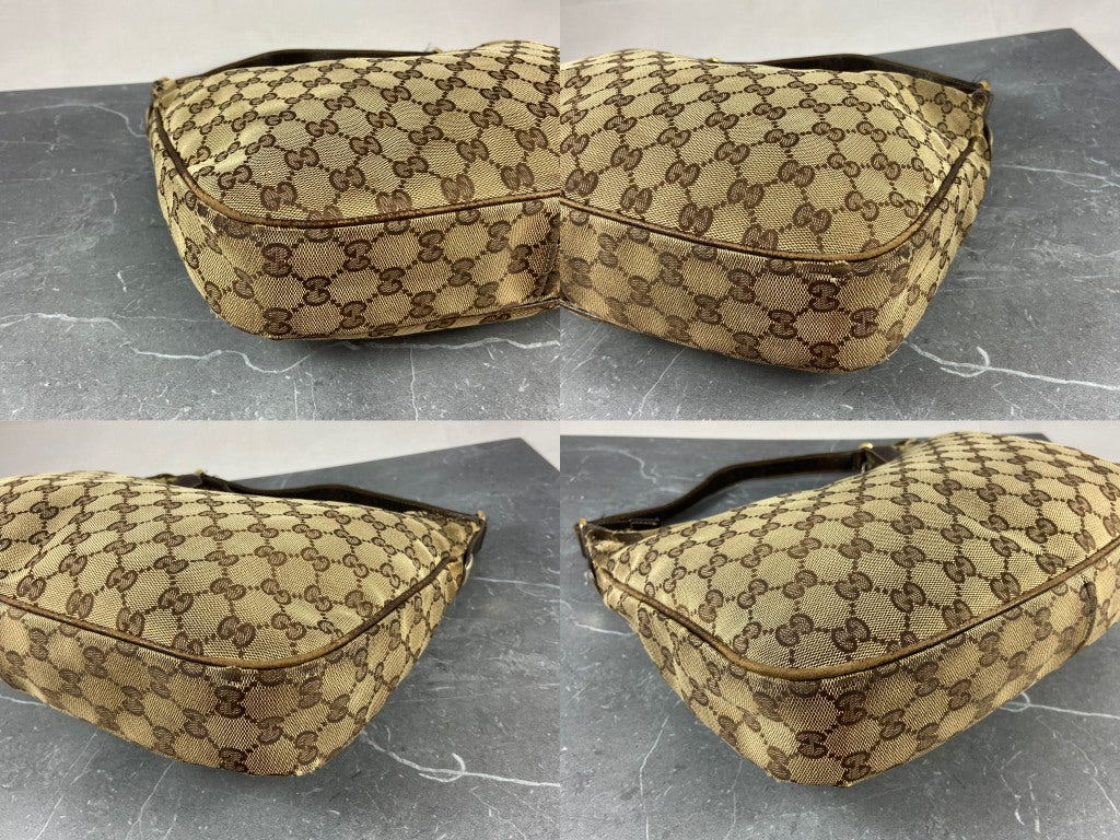 - Gucci Hobo Bag Beige GG Monogram + Brown Leather