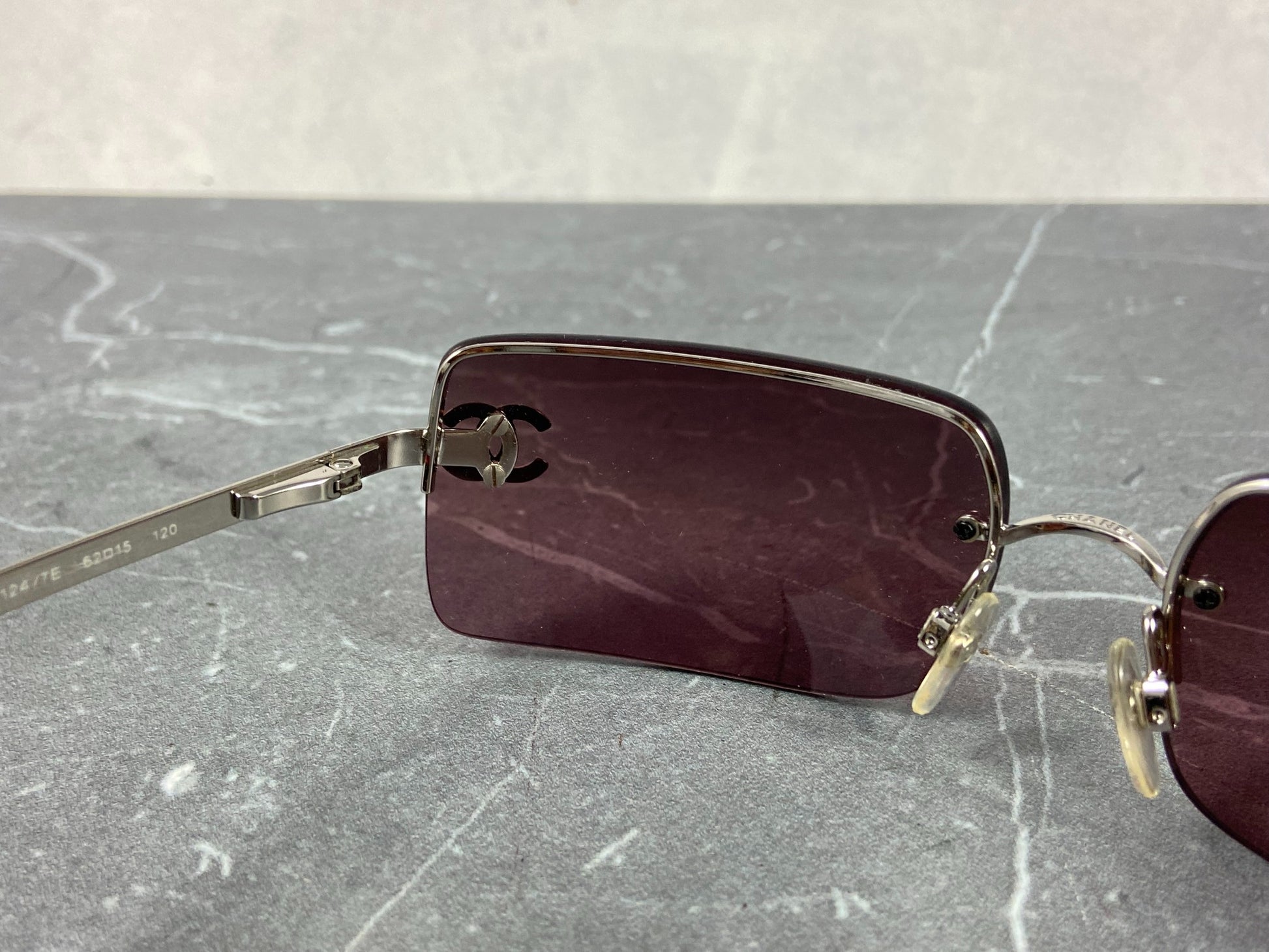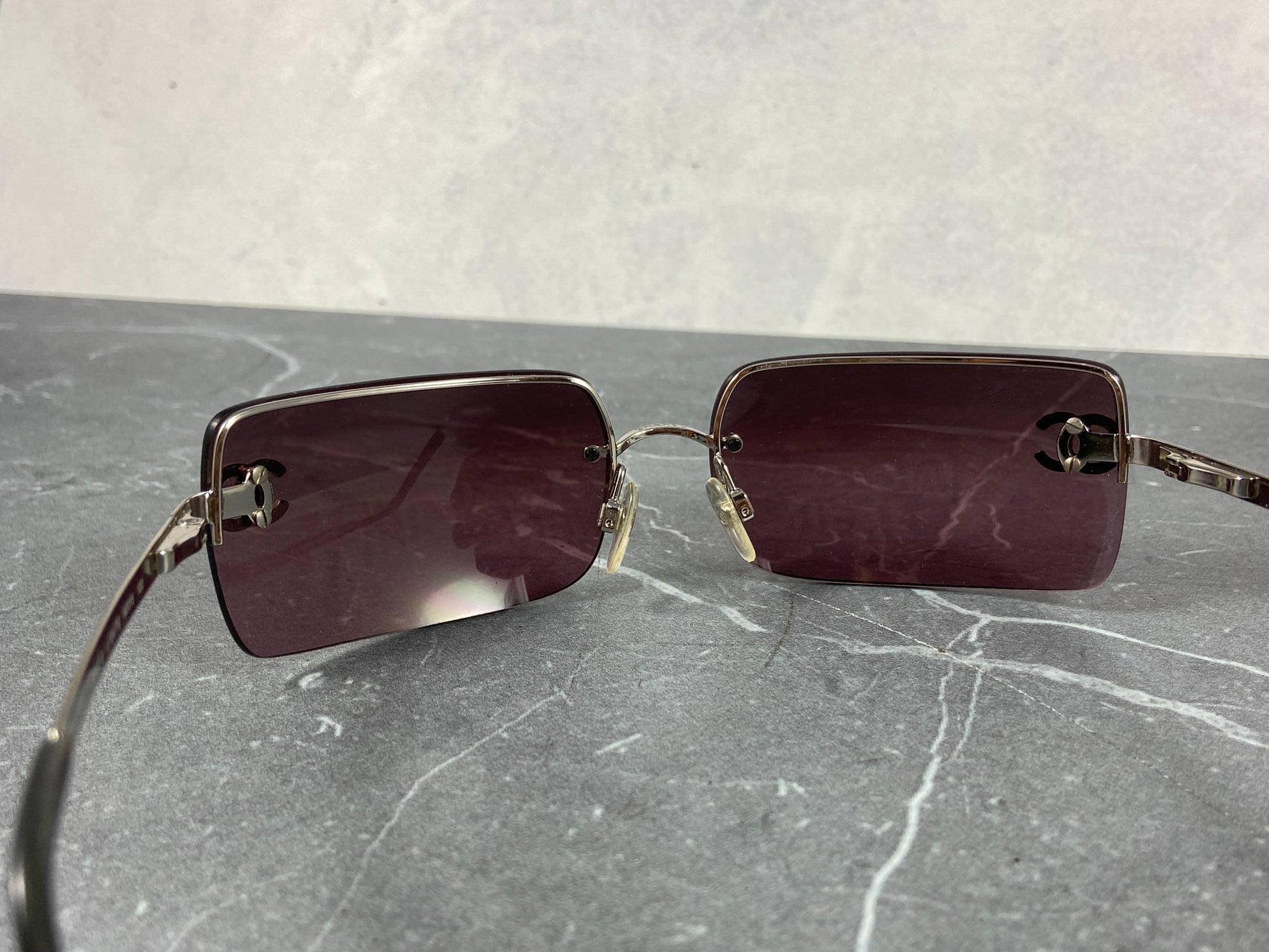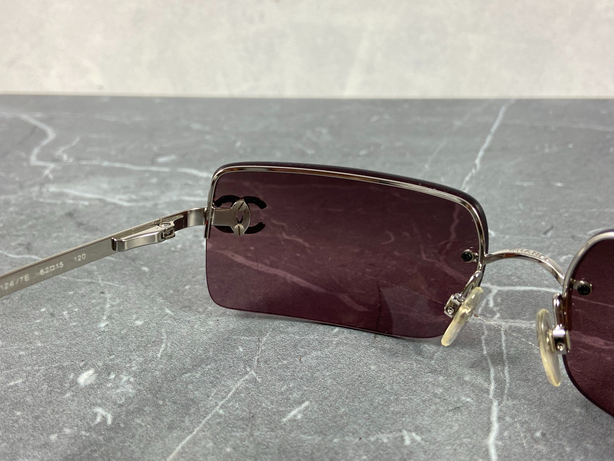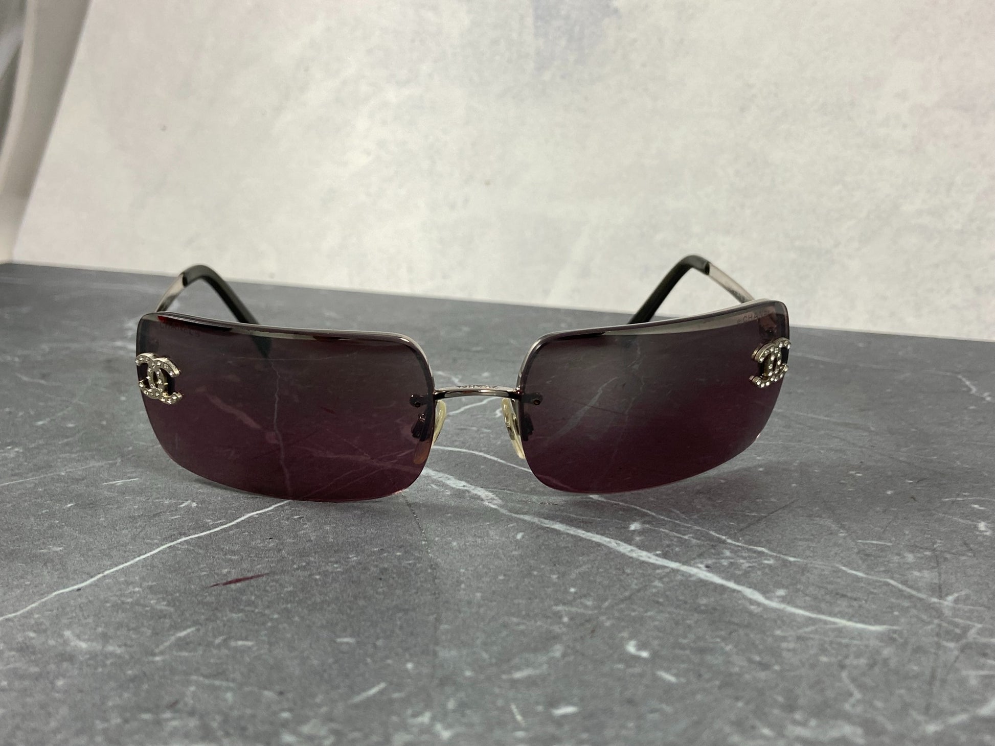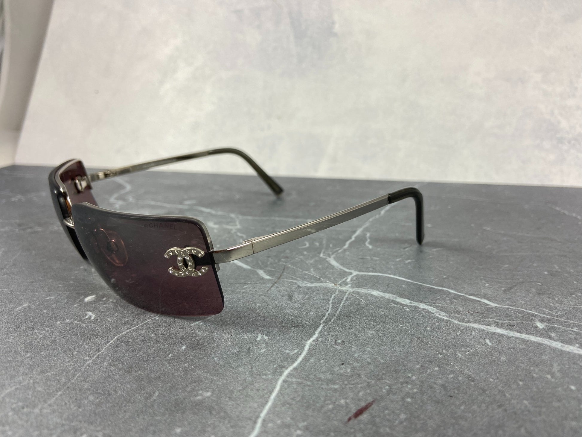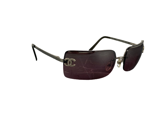 Chanel 4014-B Rimless Crystal CC Sunglasses Purple