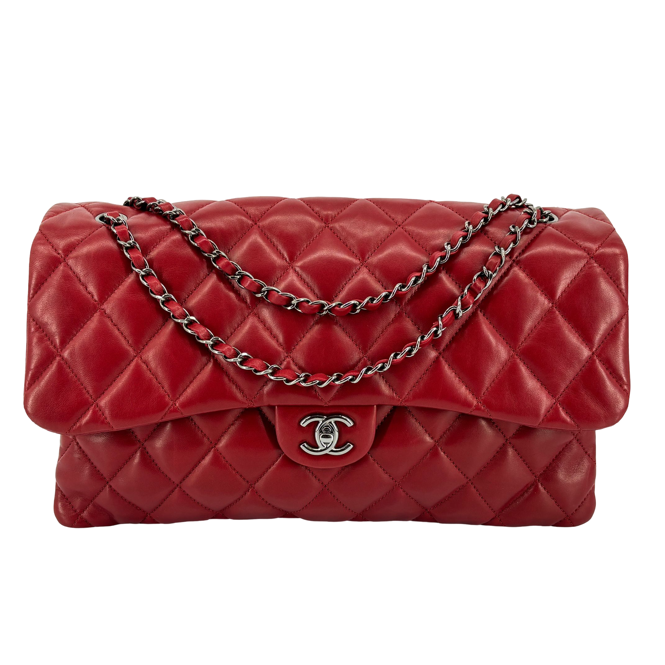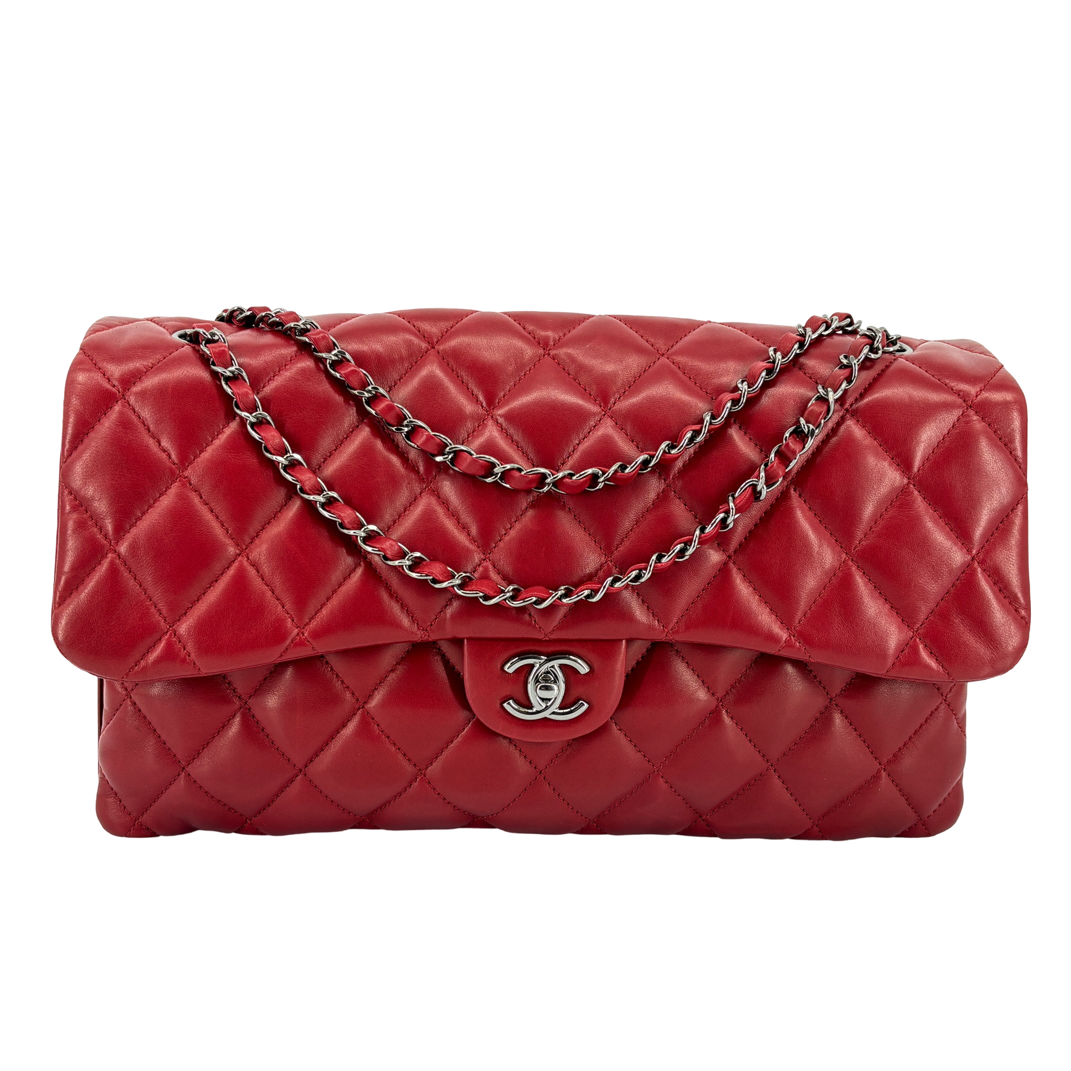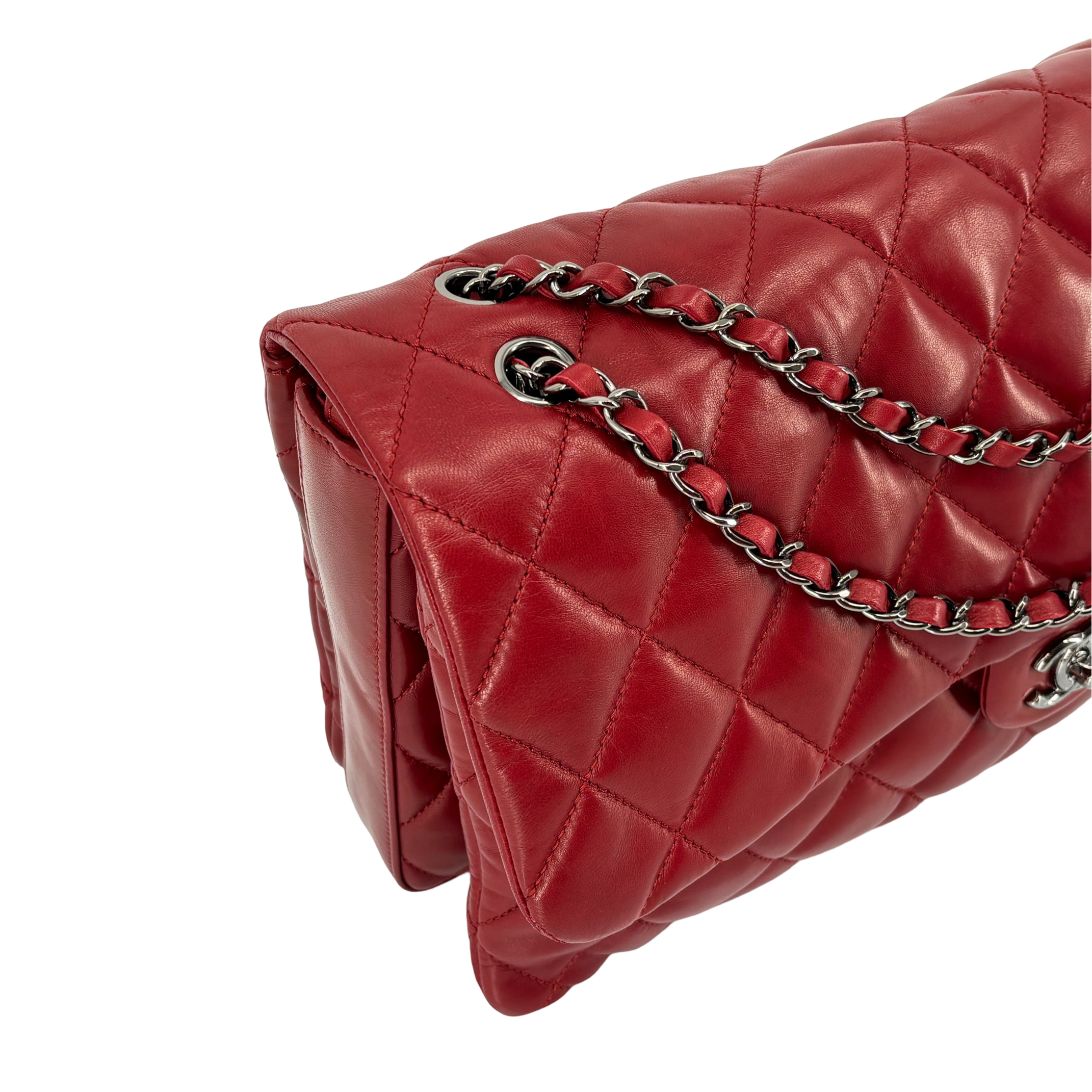 Chanel Maxi Accordion Single Flap Bag Red Soft Matelassé Leather incl. Dustbag