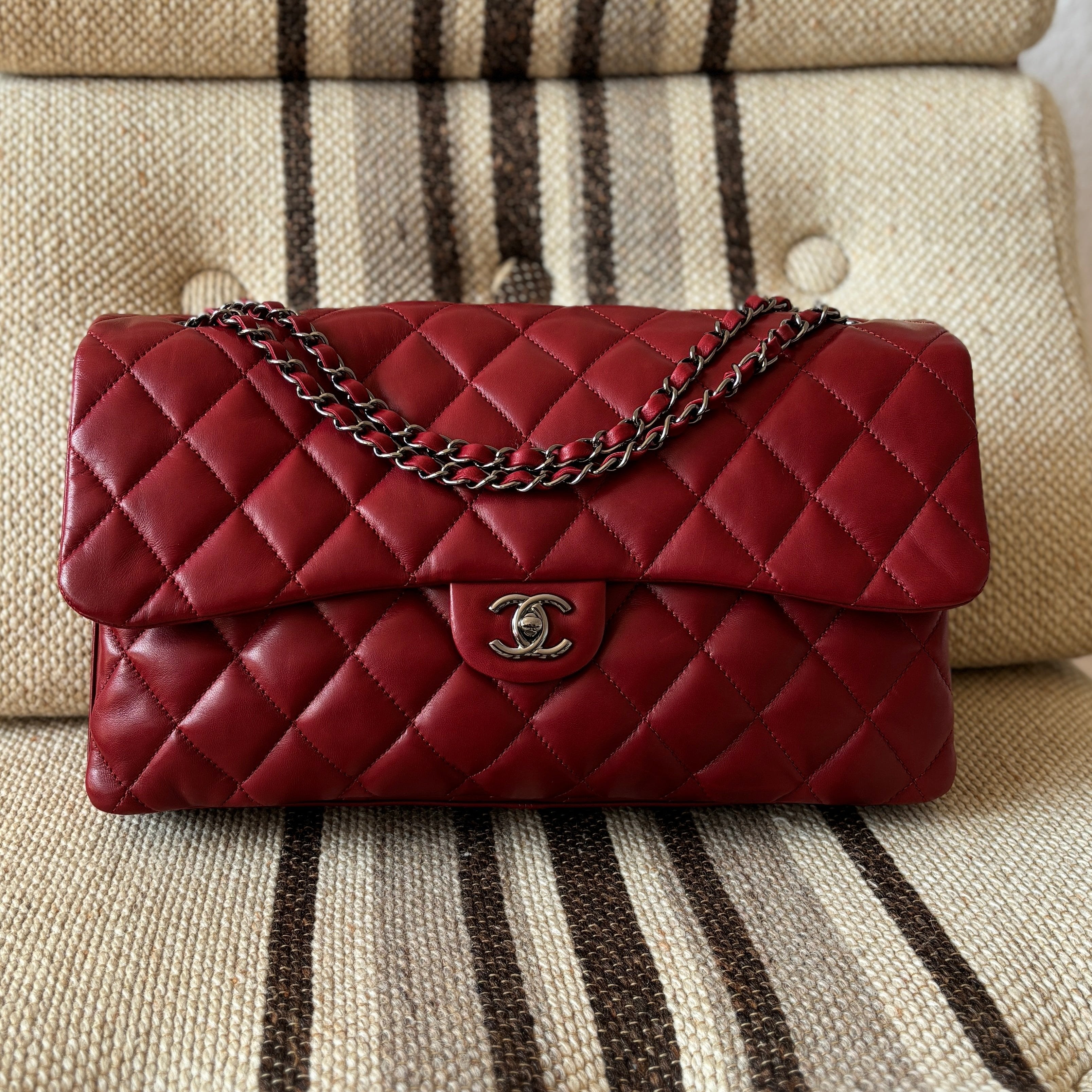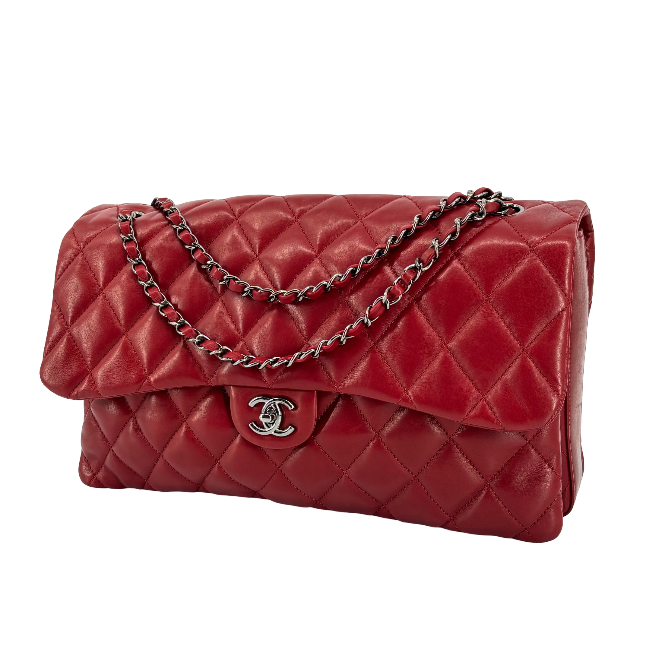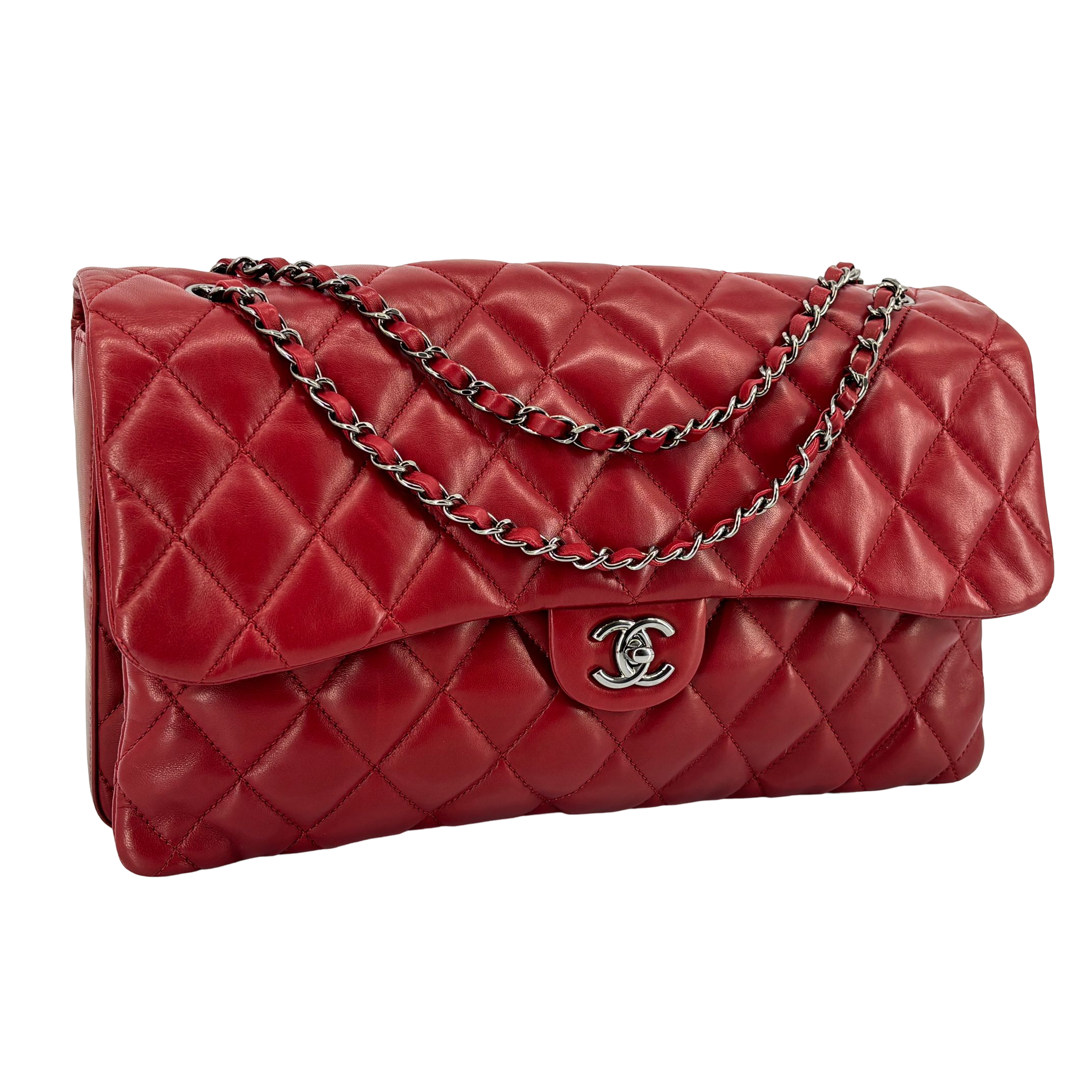 Chanel Maxi Accordion Single Flap Bag Red Soft Matelassé Leather incl. Dustbag