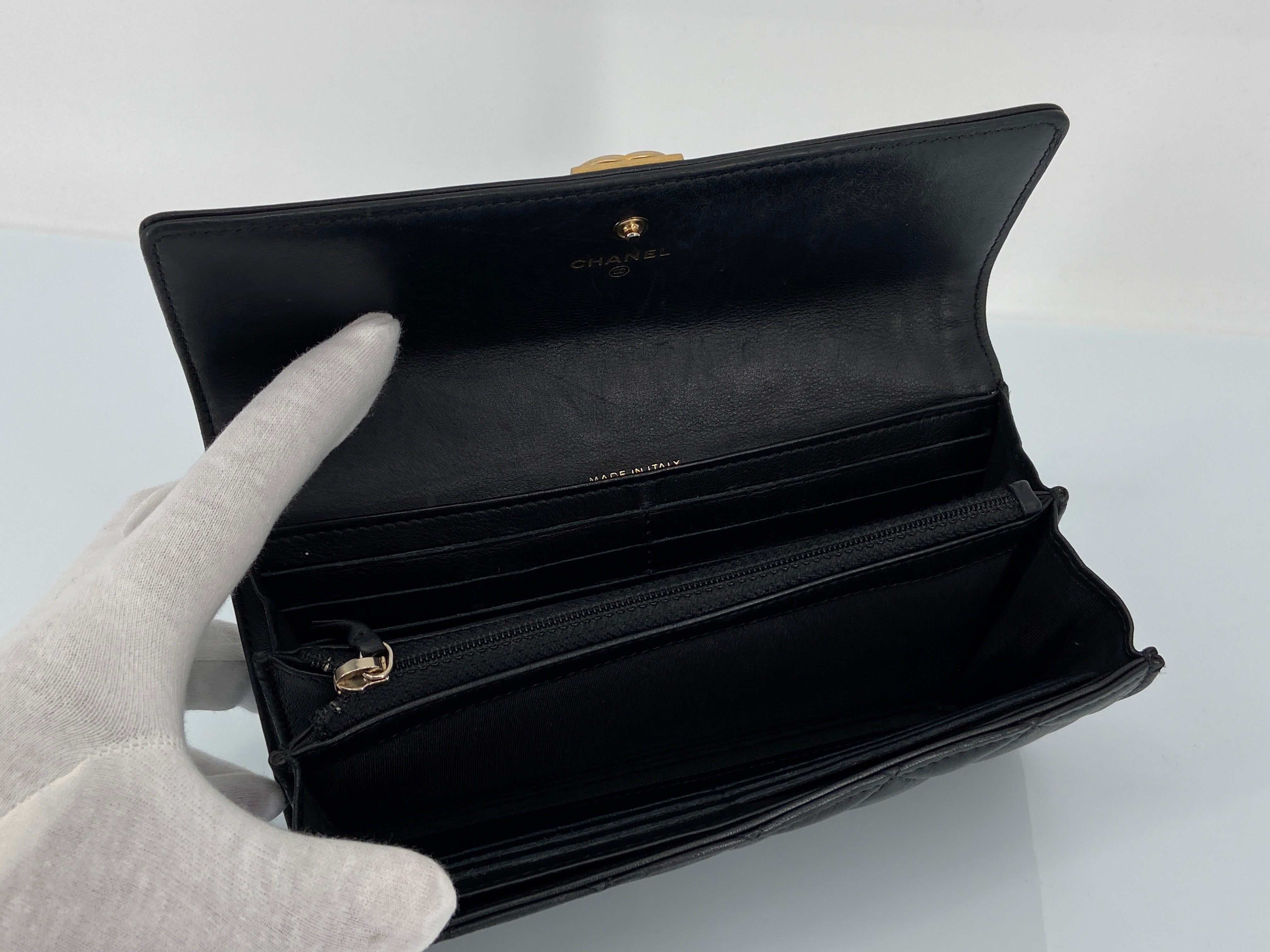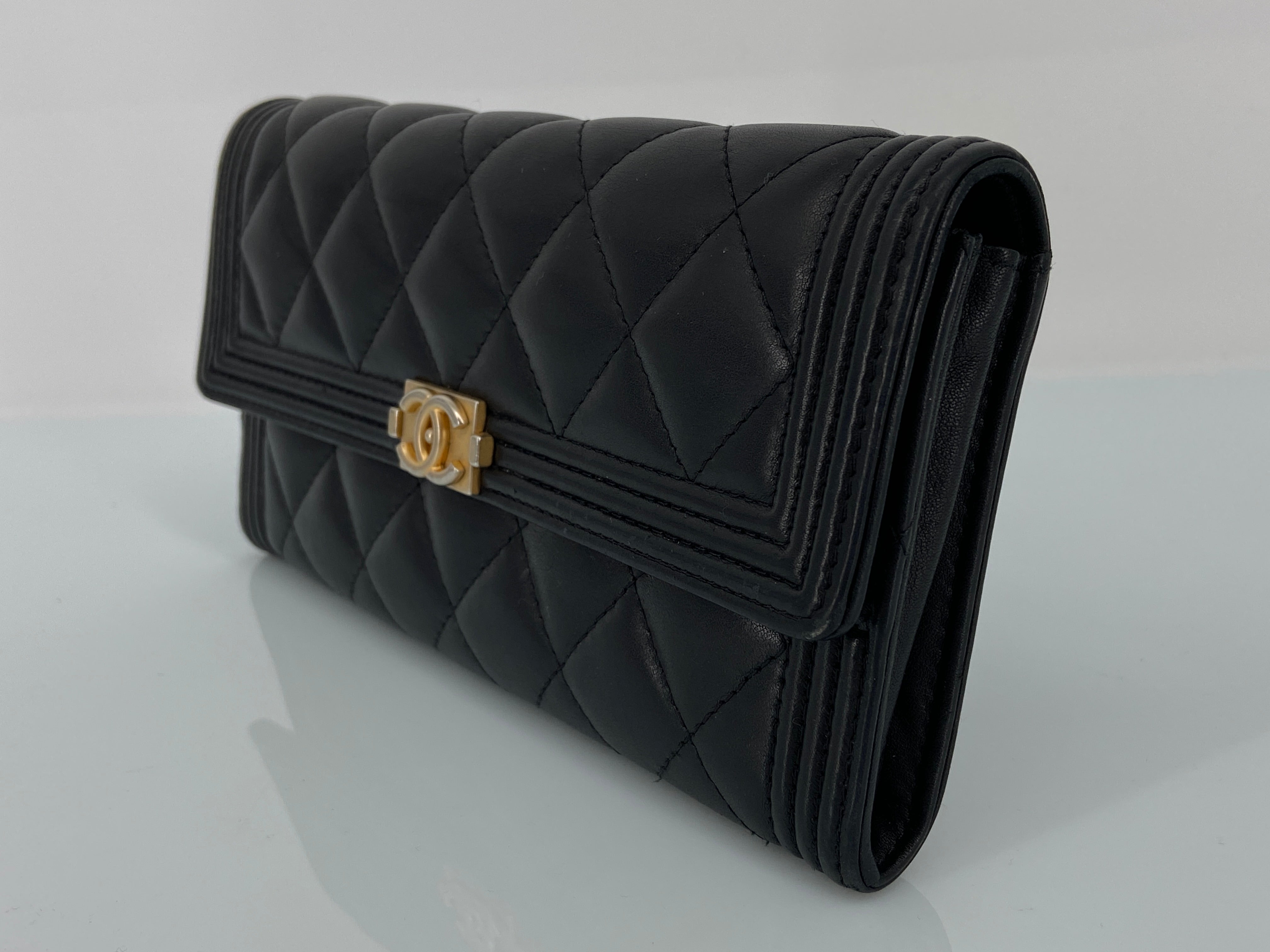 - Chanel Boy Flap Wallet Black Leather