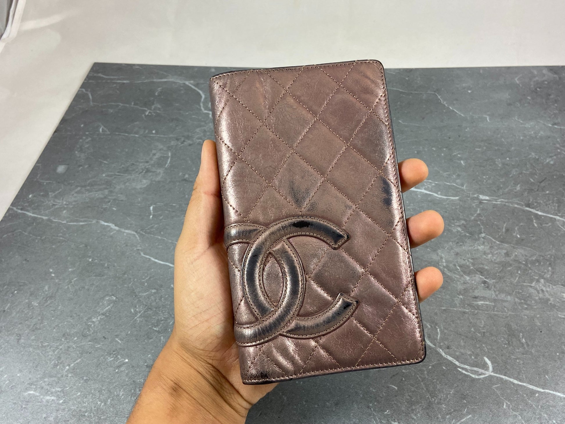 - Vintage Chanel Cambon Long Bifold Wallet Rosé Quilted Leather