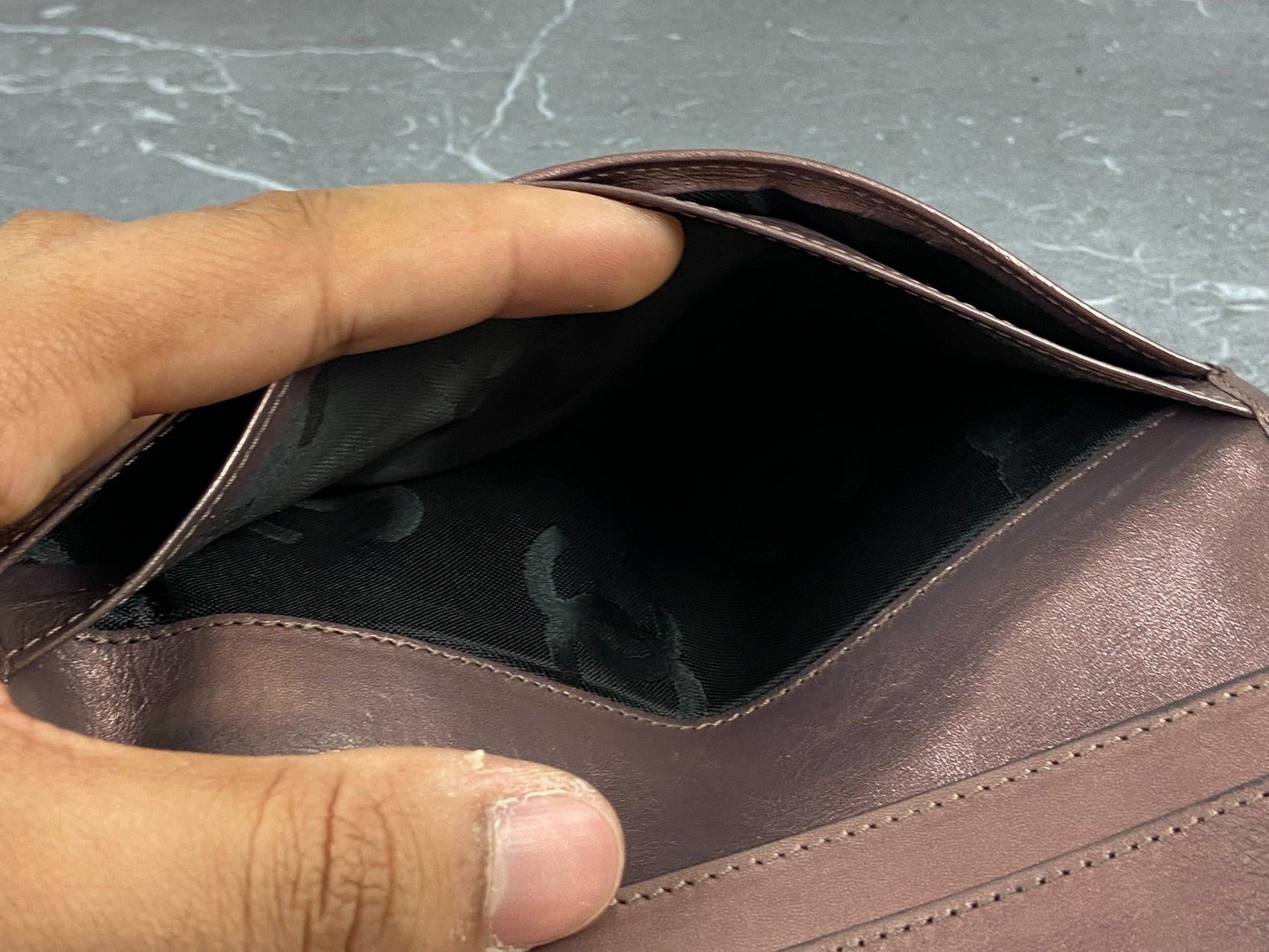 - has compartments for bills / notes, cards & coins