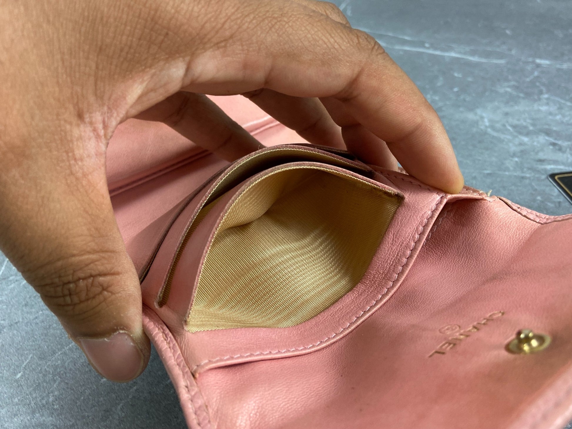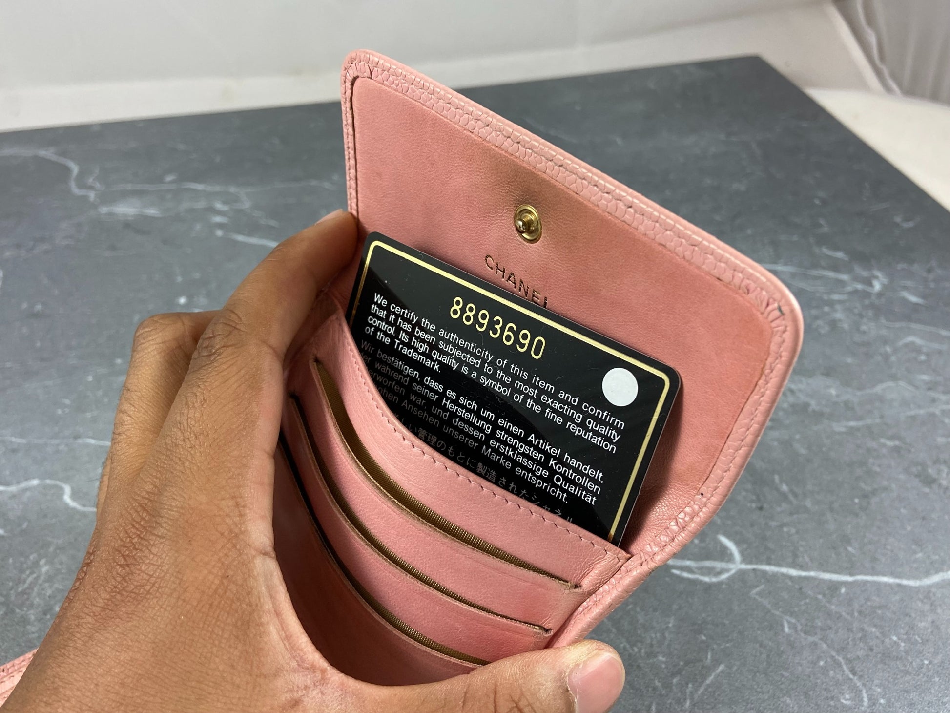 - Vintage Chanel CC Compact Wallet Pink Caviar Leather