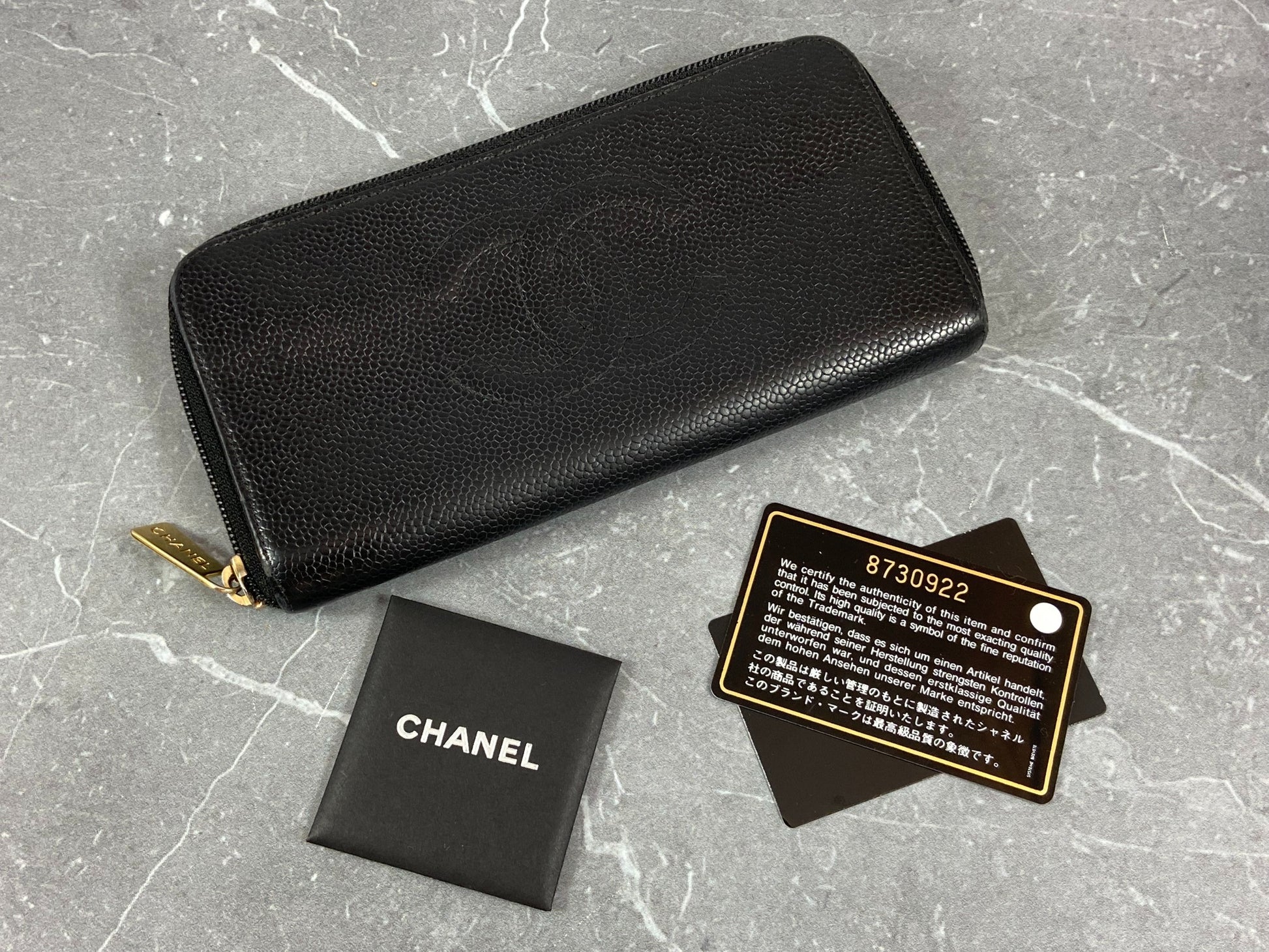 Chanel CC Long Zippy Wallet Black Caviar Leather full set