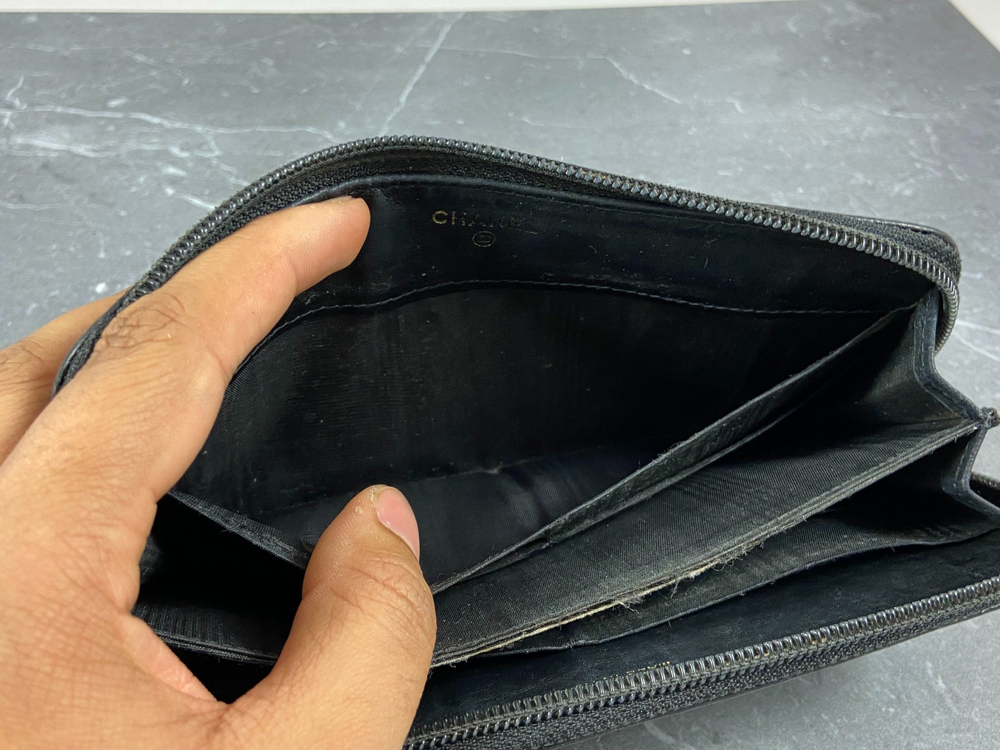 - Vintage Chanel CC Long Zippy Wallet Black Caviar Leather