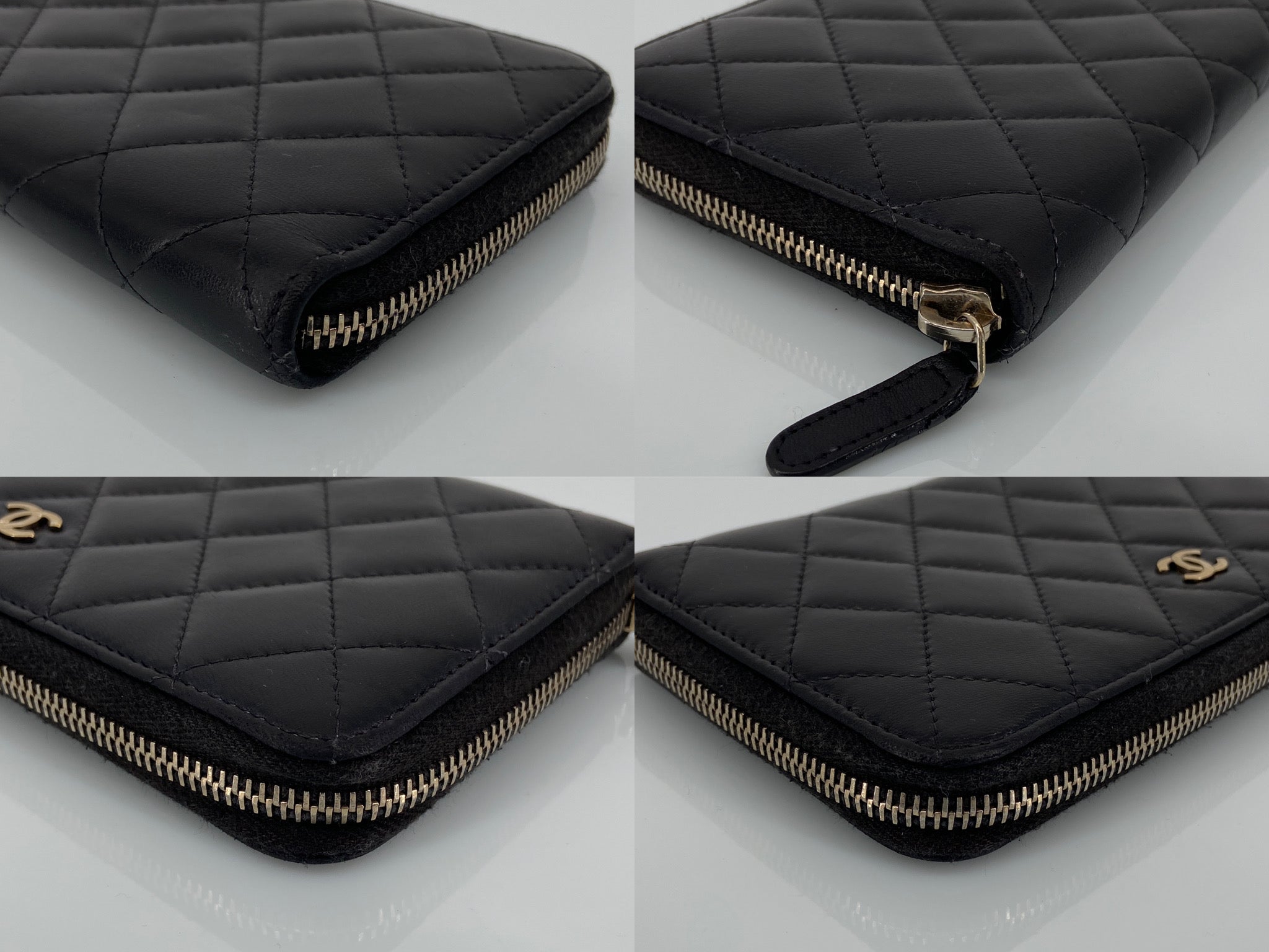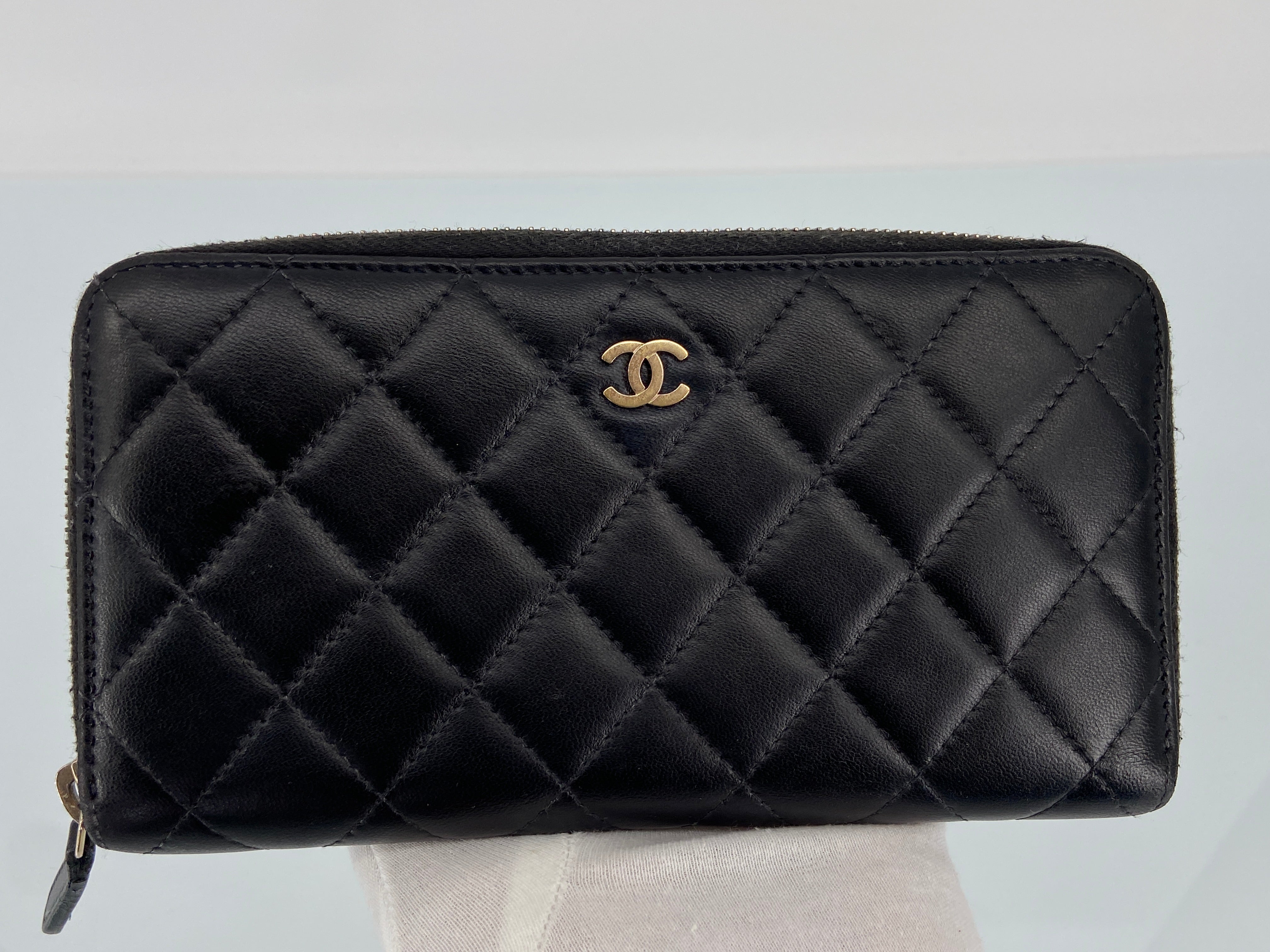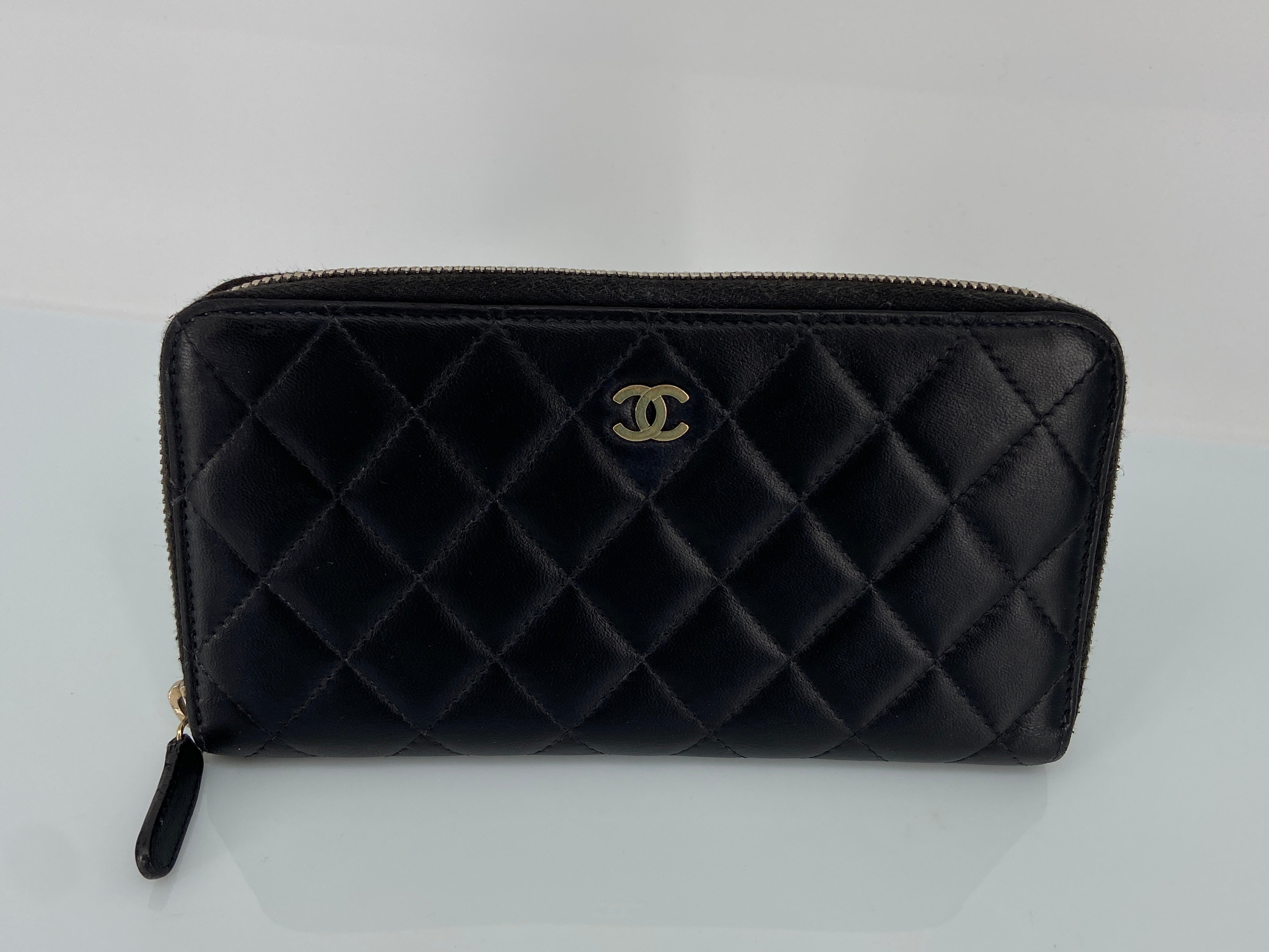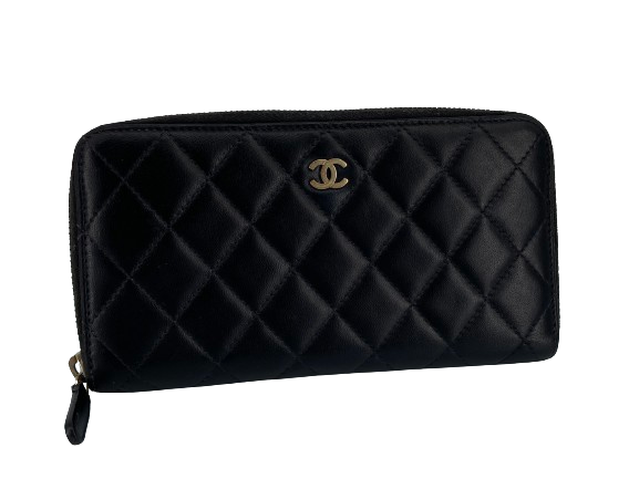 - Chanel CC Zippy Wallet Black Quilted Leather