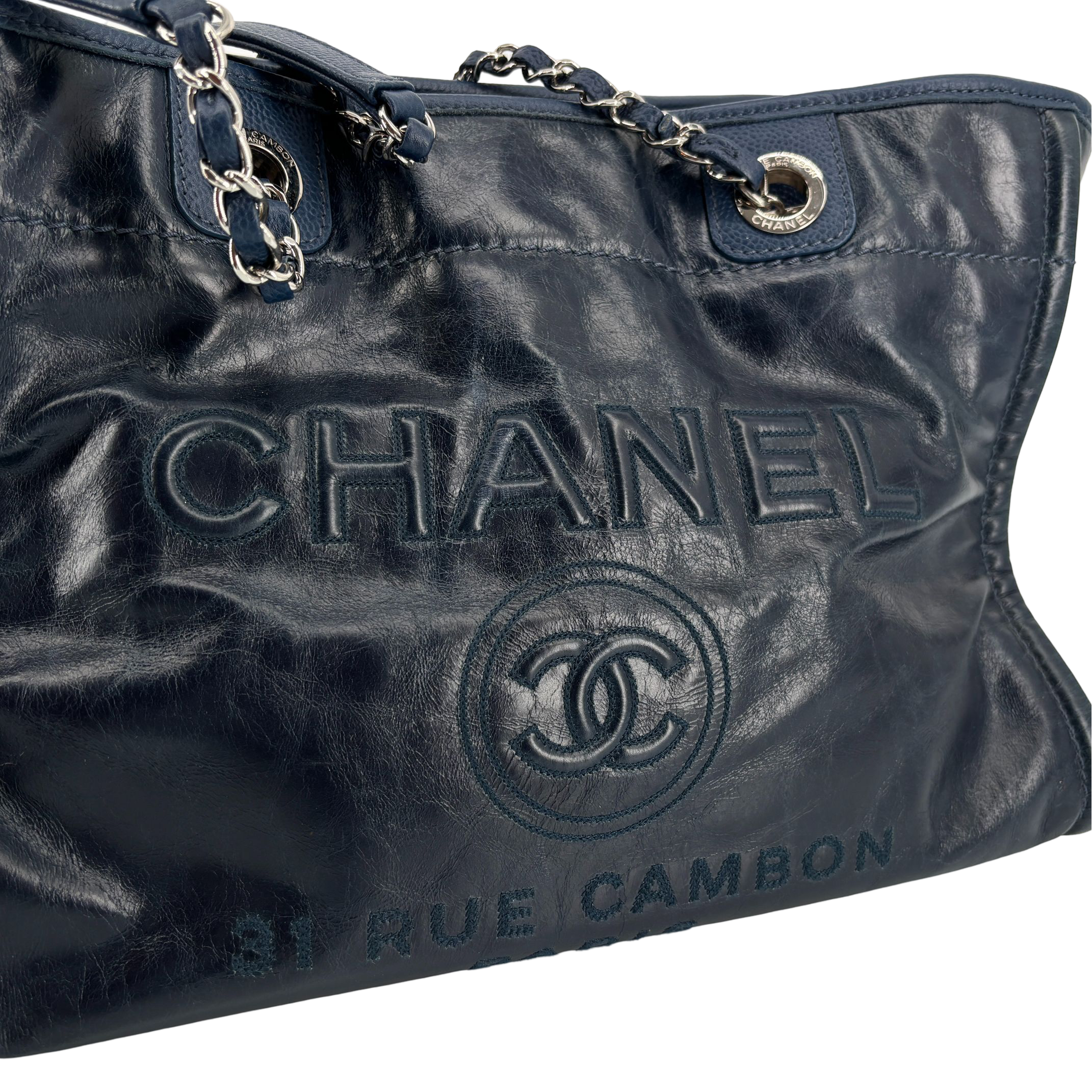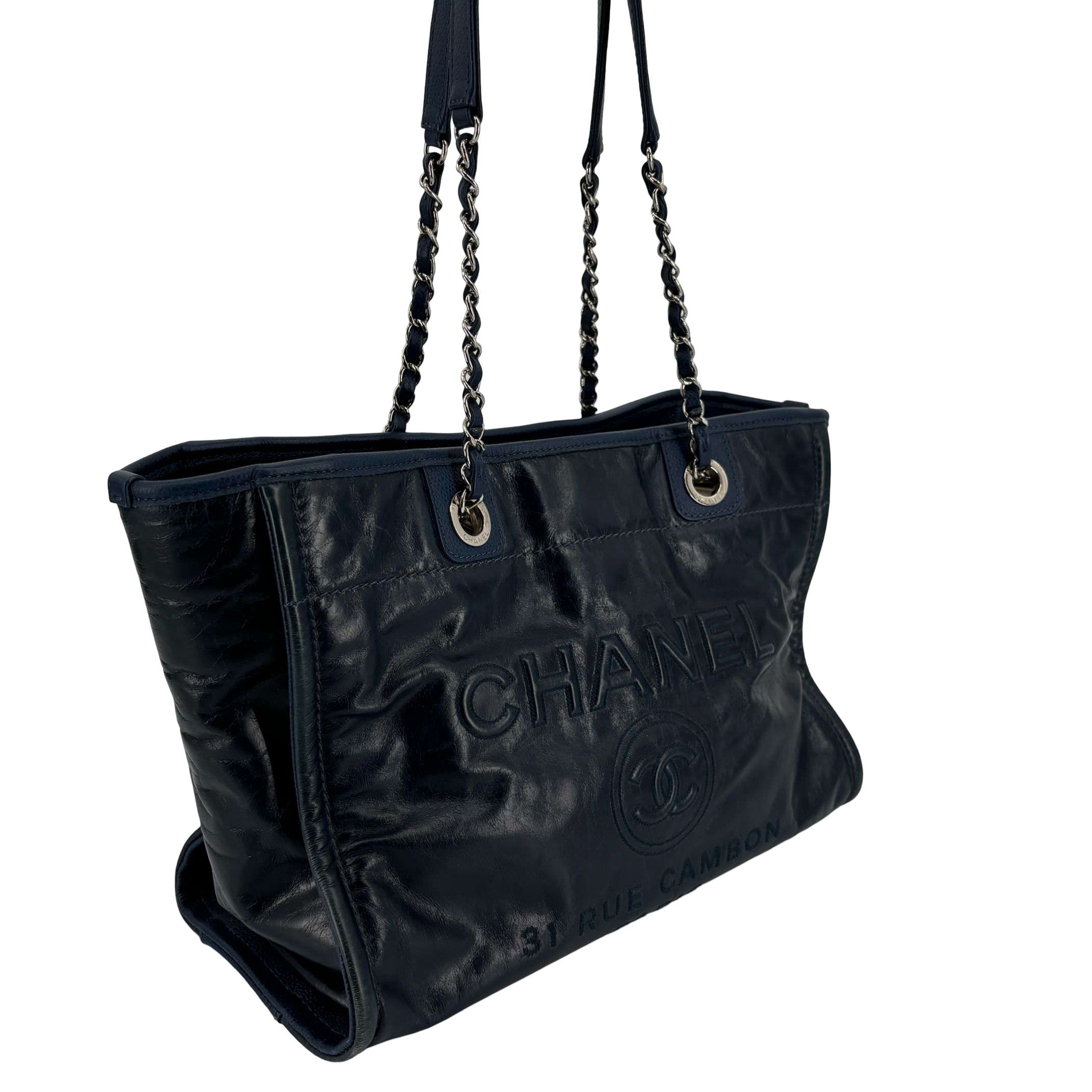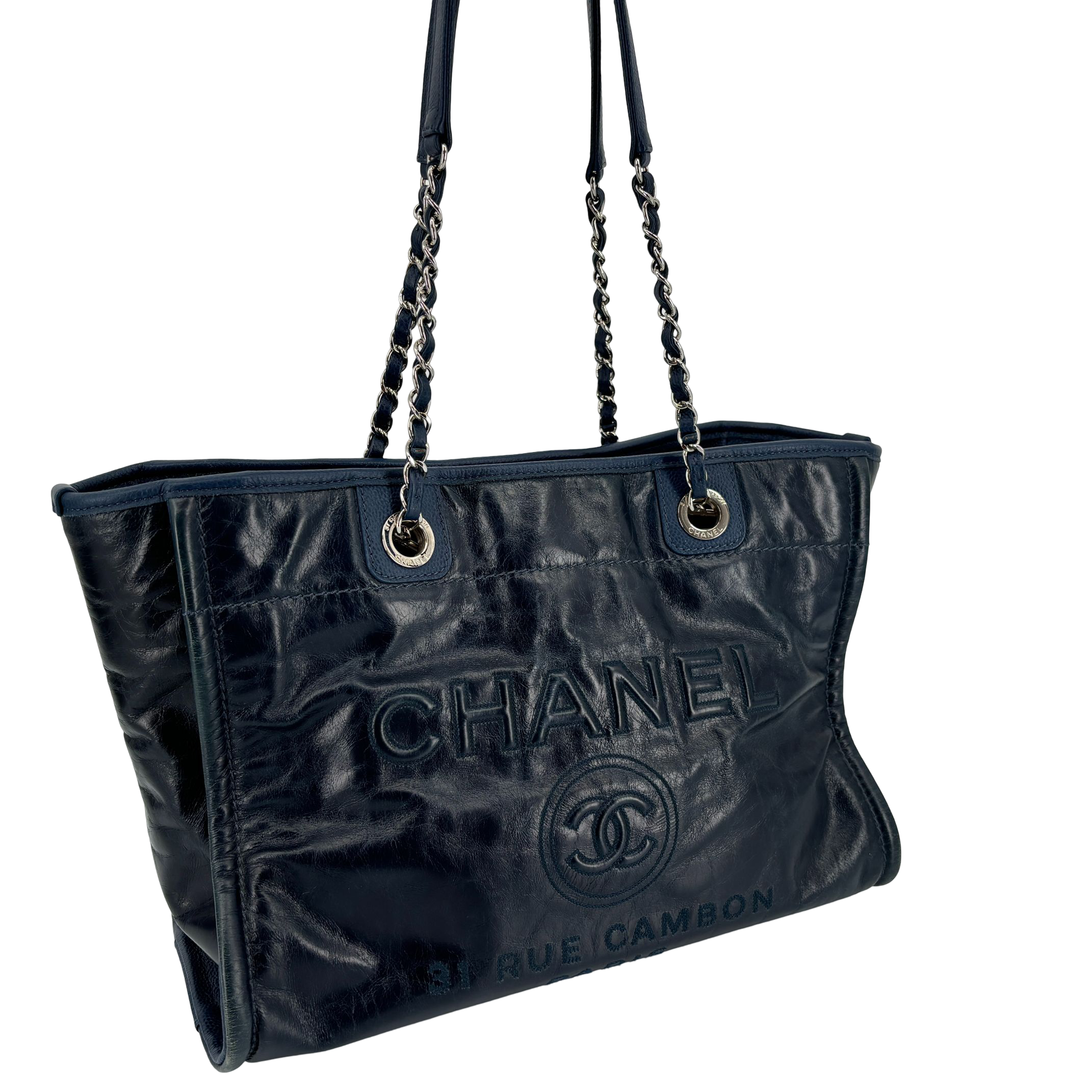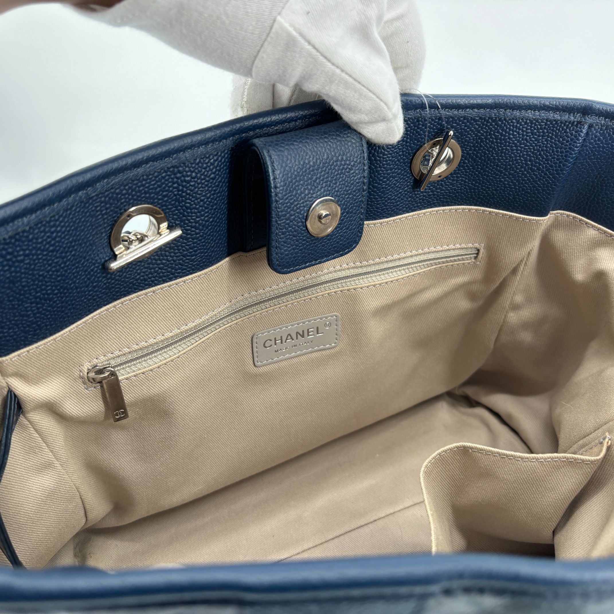 - Chanel Deauville MM Hand / Tote Bag Navy Leather