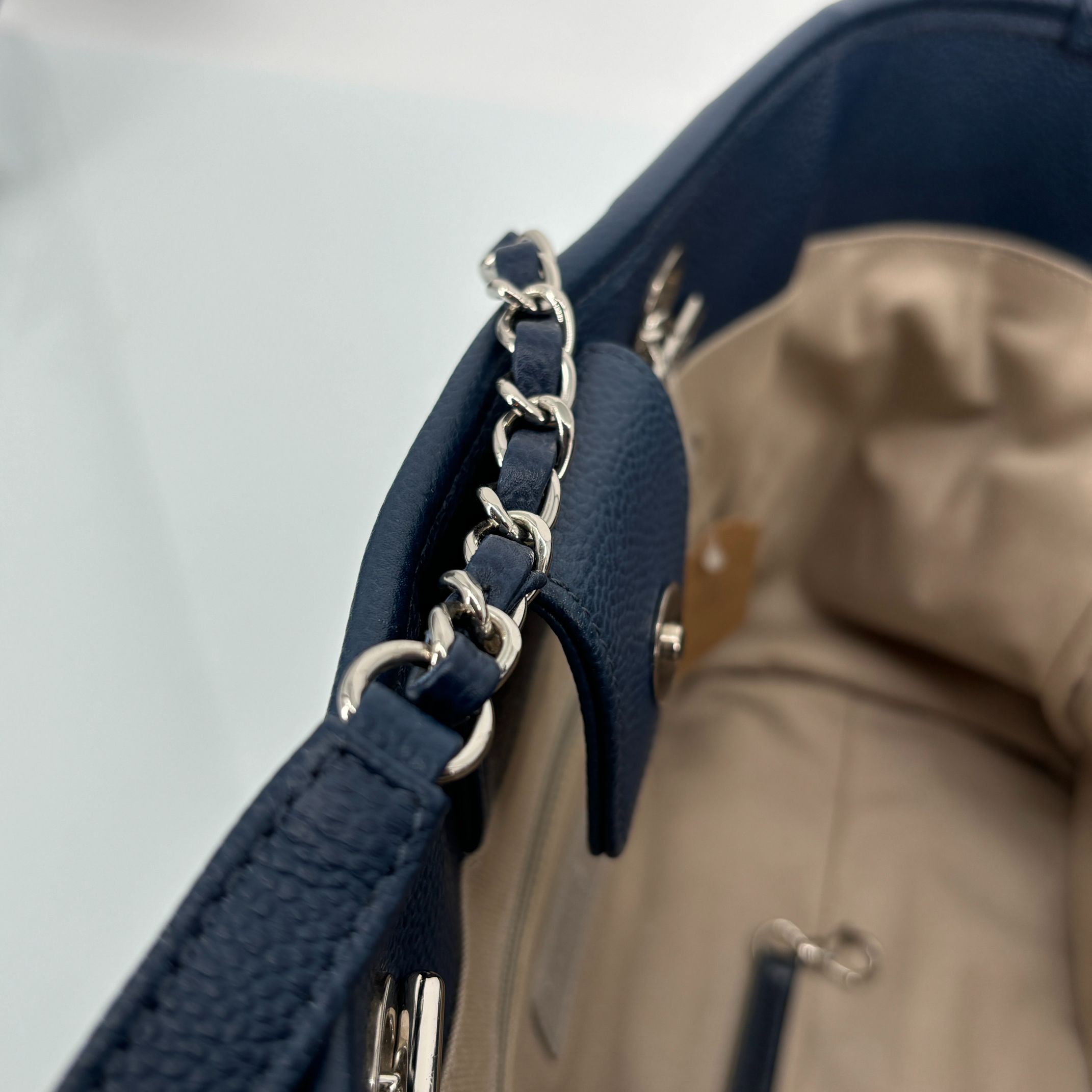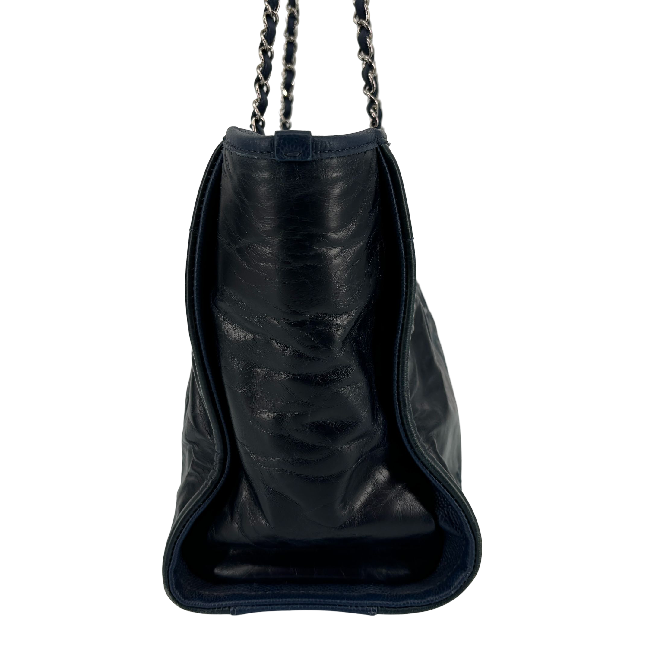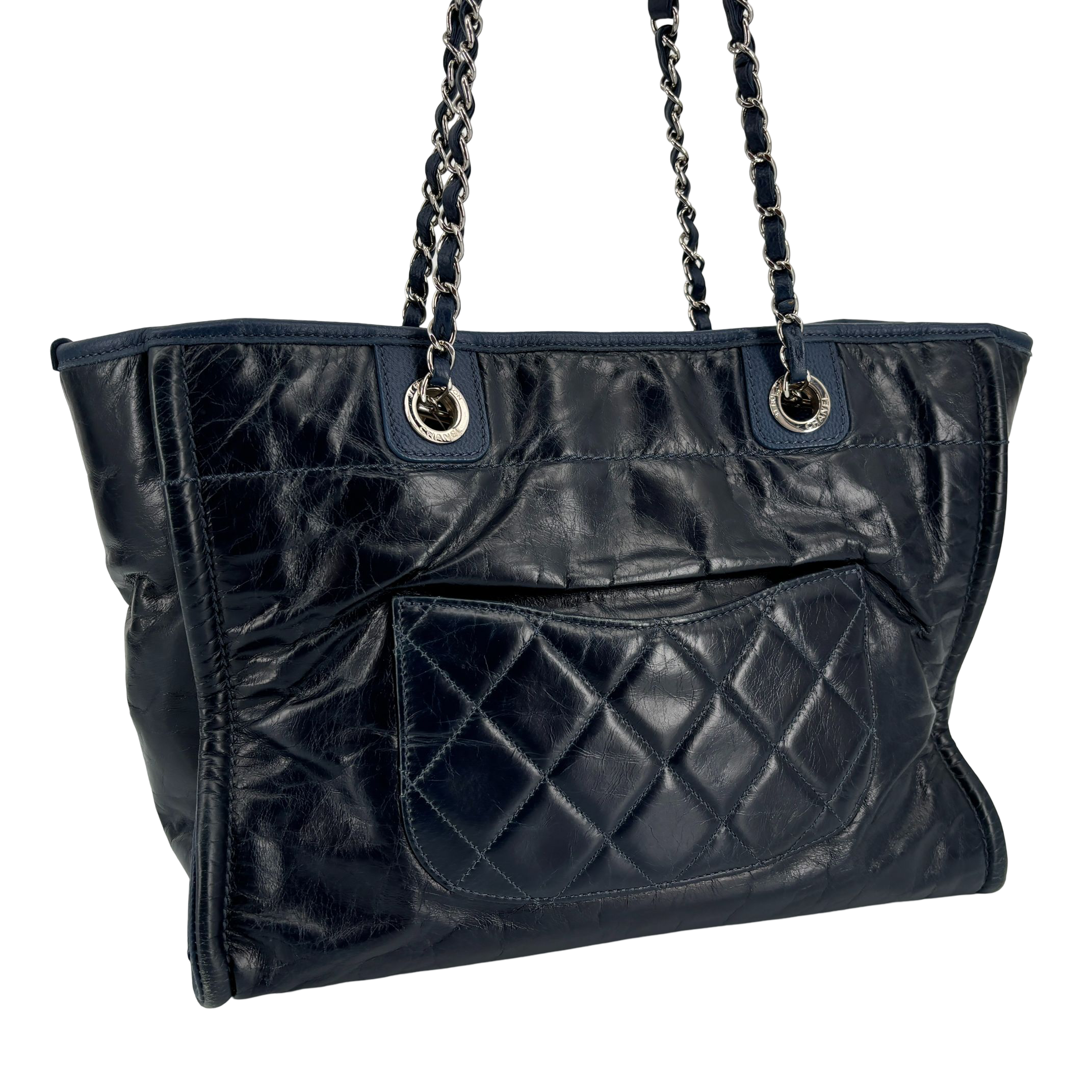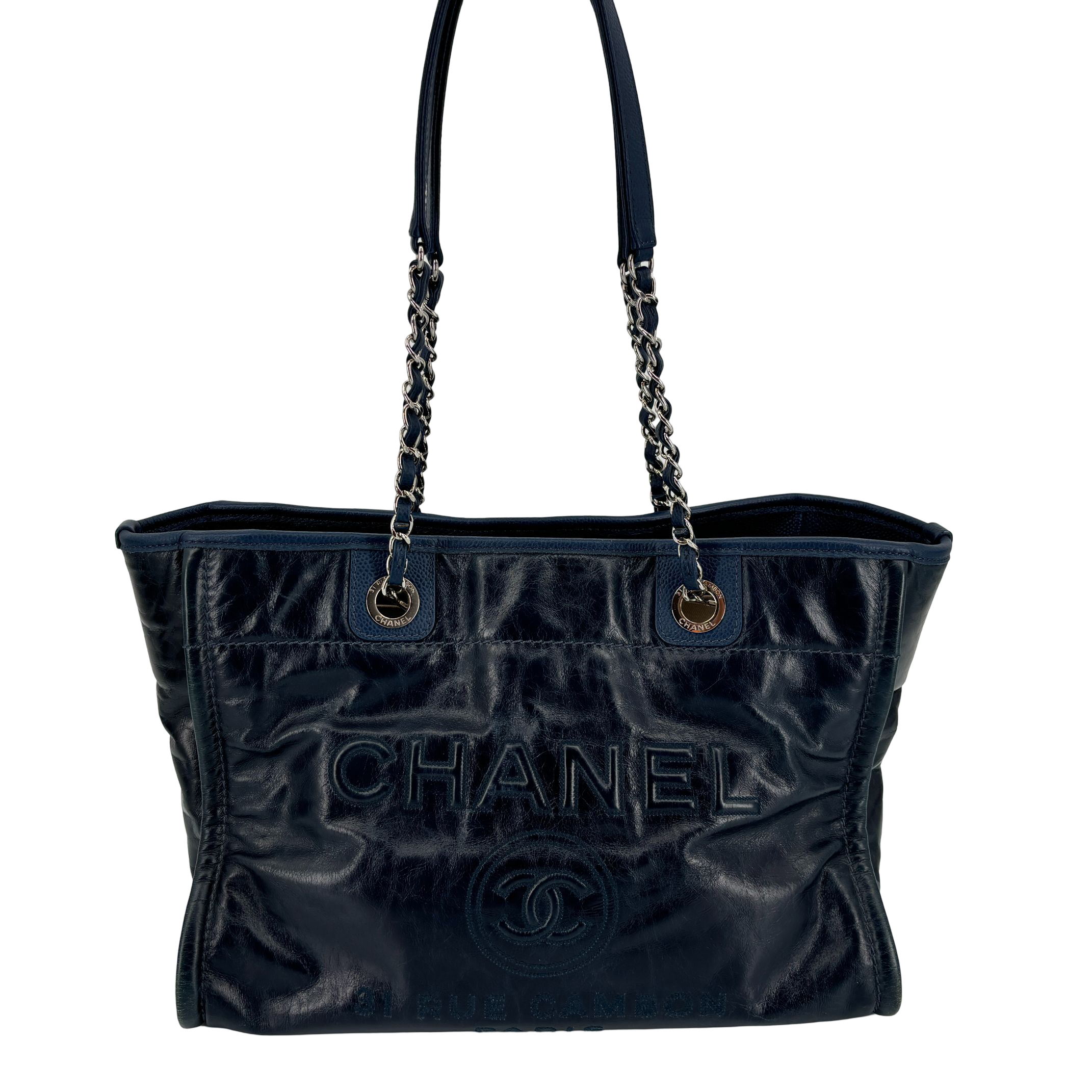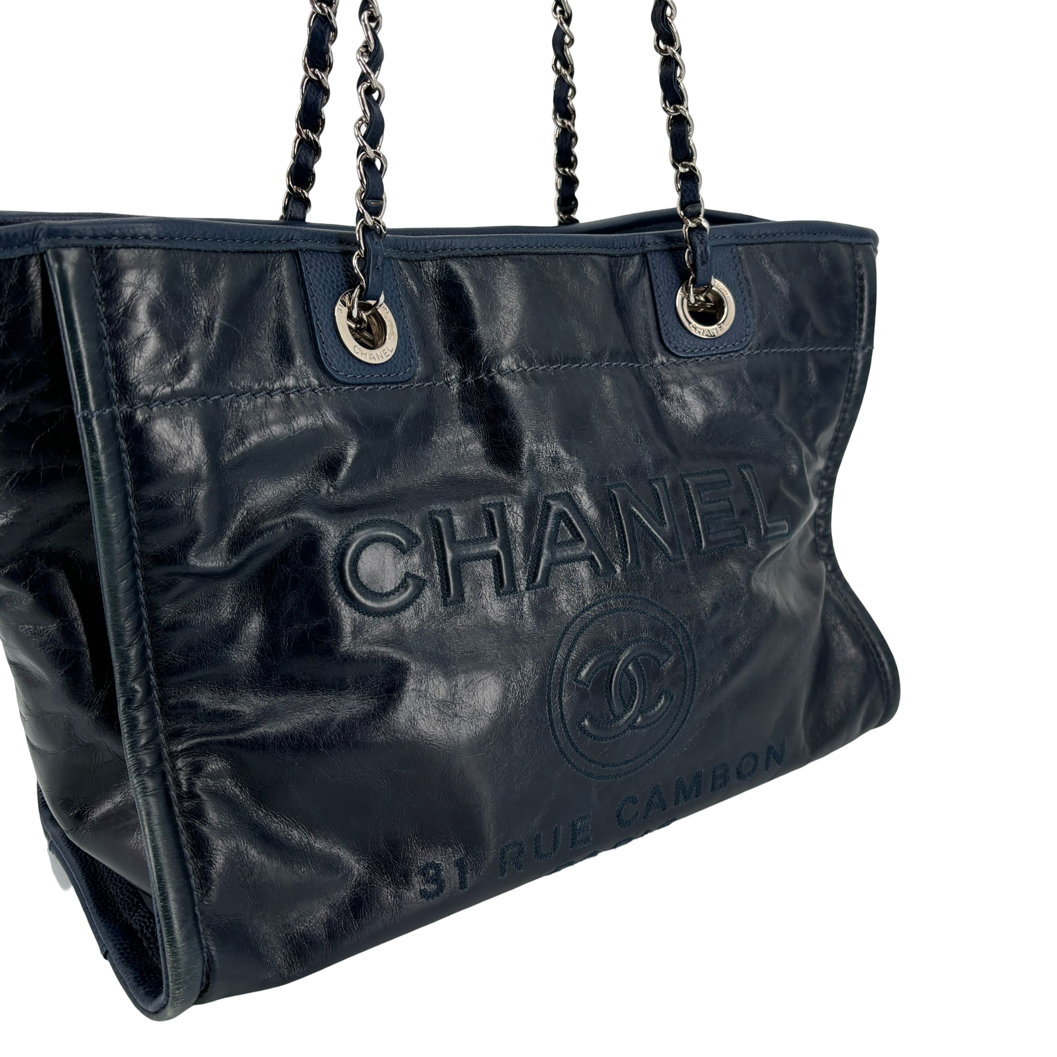 - Chanel Deauville MM Hand / Tote Bag Navy Leather