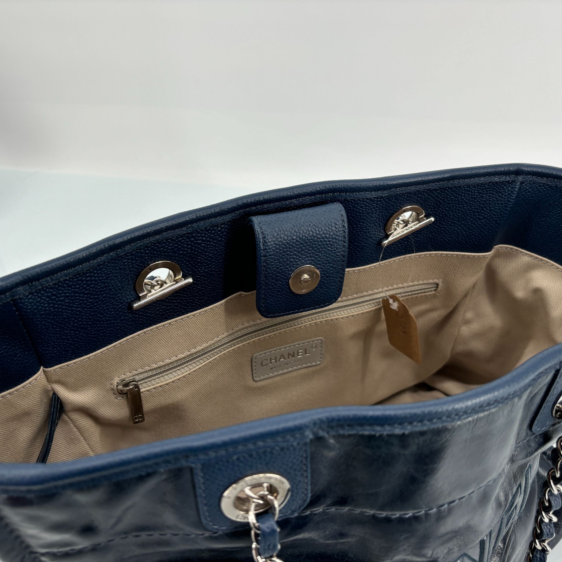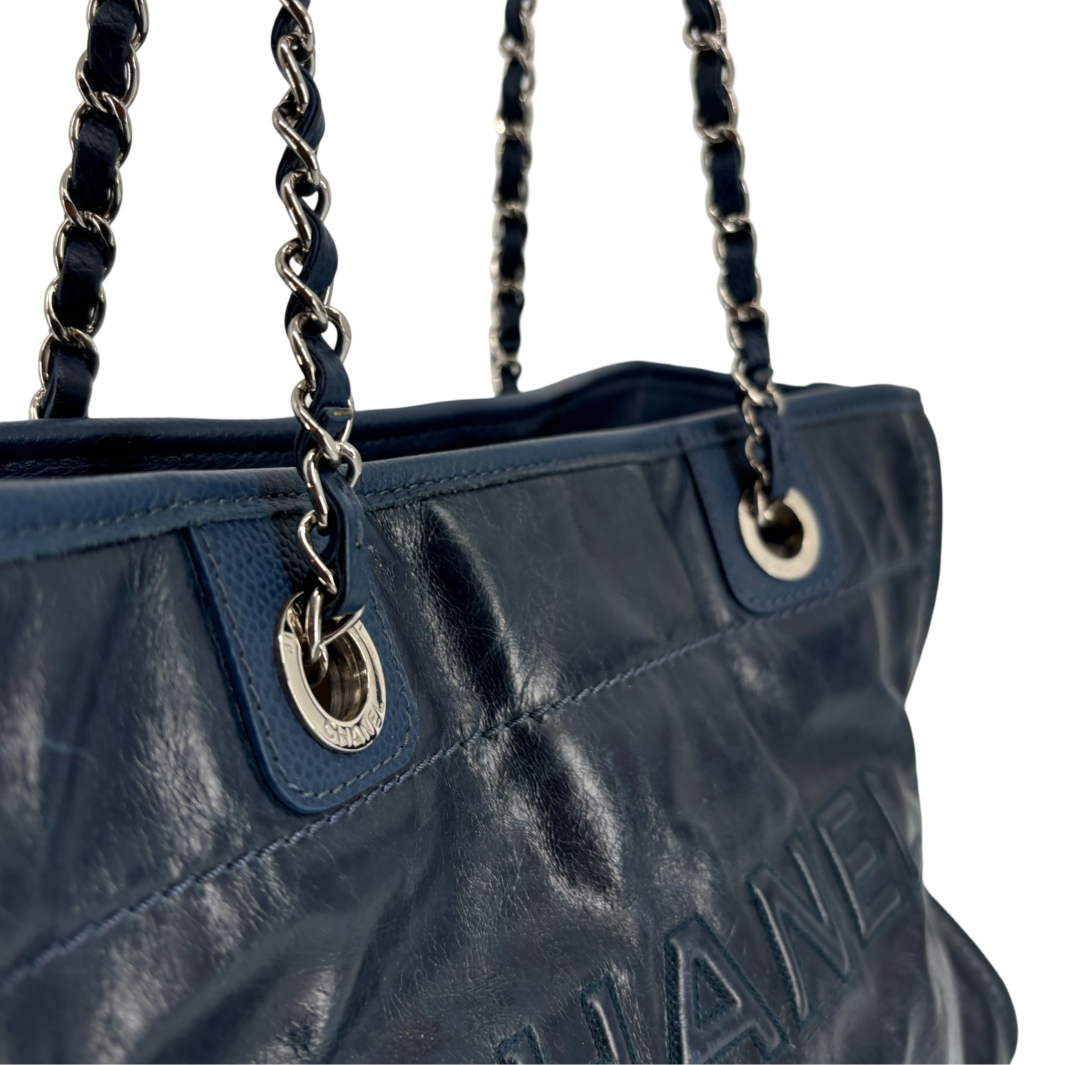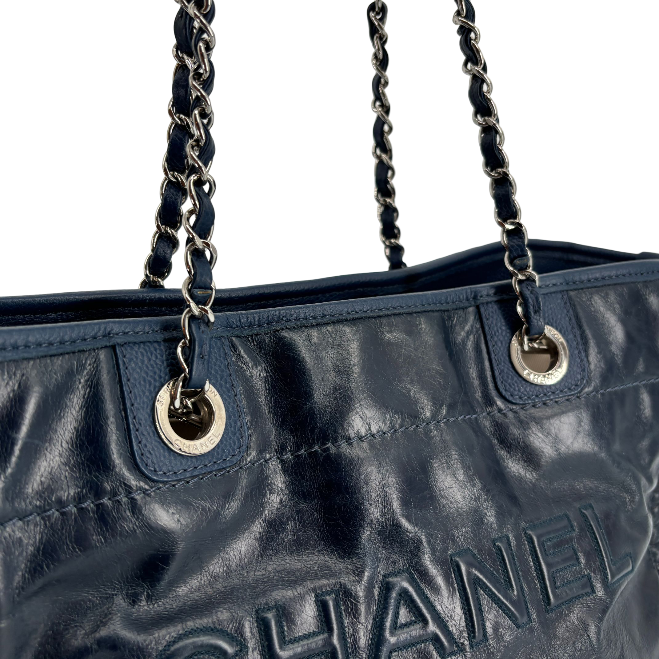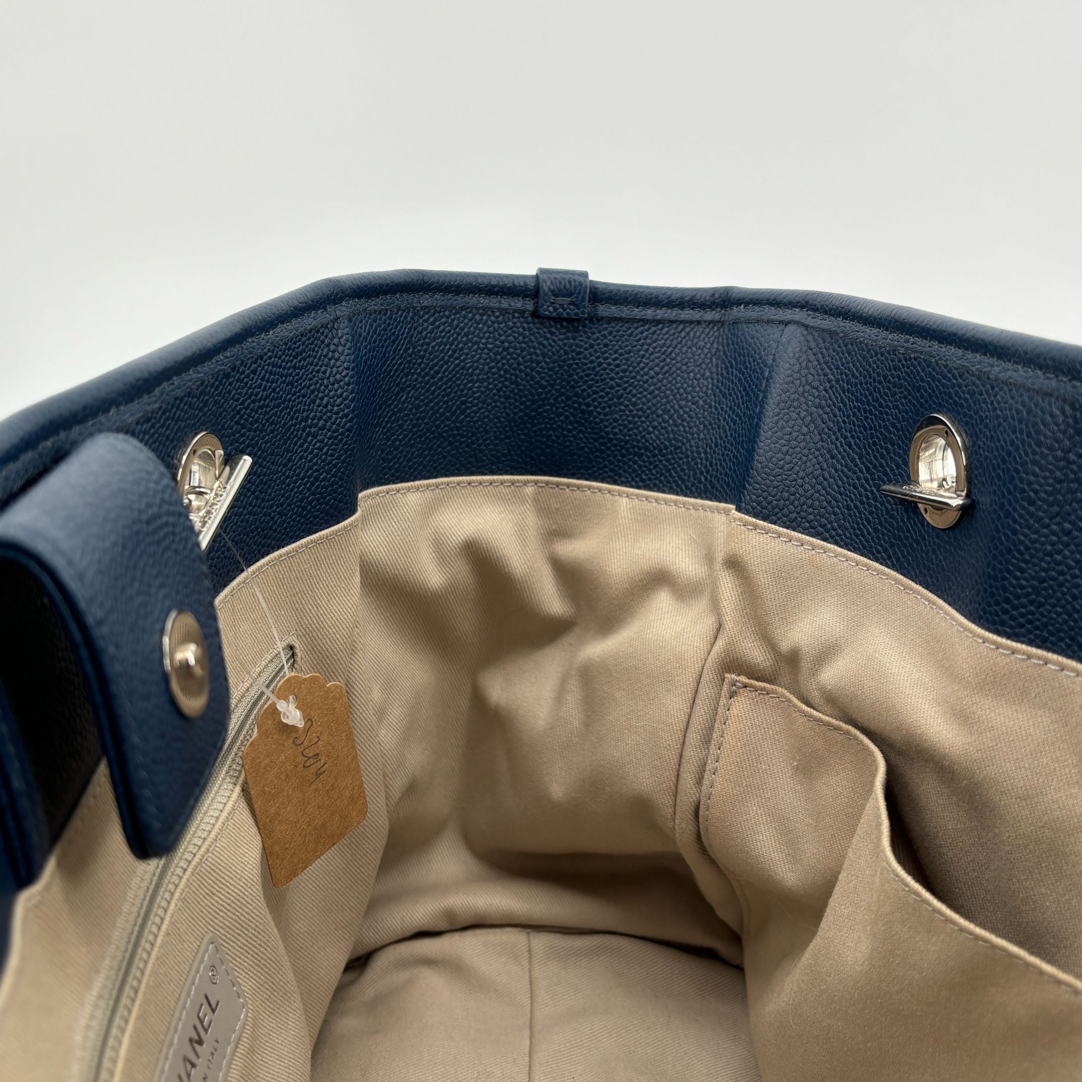 Chanel Deauville MM Hand / Tote Bag Navy Leather