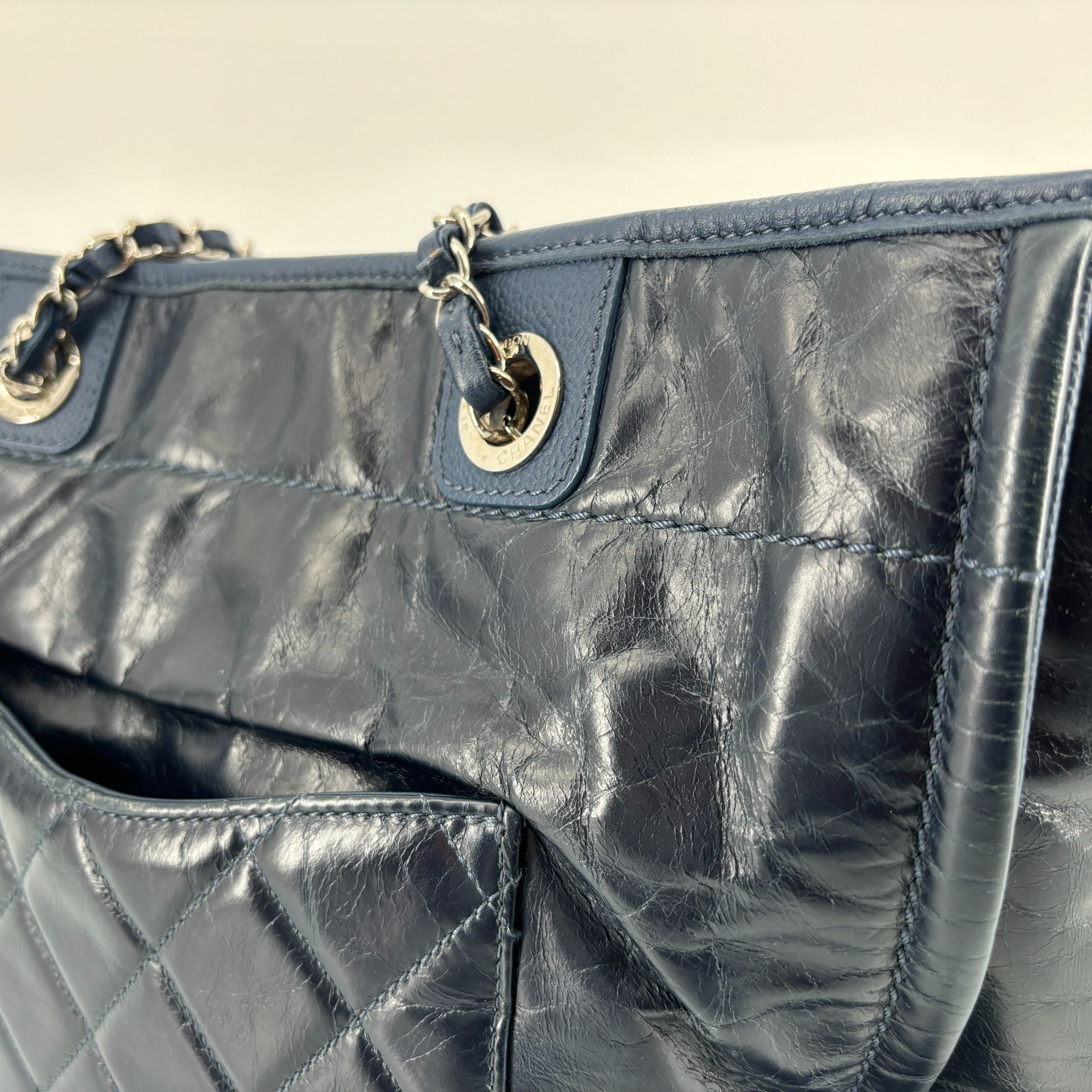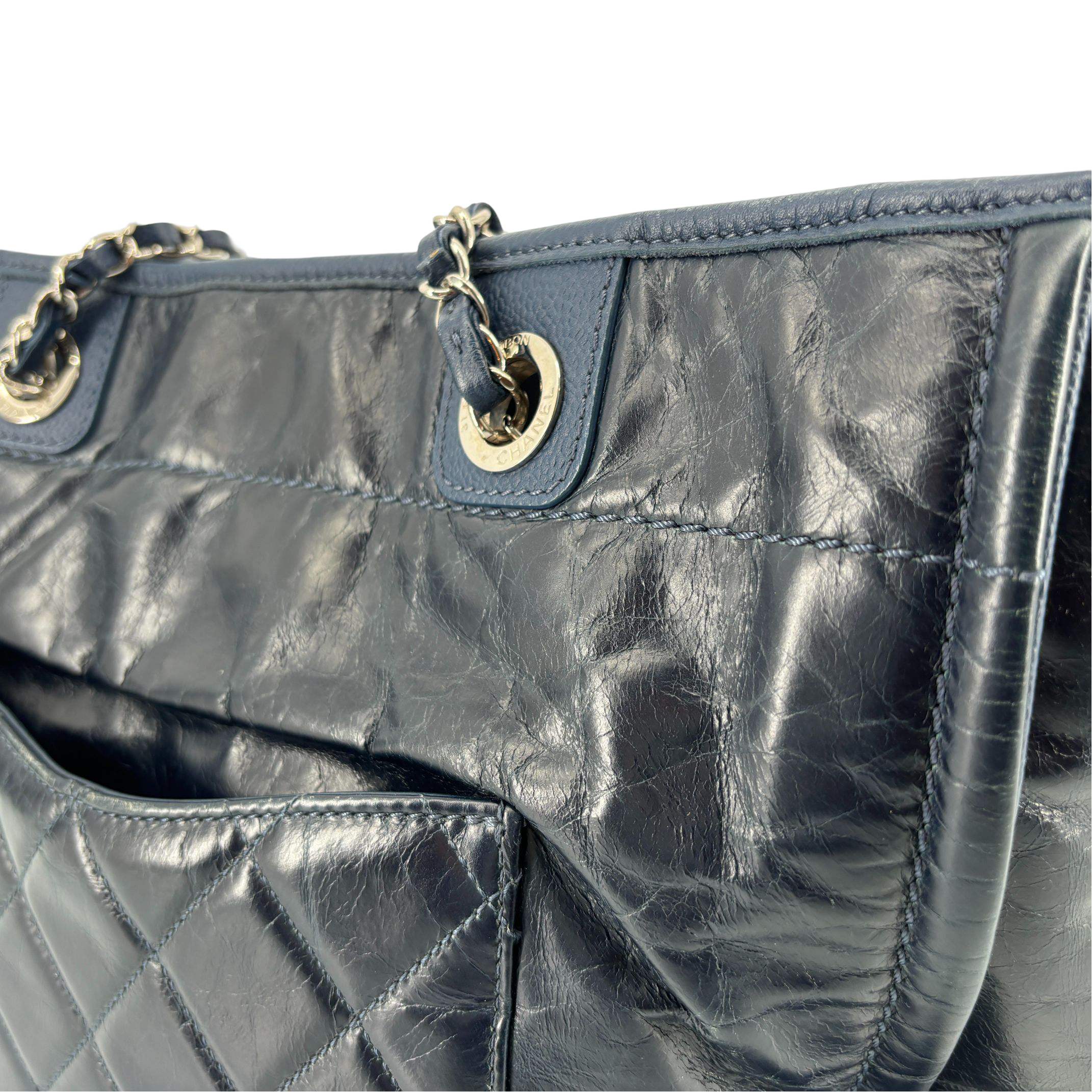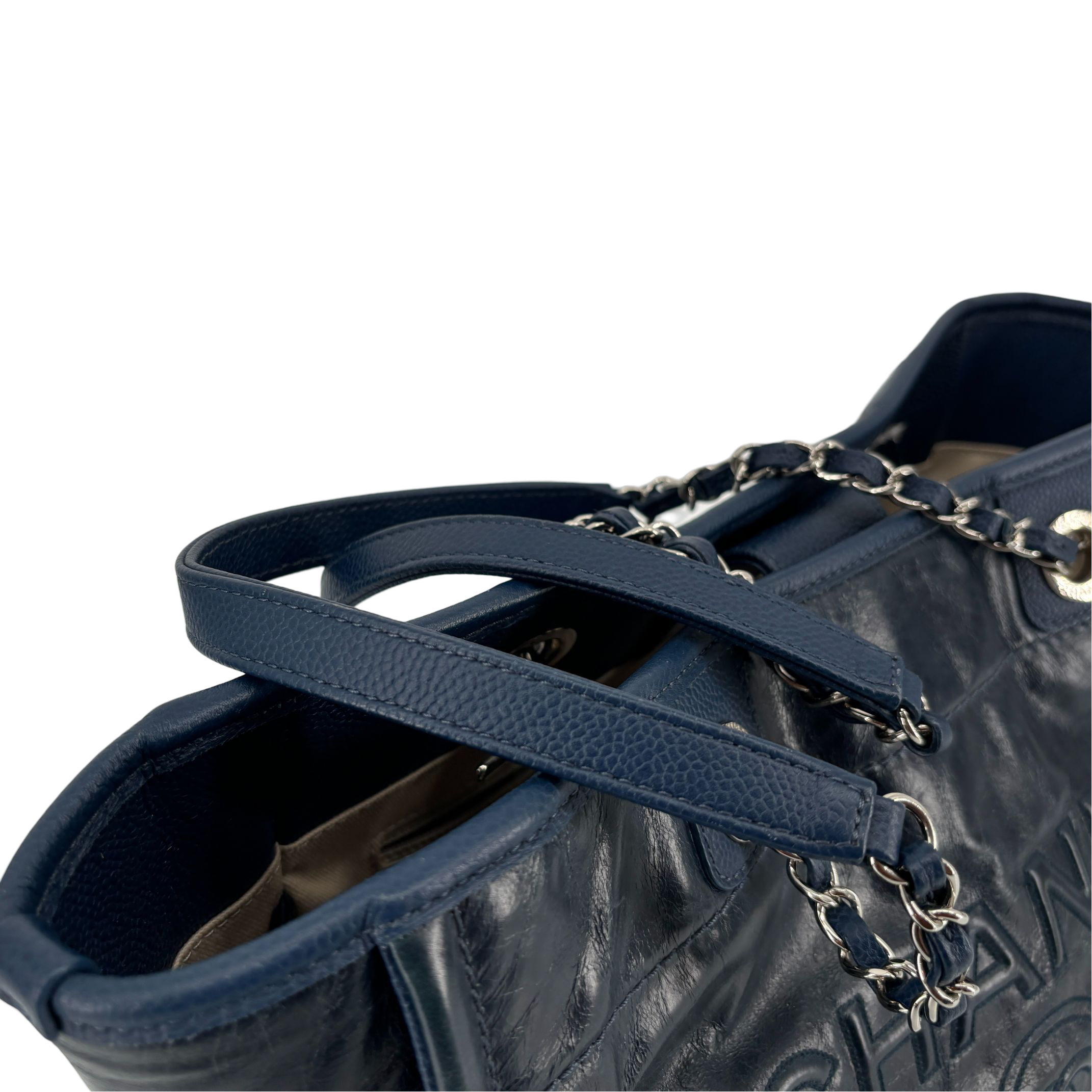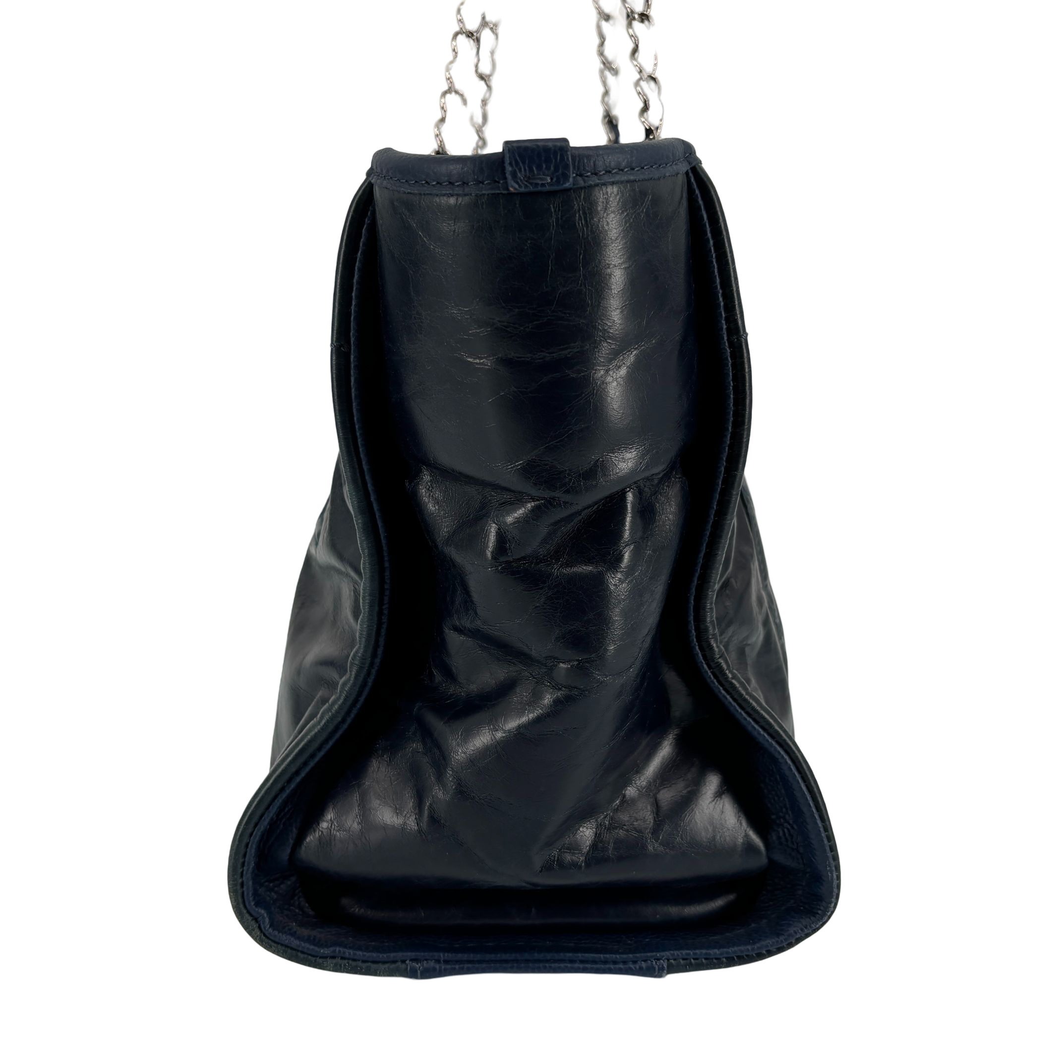 Chanel Deauville MM Hand / Tote Bag Navy Leather