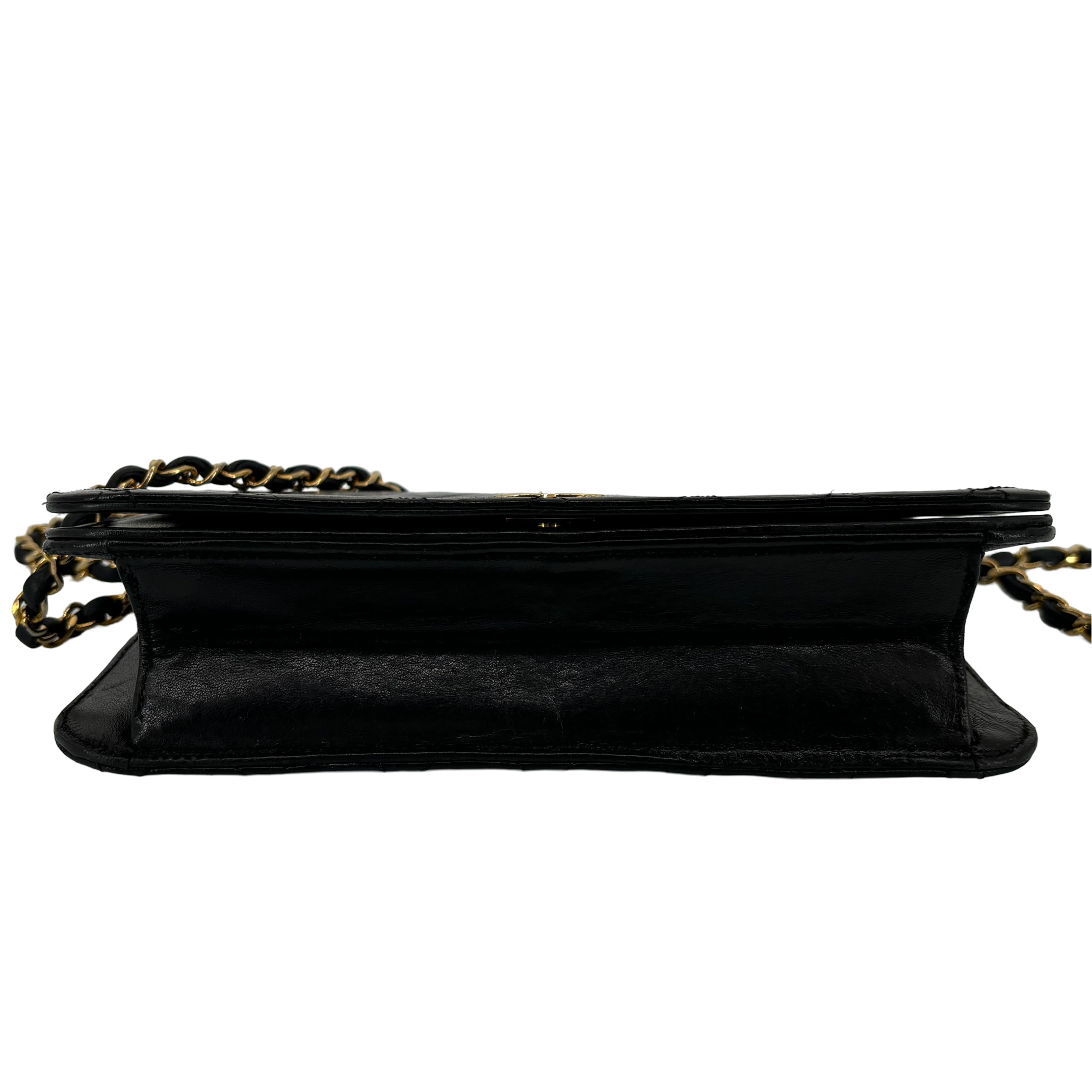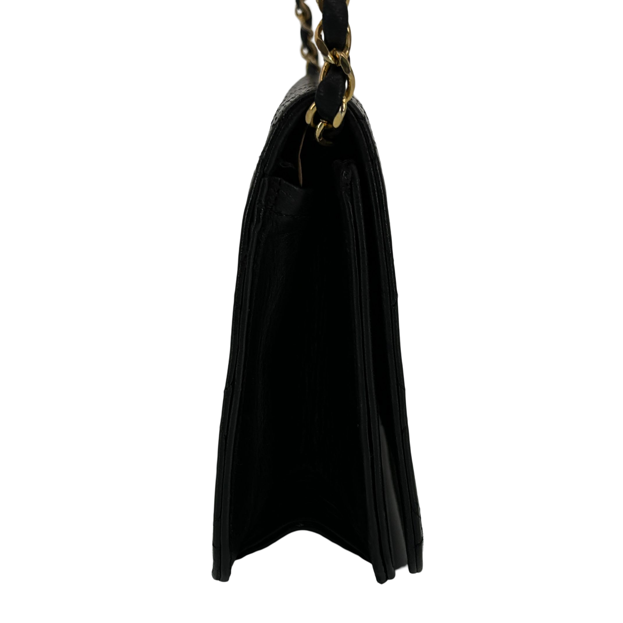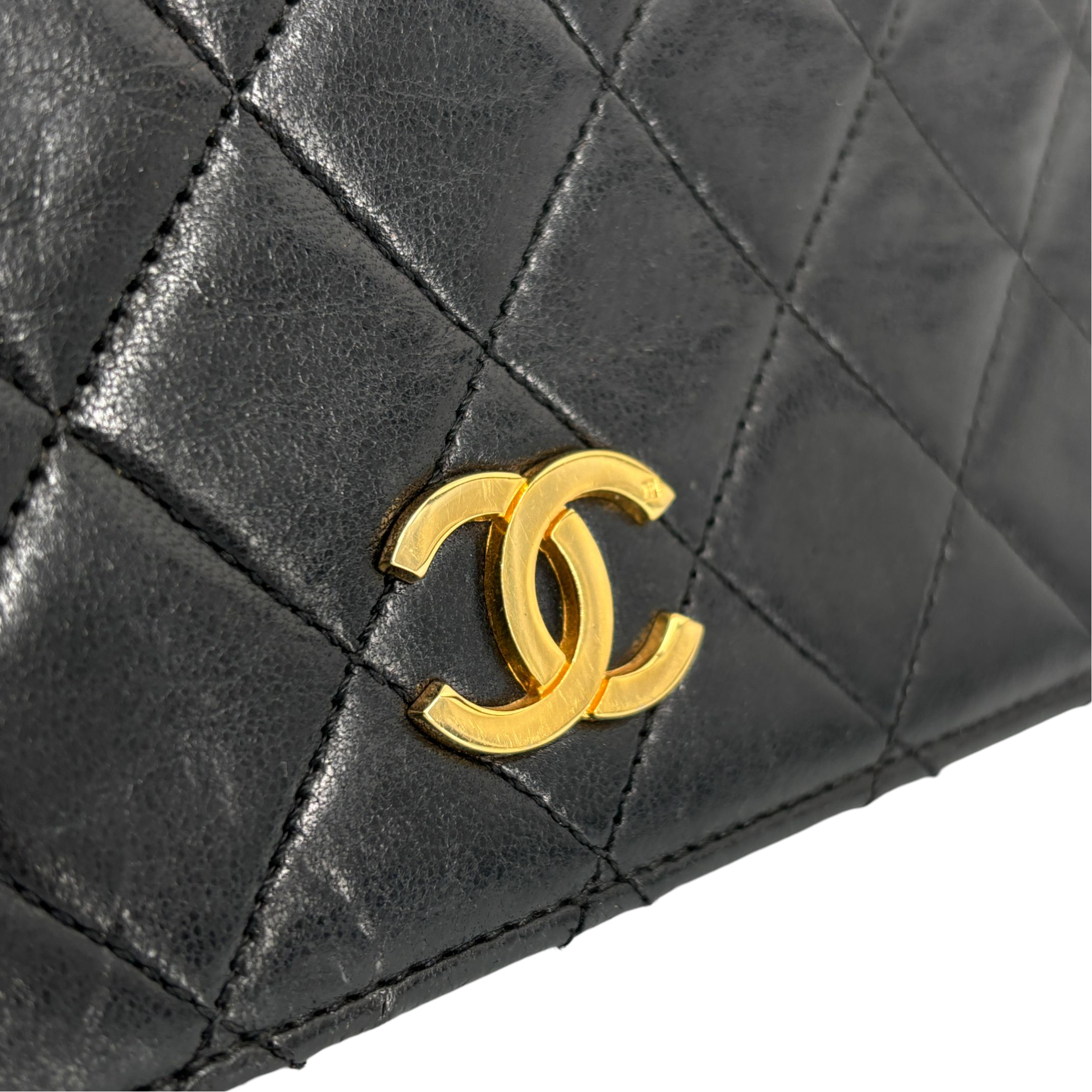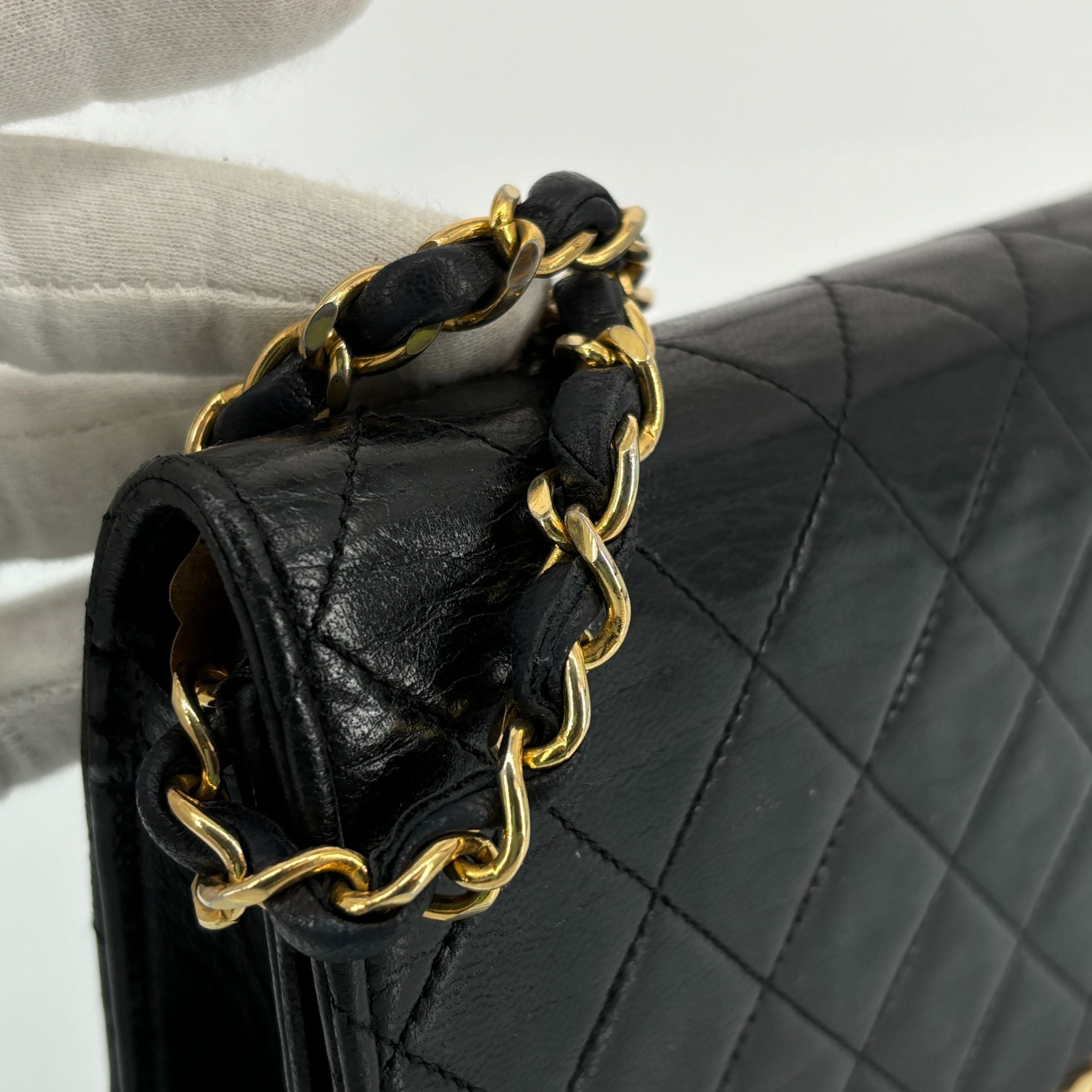 - Chanel Full Flap Bag Push-Lock Black Matelassé Leather