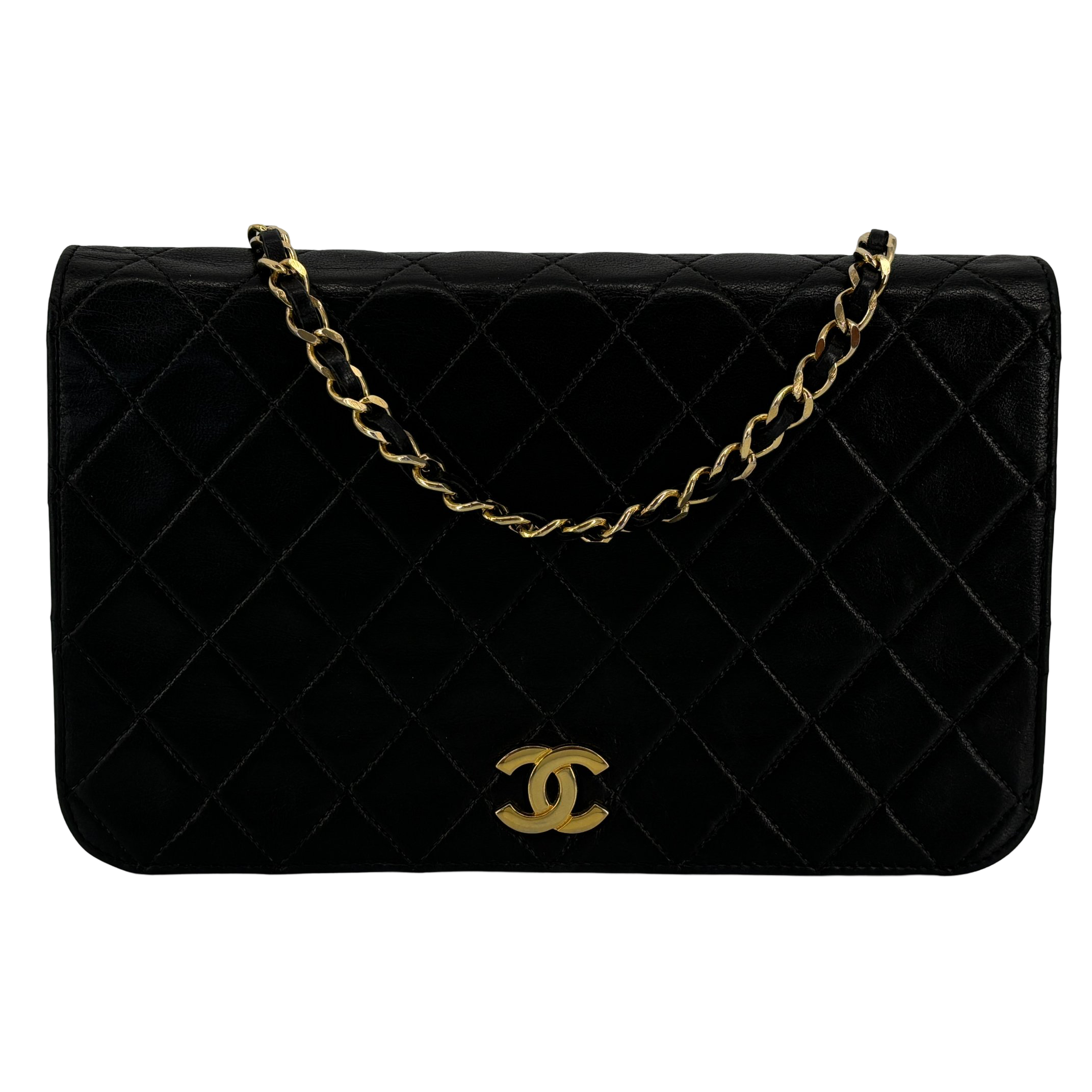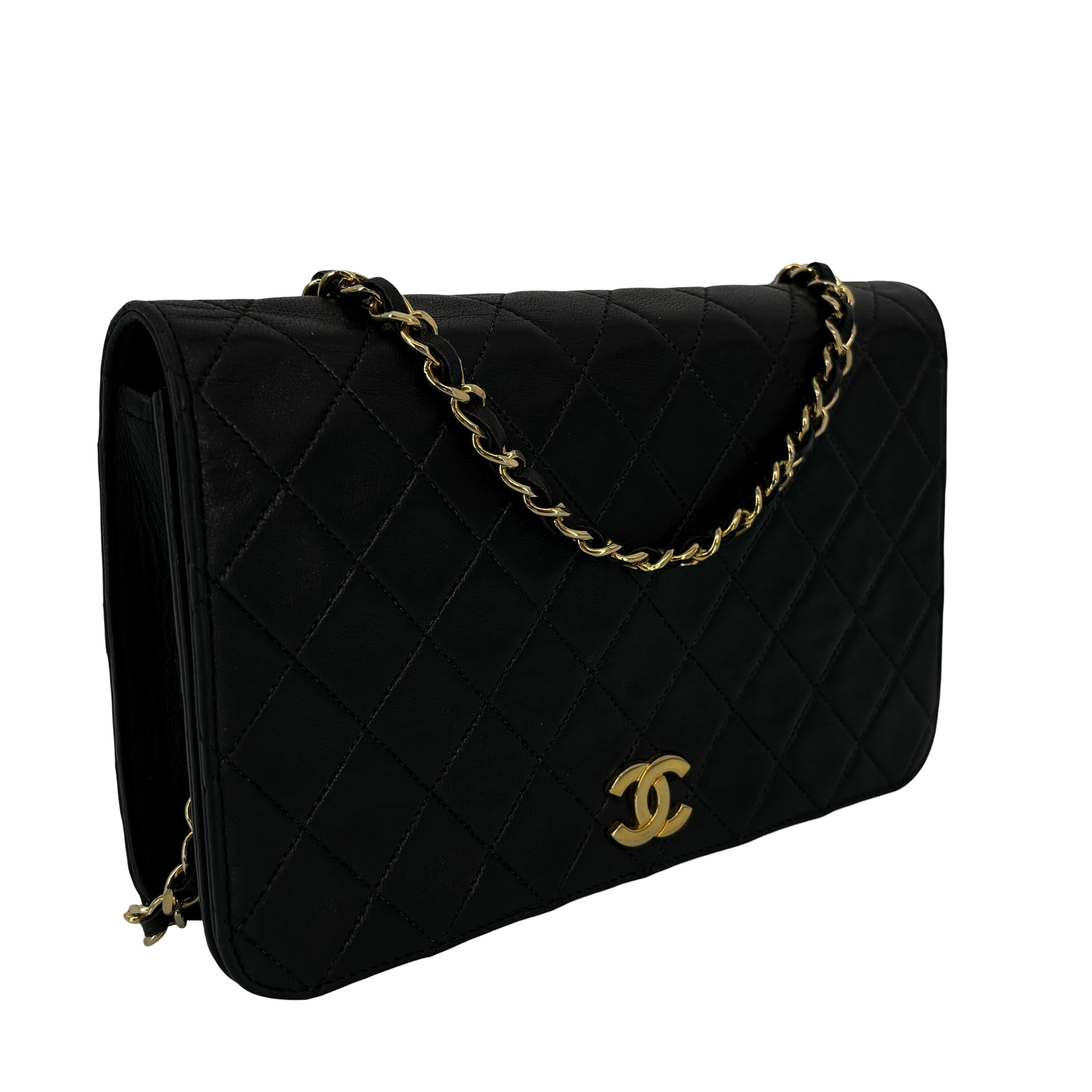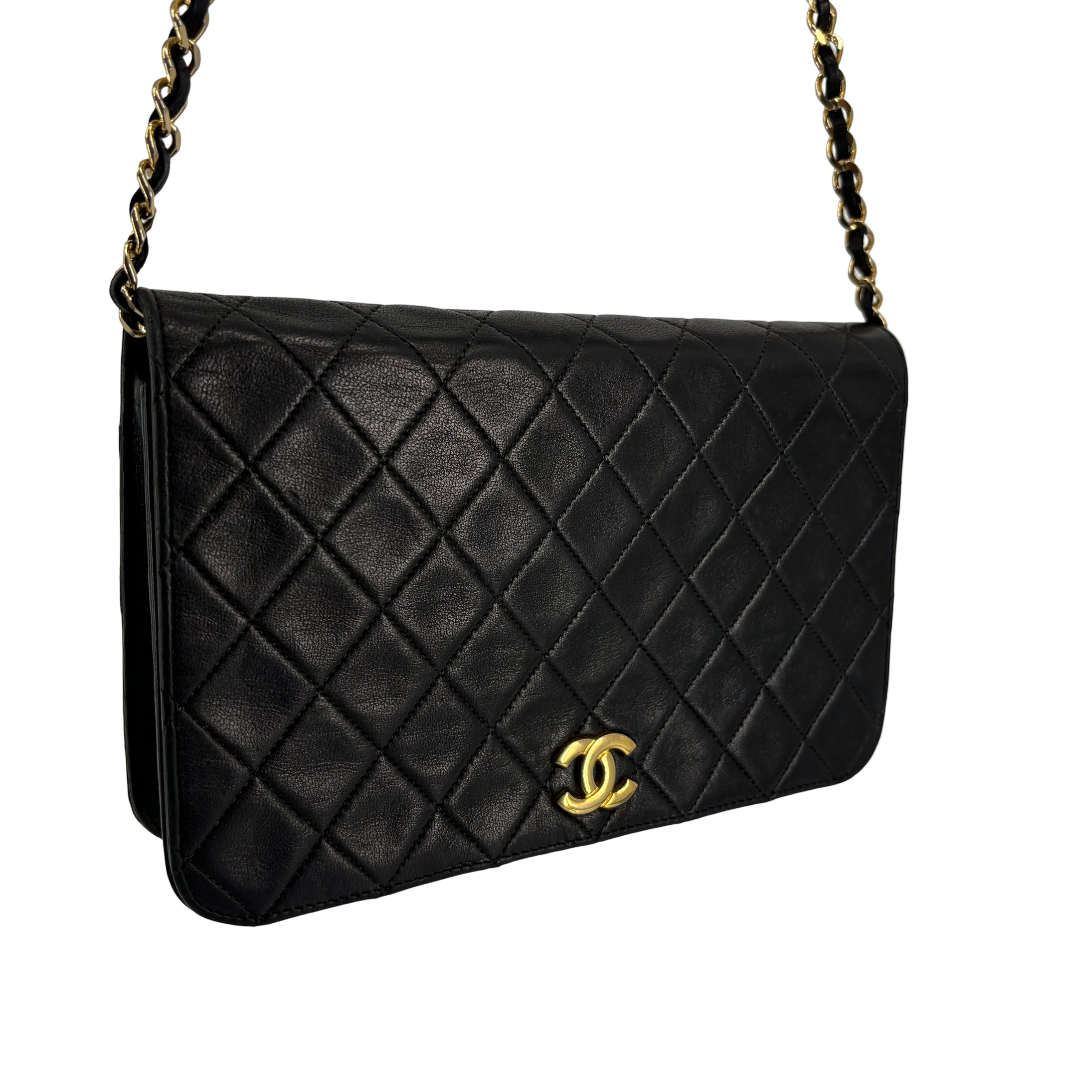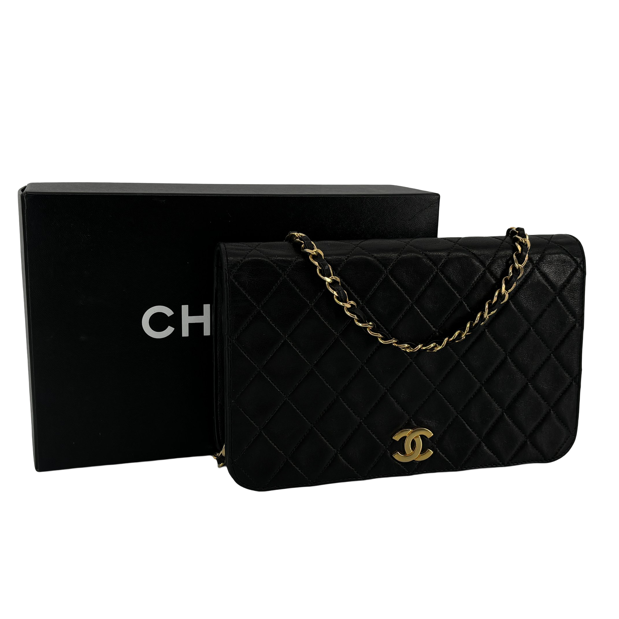 - Chanel Full Flap Bag Push-Lock Black Matelassé Leather