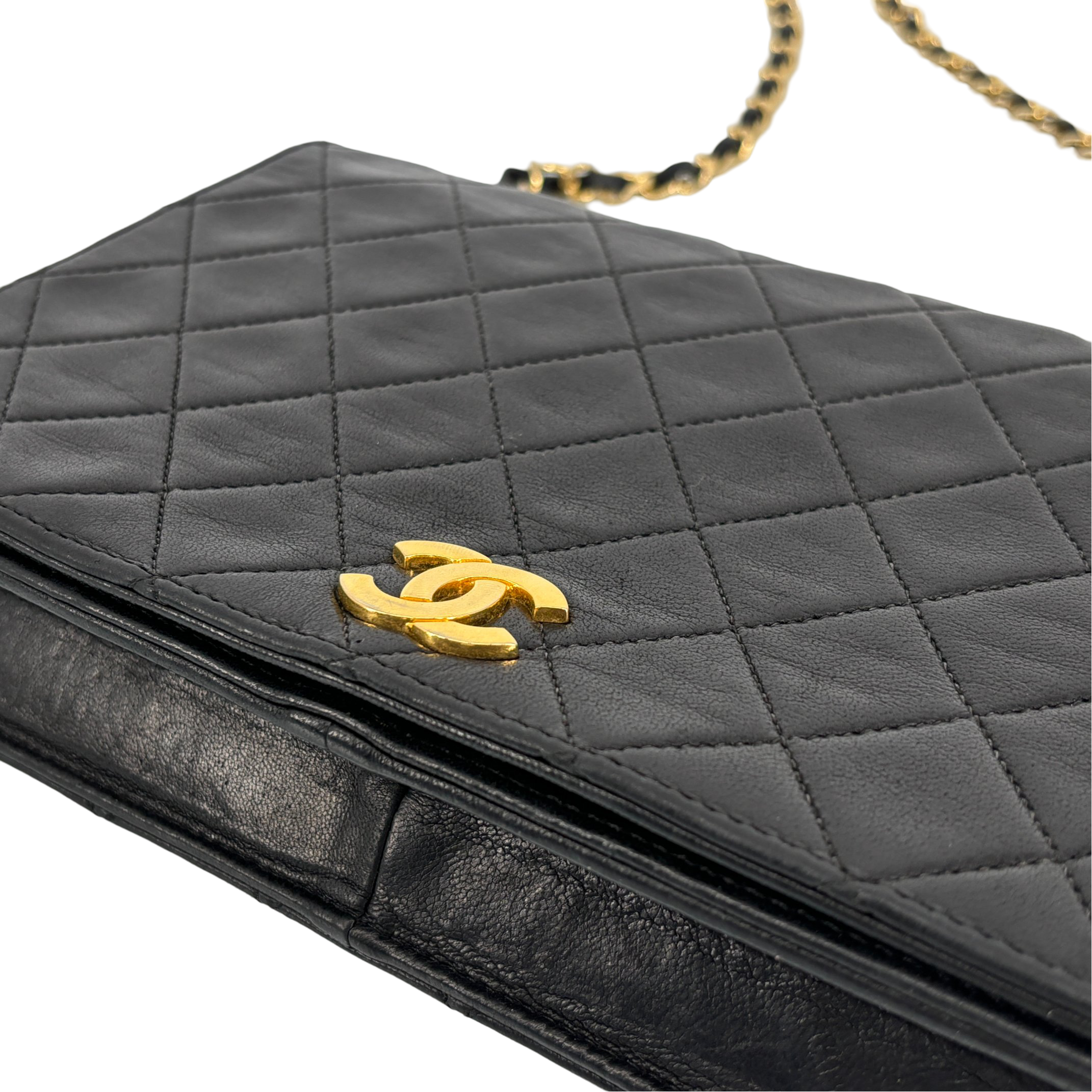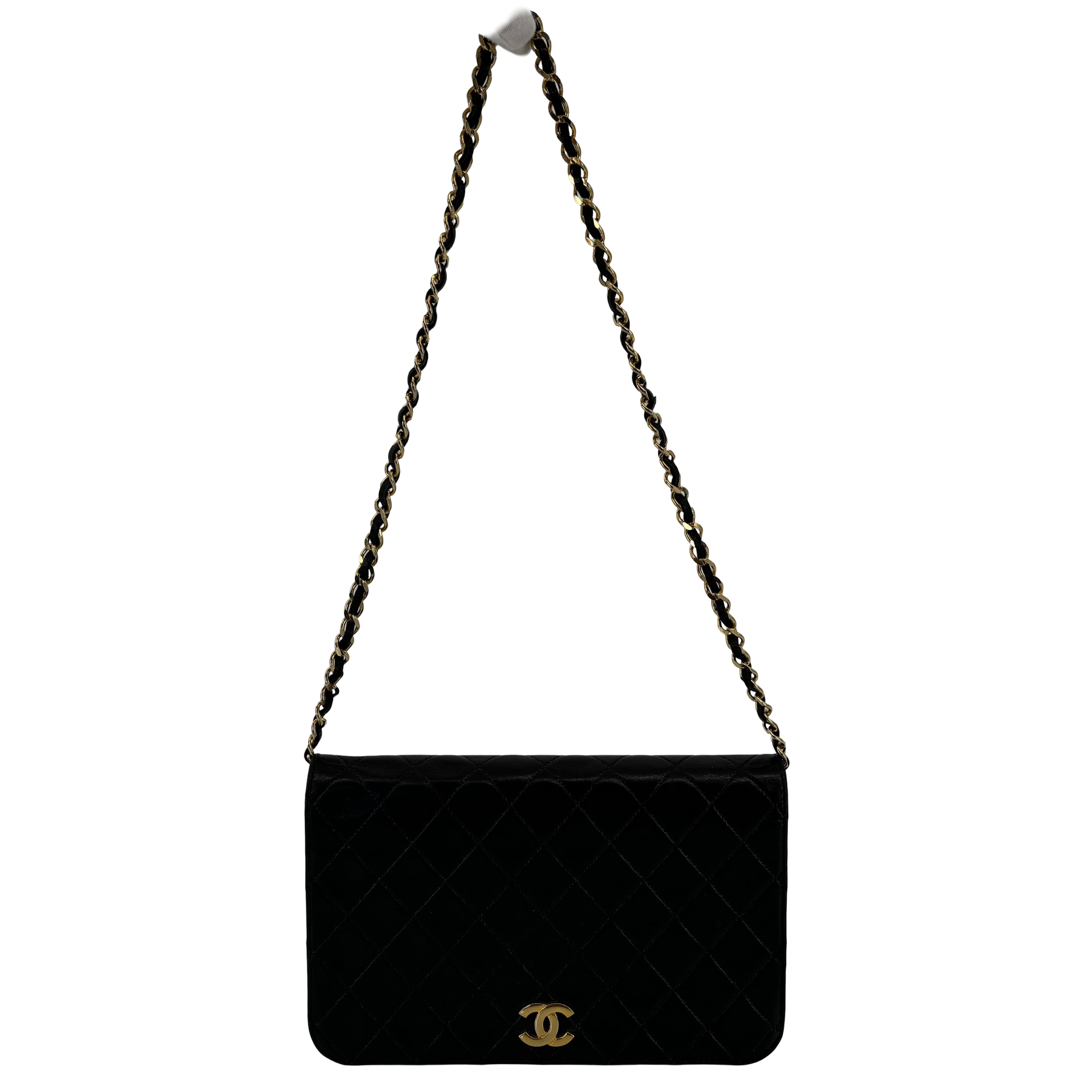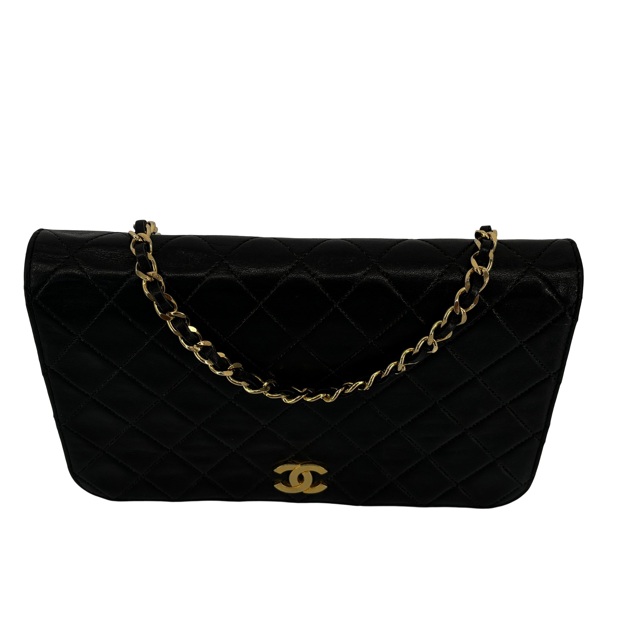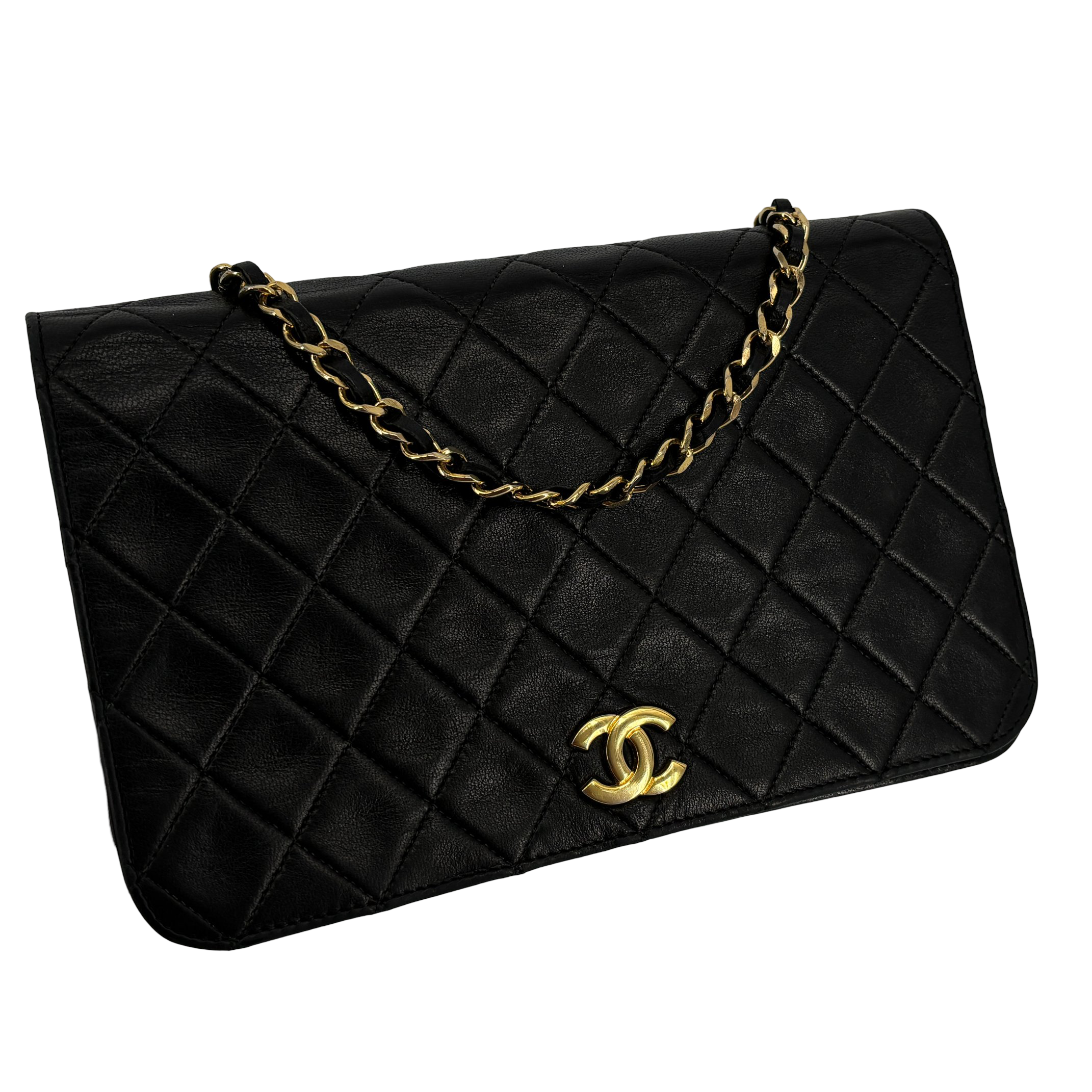 - Chanel Full Flap Bag Push-Lock Black Matelassé Leather