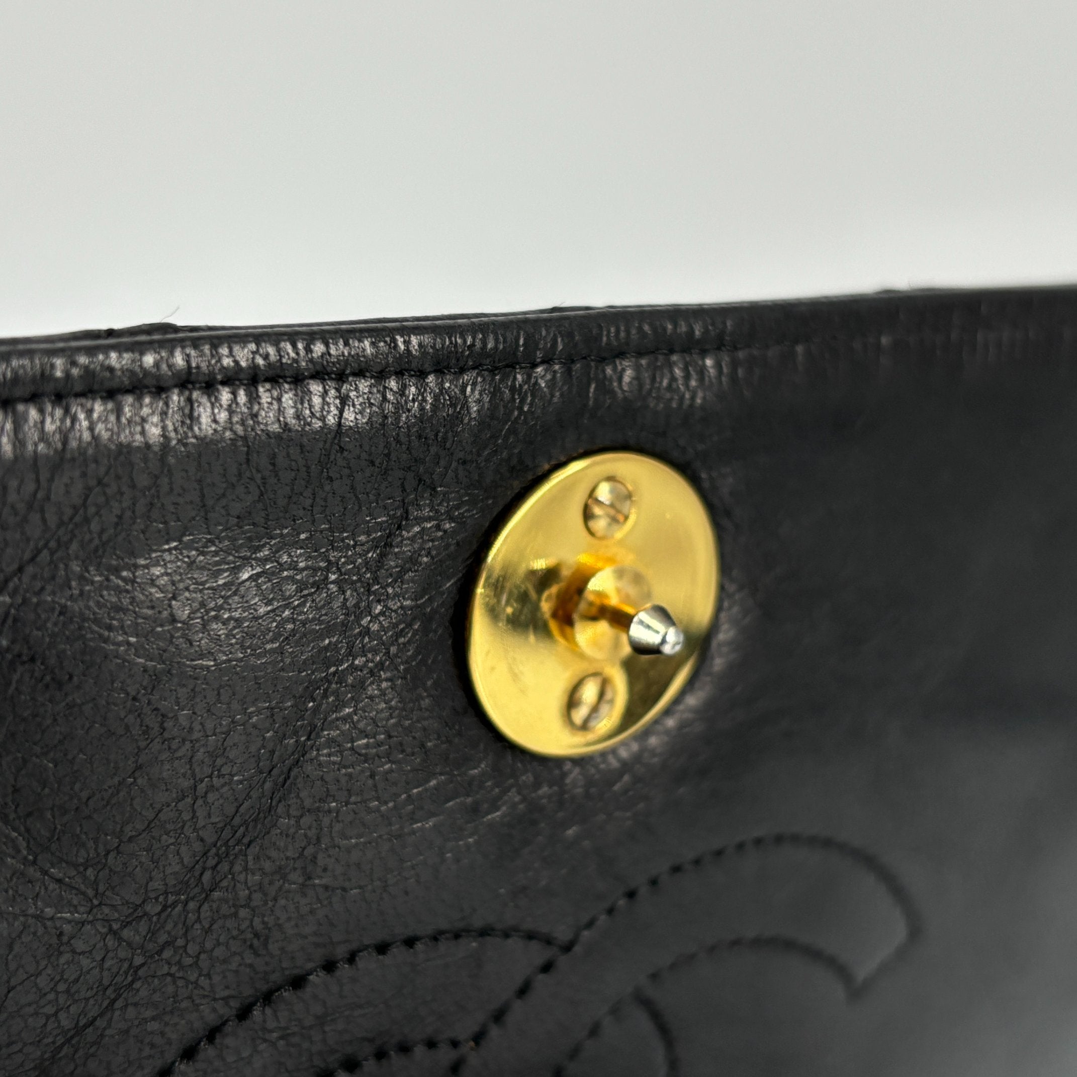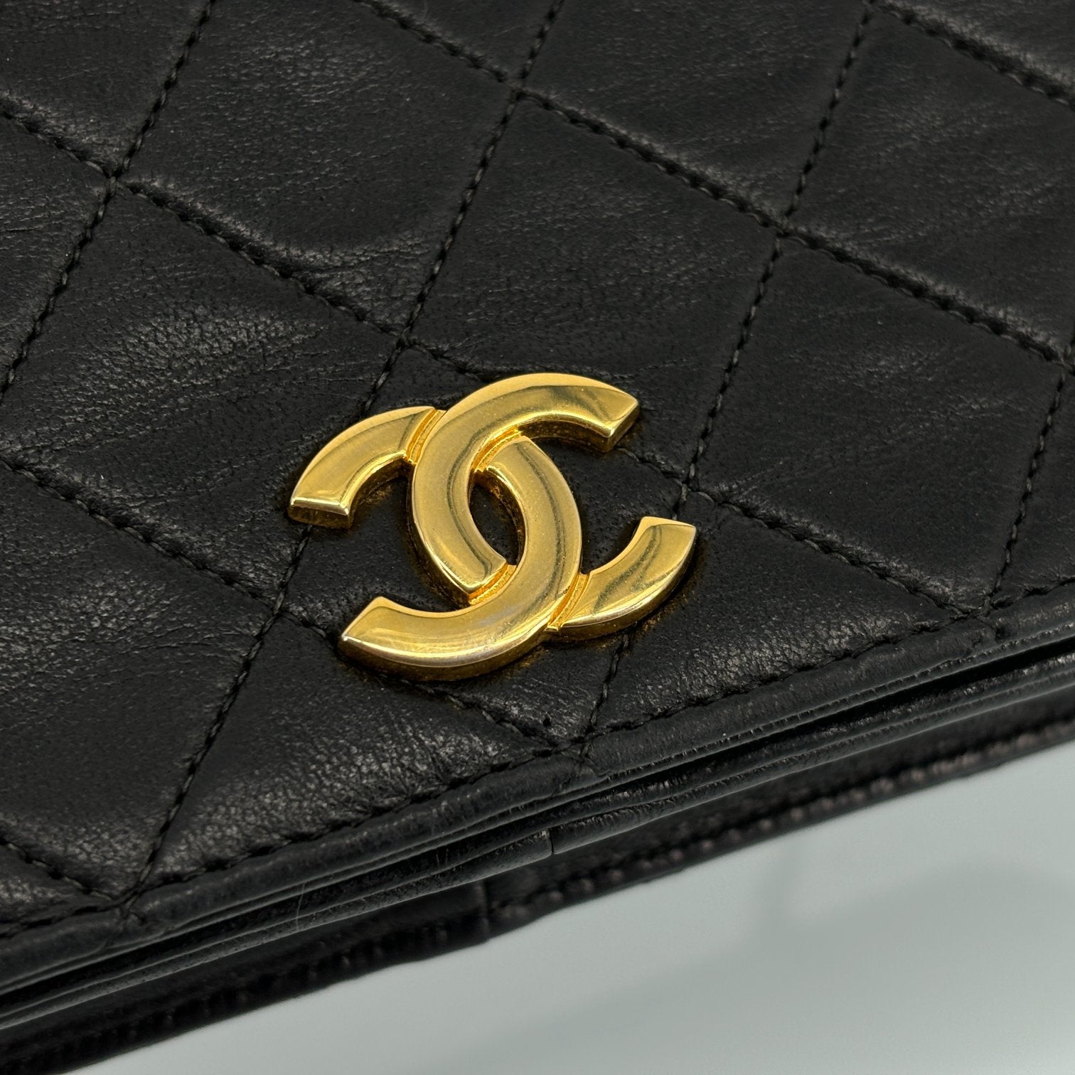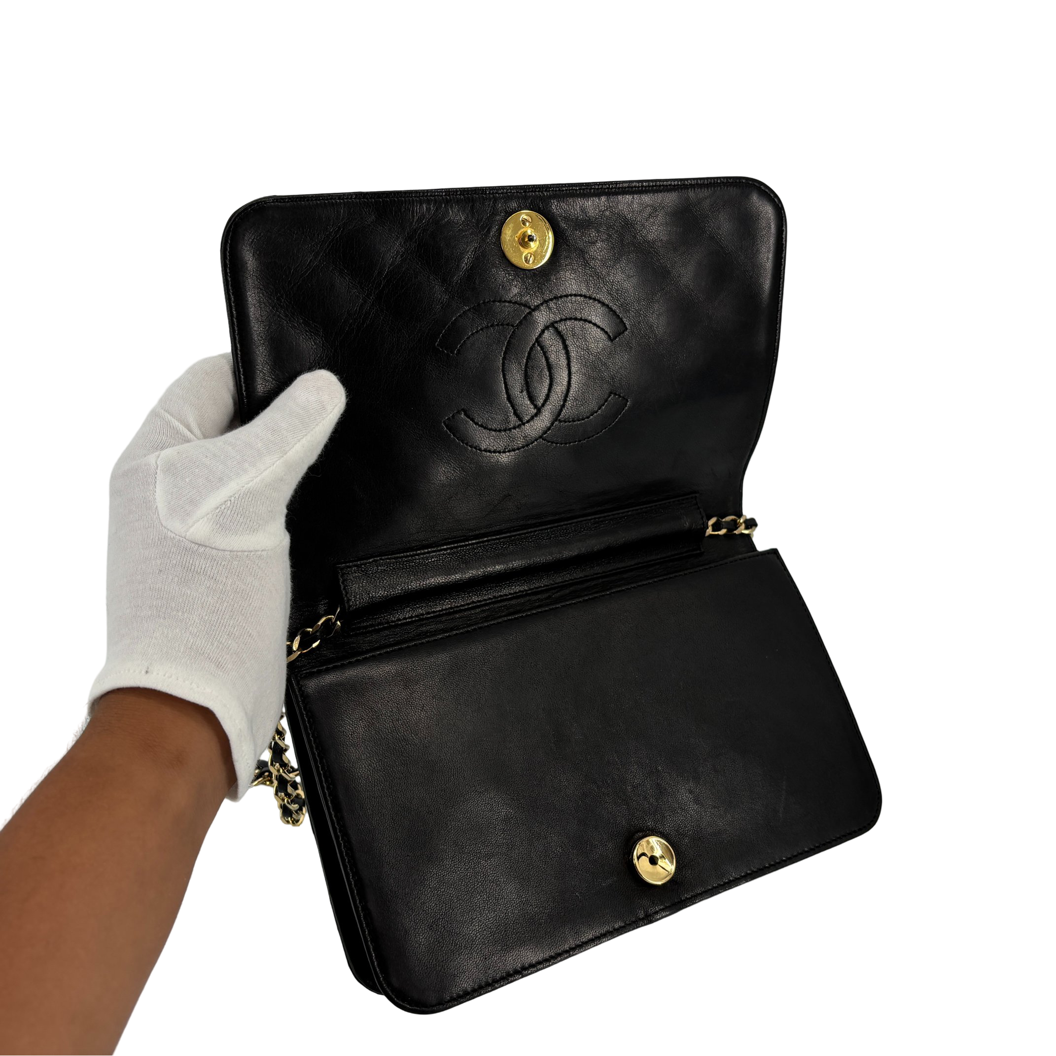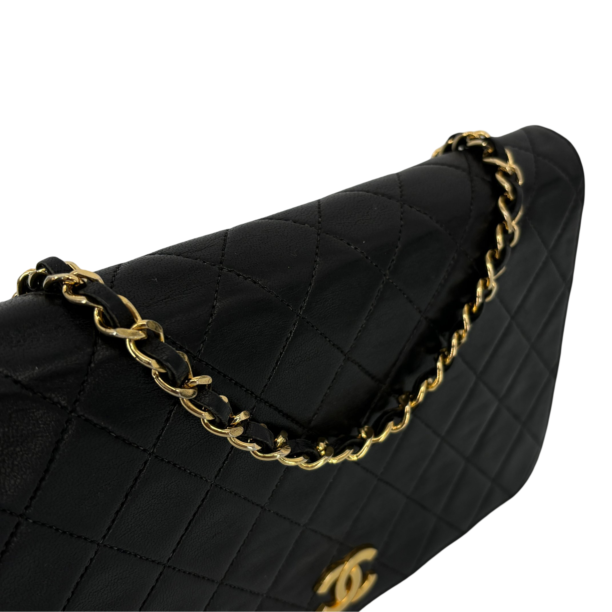- Chanel Full Flap Bag Push-Lock Black Matelassé Leather