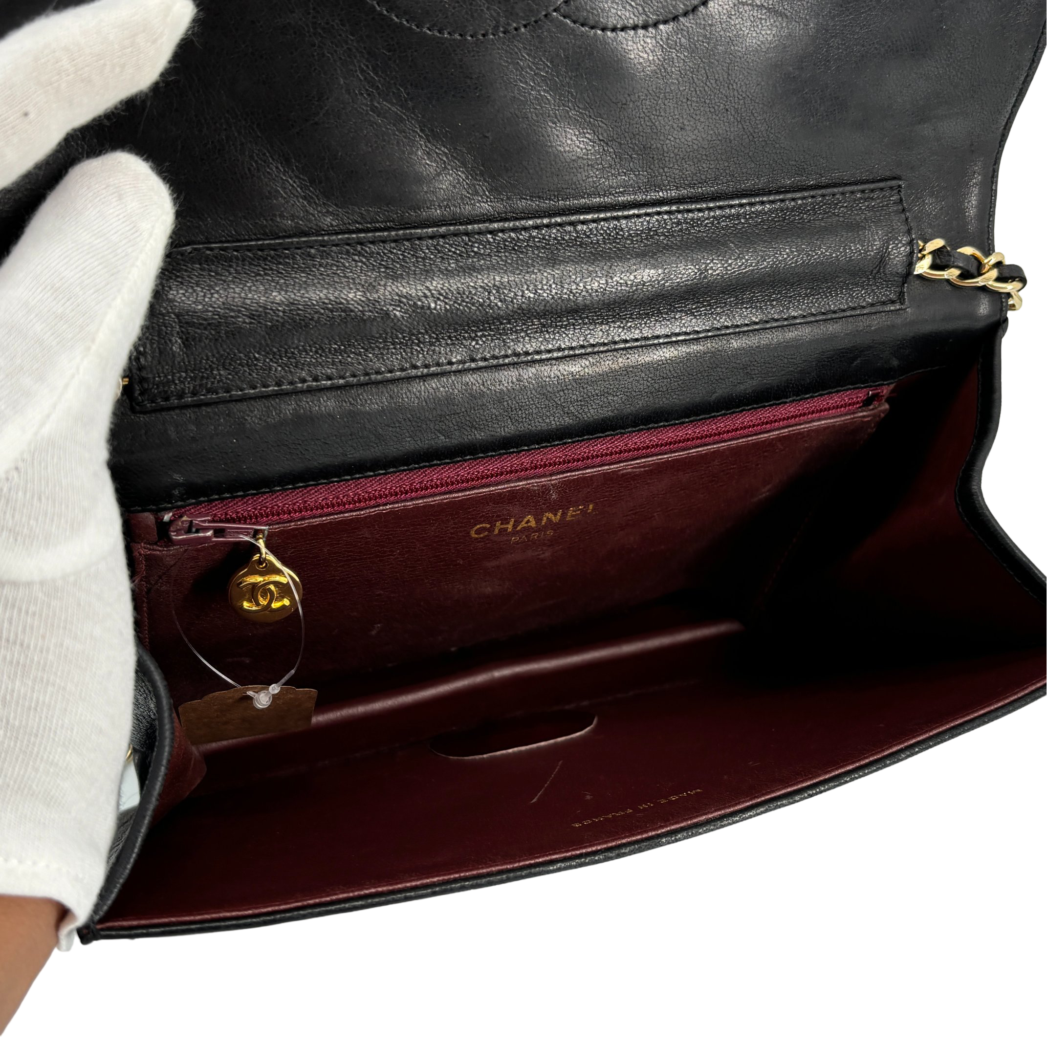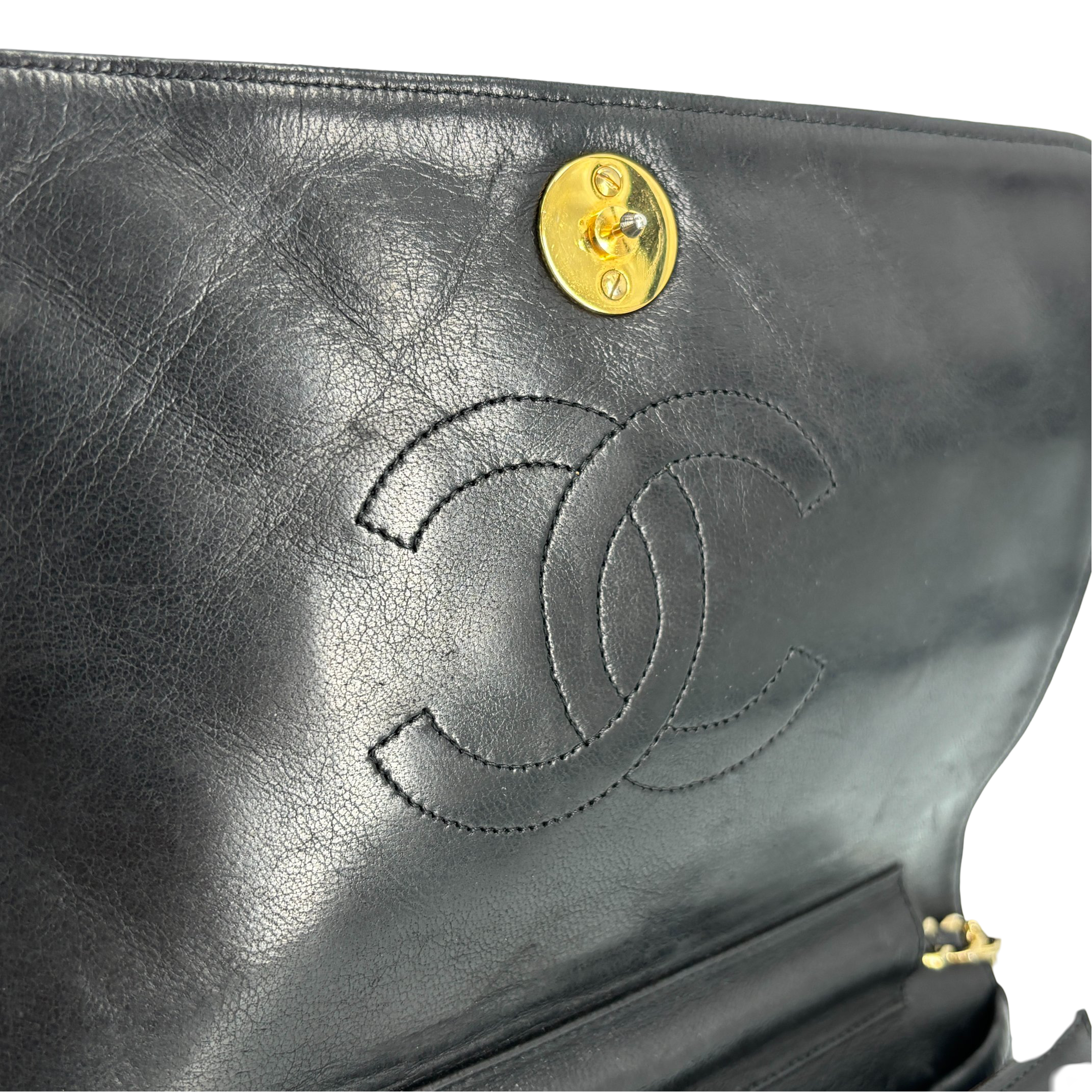 Chanel Full Flap Bag Push-Lock Black Matelassé Leather incl. Box