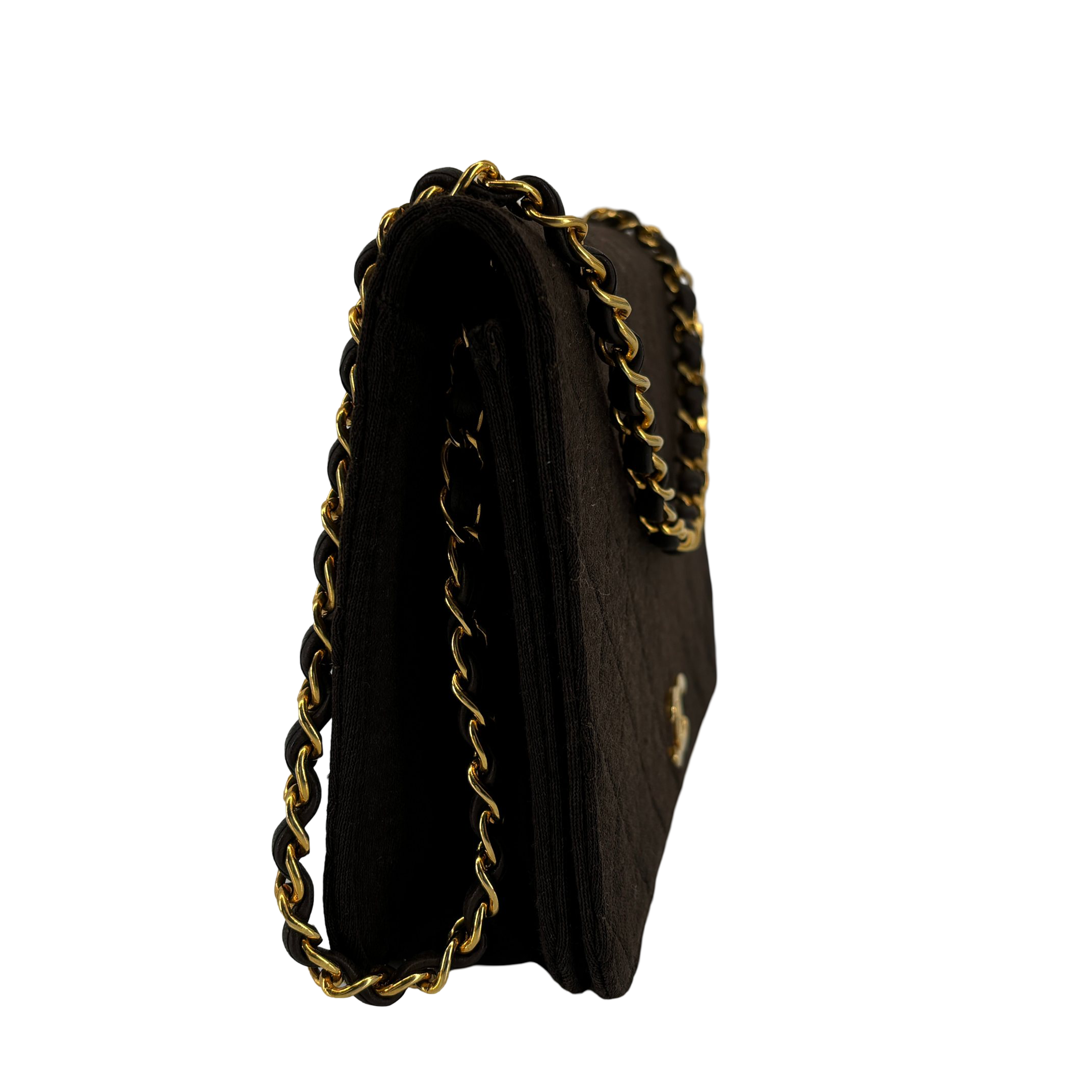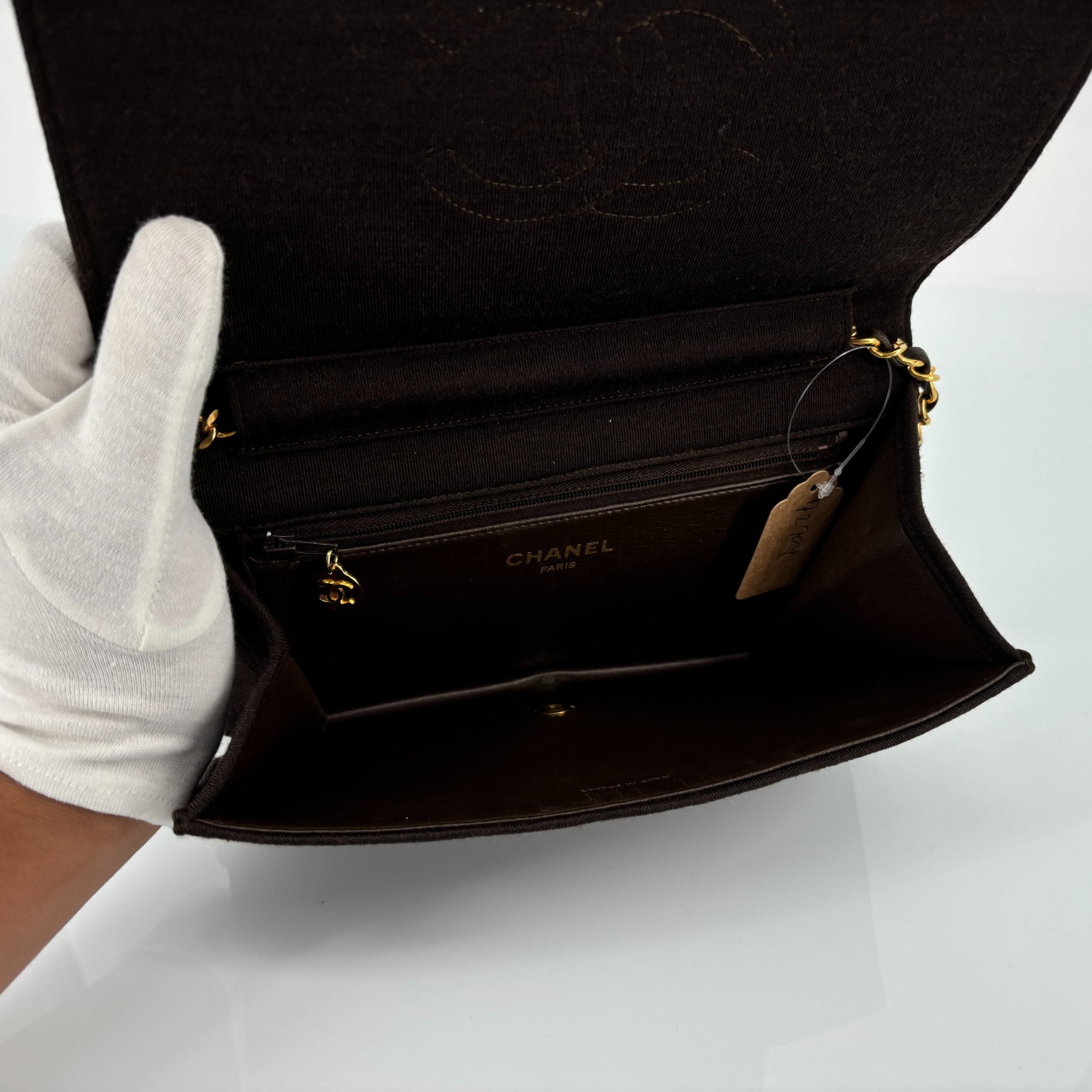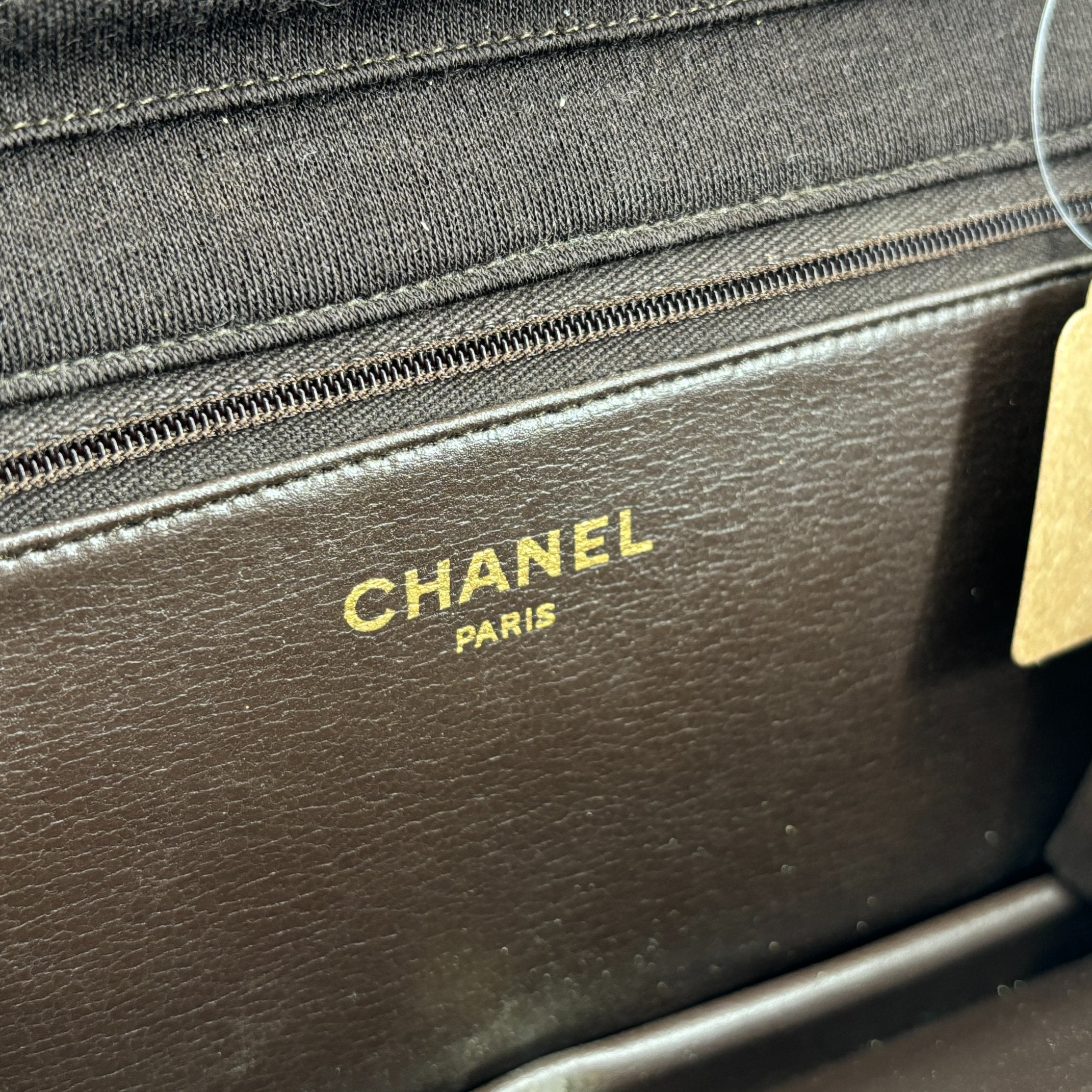 Chanel Full Flap Bag Push-Lock Brown Matelassé Jersey