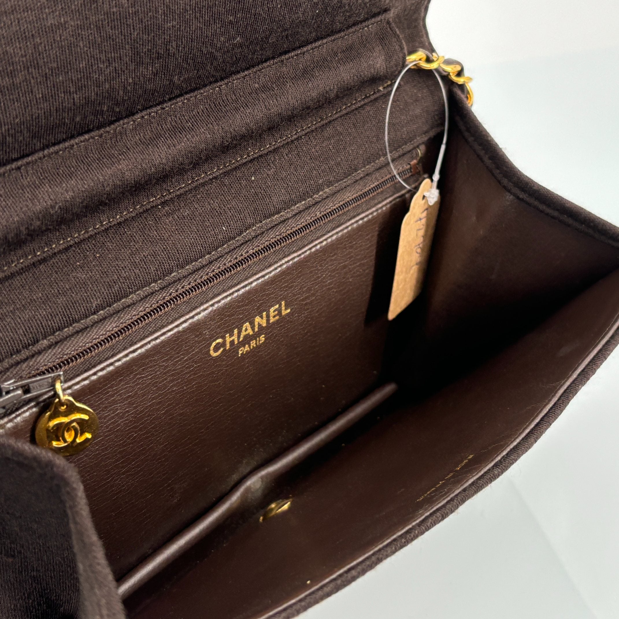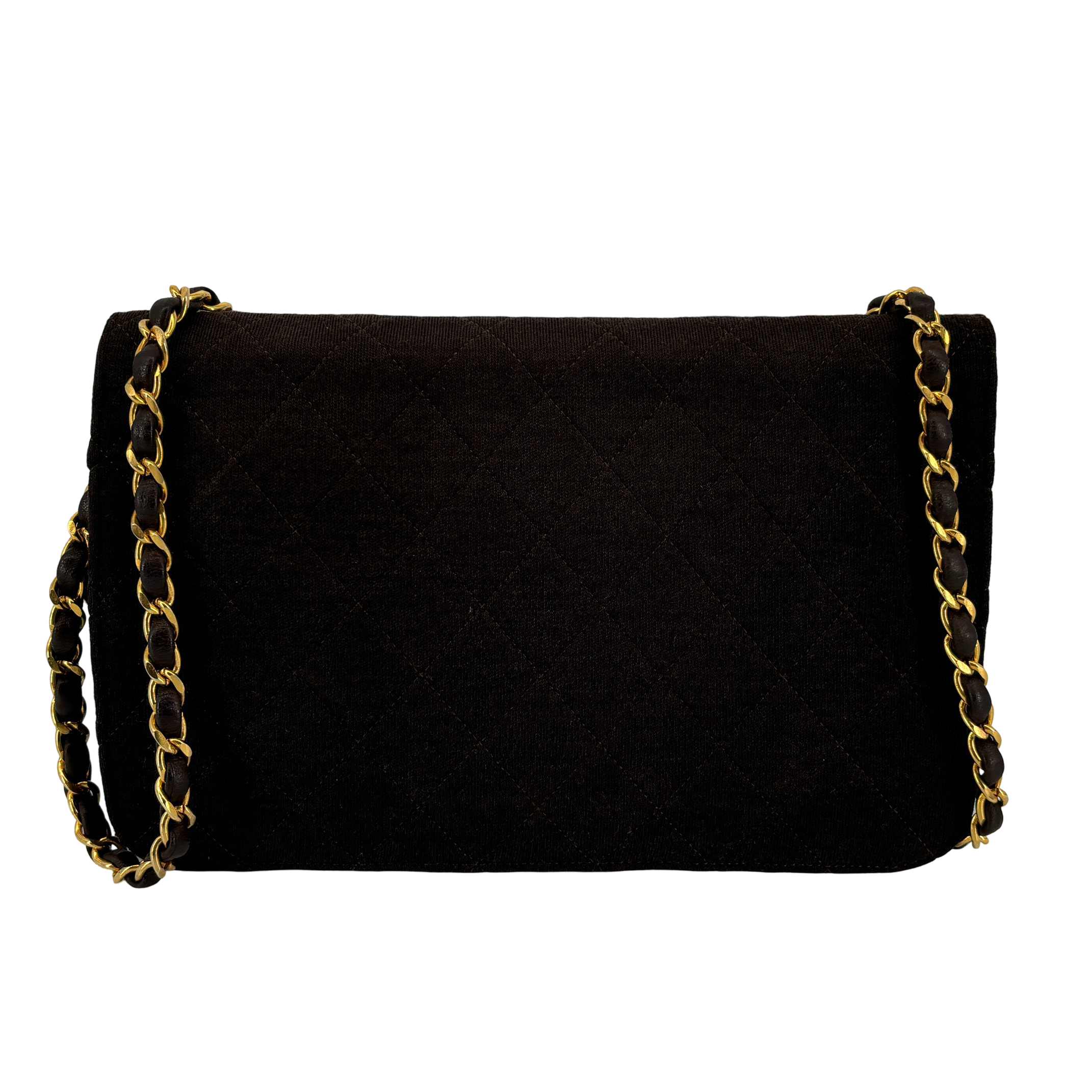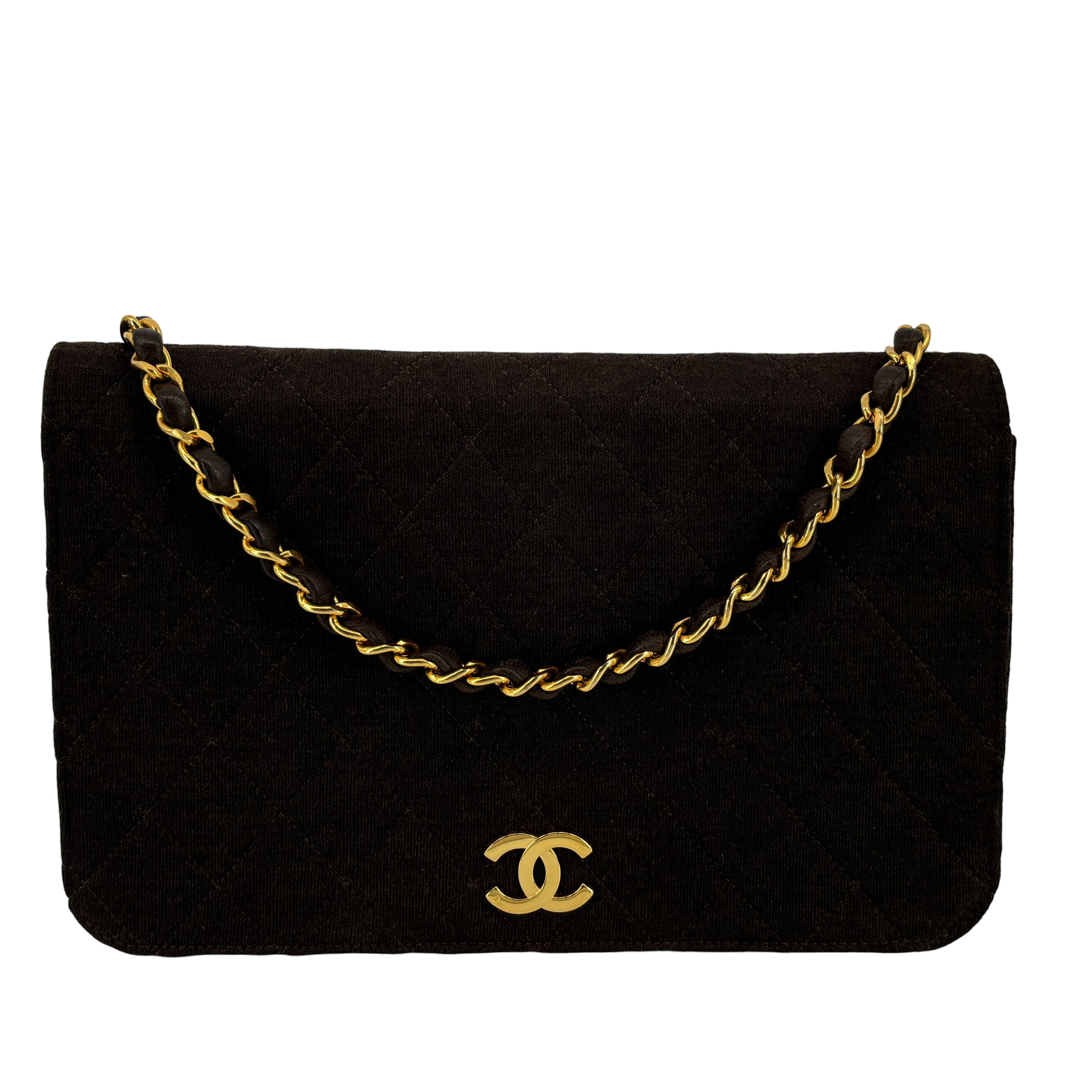- Chanel Full Flap Bag Push-Lock Brown Matelassé Jersey