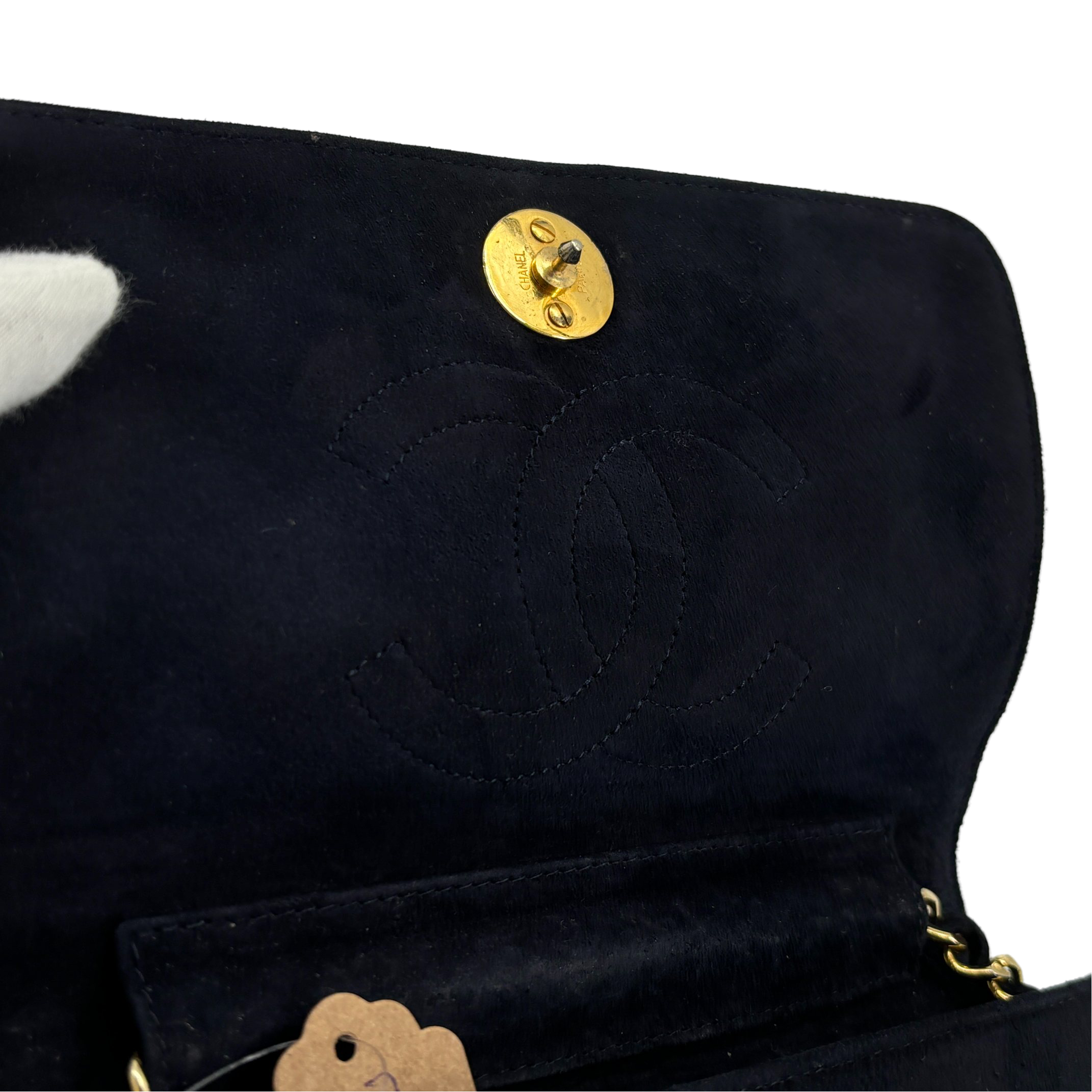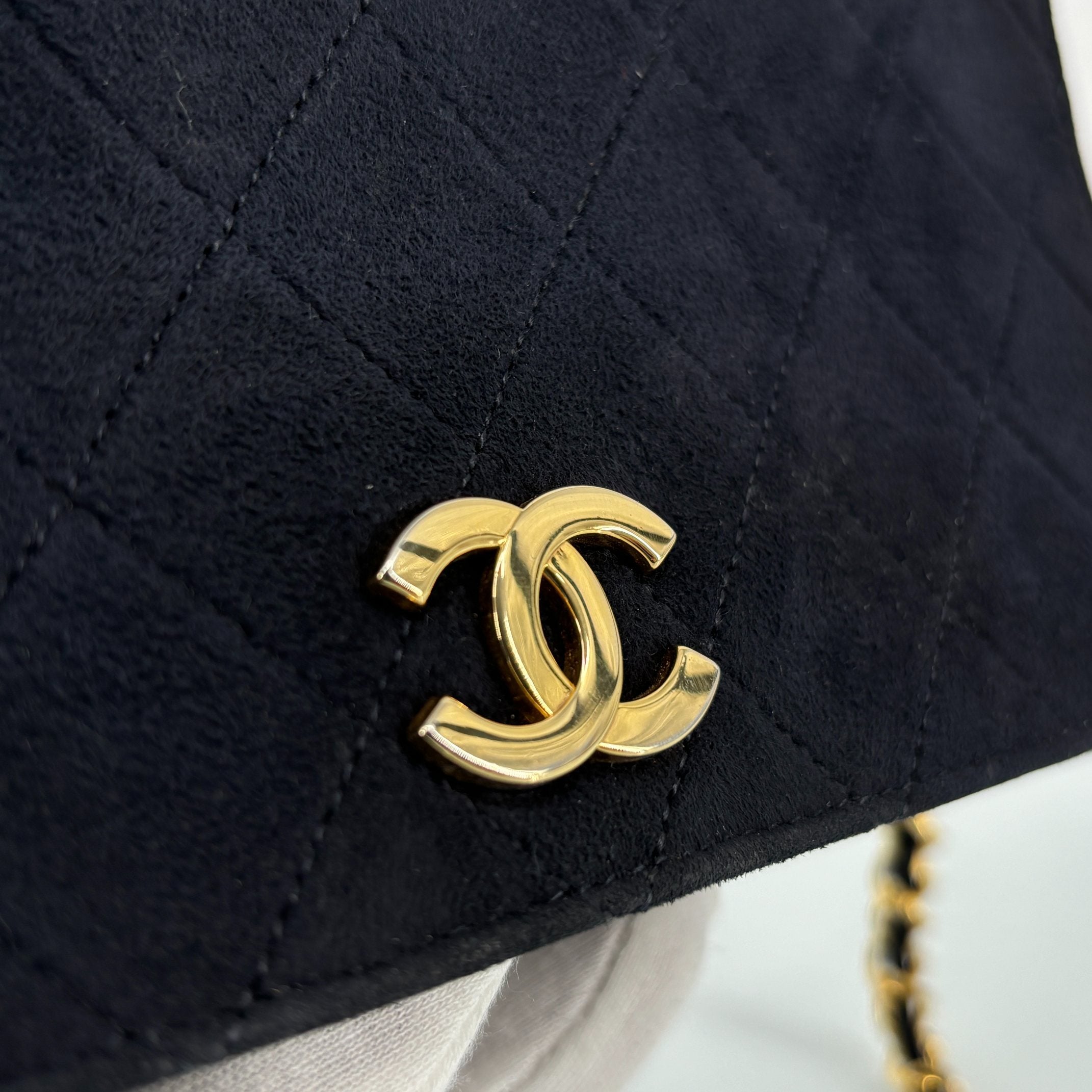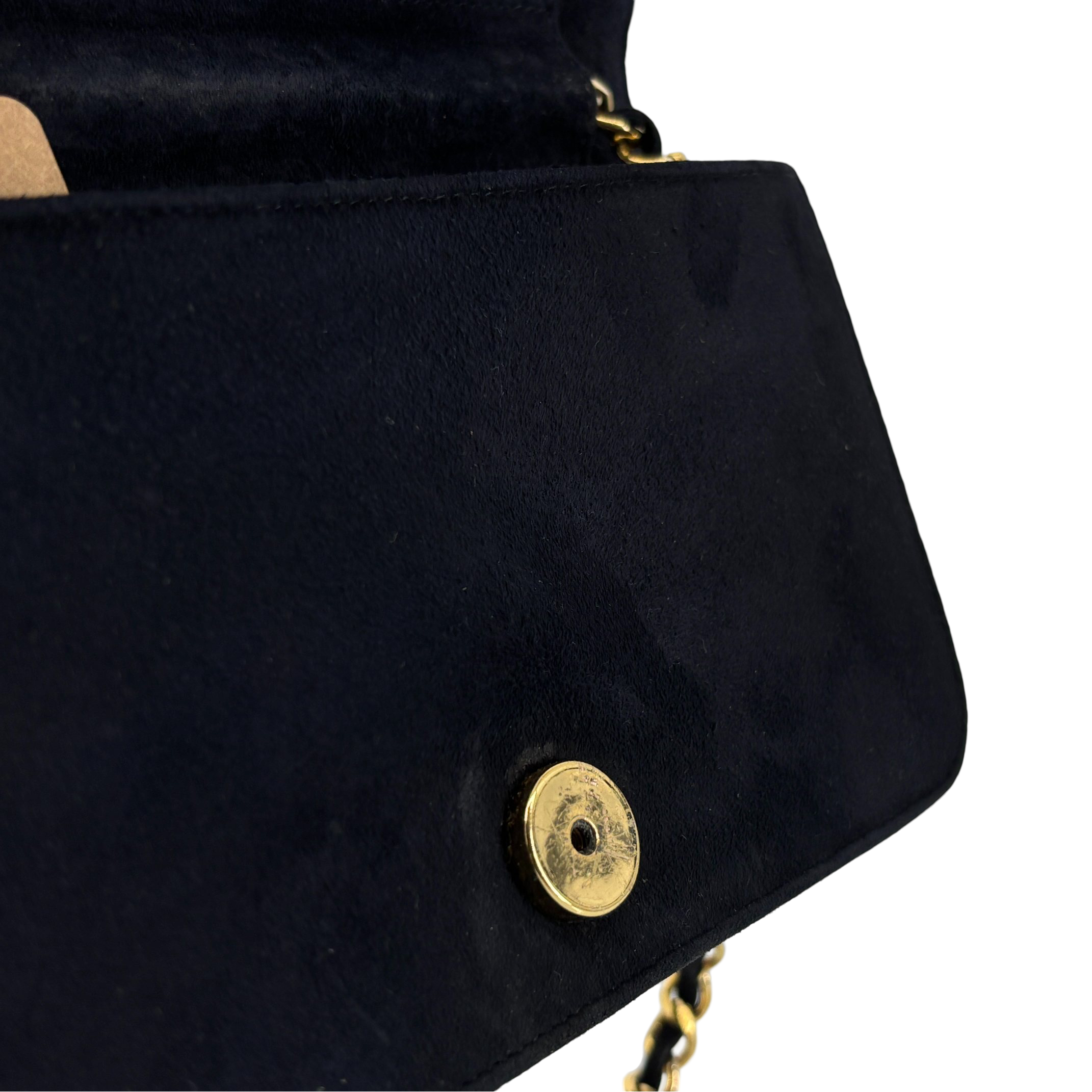 - Chanel Full Flap Bag Push-Lock Navy Matelassé Velvet