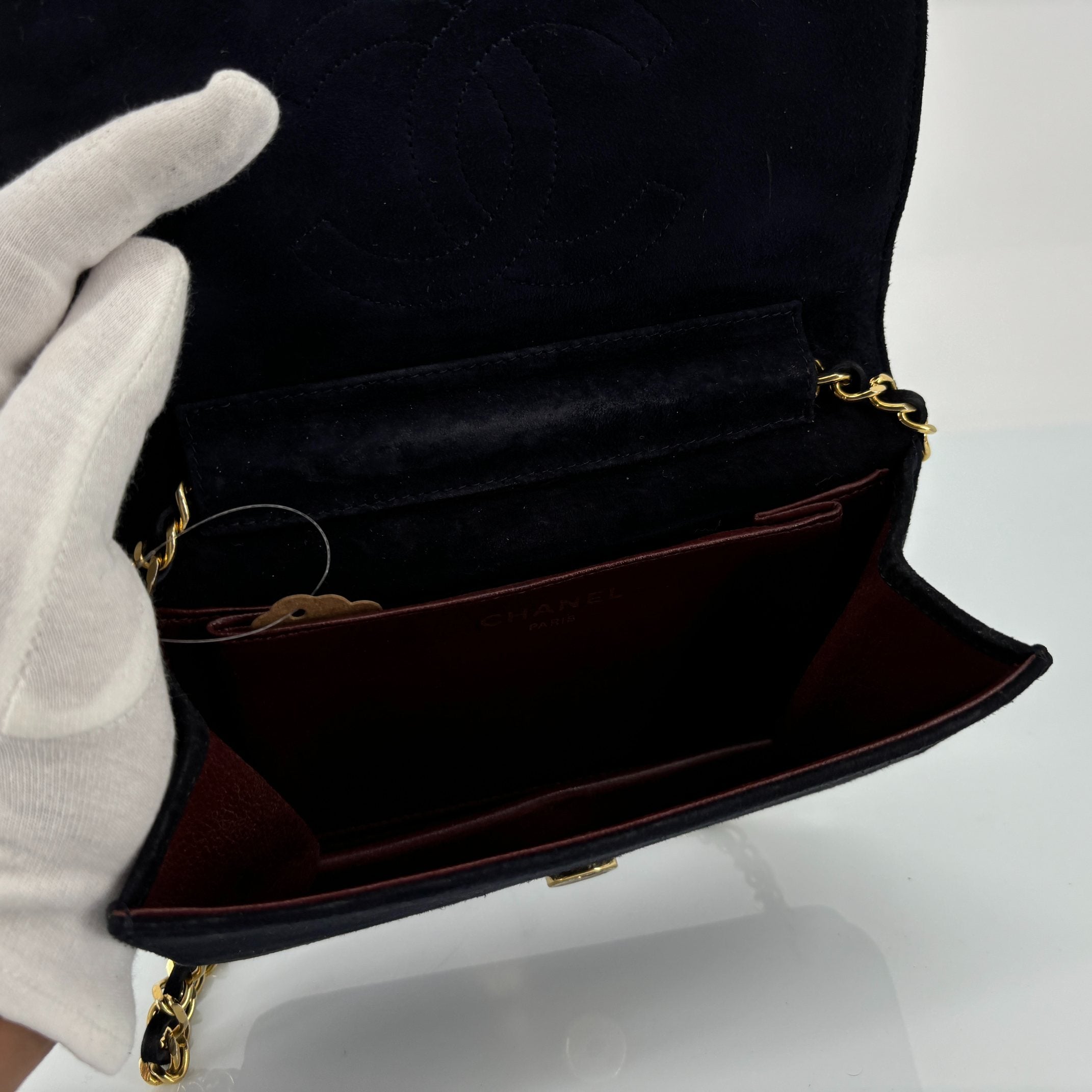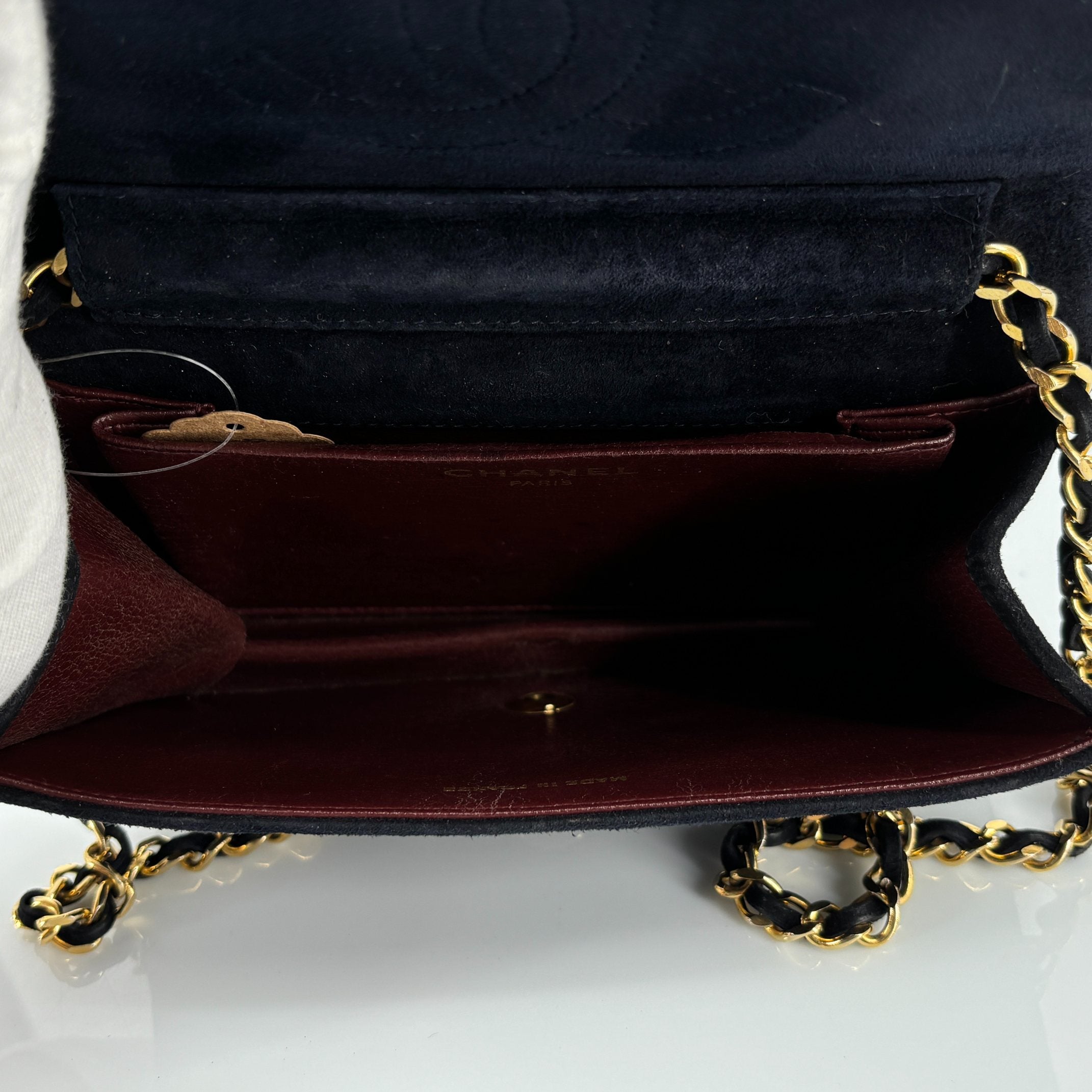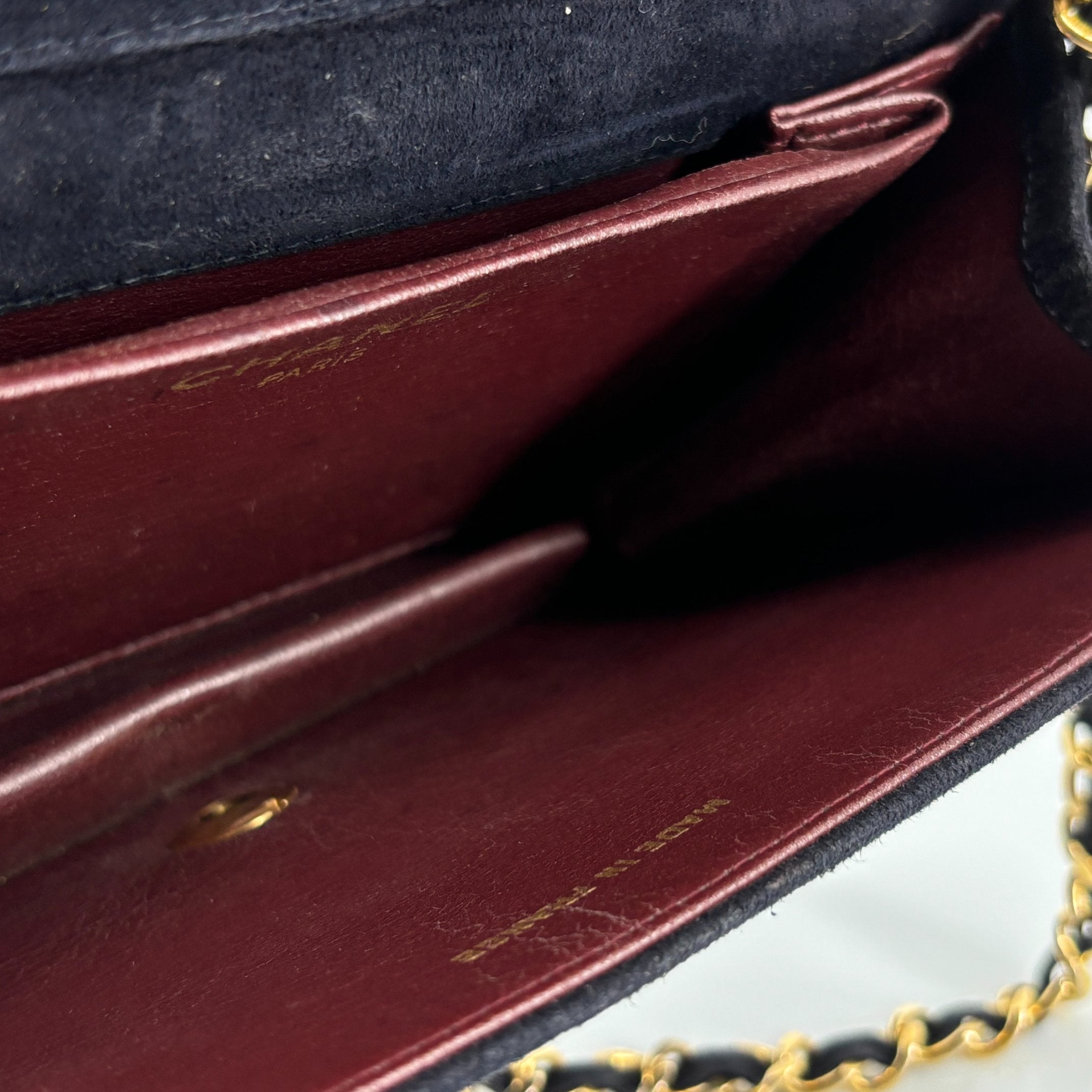 - Chanel Full Flap Bag Push-Lock Navy Matelassé Velvet