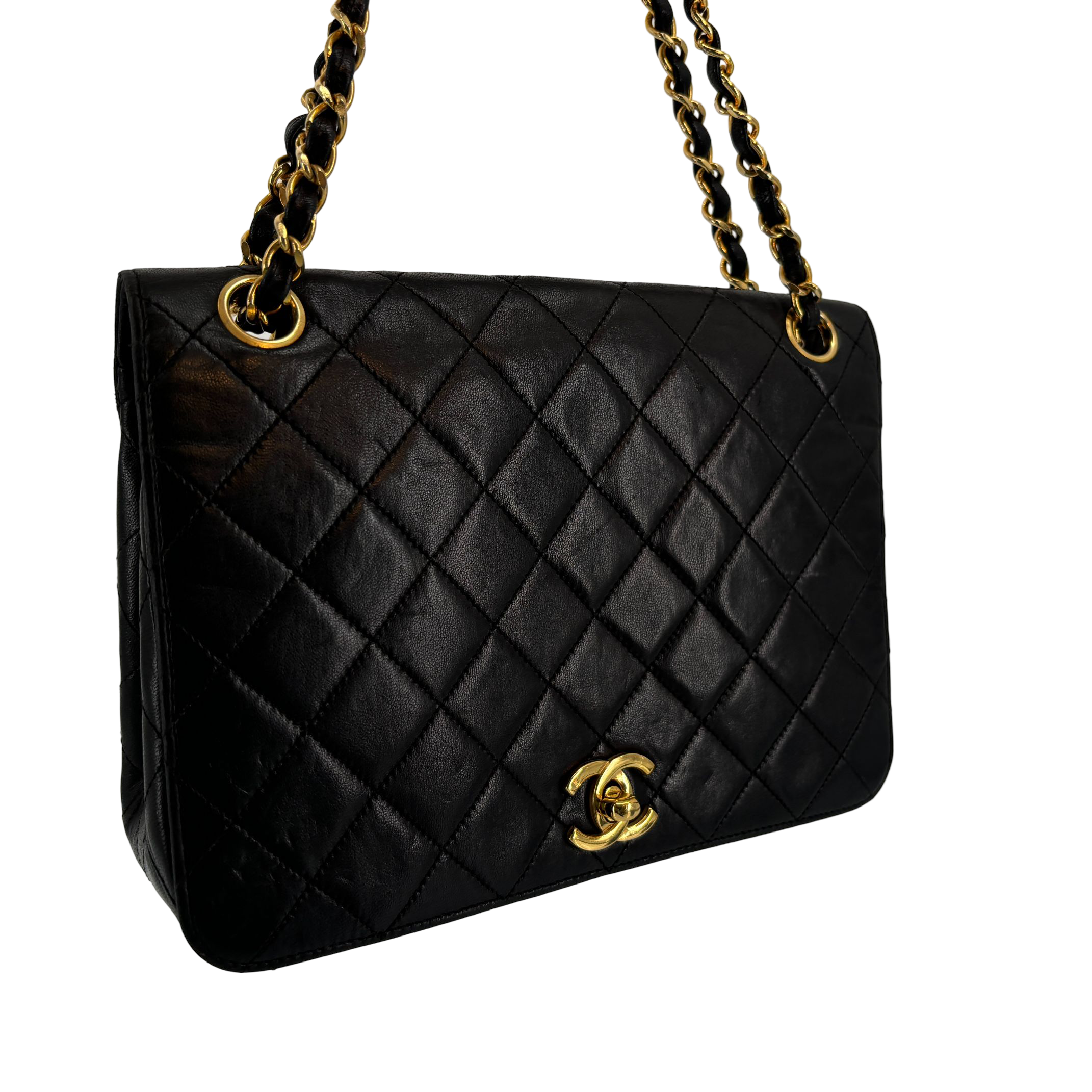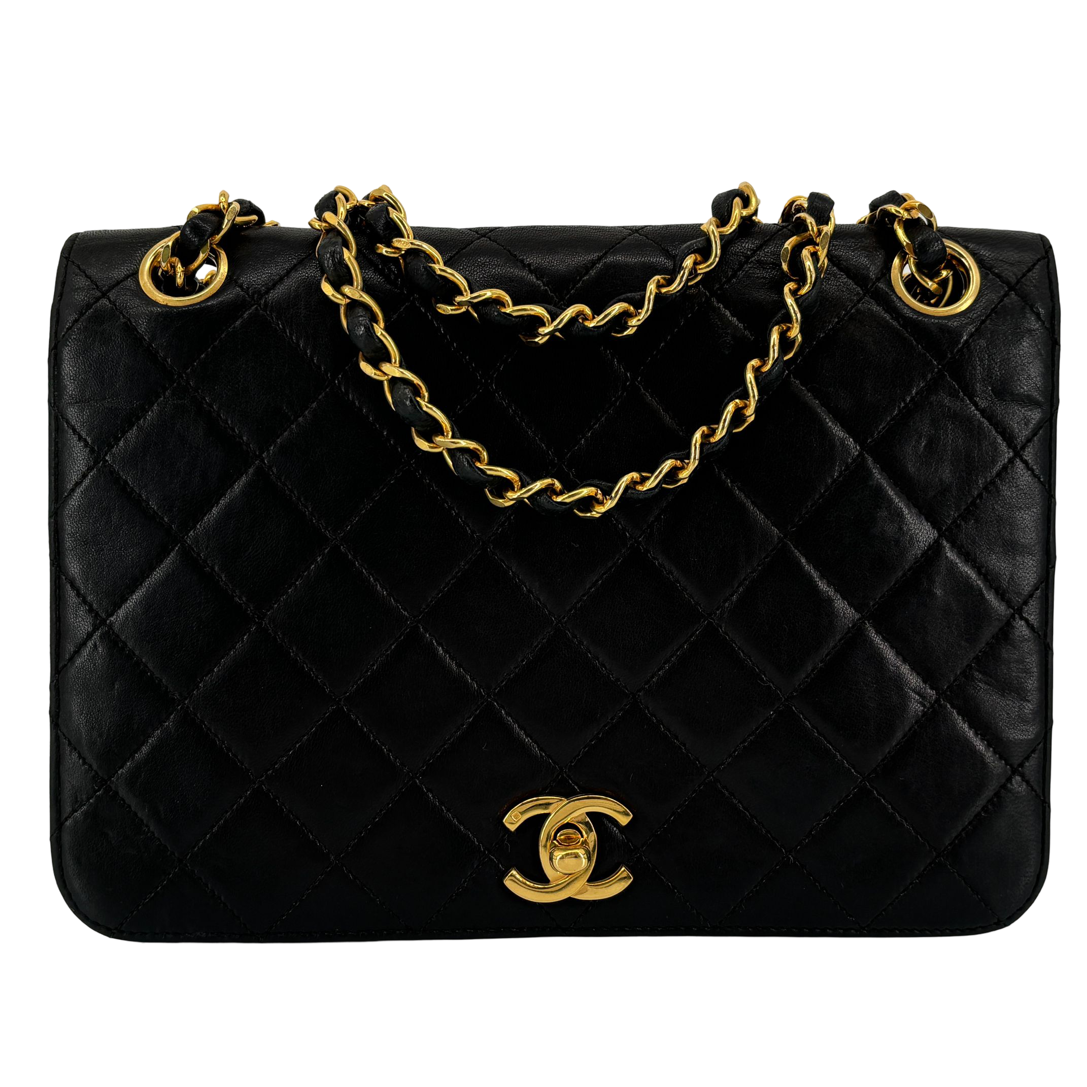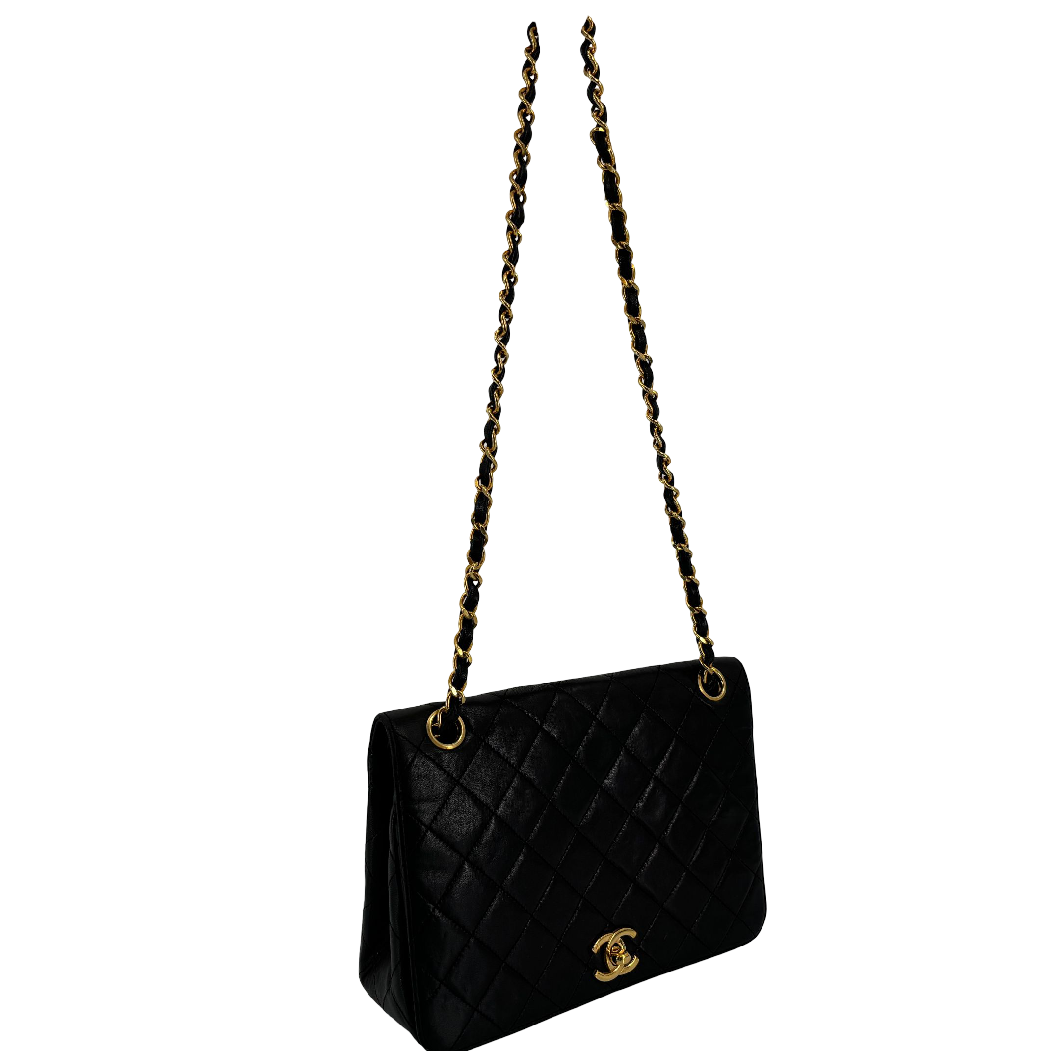 - Chanel Full Flap Bag Turn-Lock Black Matelassé Leather
