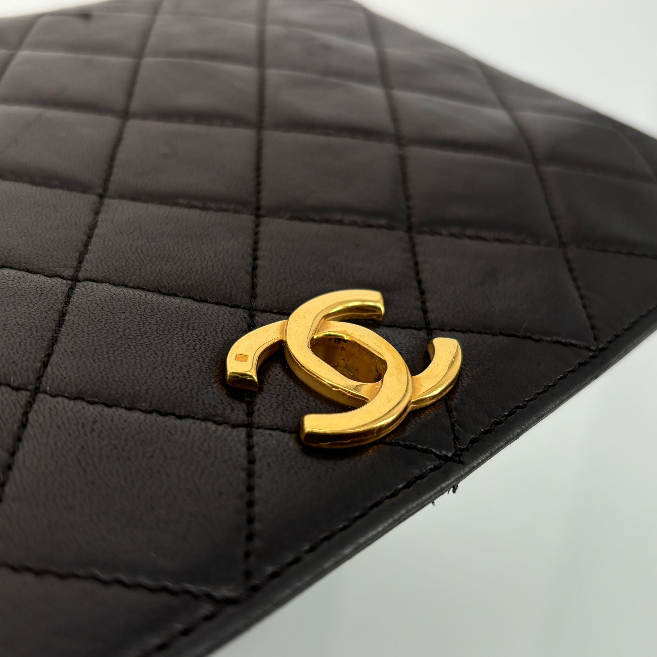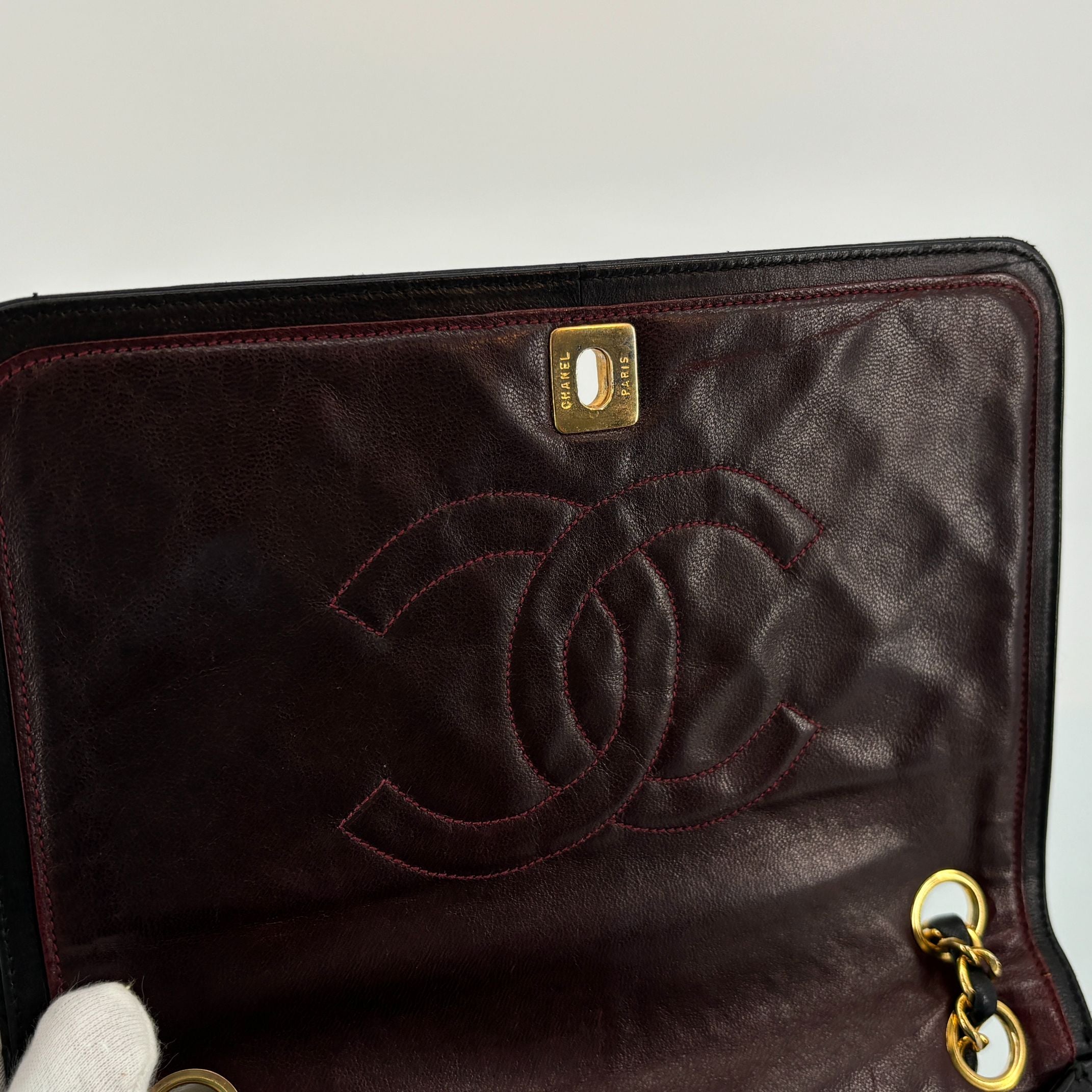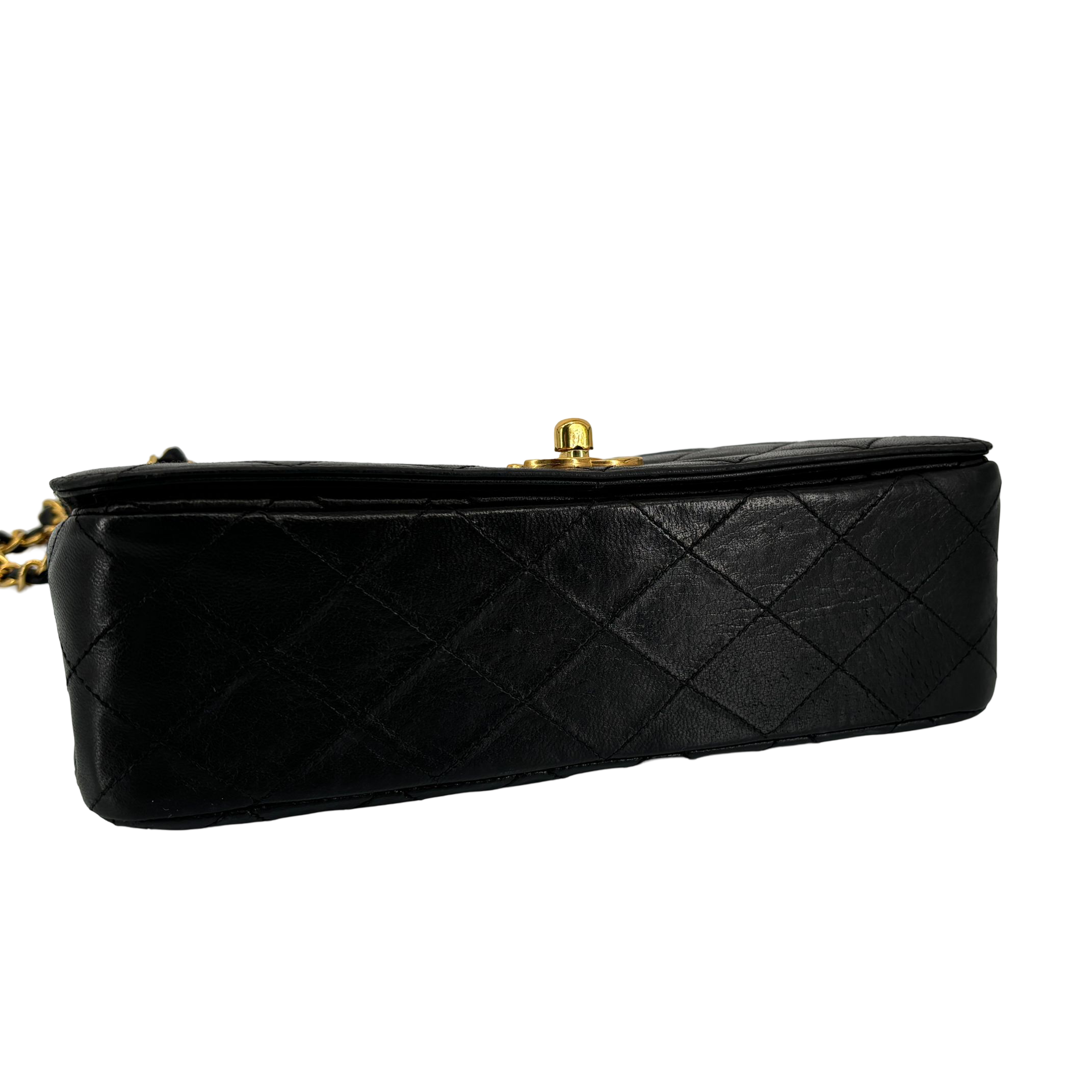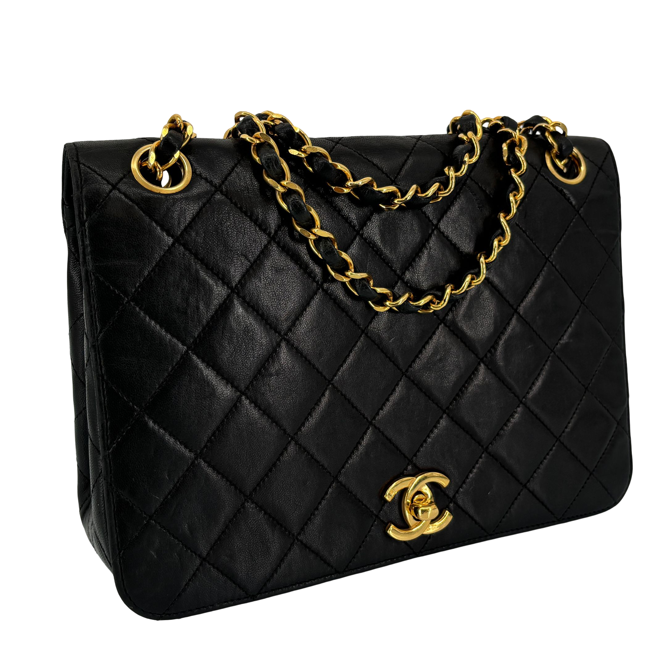 - Chanel Full Flap Bag Turn-Lock Black Matelassé Leather