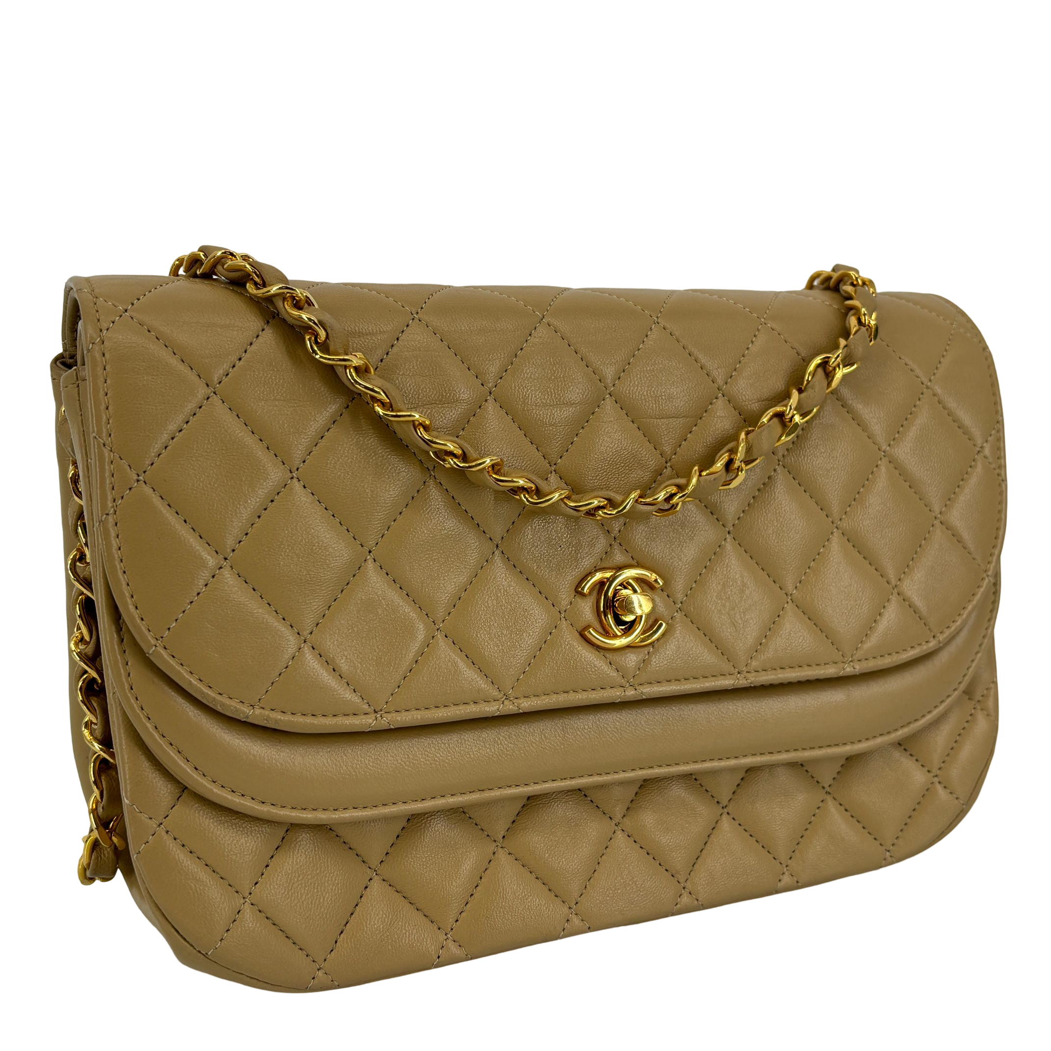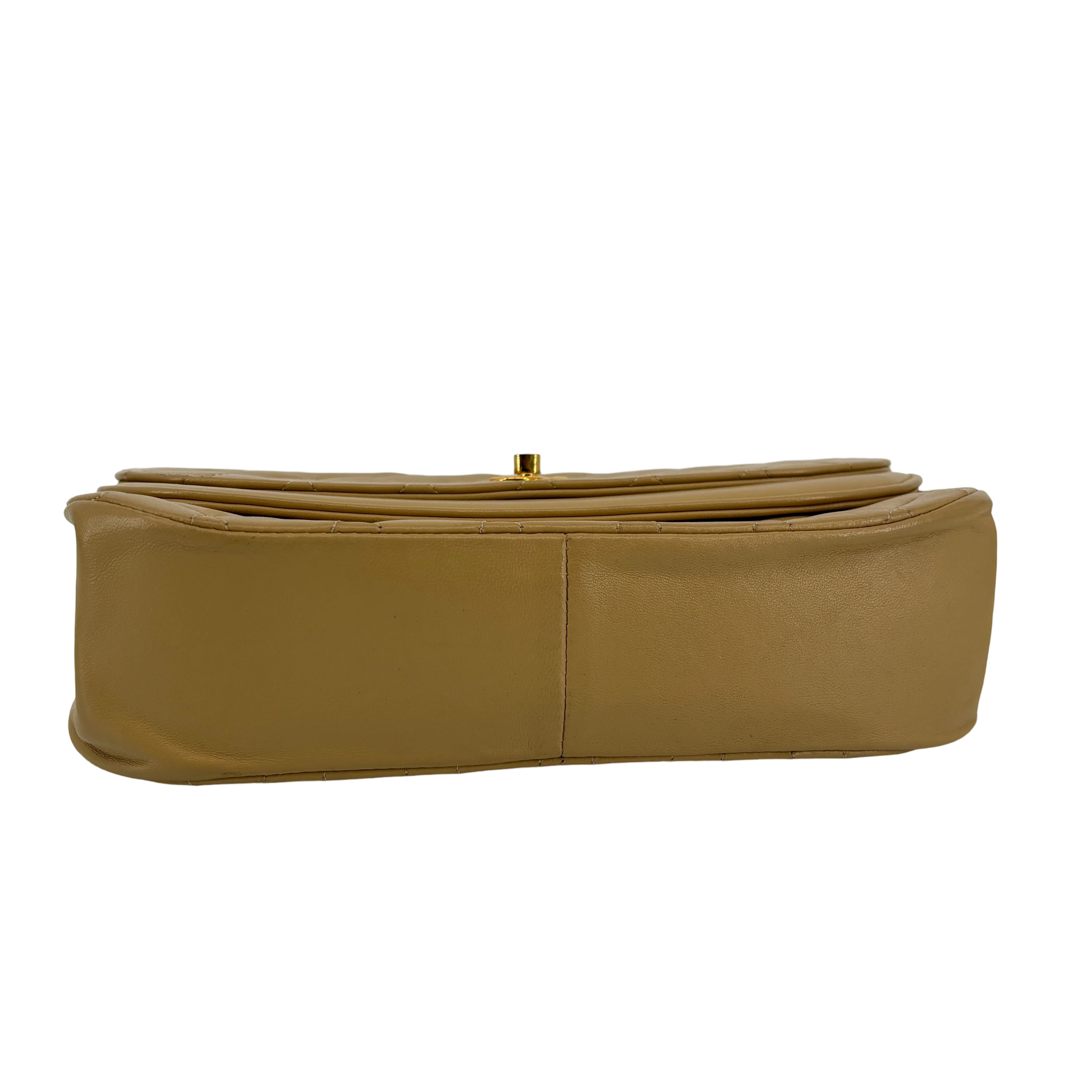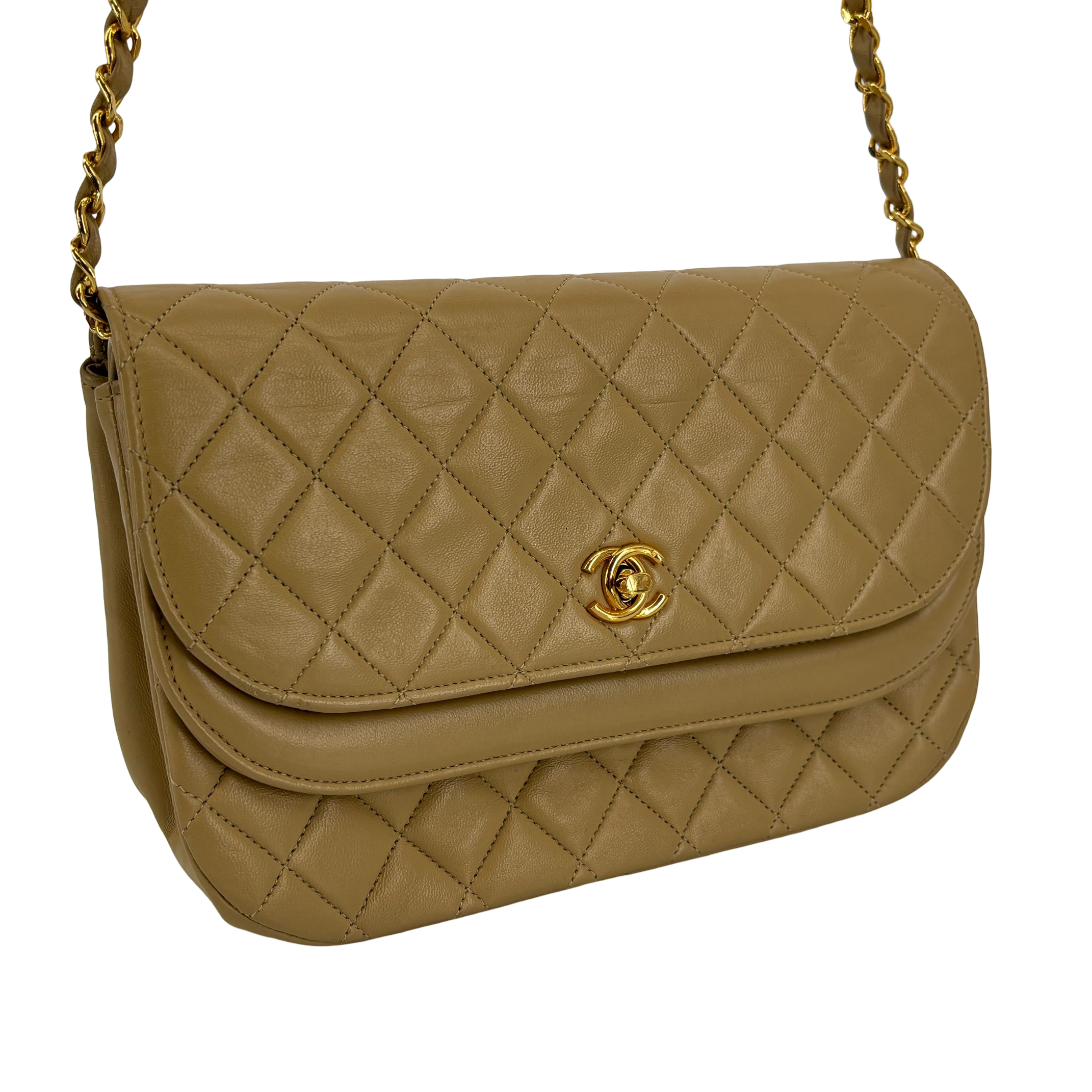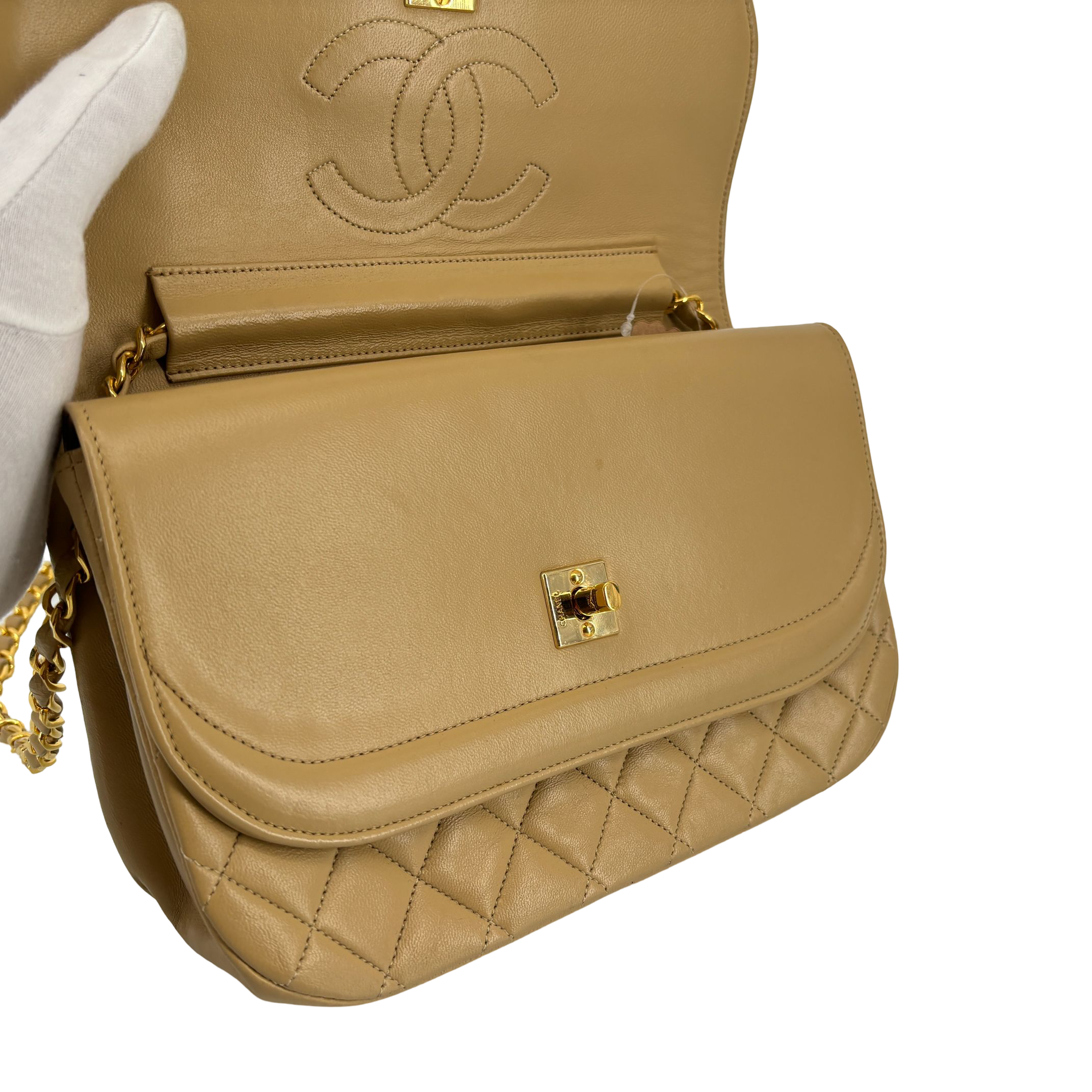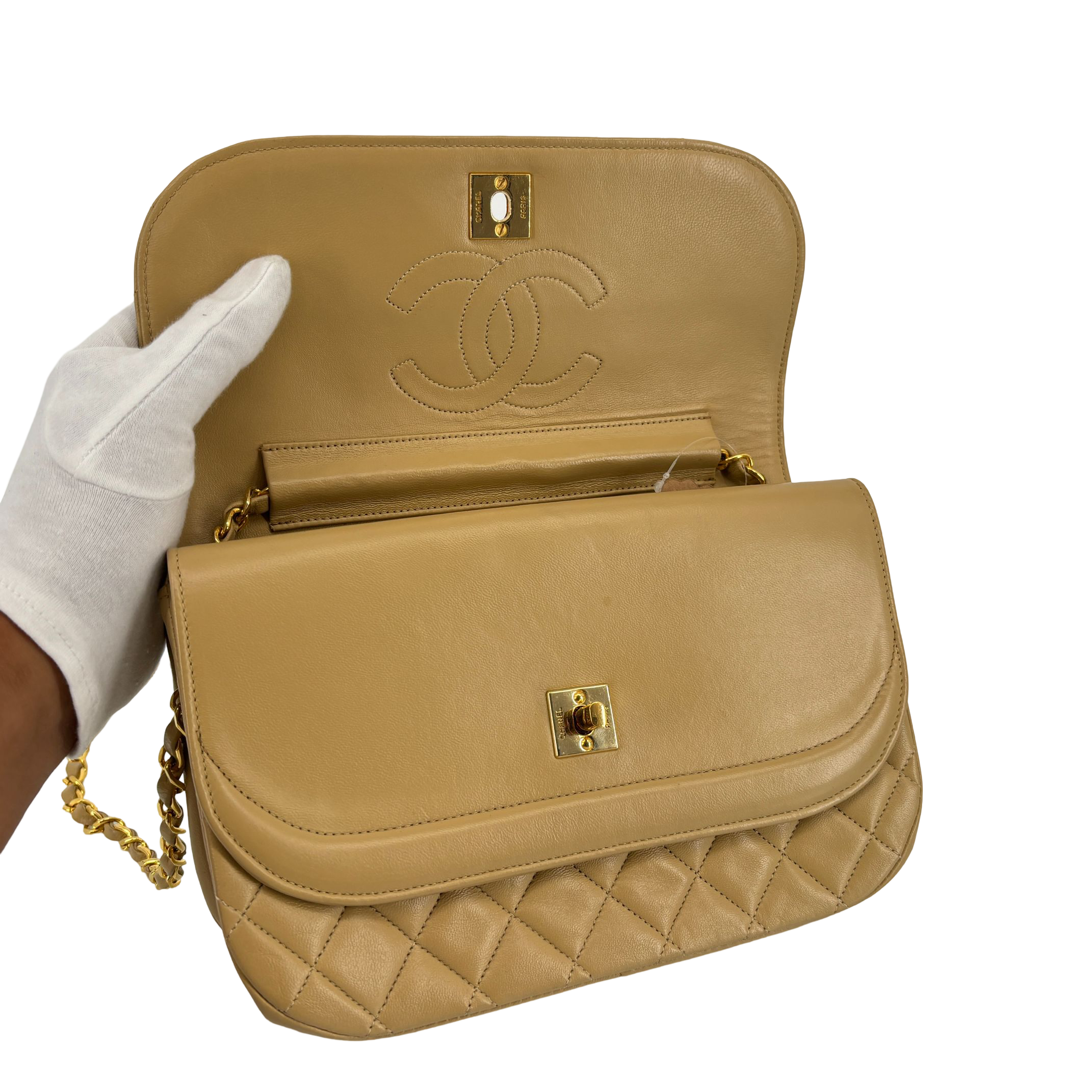 - Chanel Half-Moon Double Flap Bag Beige Matelassé Leather