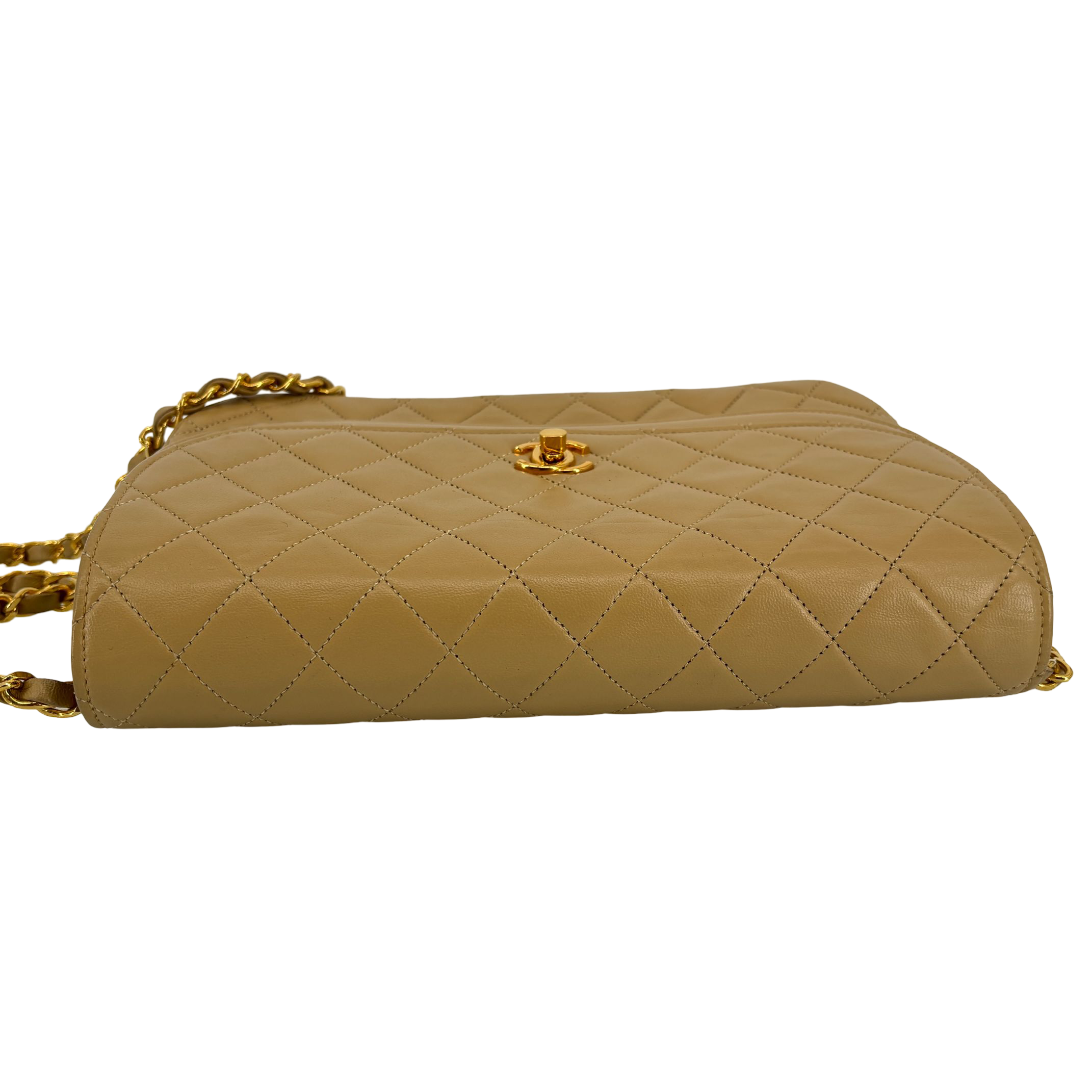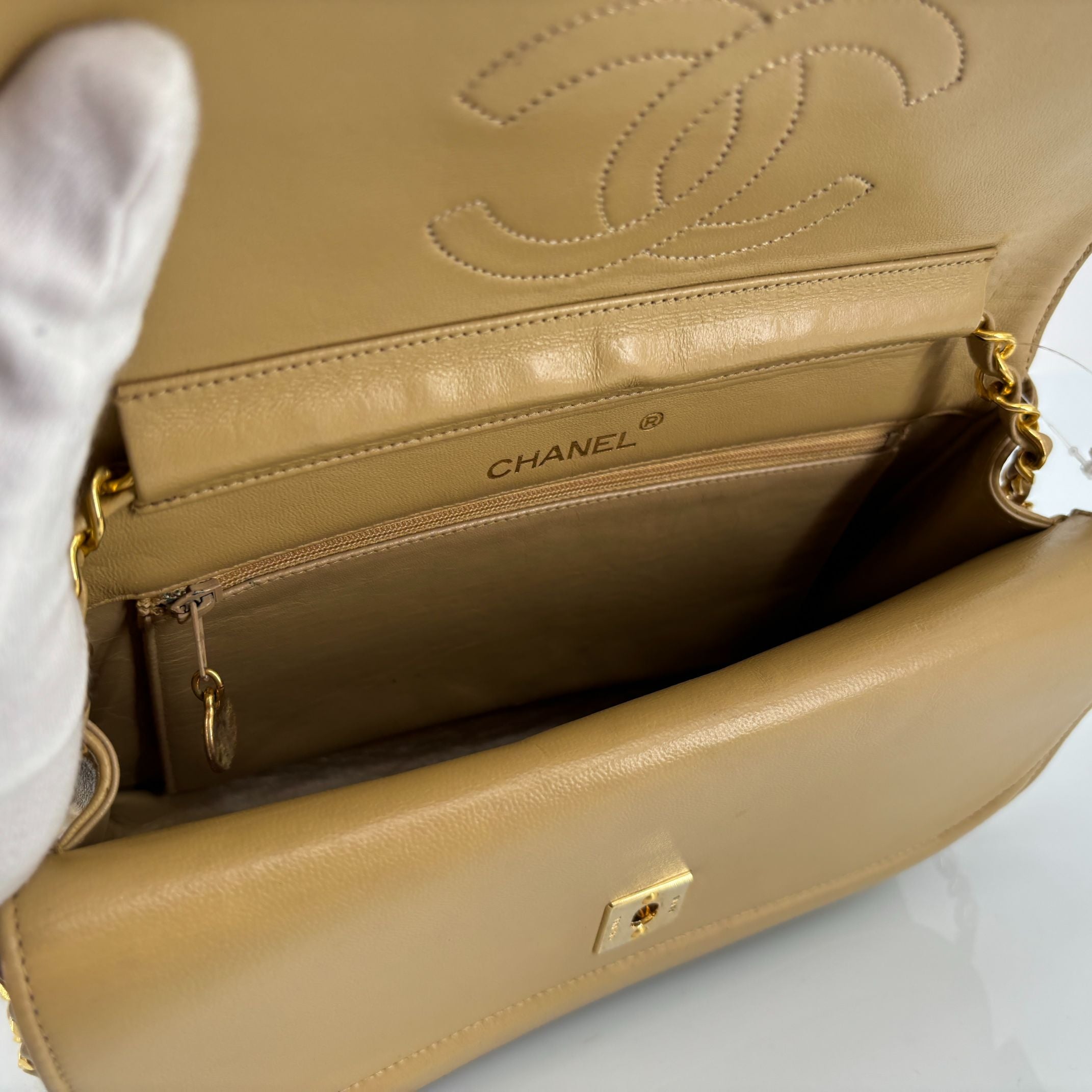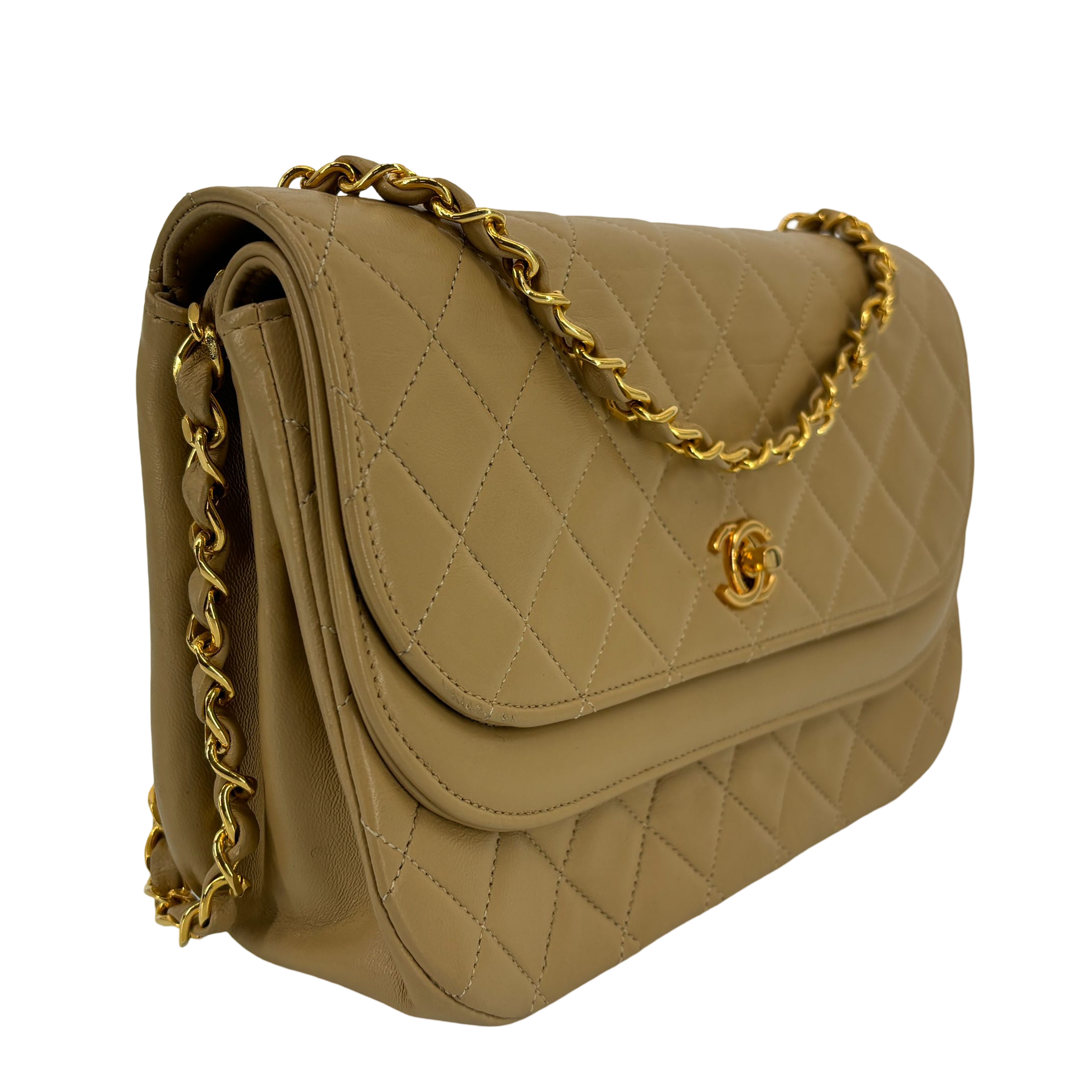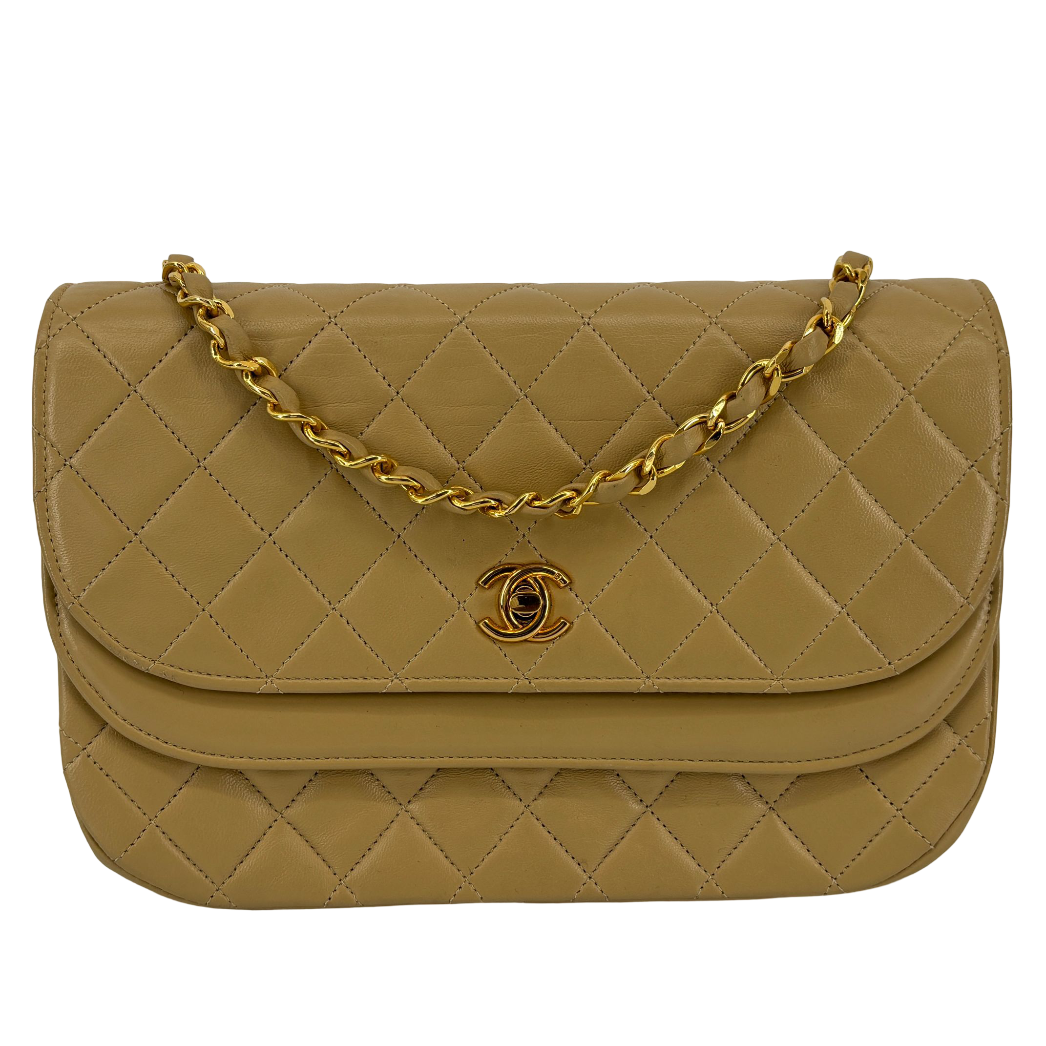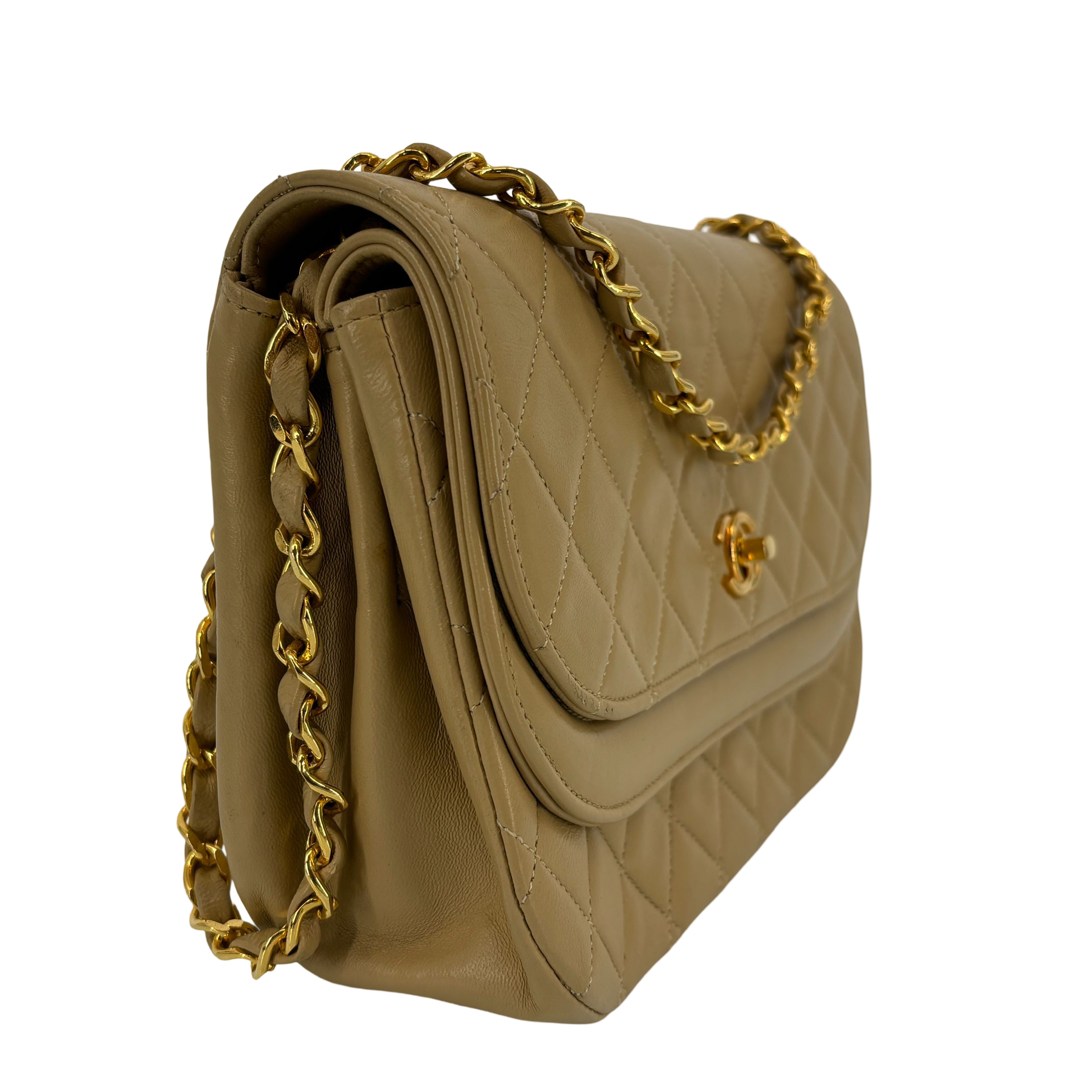 - Chanel Half-Moon Double Flap Bag Beige Matelassé Leather