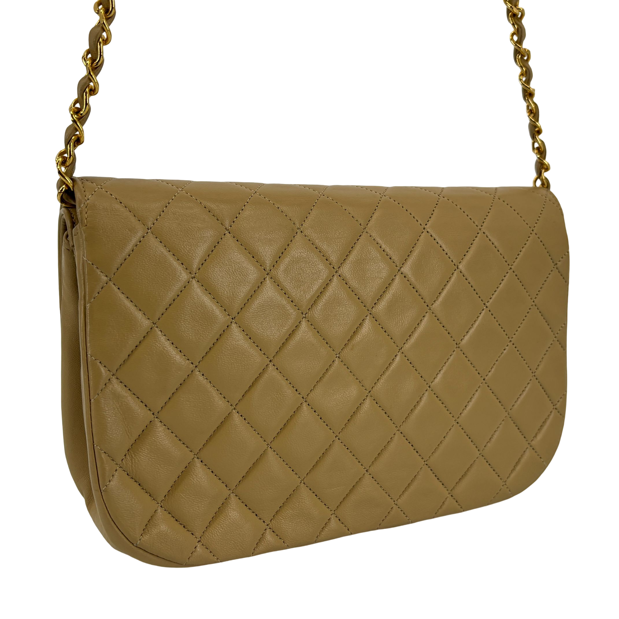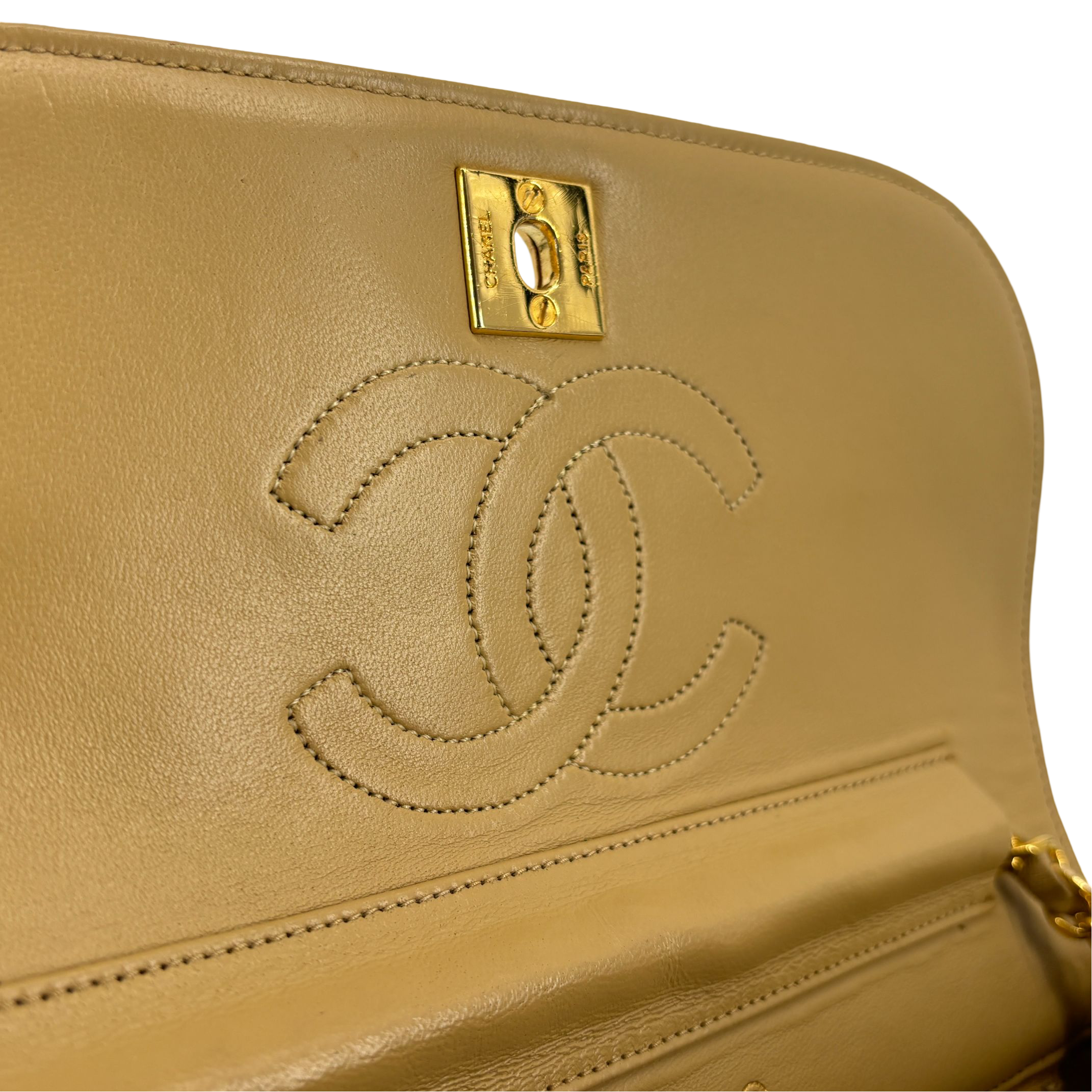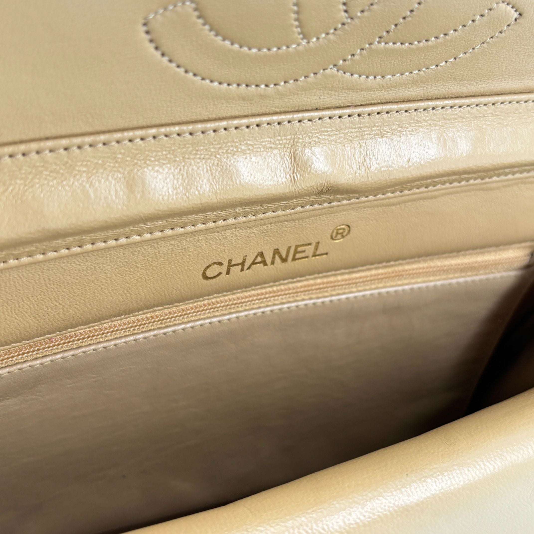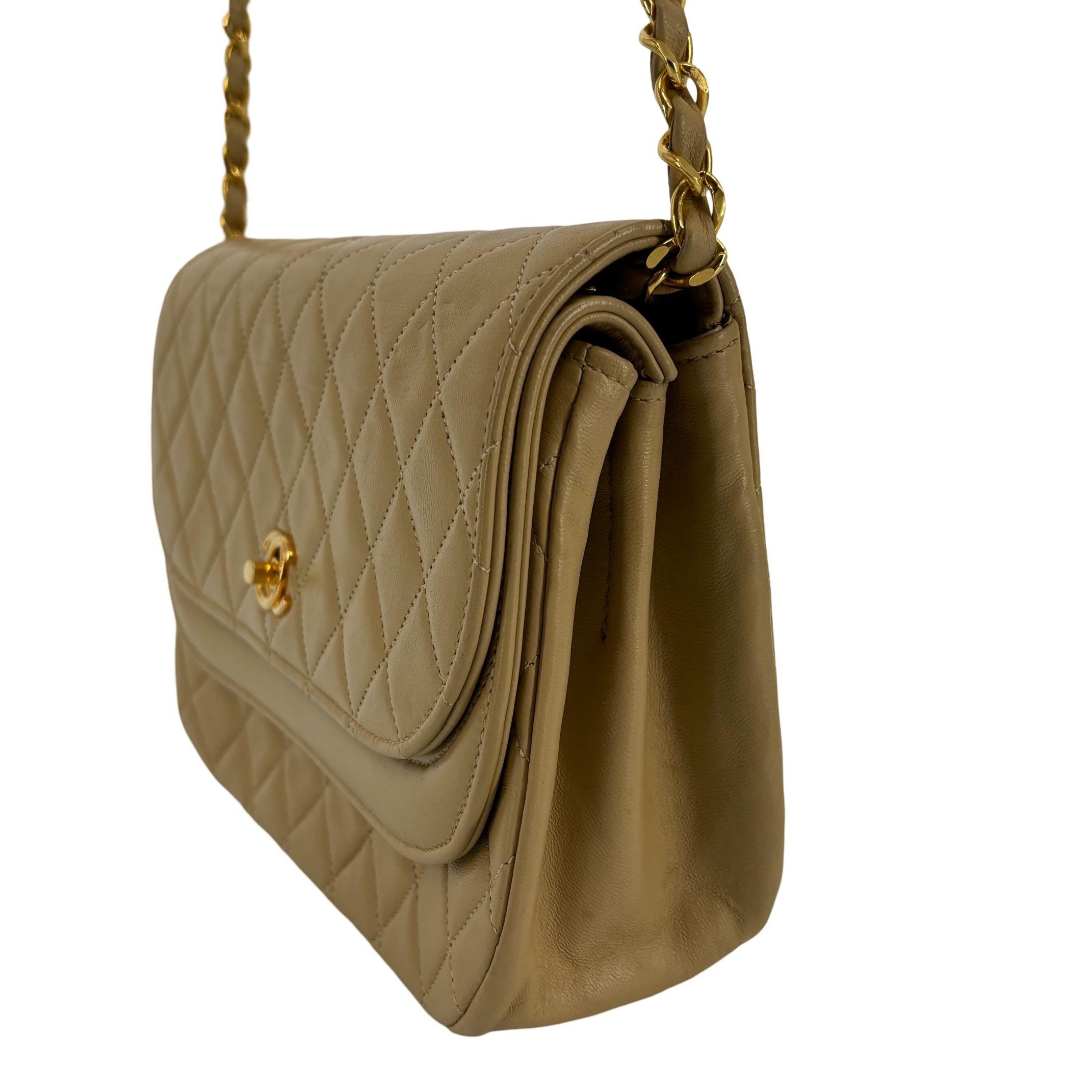 - Chanel Half-Moon Double Flap Bag Beige Matelassé Leather