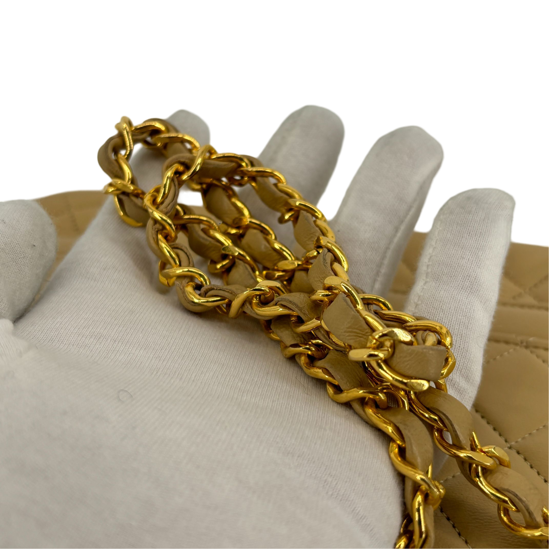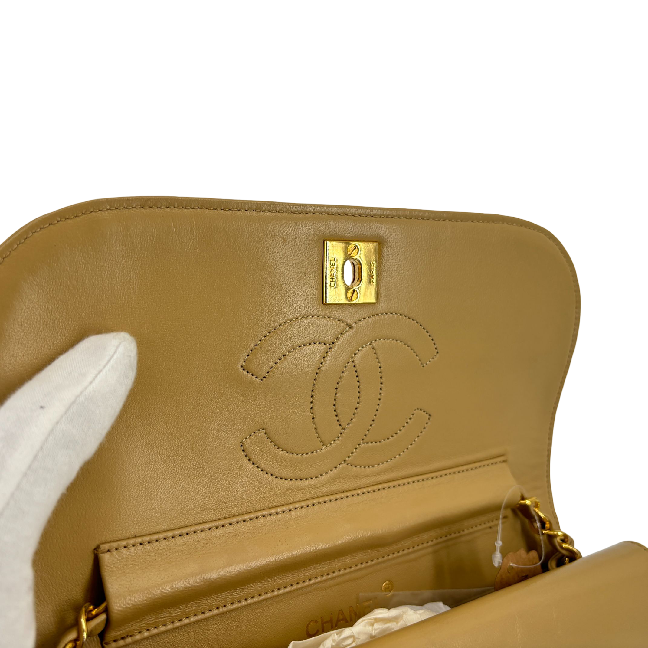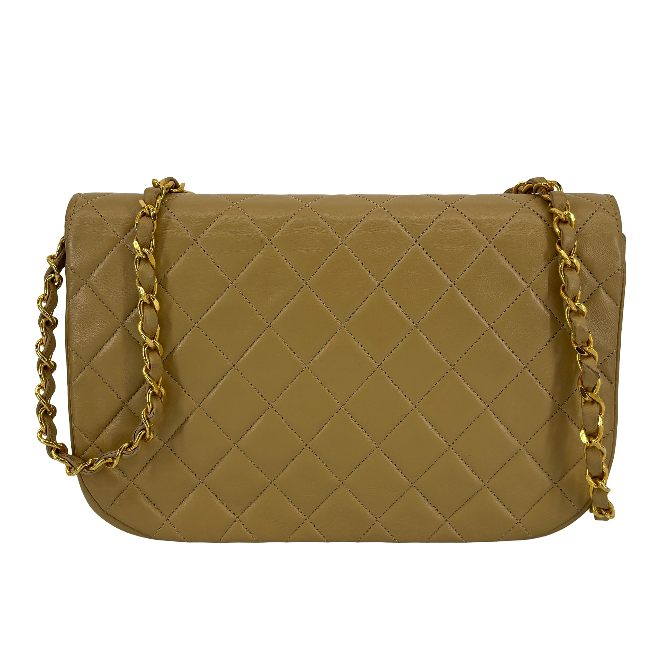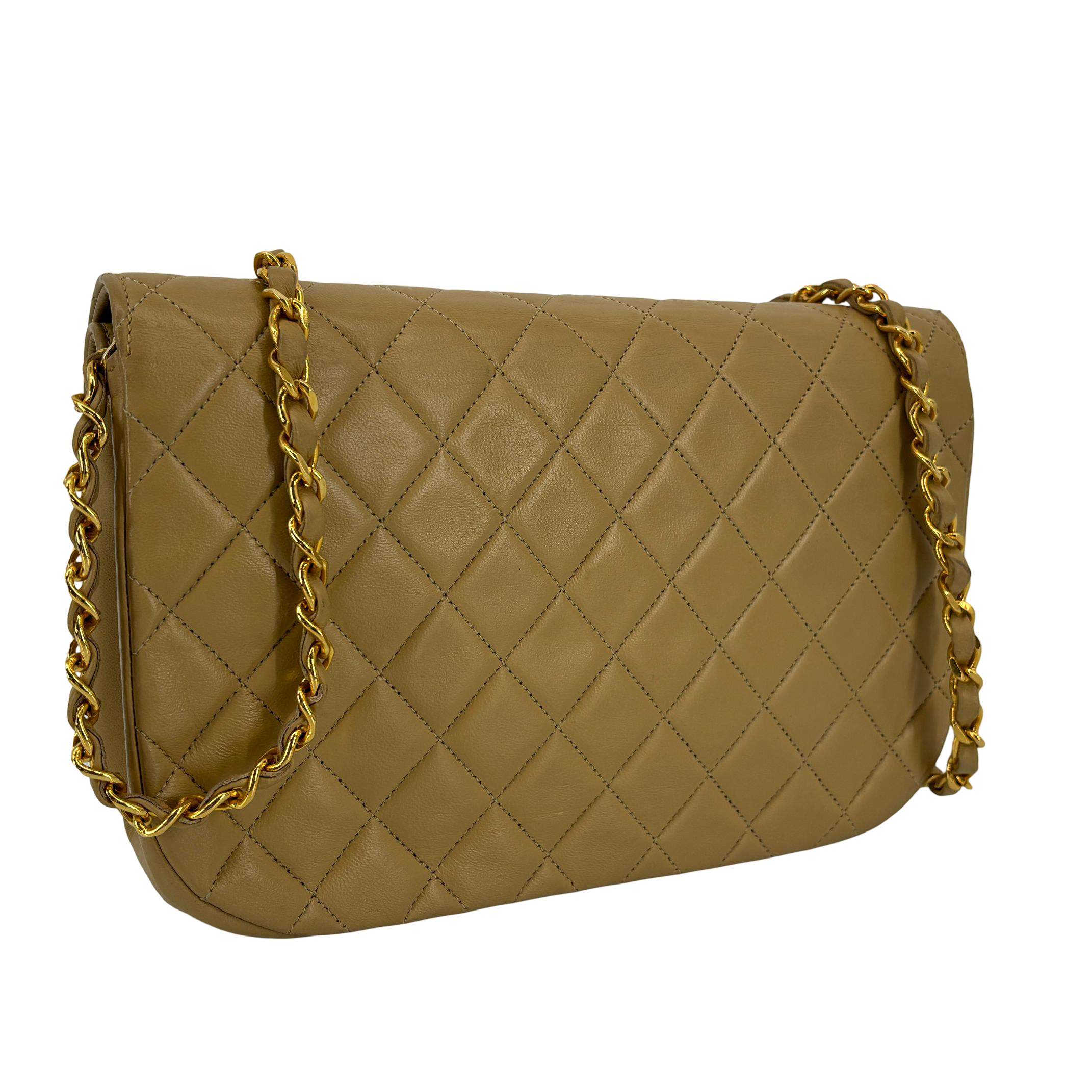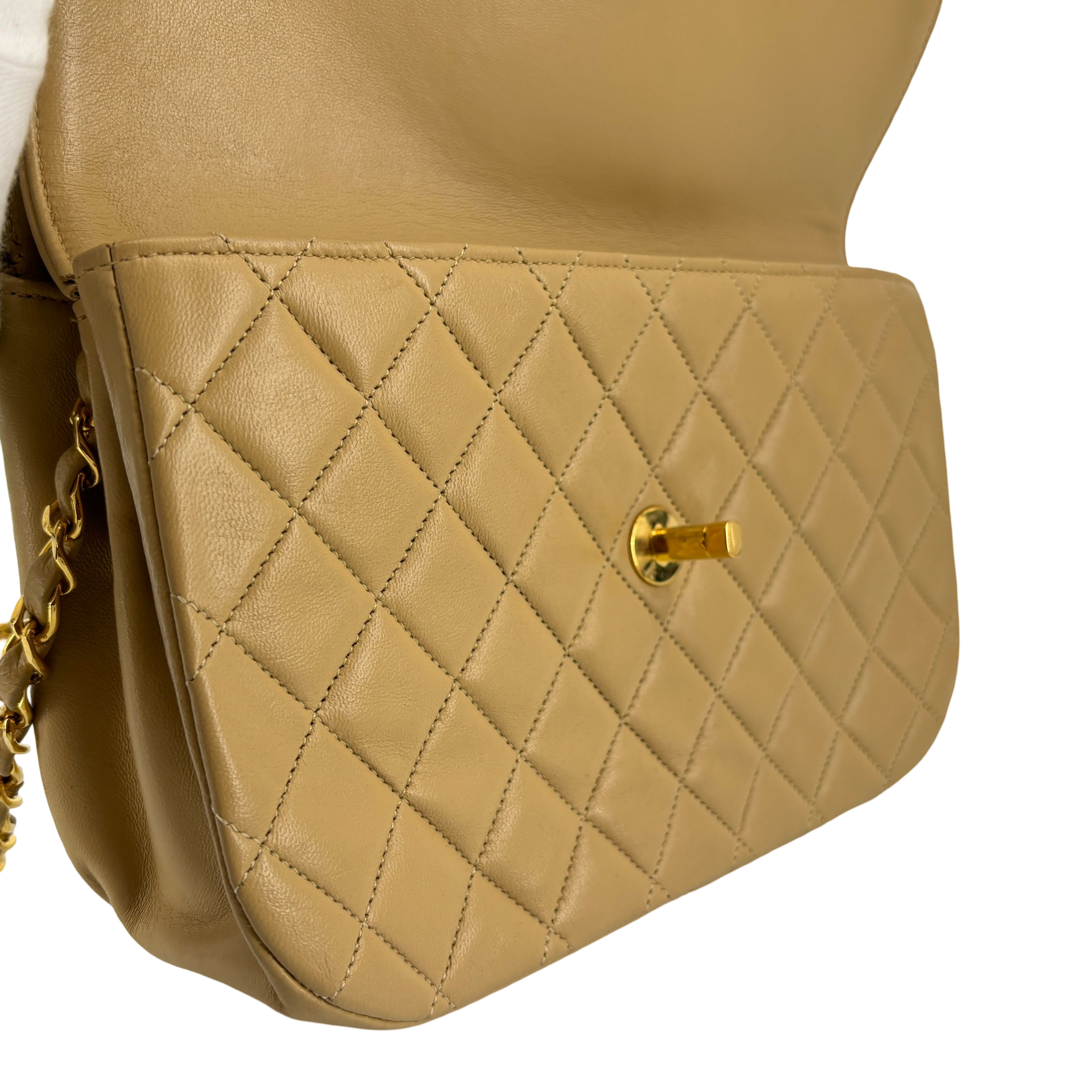 - Chanel Half-Moon Double Flap Bag Beige Matelassé Leather