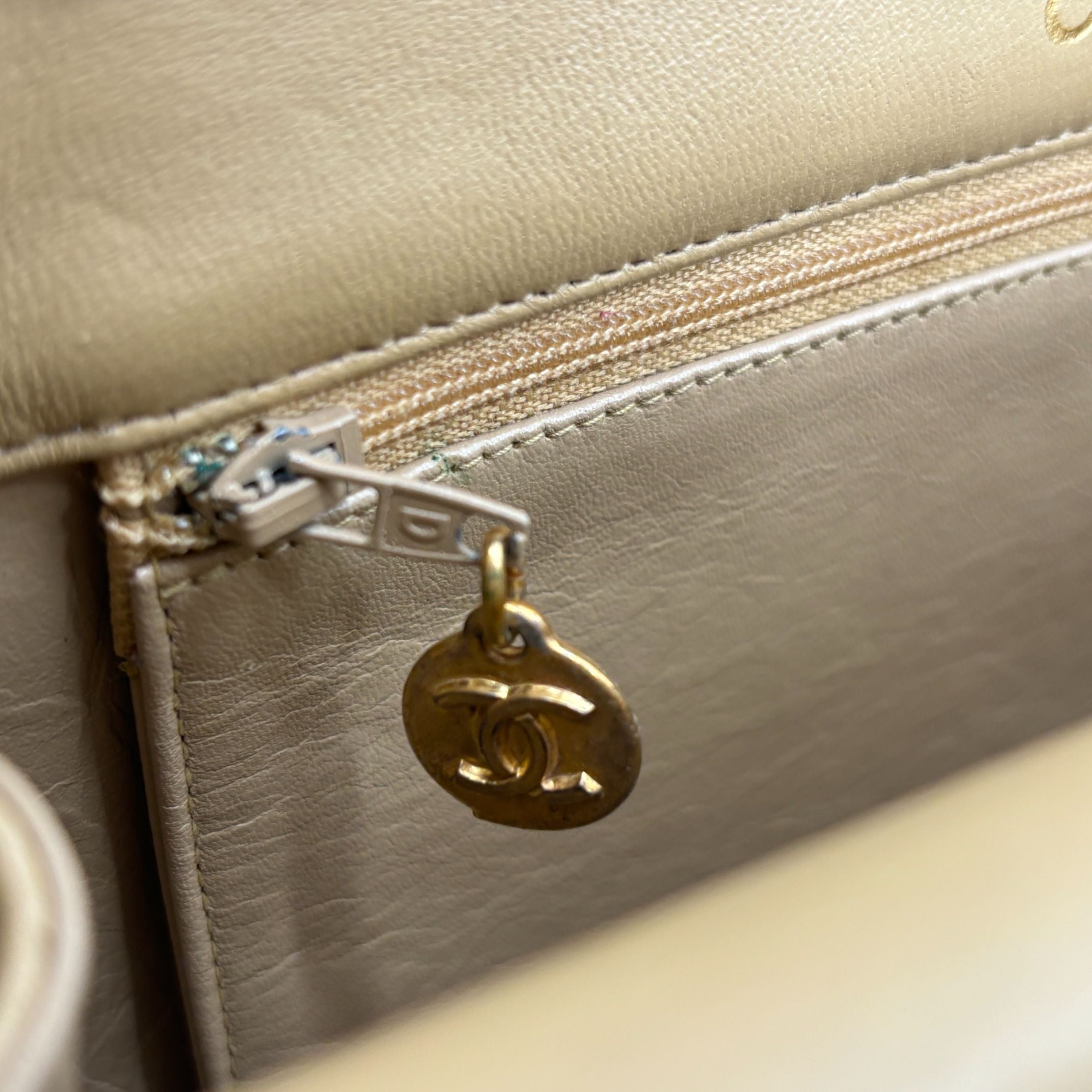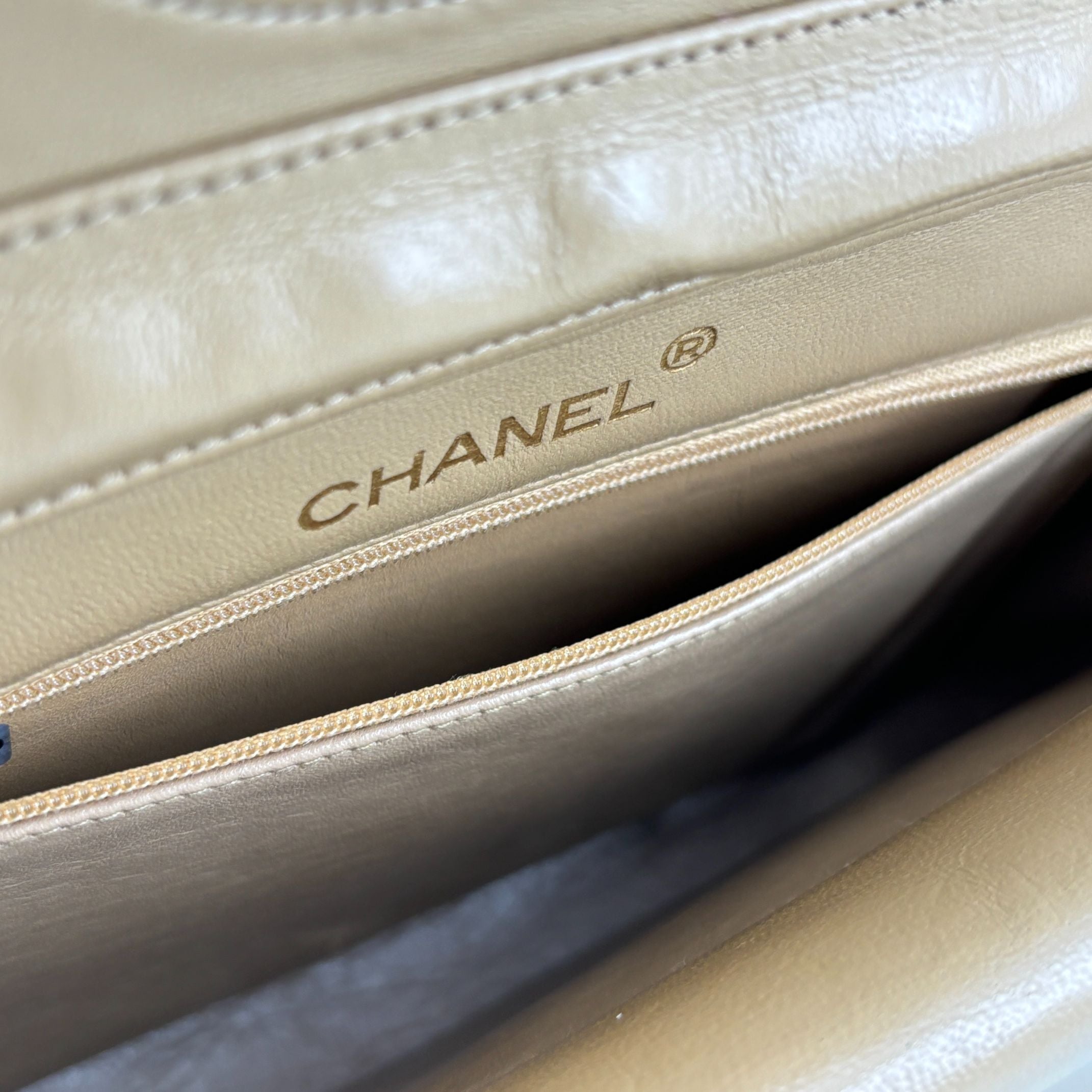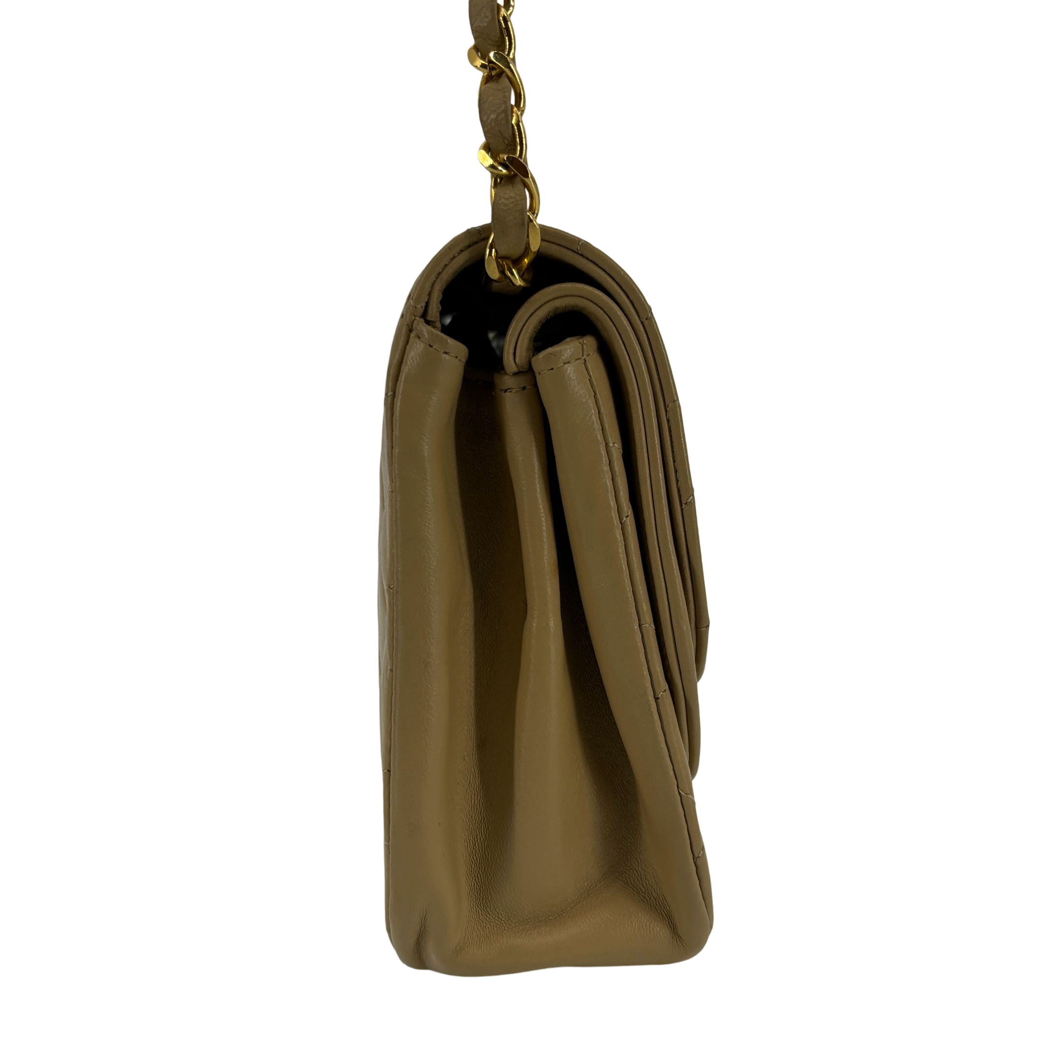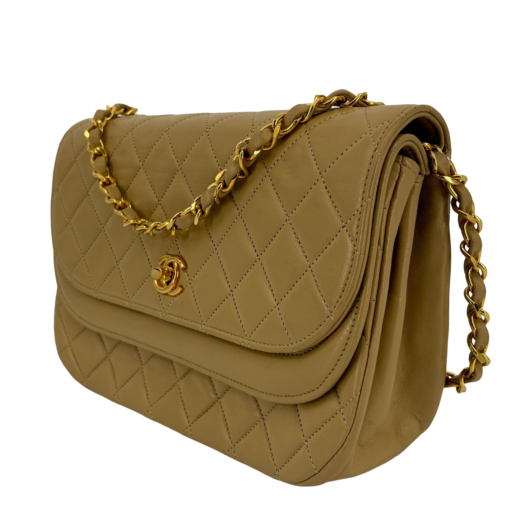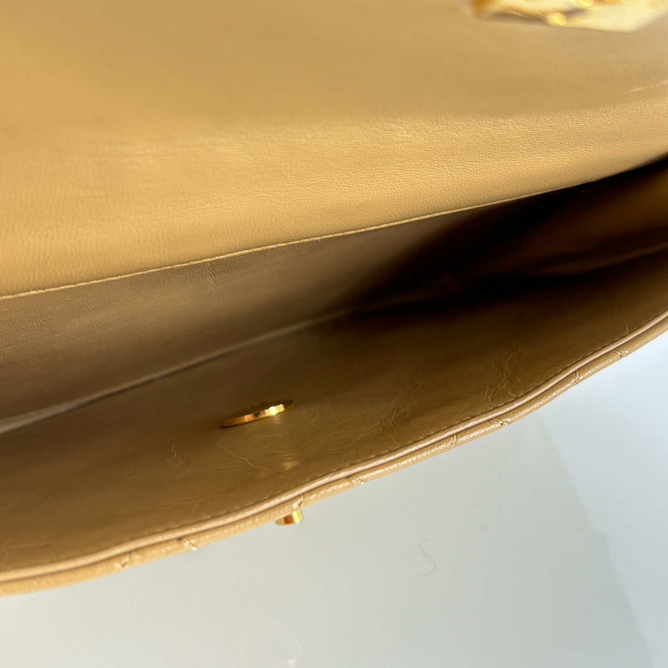 - Chanel Half-Moon Double Flap Bag Beige Matelassé Leather
