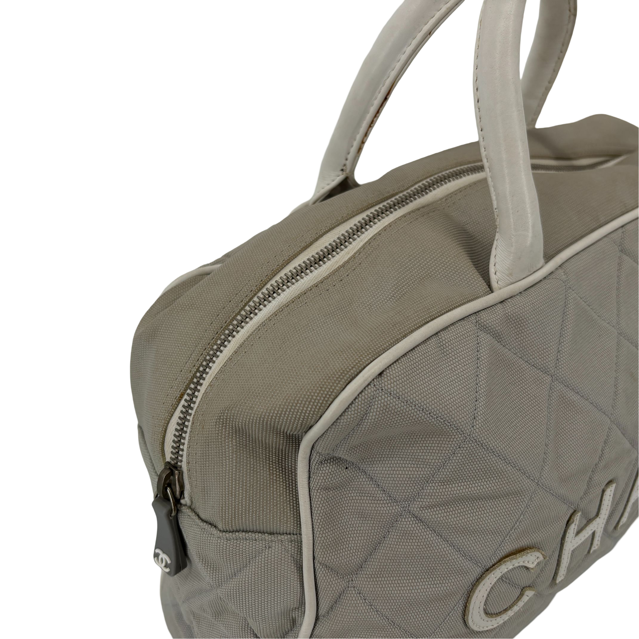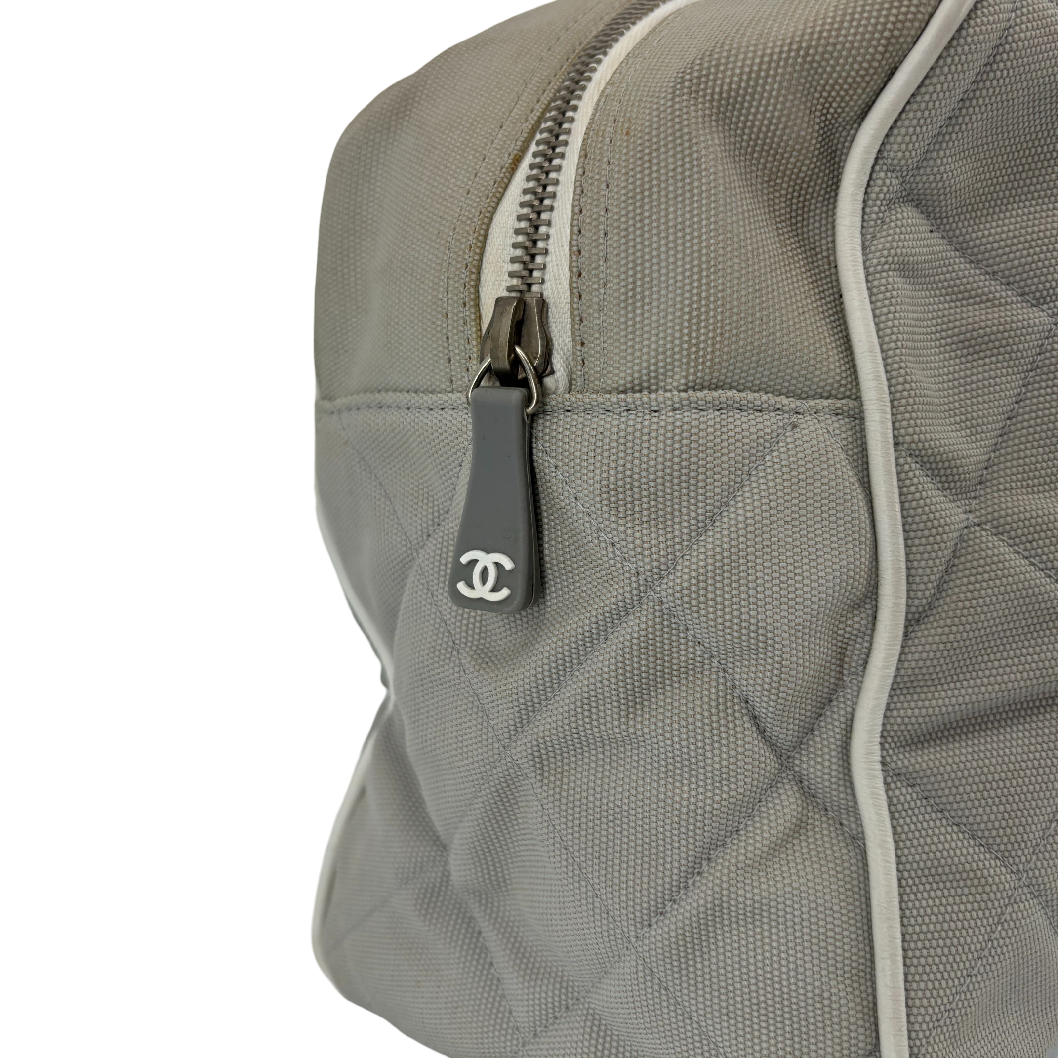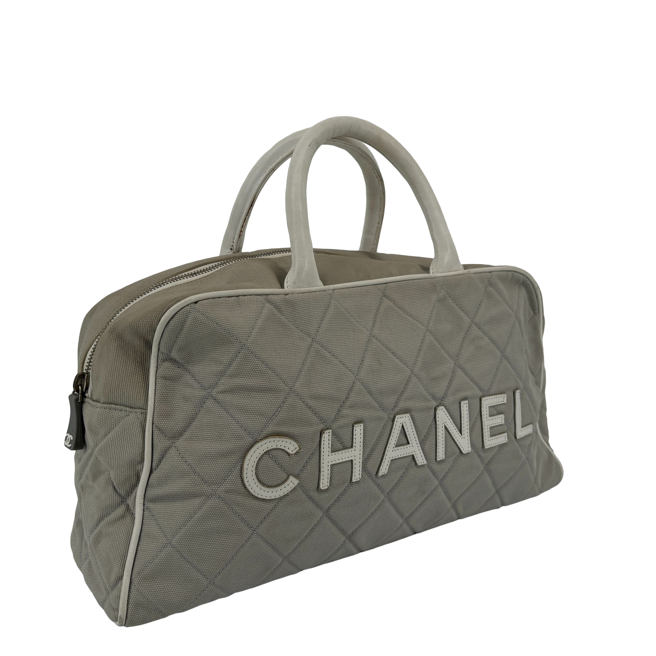 - Chanel Quilted Canvas Sports Line Boston Bag Grey