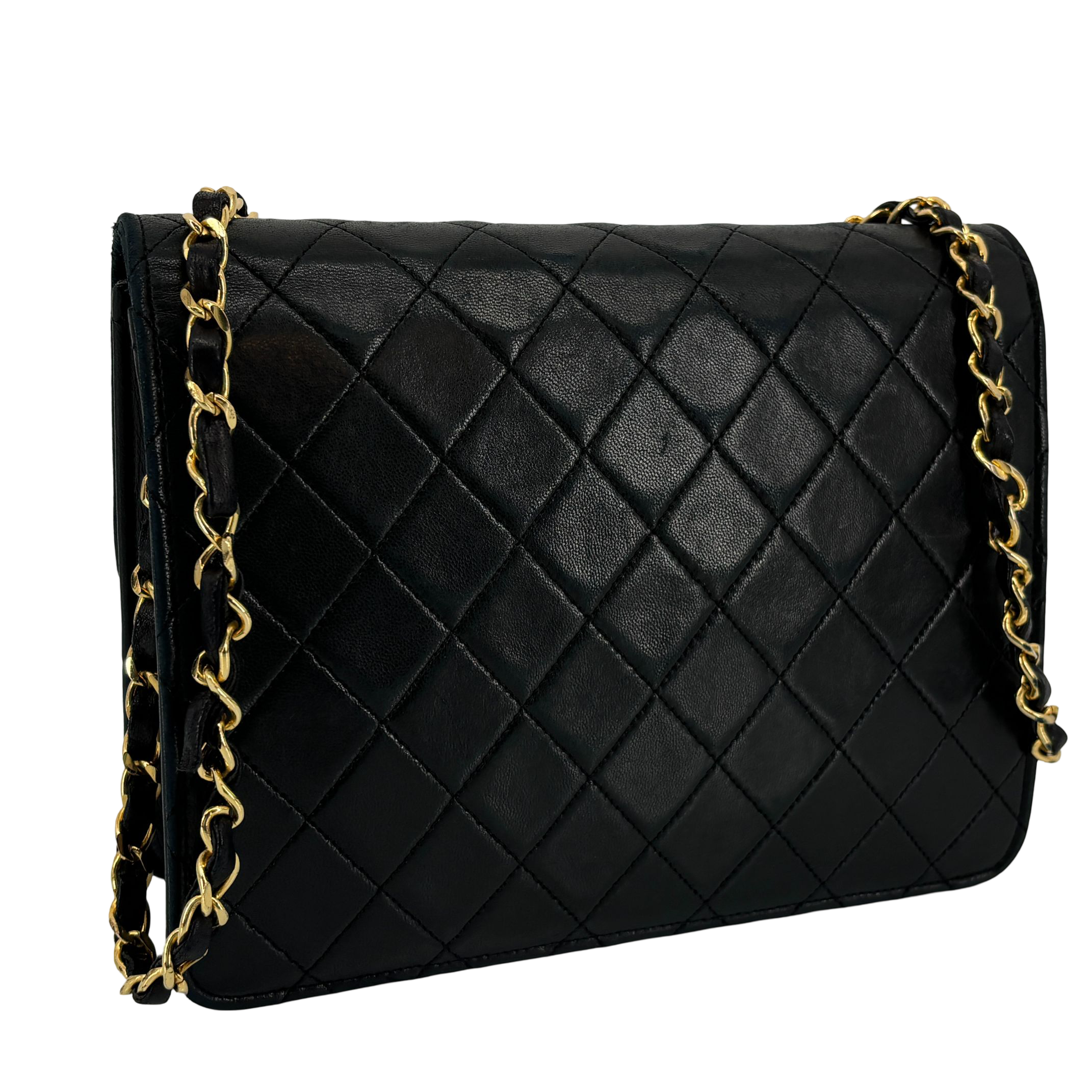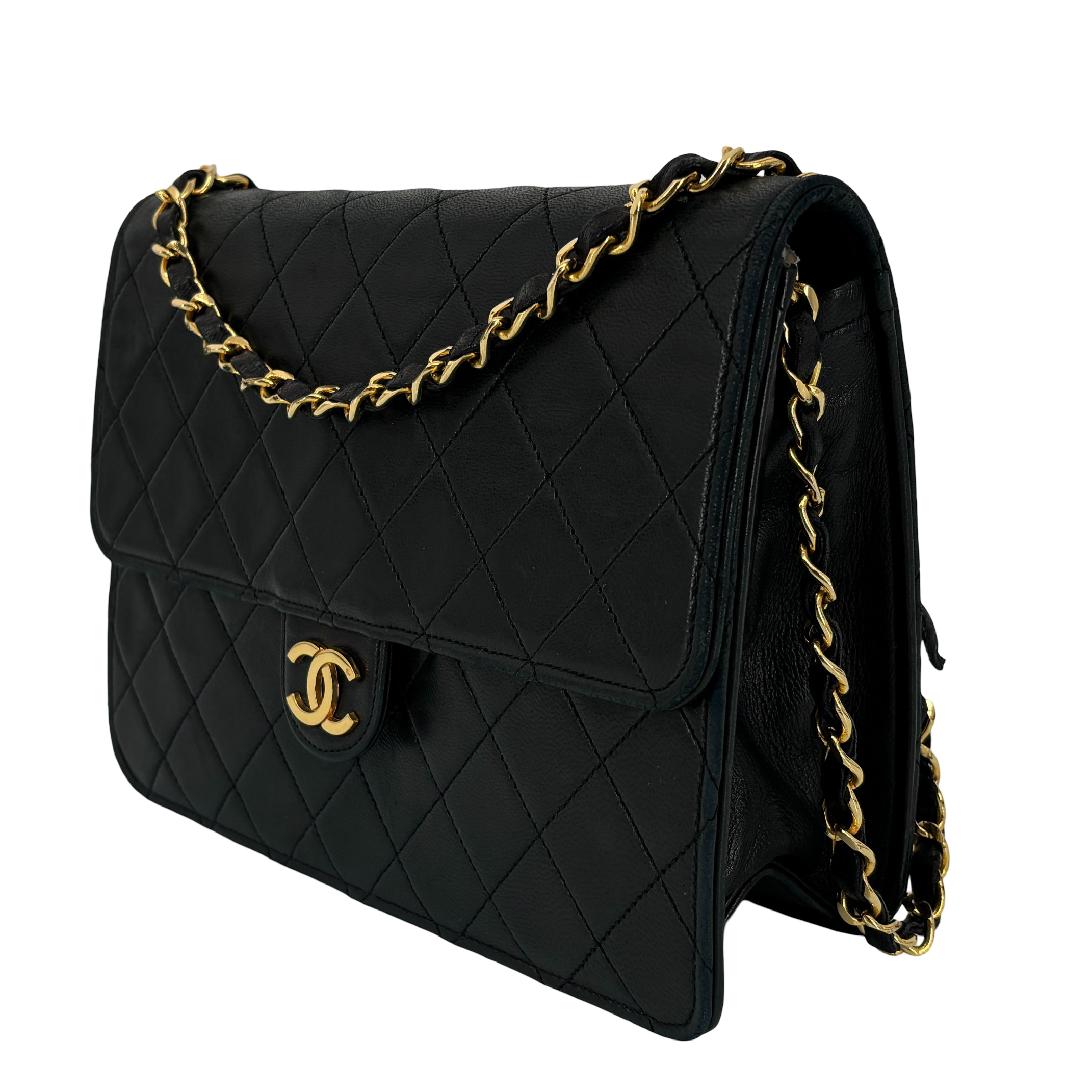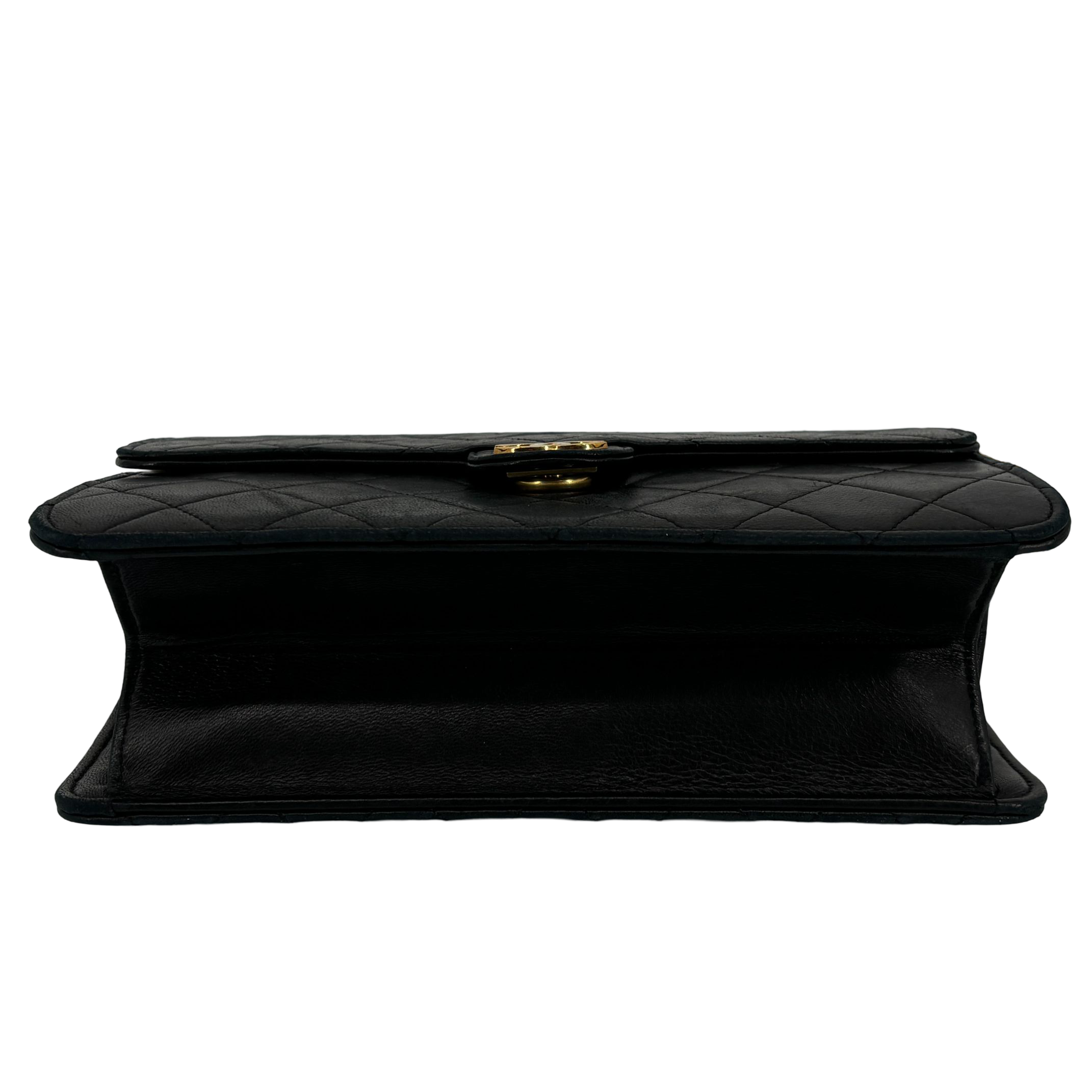 - Chanel Single Flap Bag Push-Lock Black Matelassé Leather