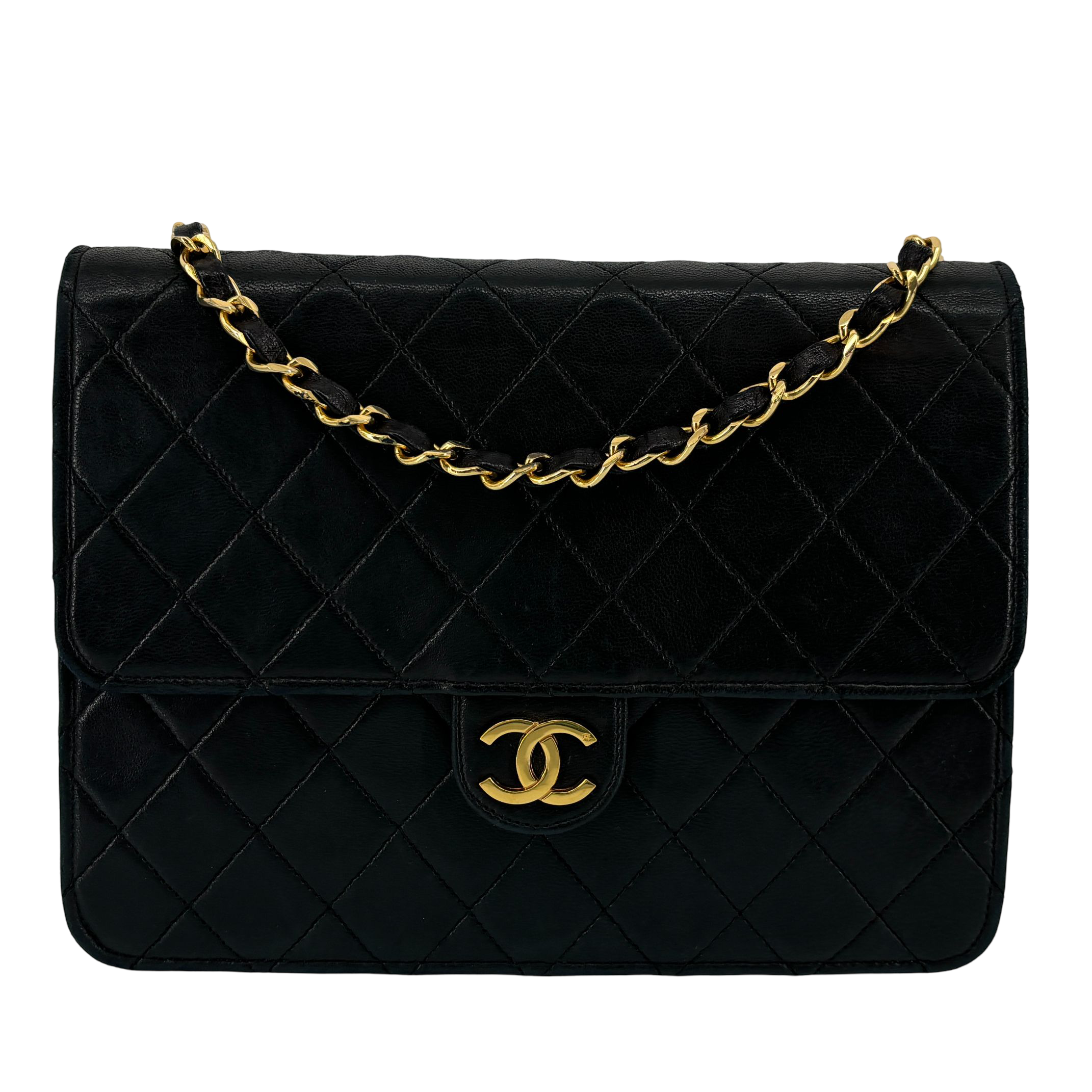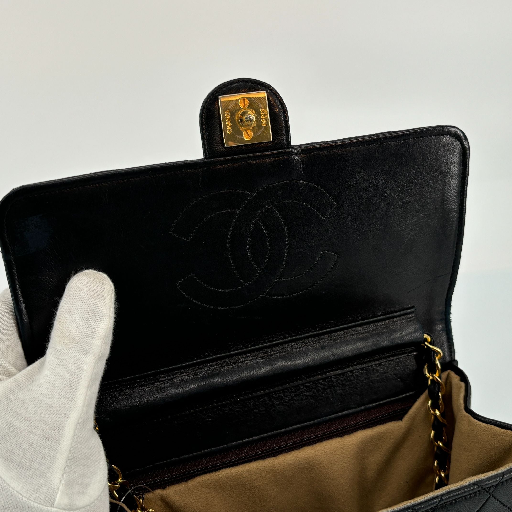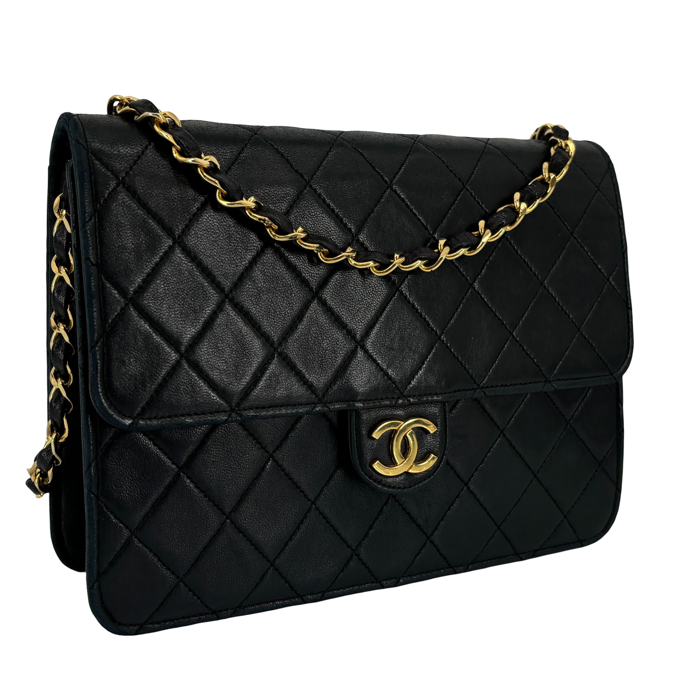 - Chanel Single Flap Bag Push-Lock Black Matelassé Leather