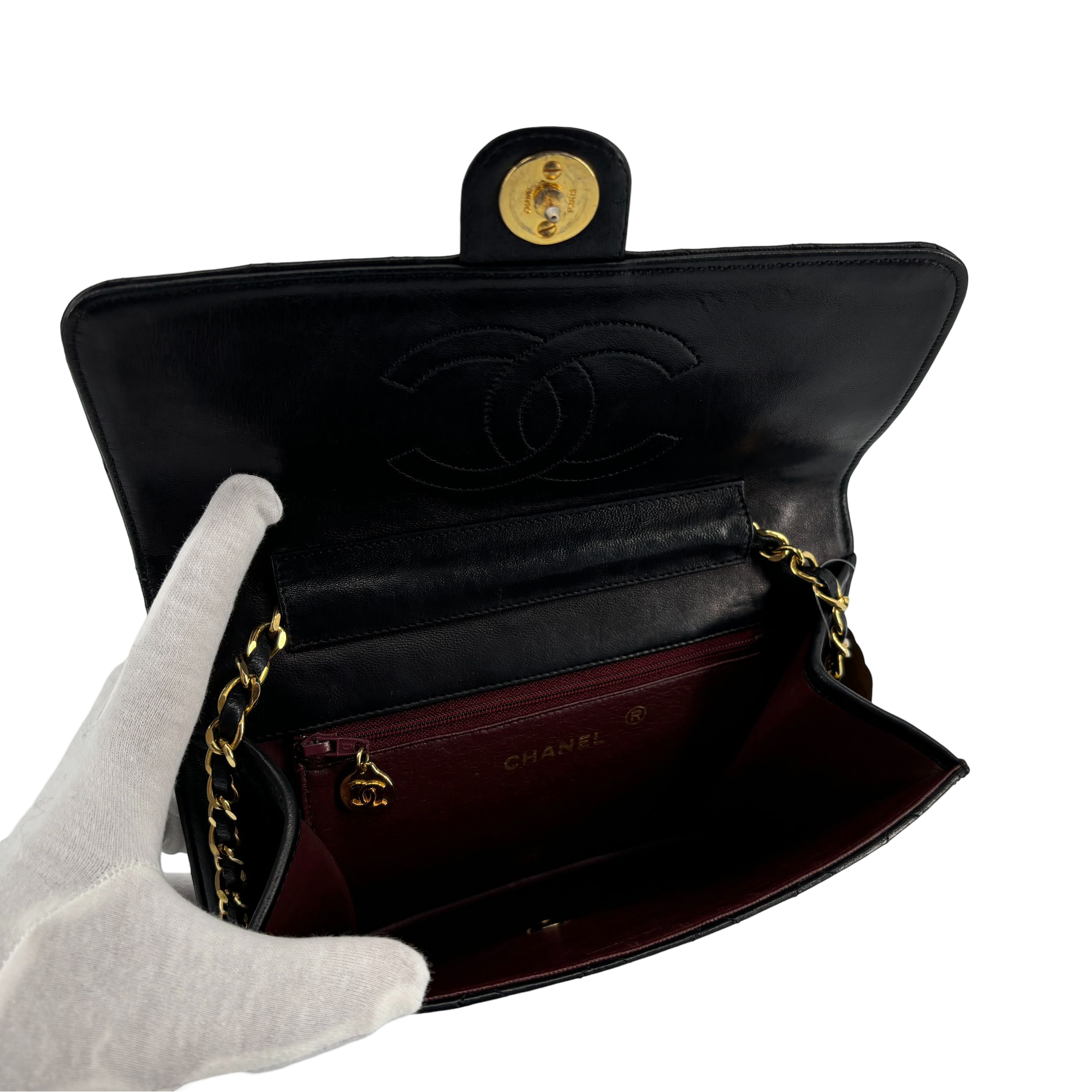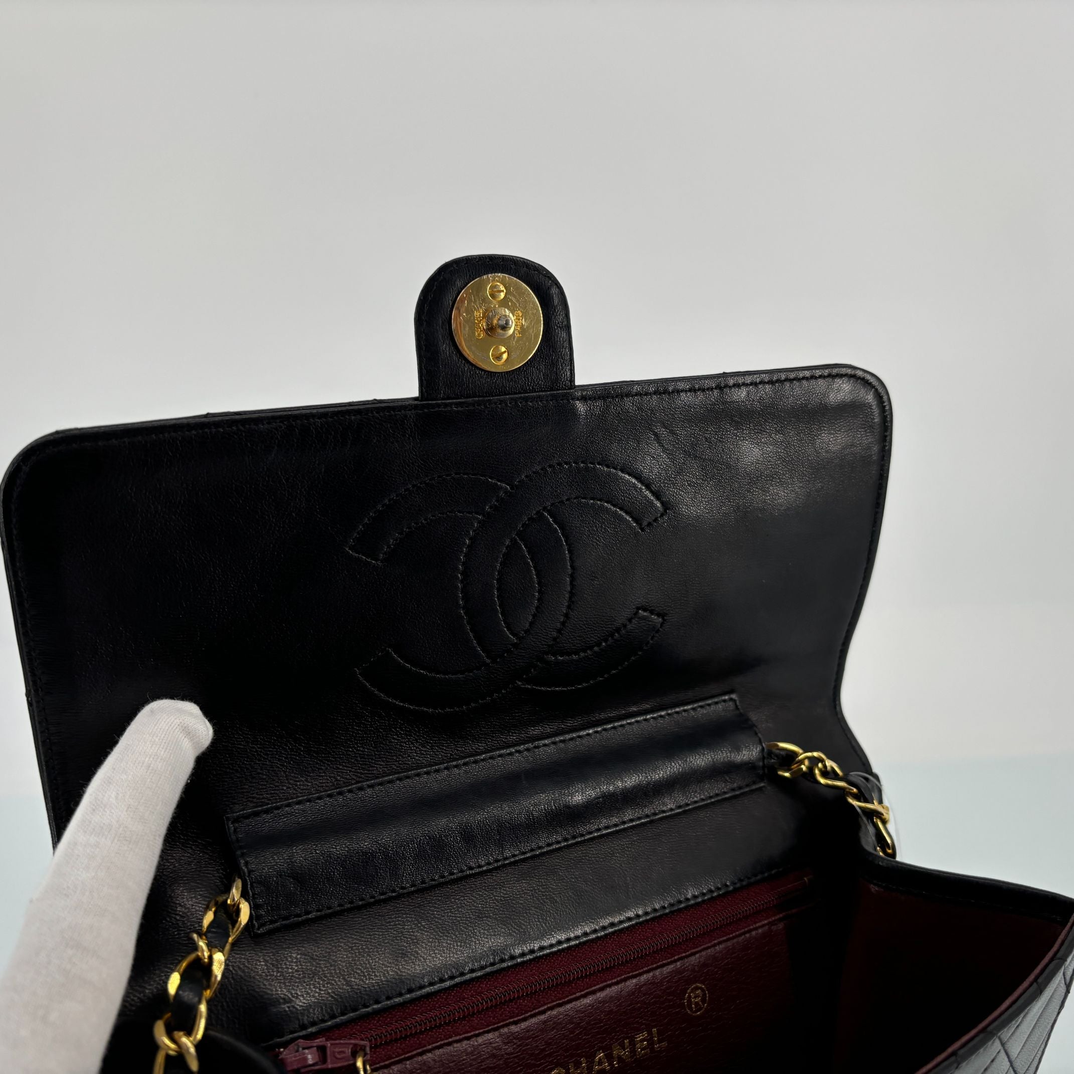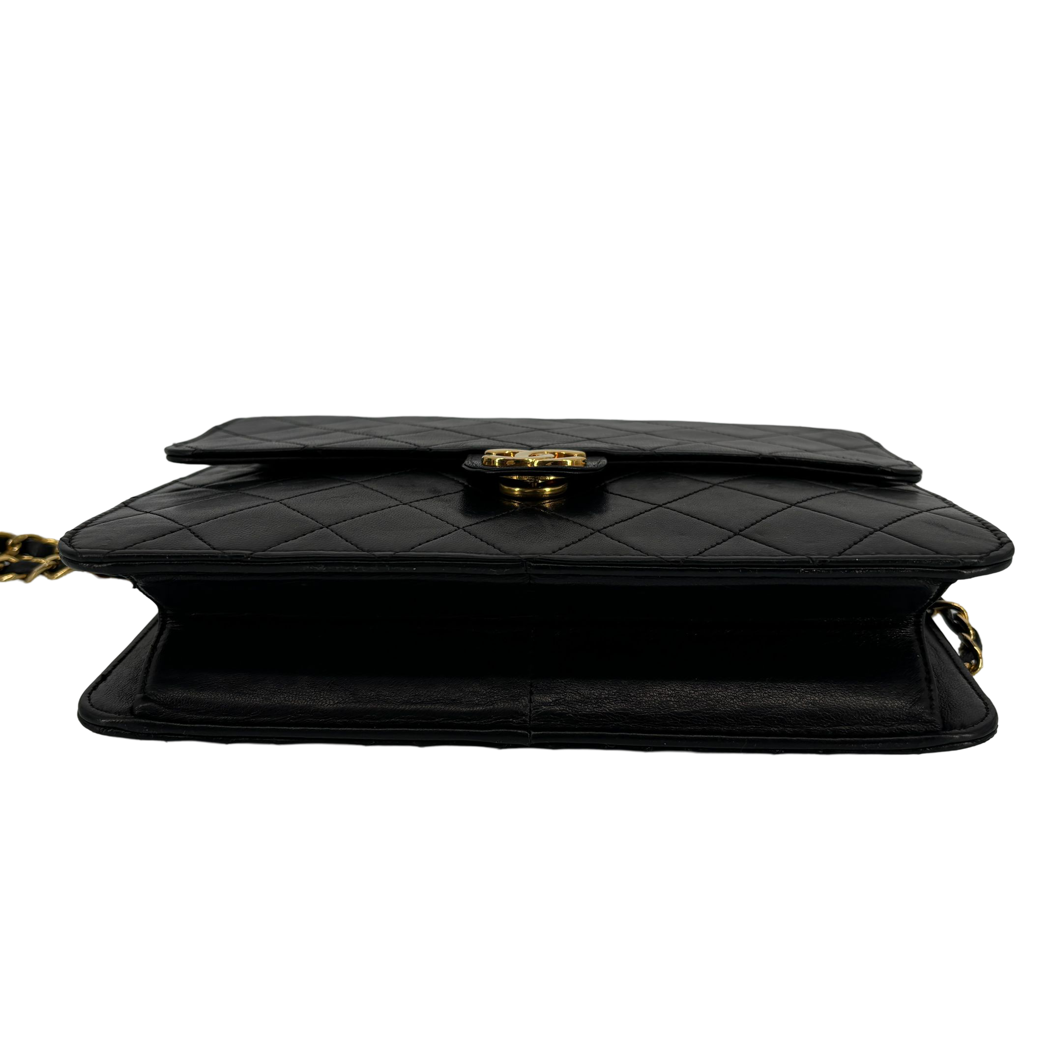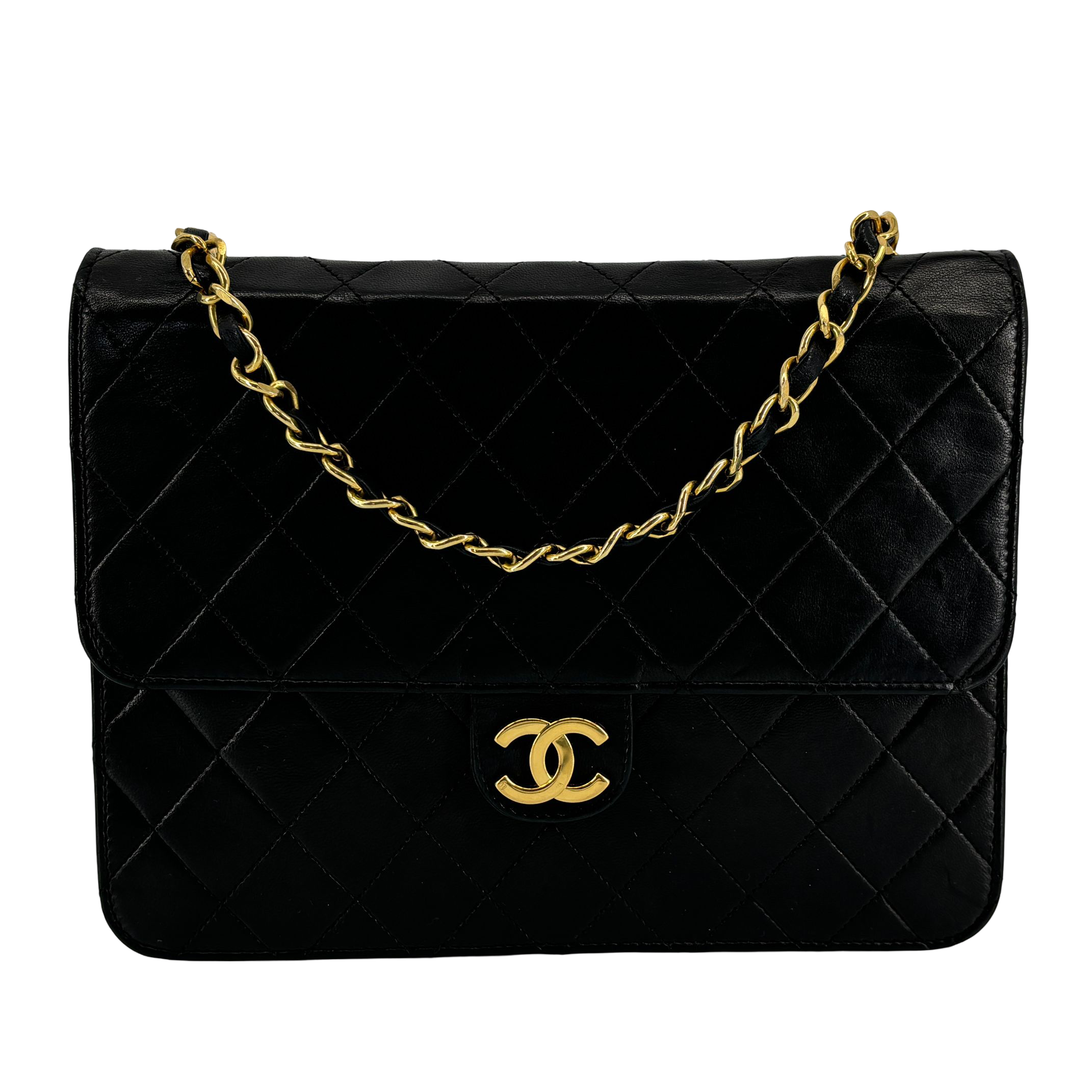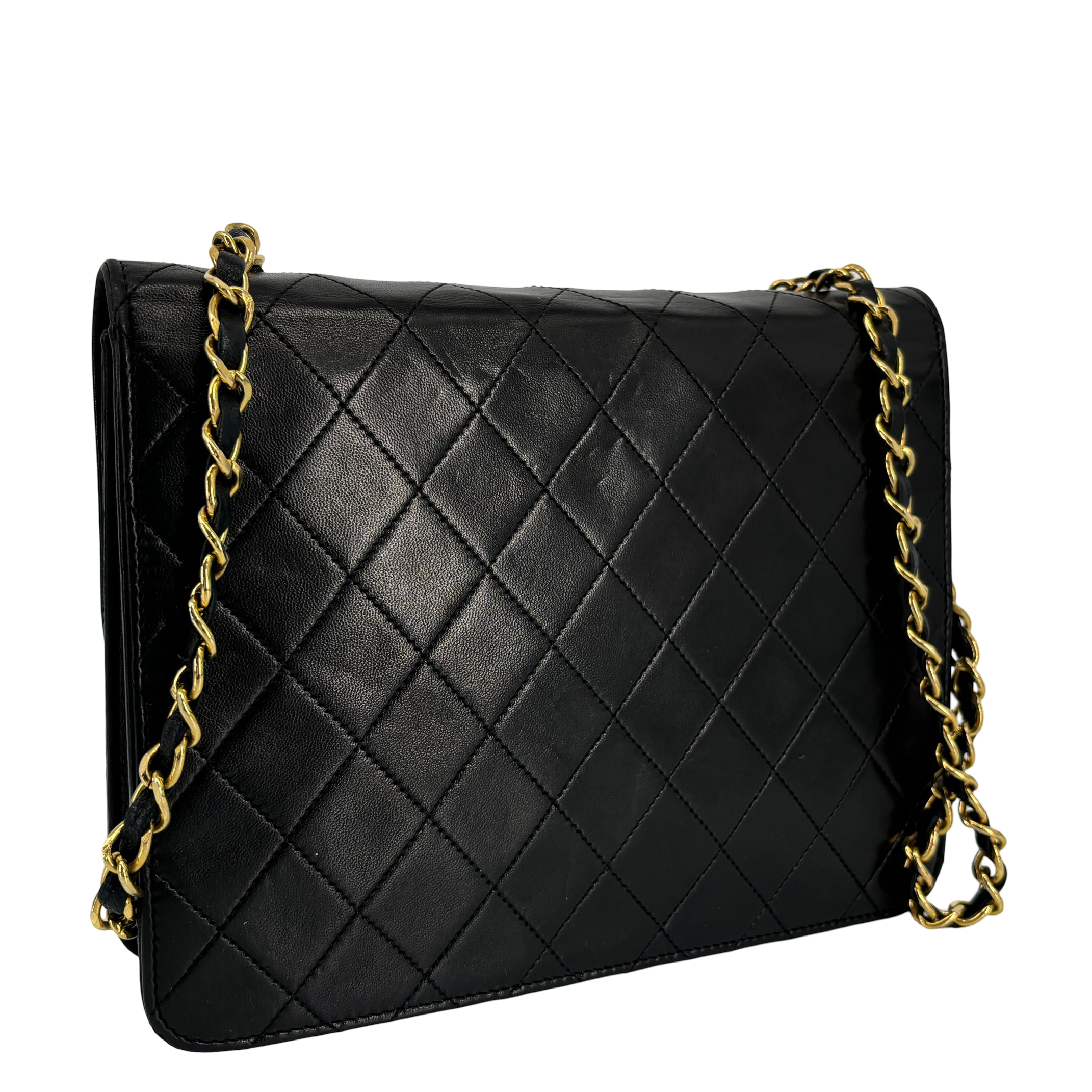 - Chanel Single Flap Bag Push-Lock Black Matelassé Leather