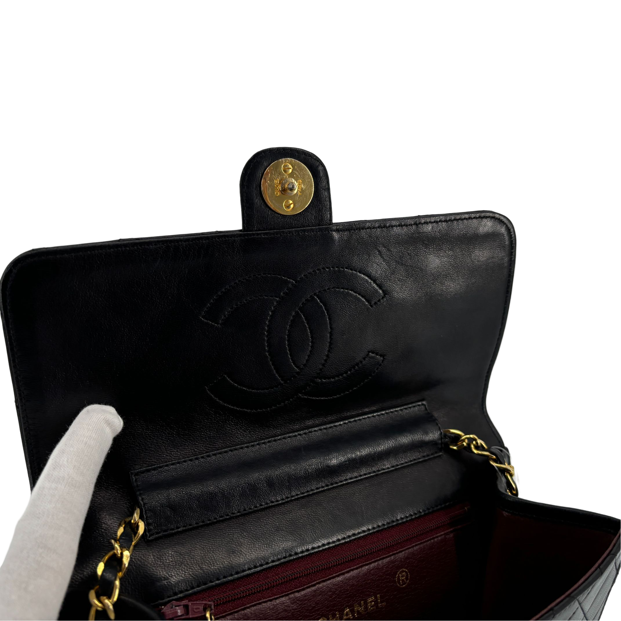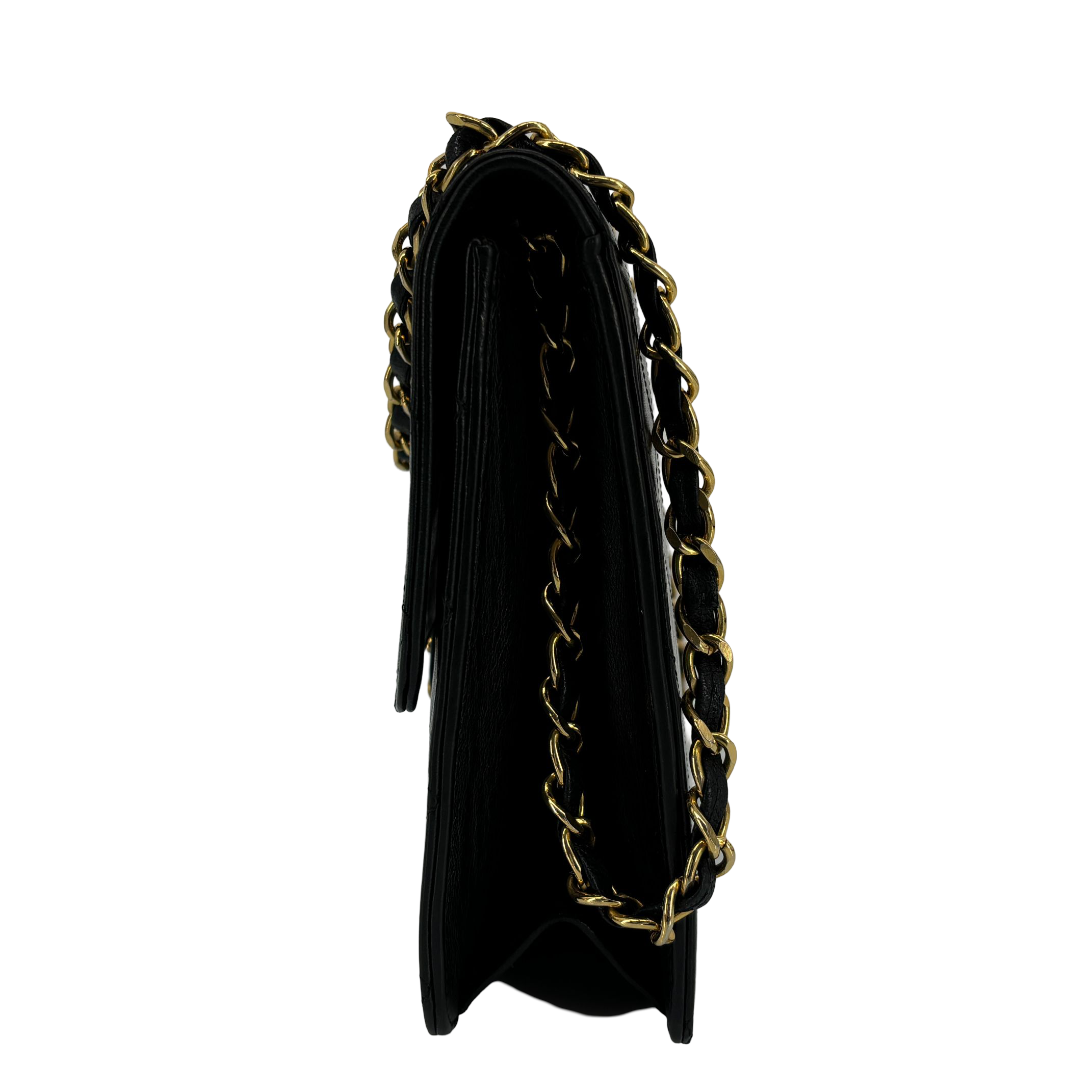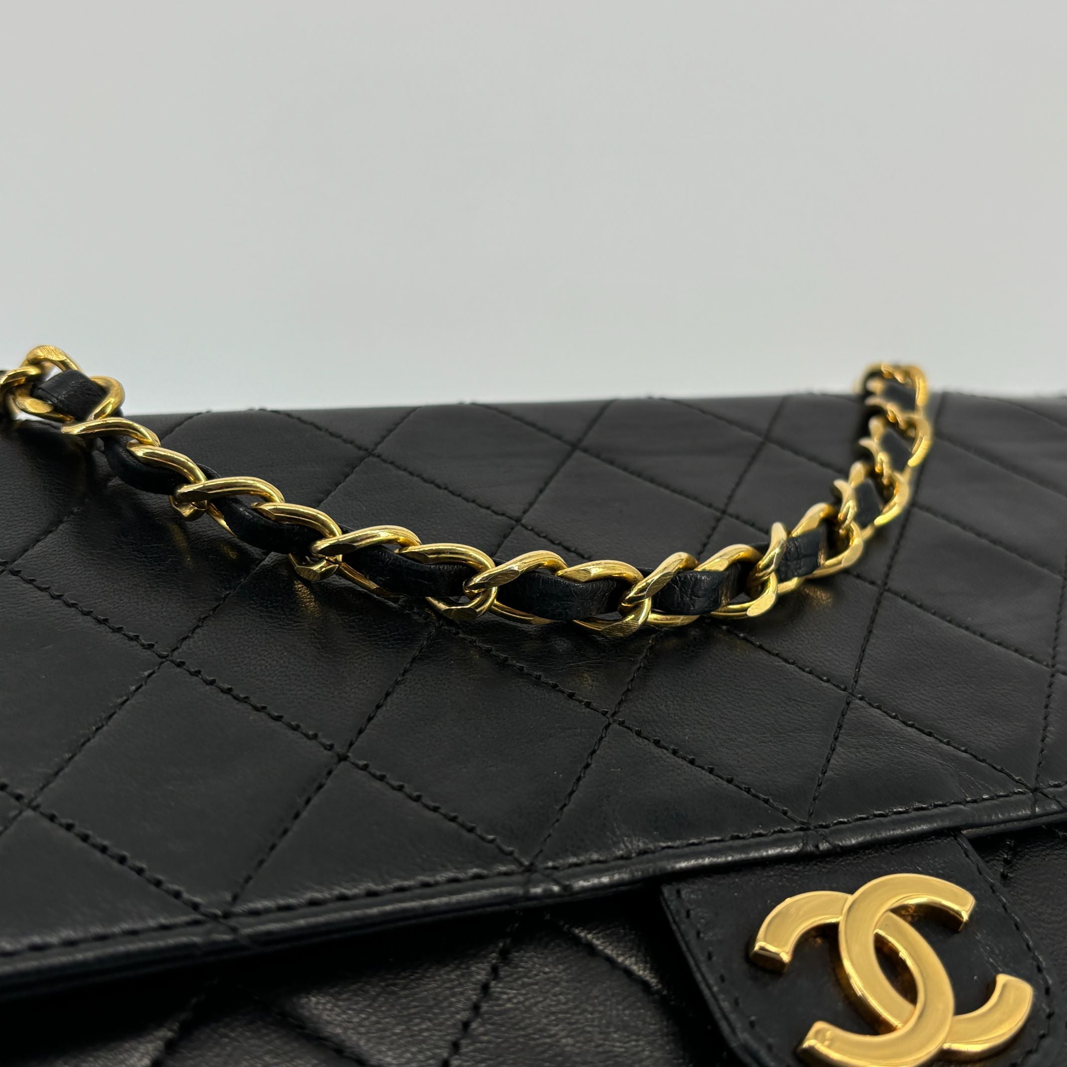 Chanel Single Flap Bag Push-Lock Black Matelassé Leather incl. Dustbag