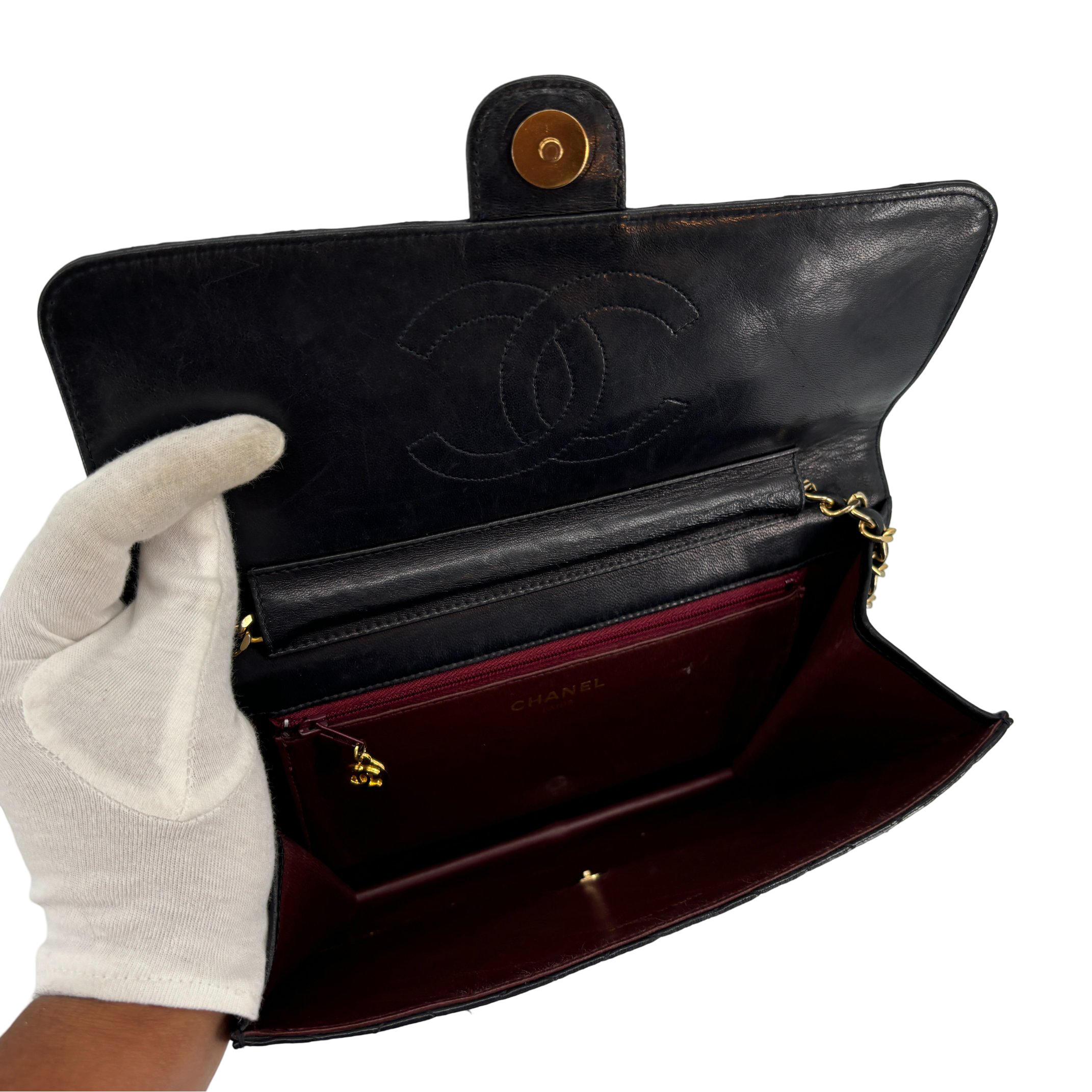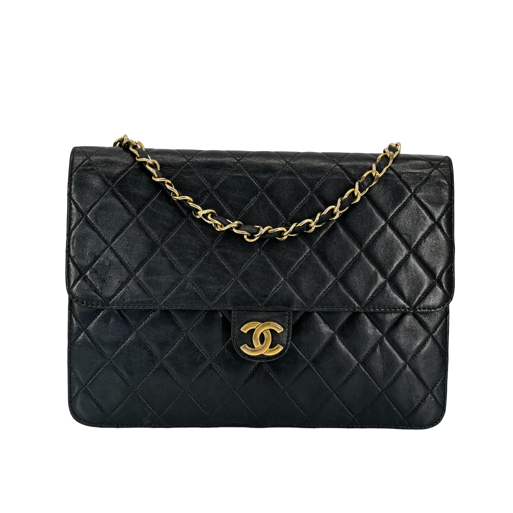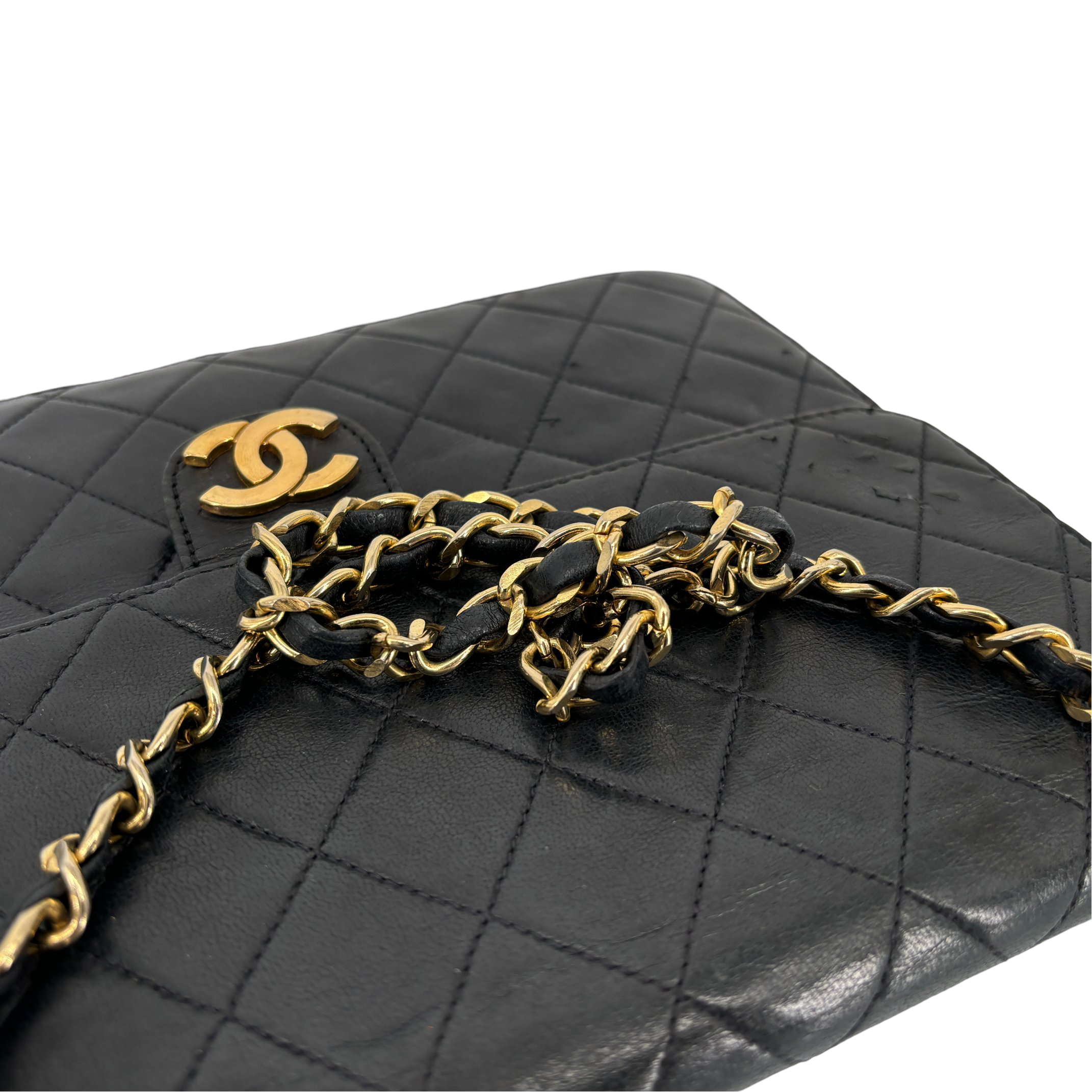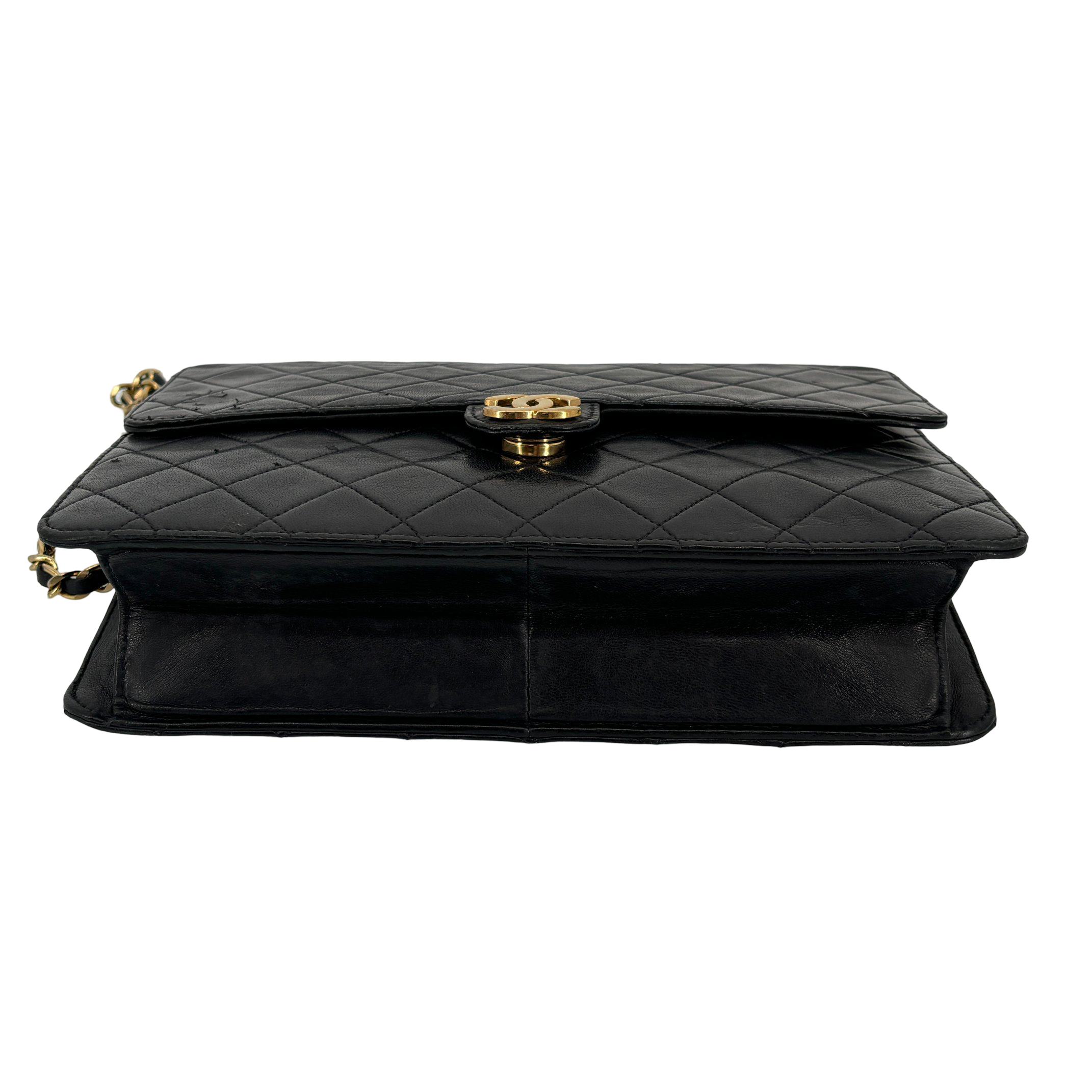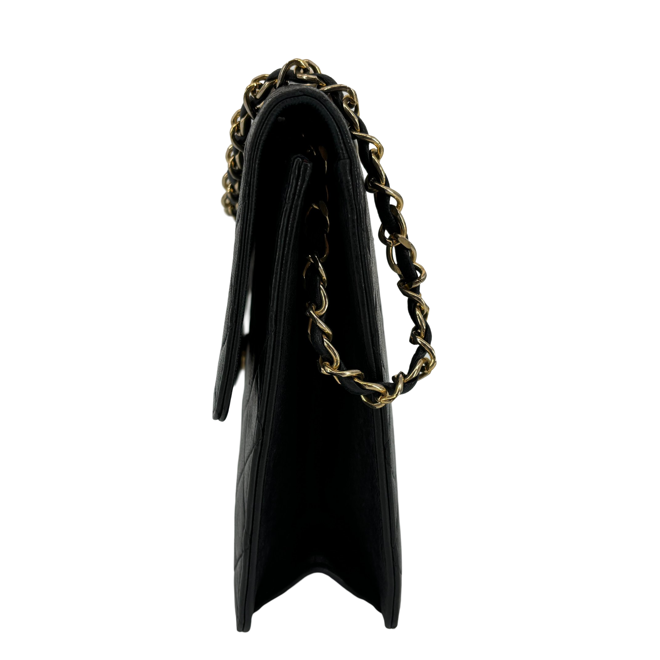 - Chanel Single Flap Bag Push-Lock Black Matelassé Leather