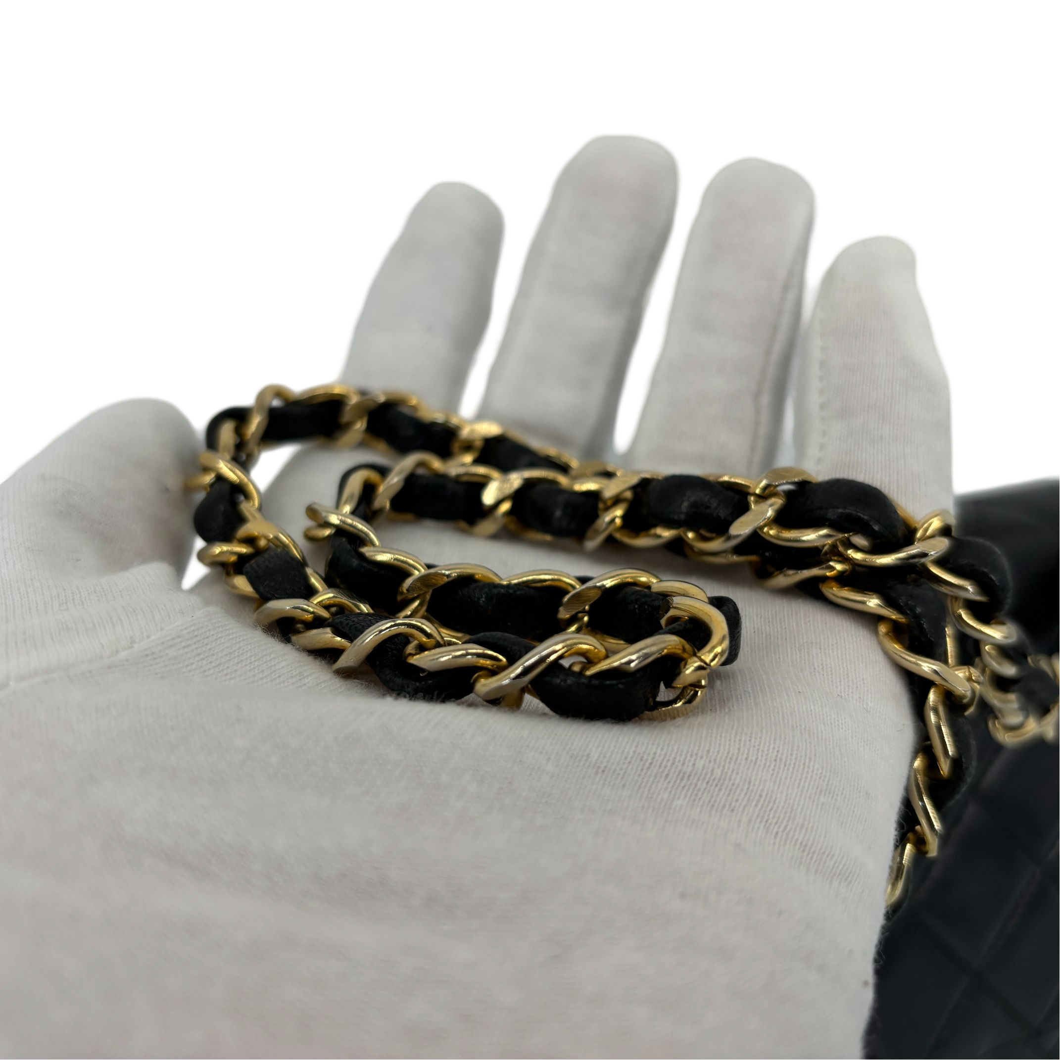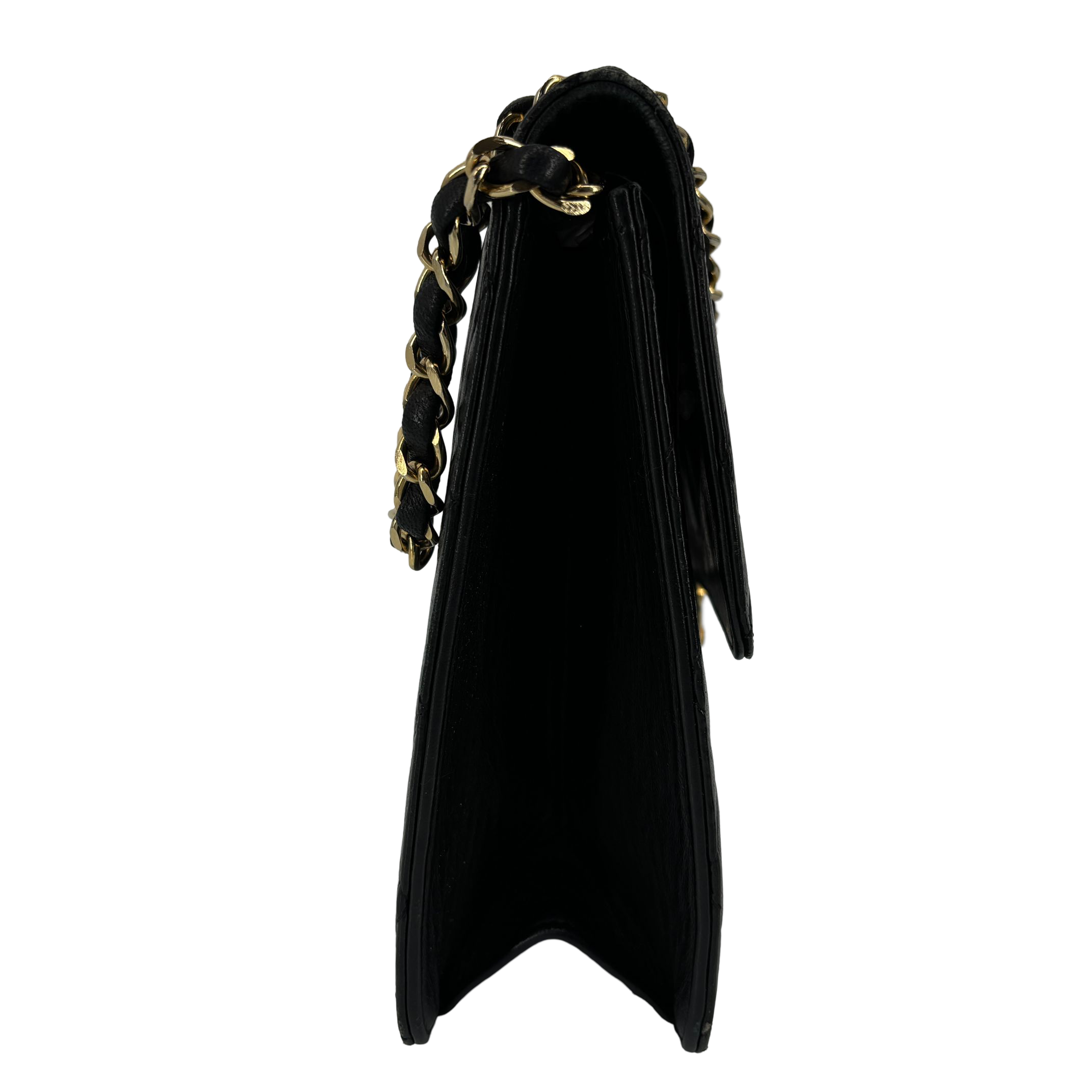 Chanel Single Flap Bag Push-Lock Black Matelassé Leather incl. Dustbag