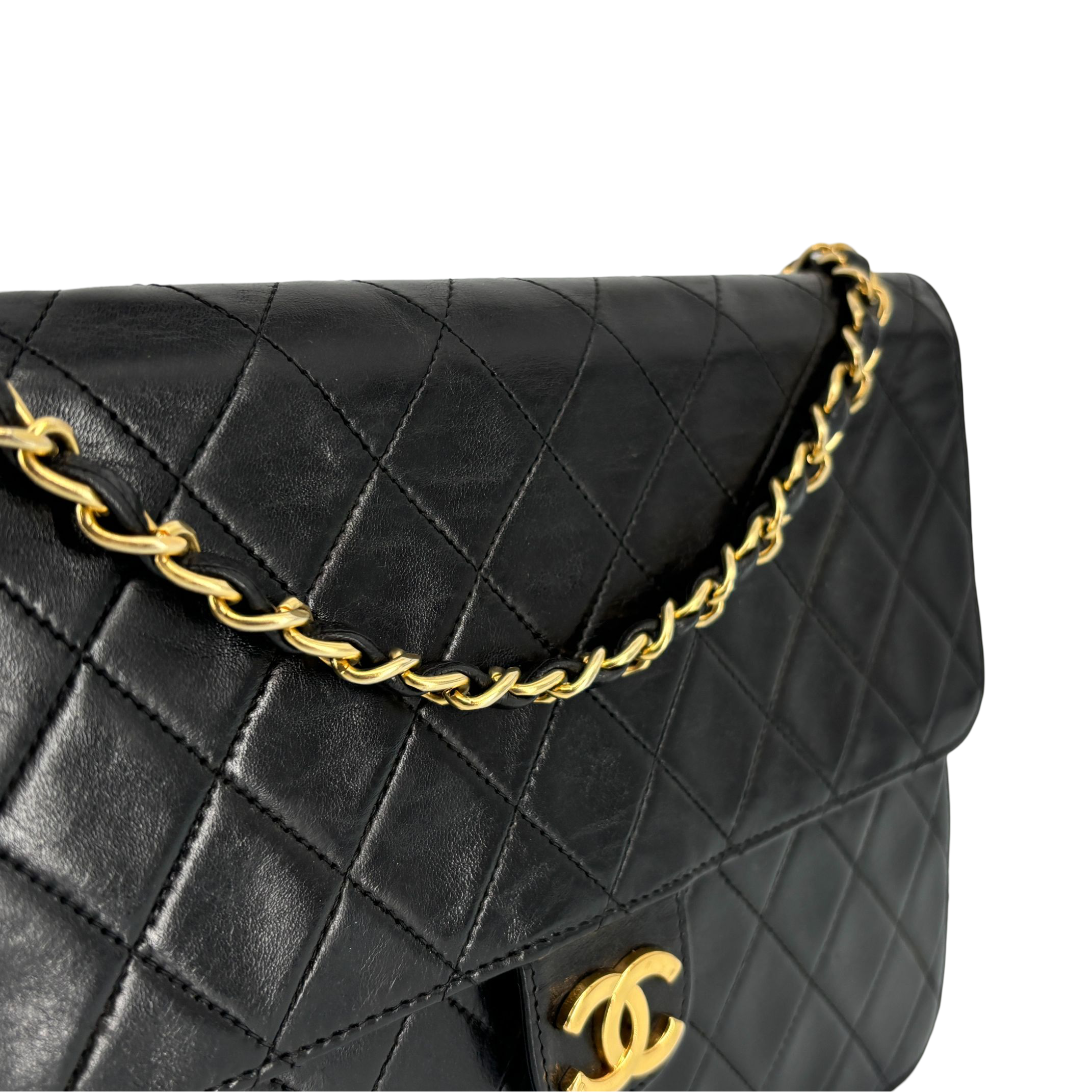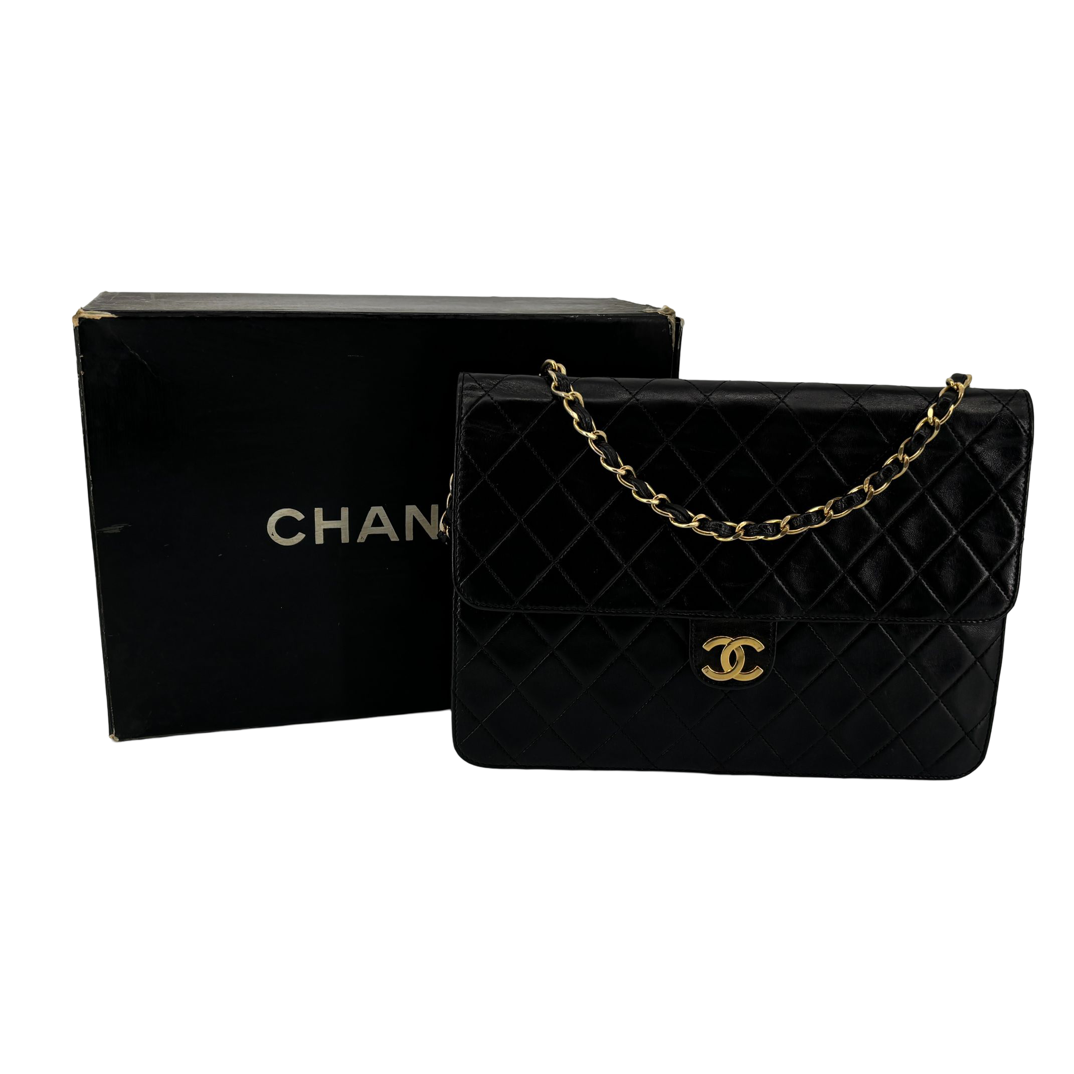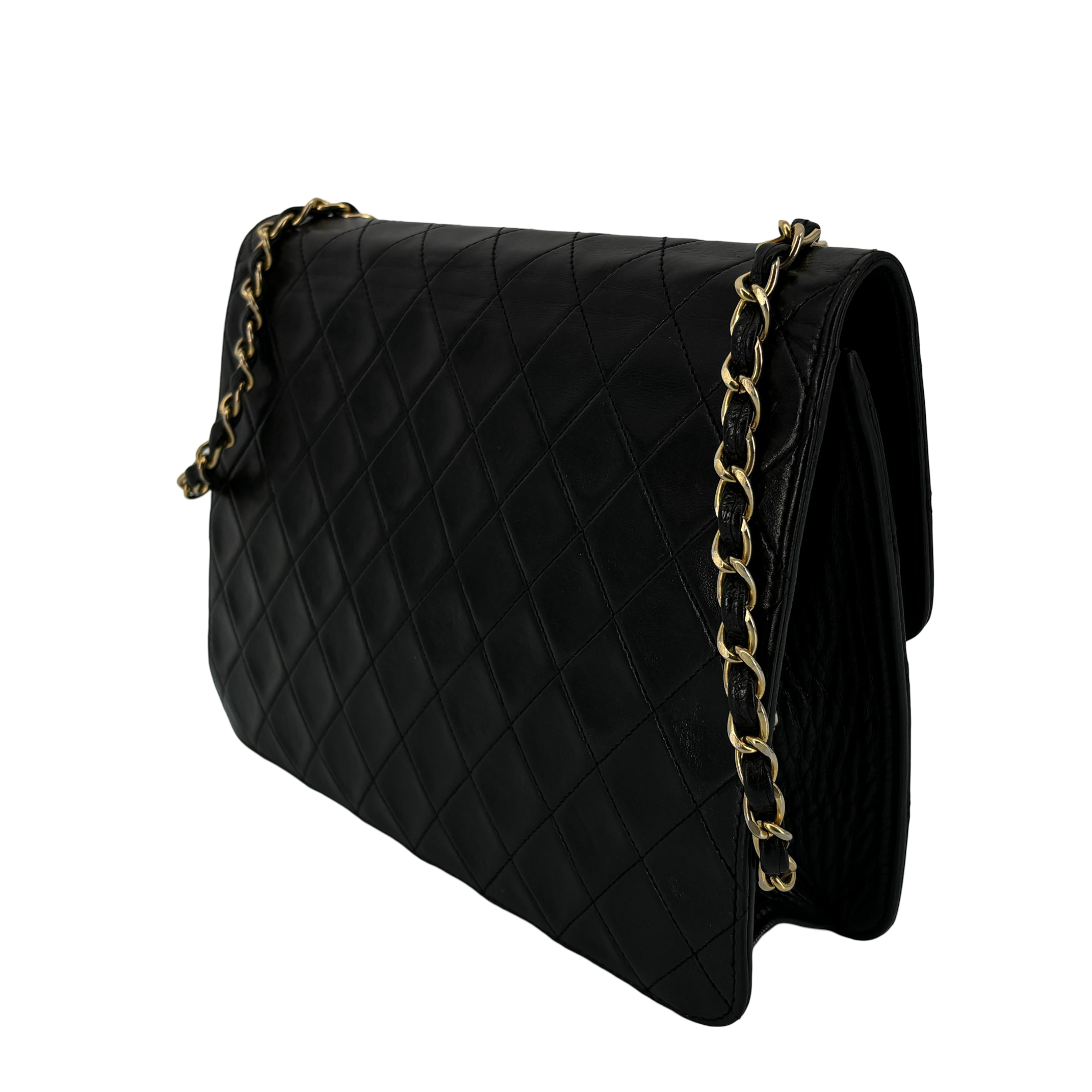 Chanel Single Flap Bag Push-Lock Black Matelassé Leather incl. Box