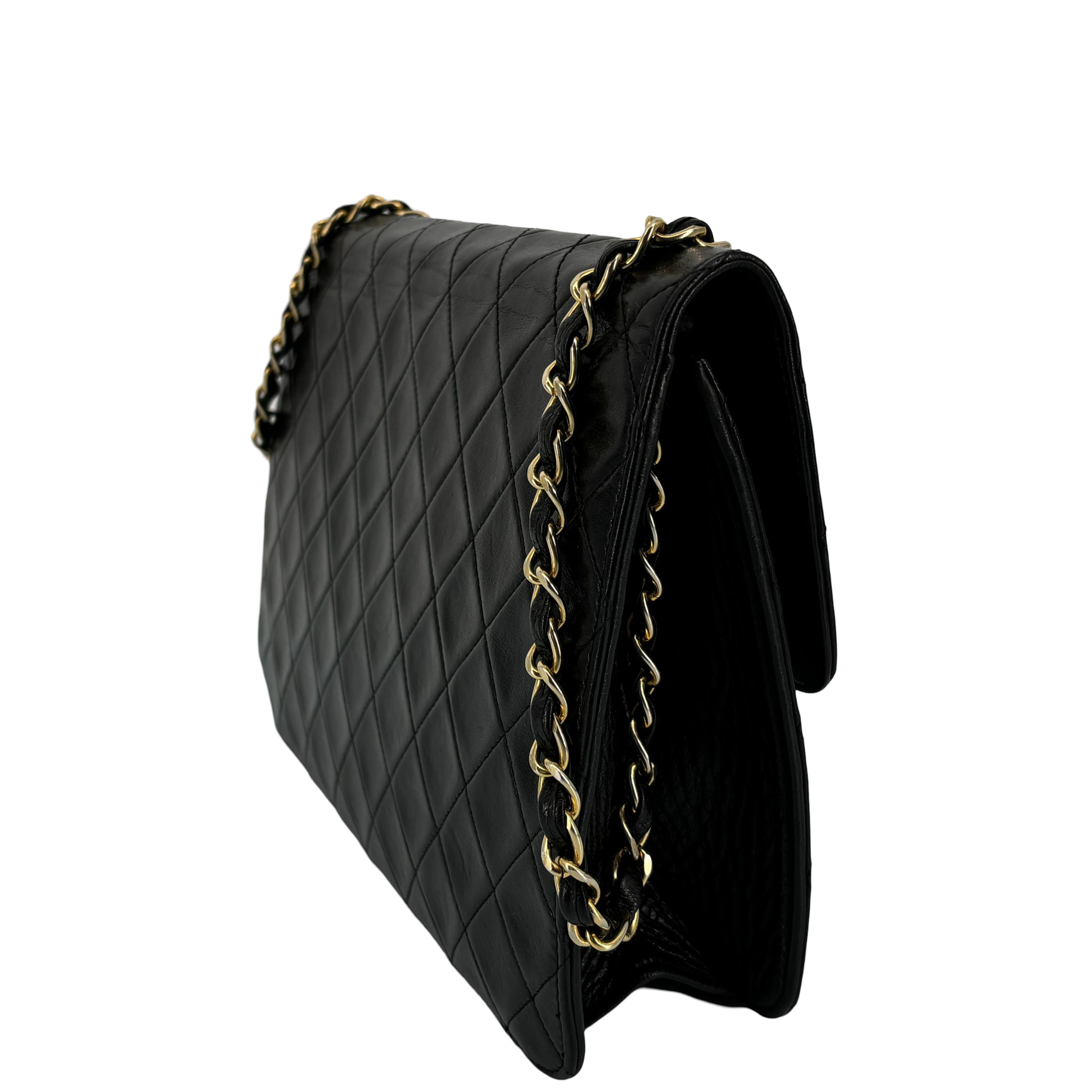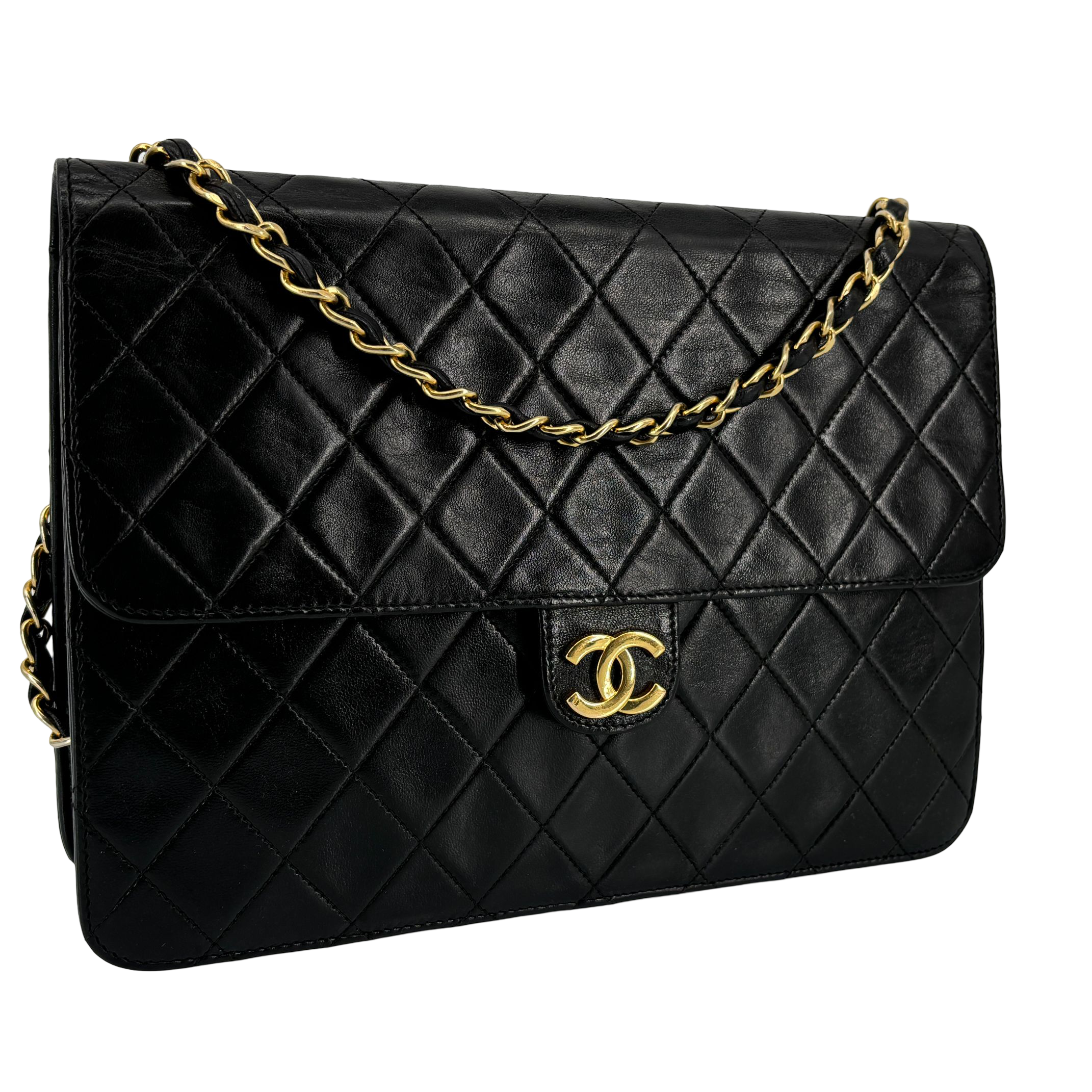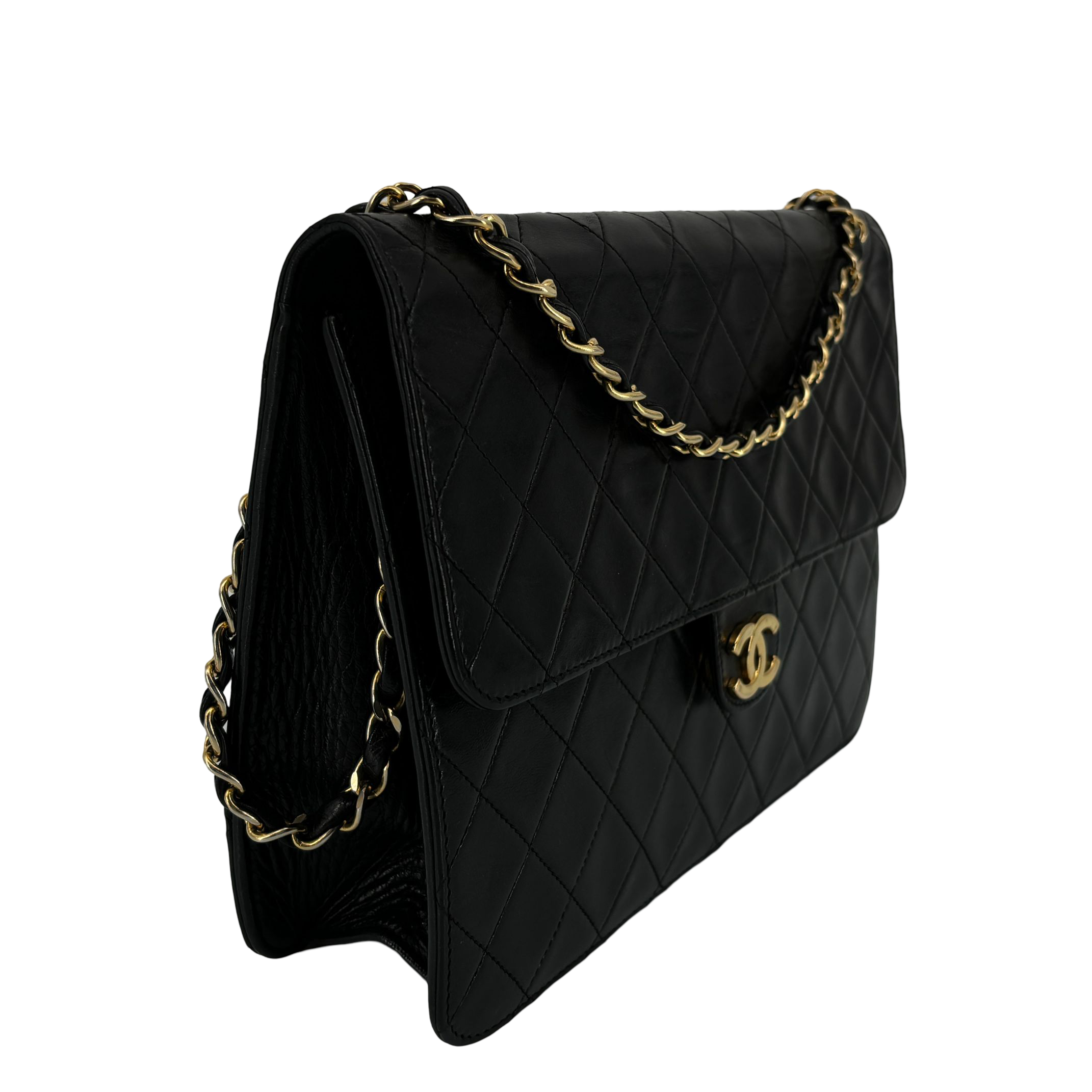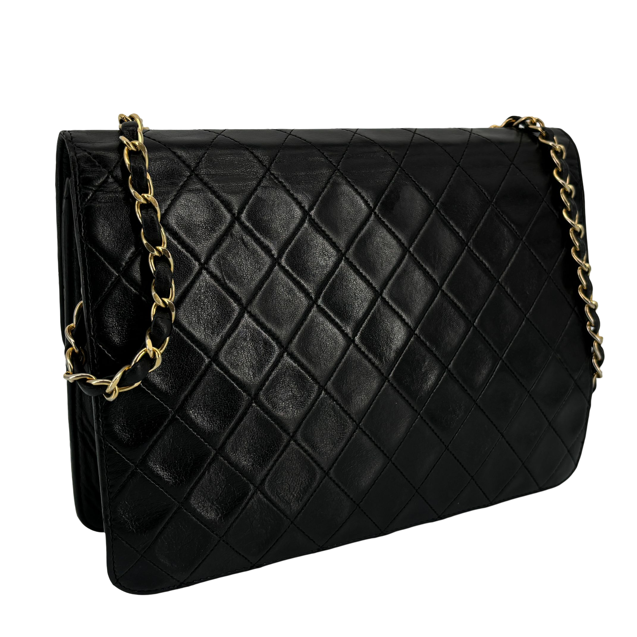 Chanel Single Flap Bag Push-Lock Black Matelassé Leather incl. Box