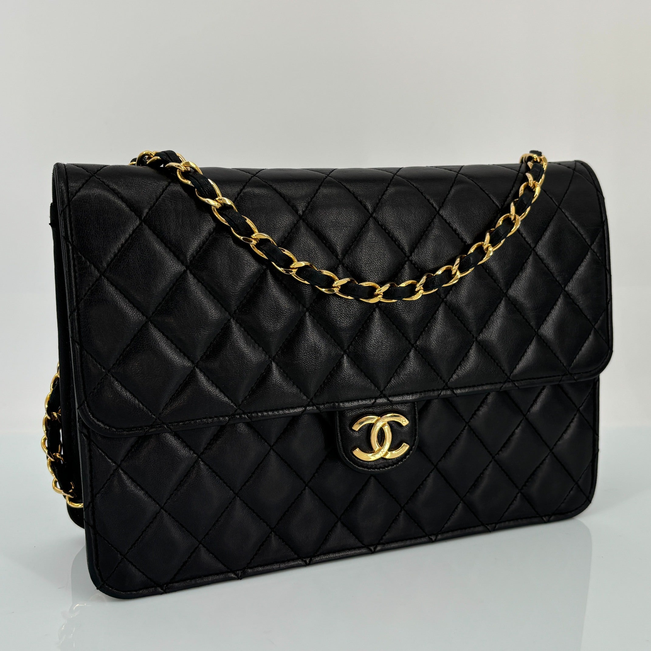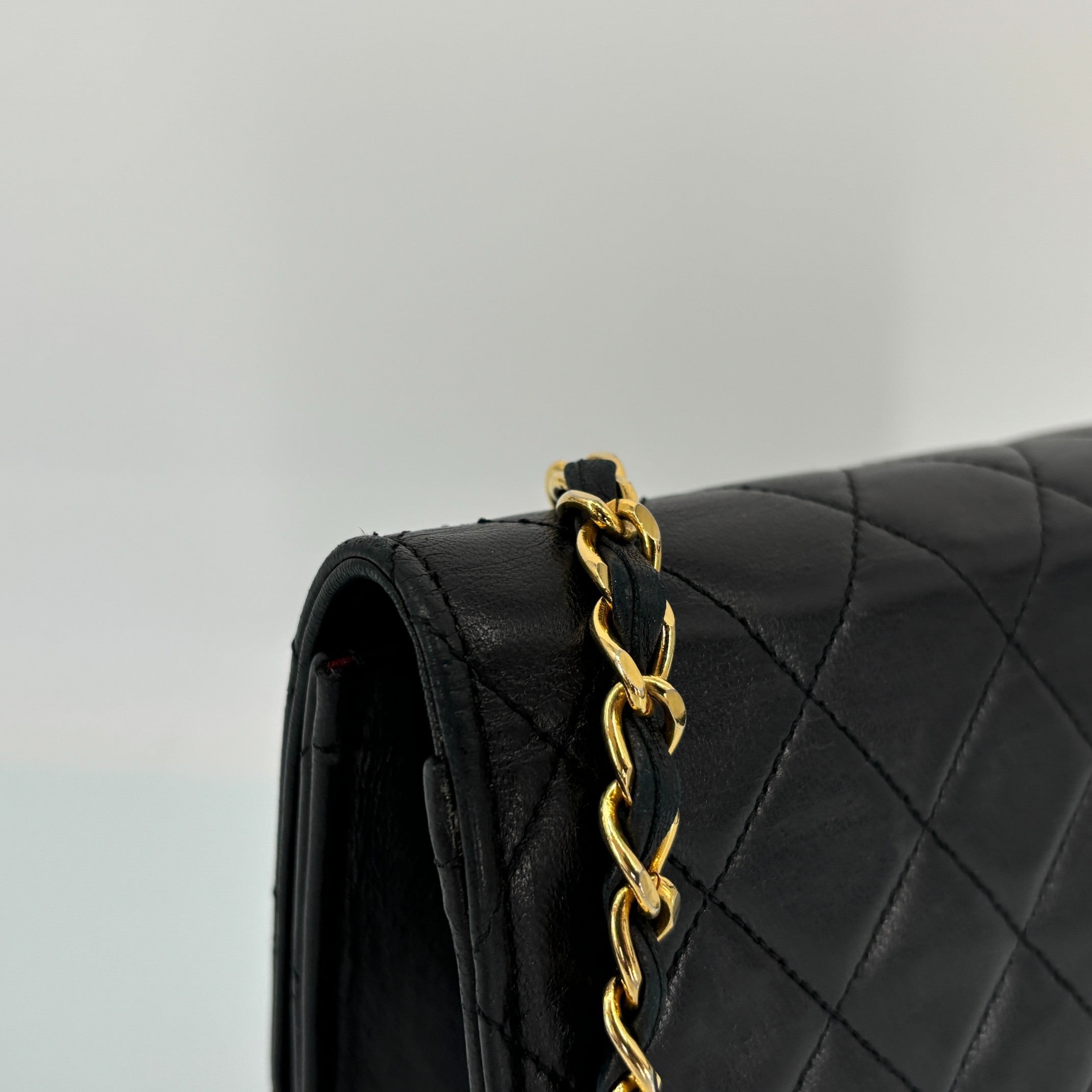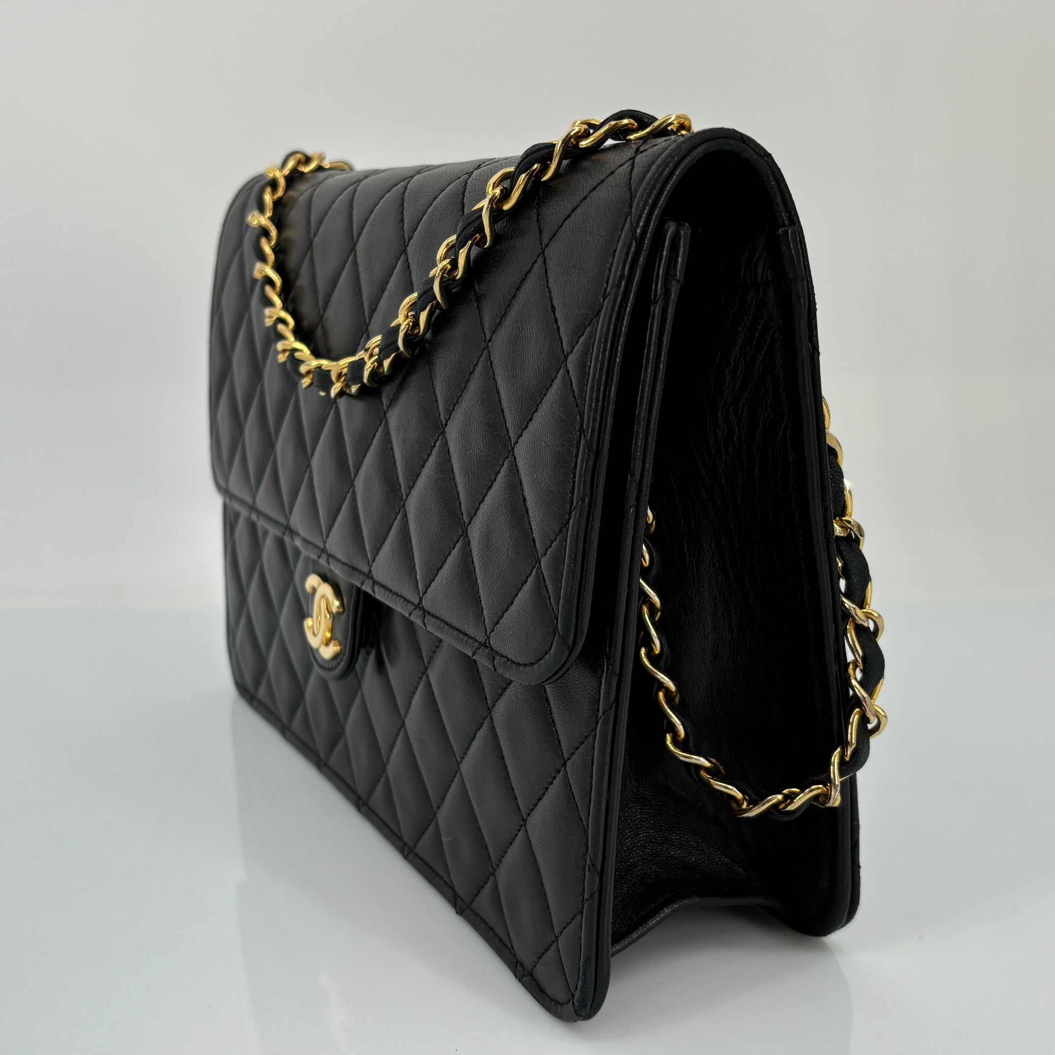 Chanel Single Flap Bag Push-Lock Black Matelassé Leather incl. Dustbag