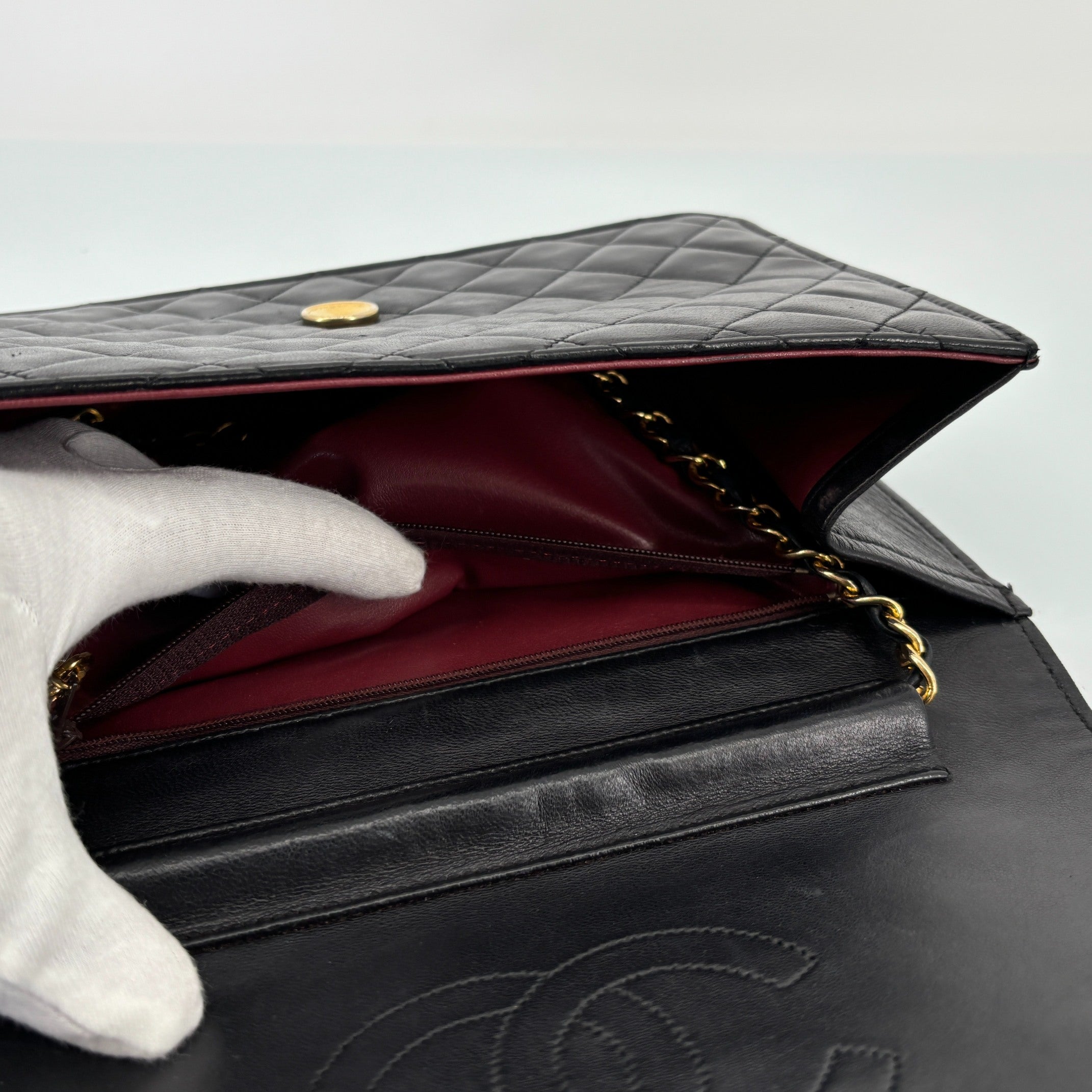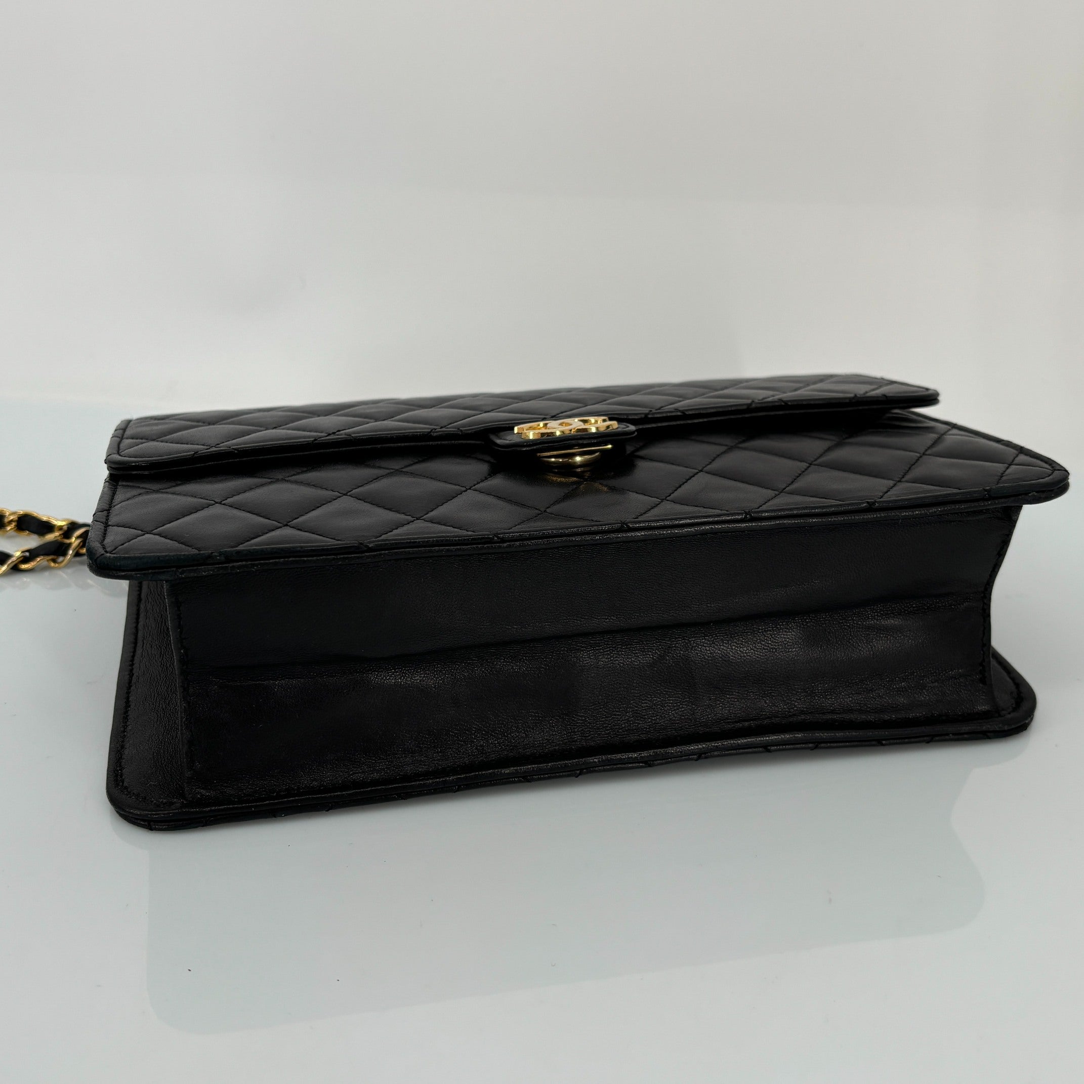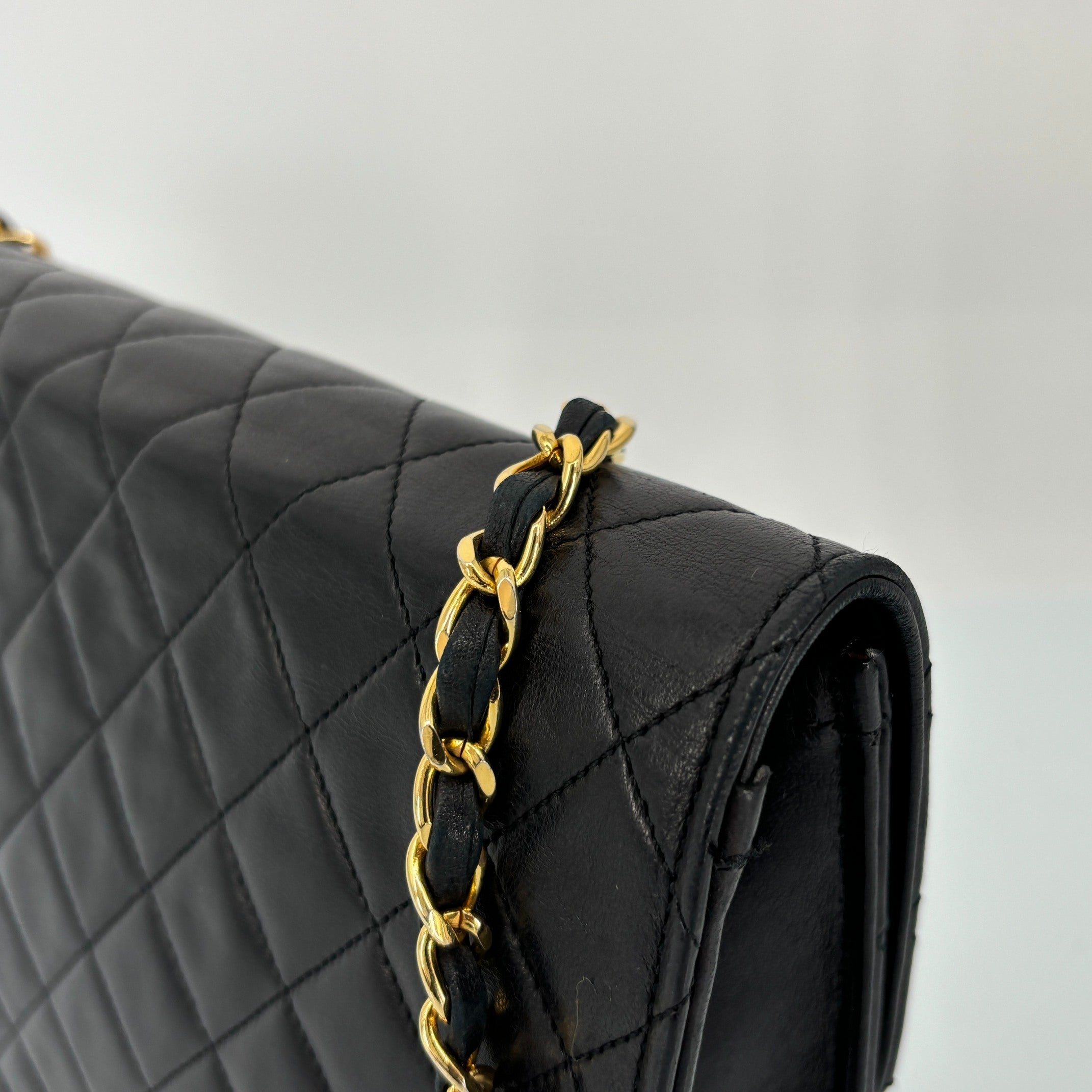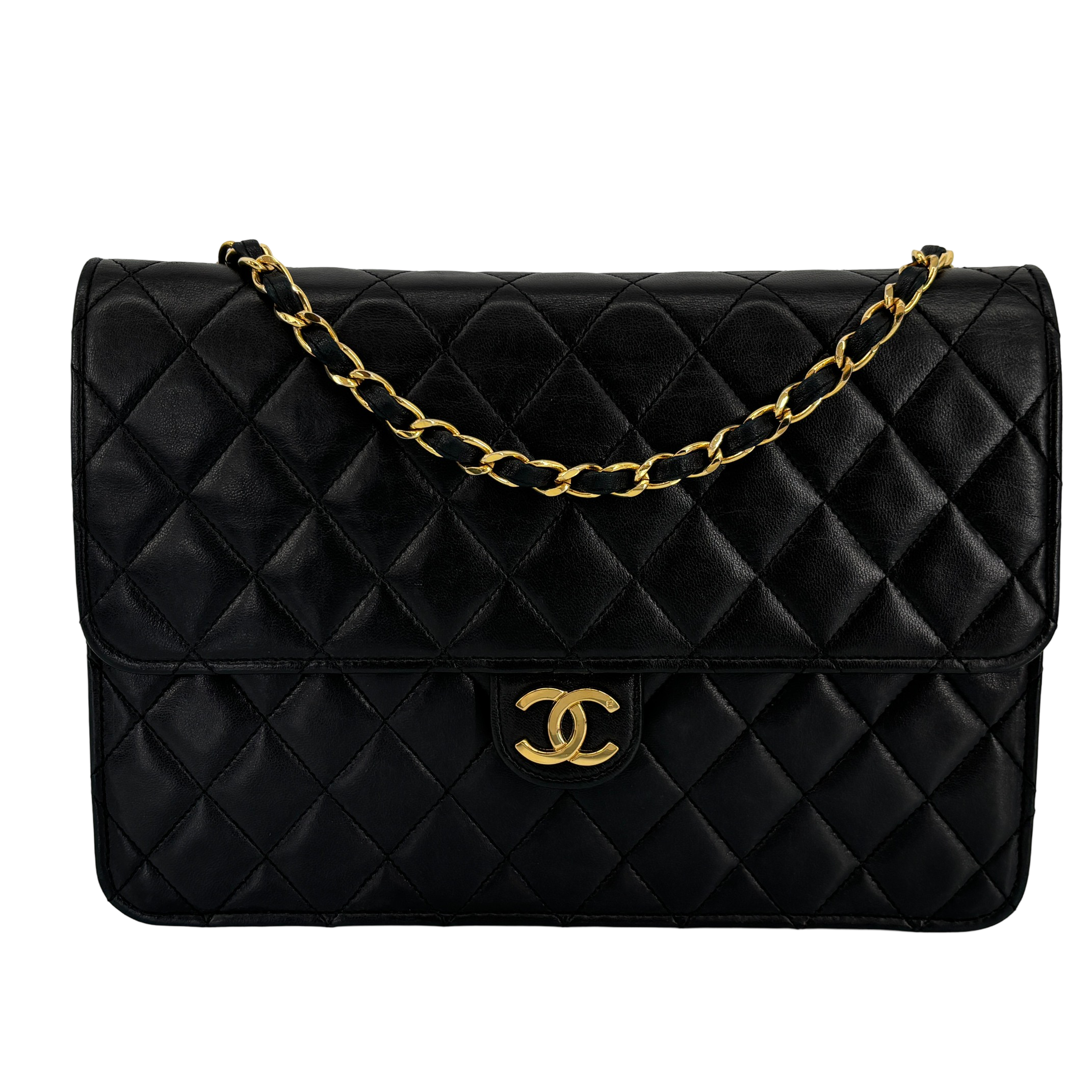 Chanel Single Flap Bag Push-Lock Black Matelassé Leather incl. Dustbag