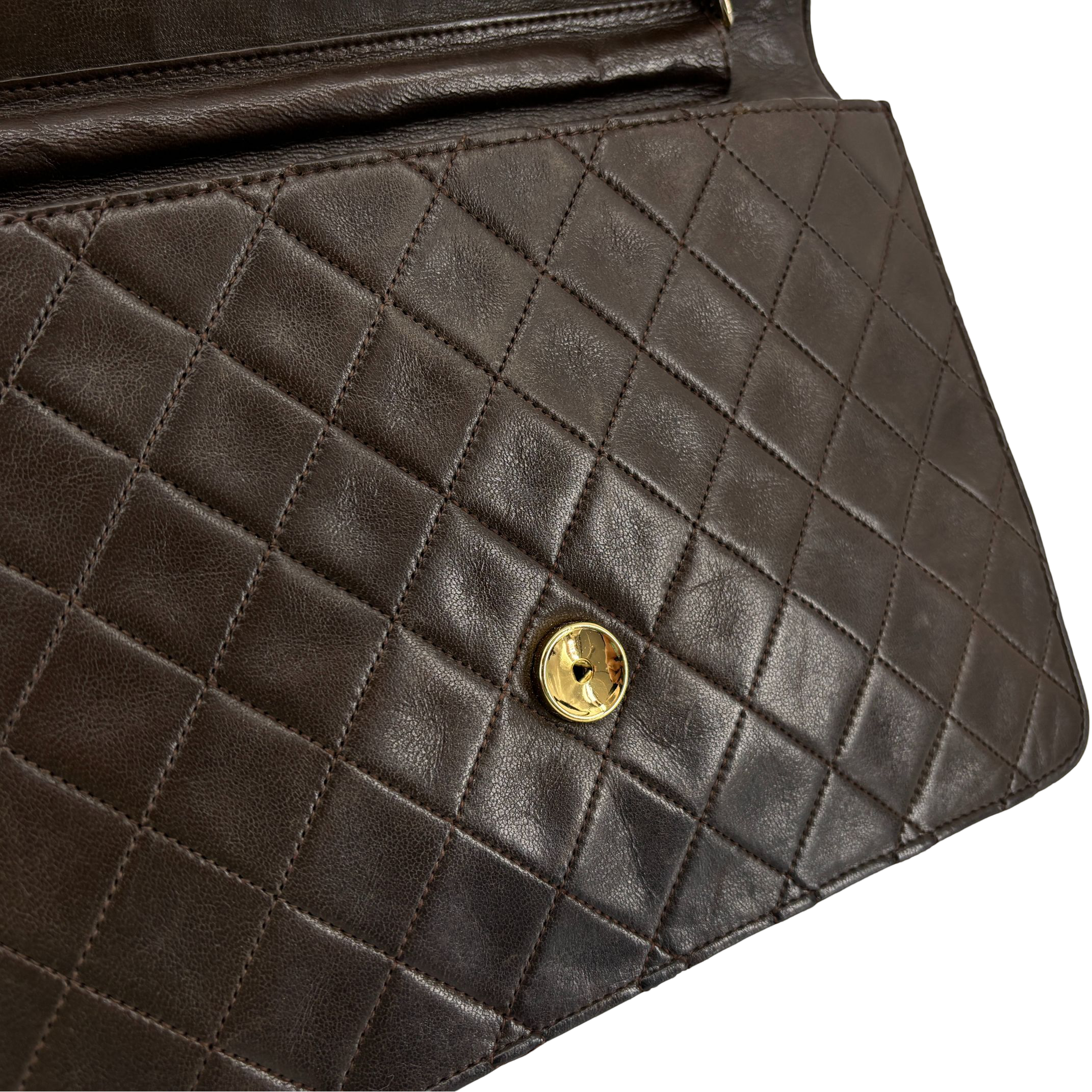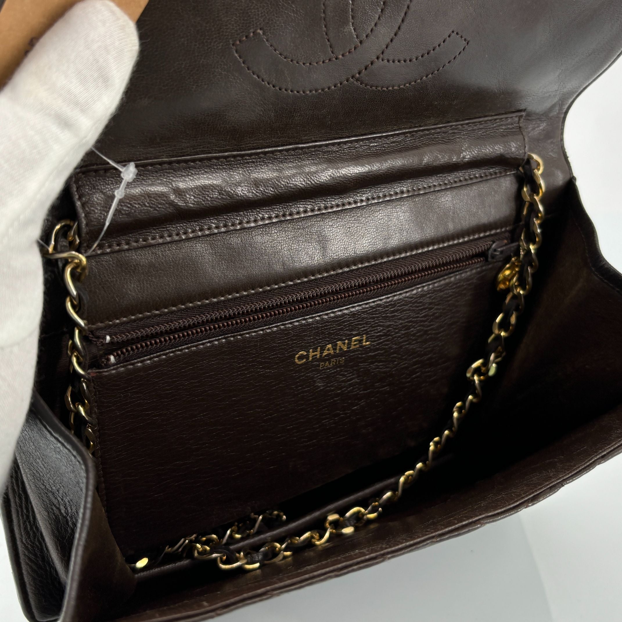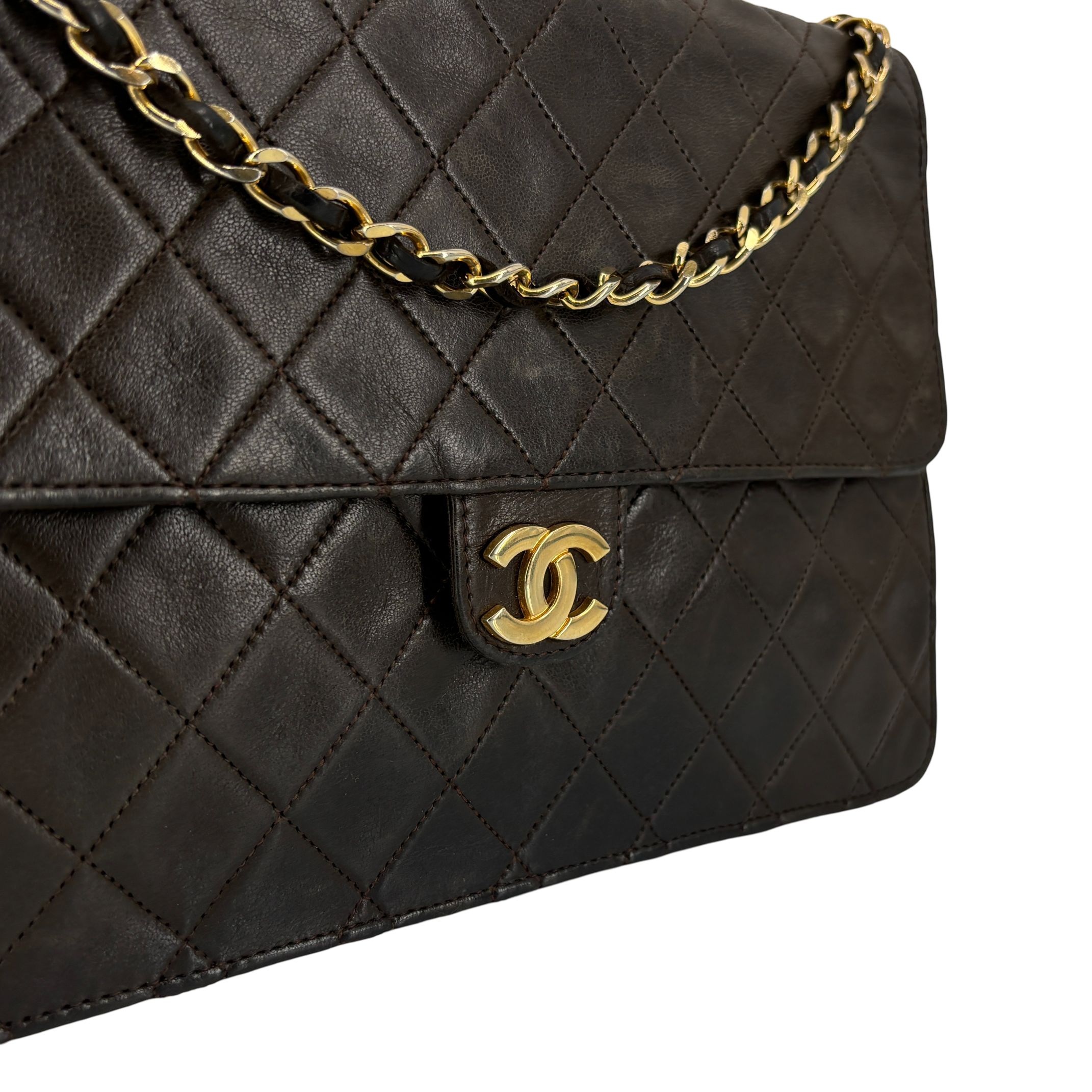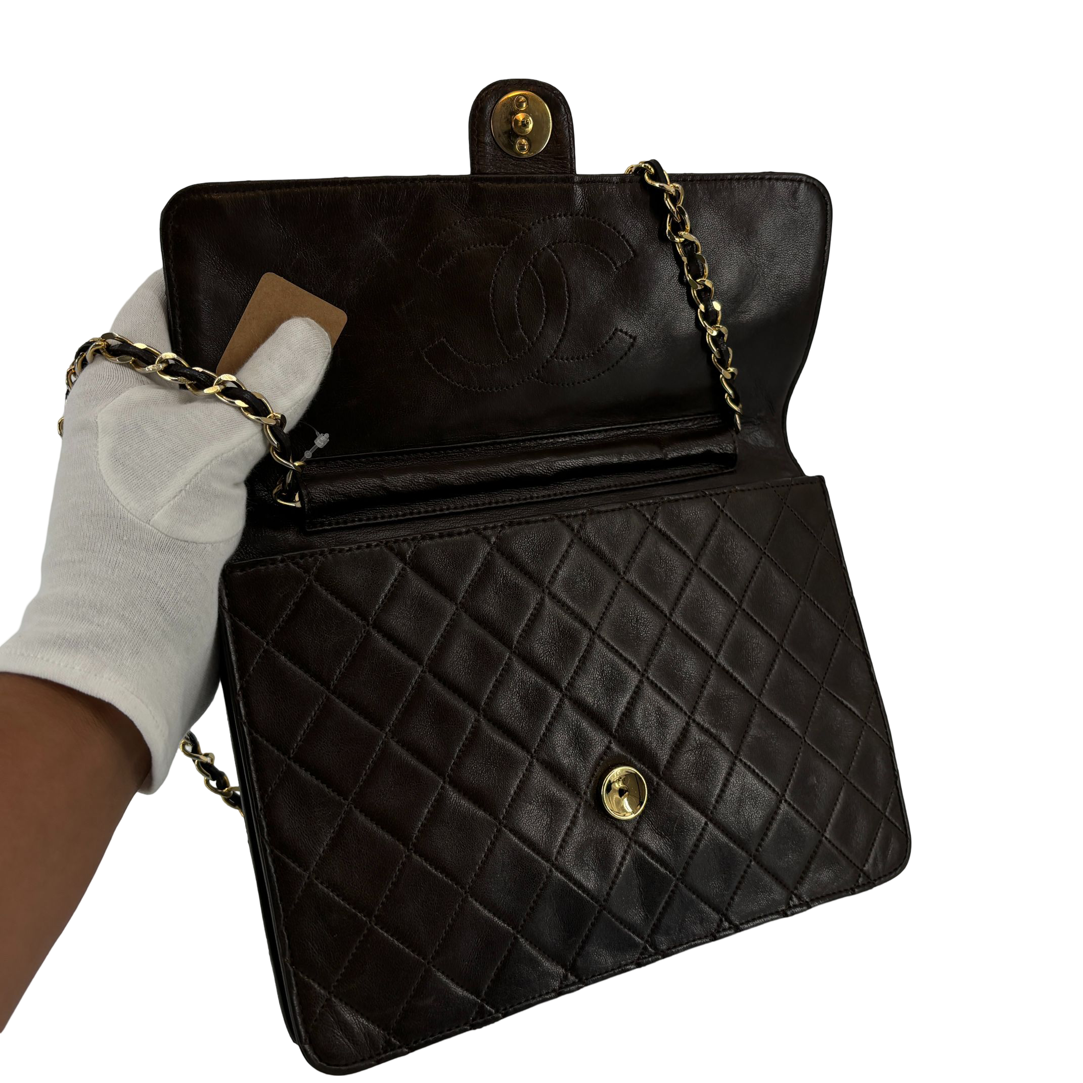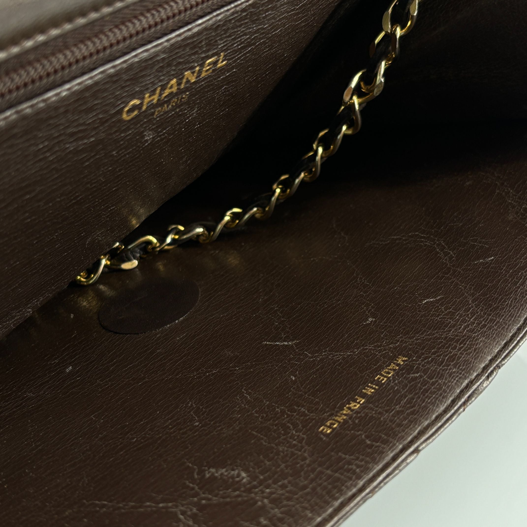 - Chanel Single Flap Bag Push-Lock Brown Matelassé Leather