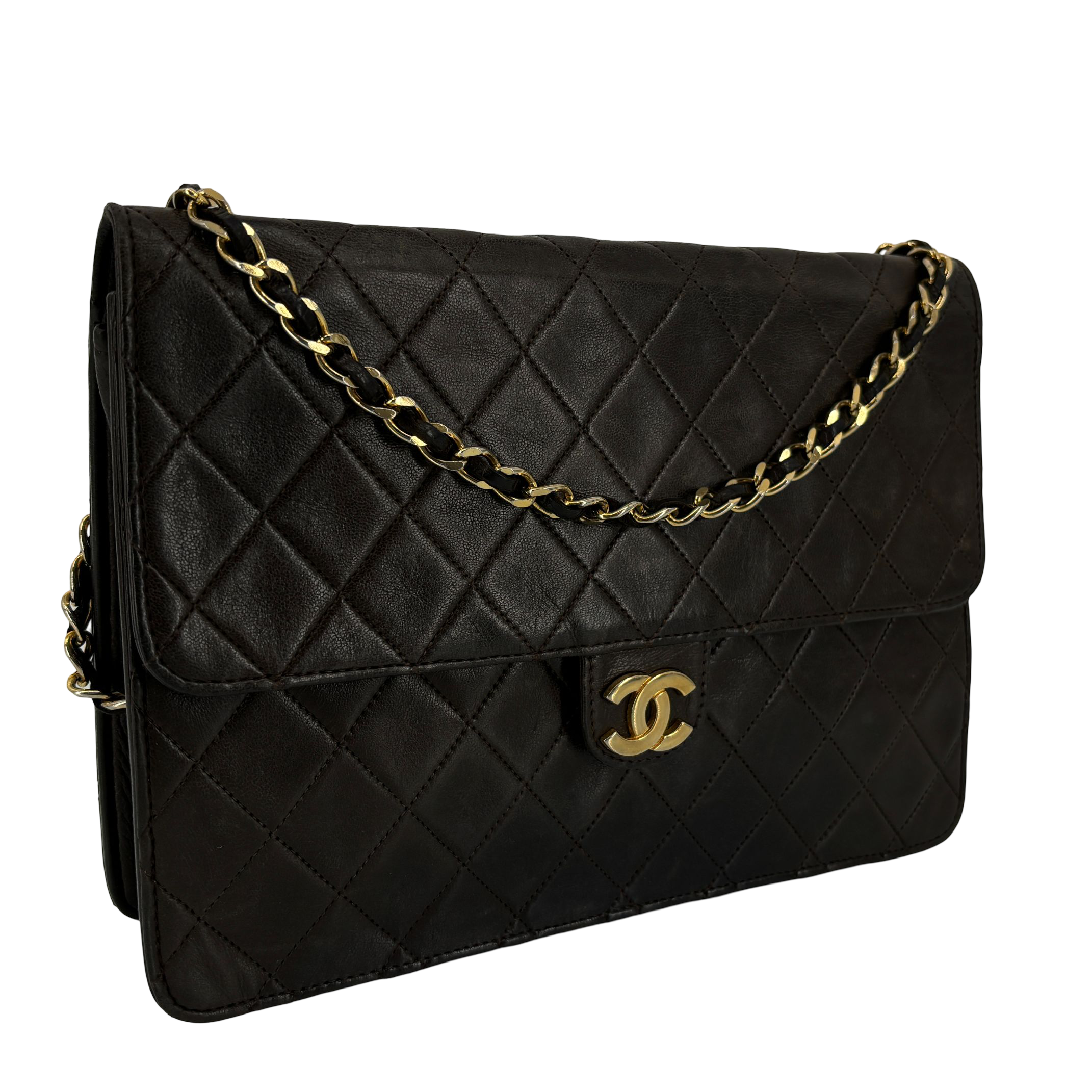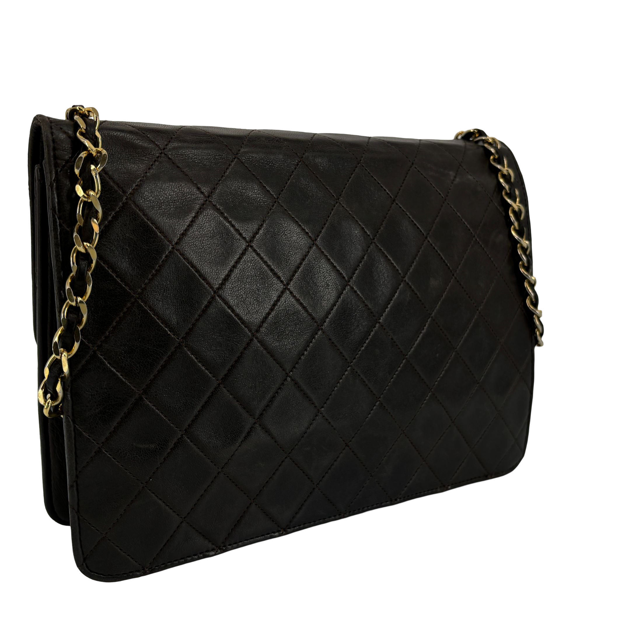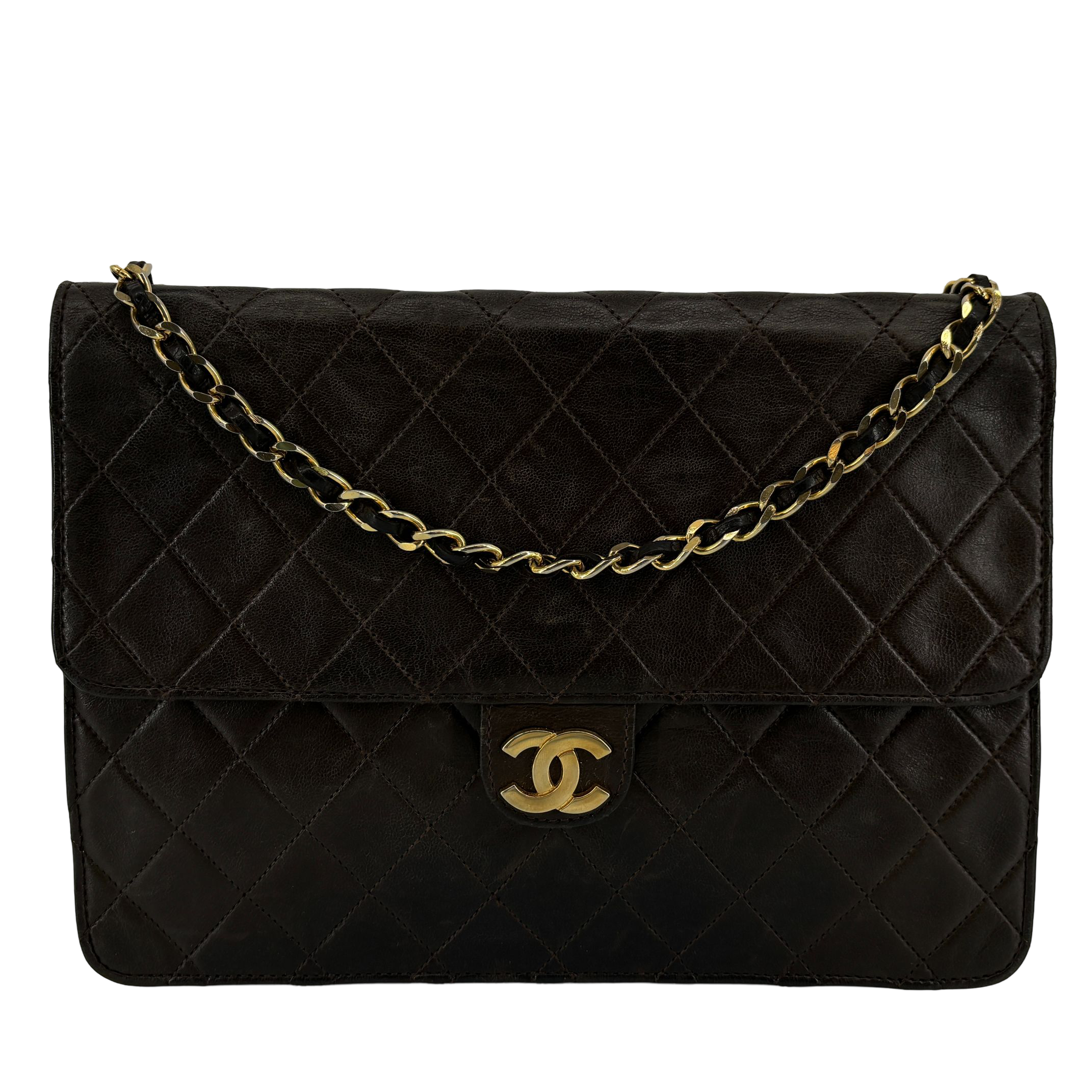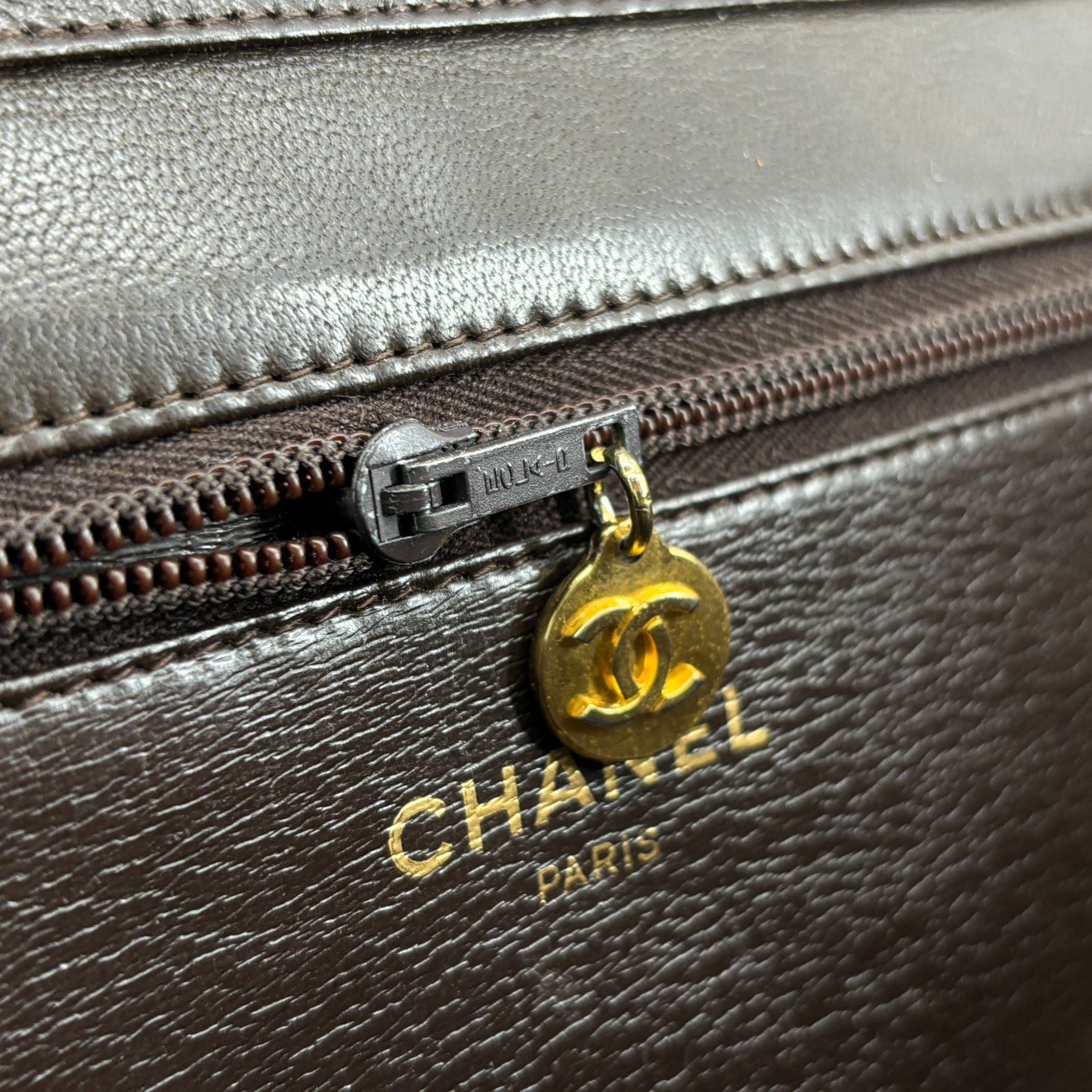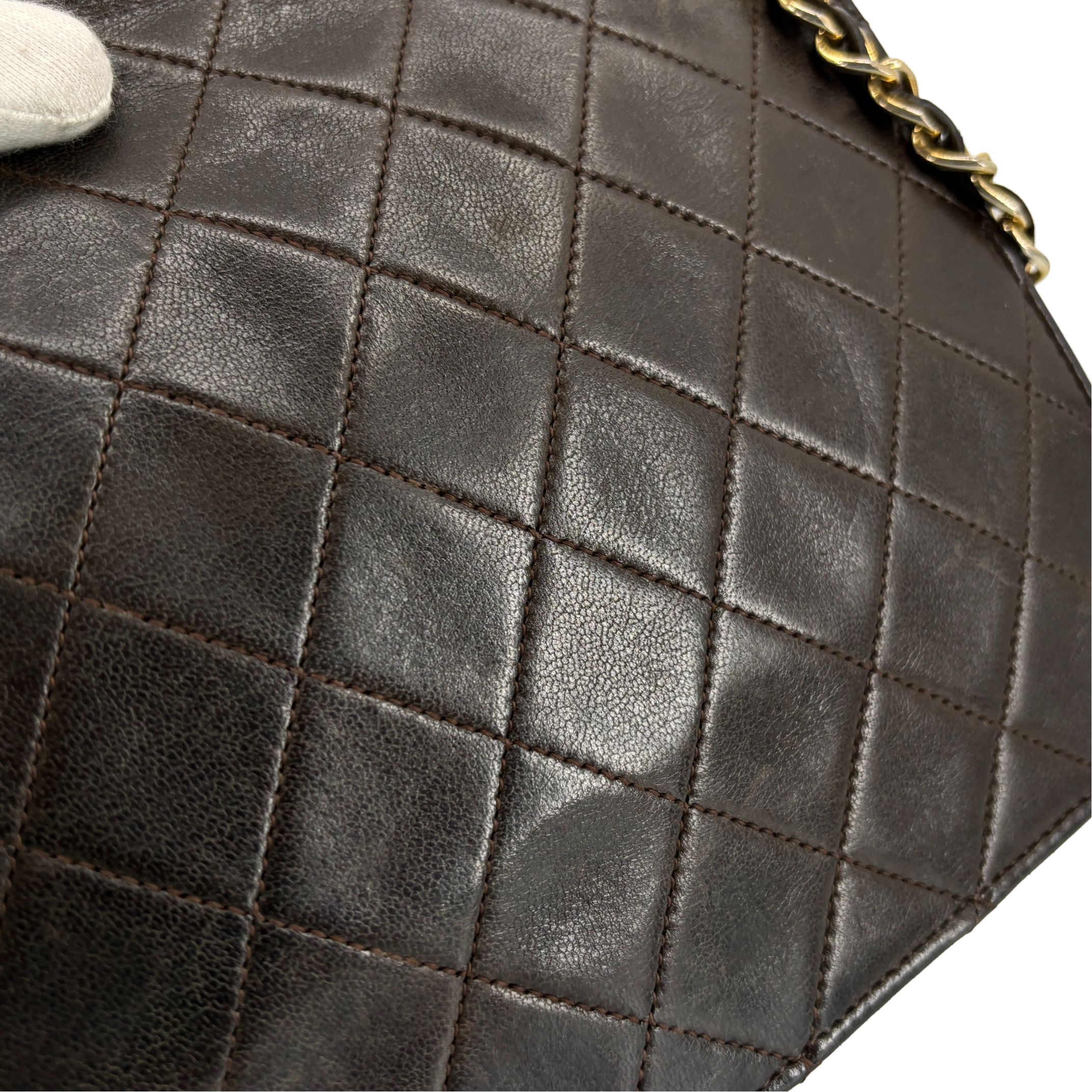 - Chanel Single Flap Bag Push-Lock Brown Matelassé Leather