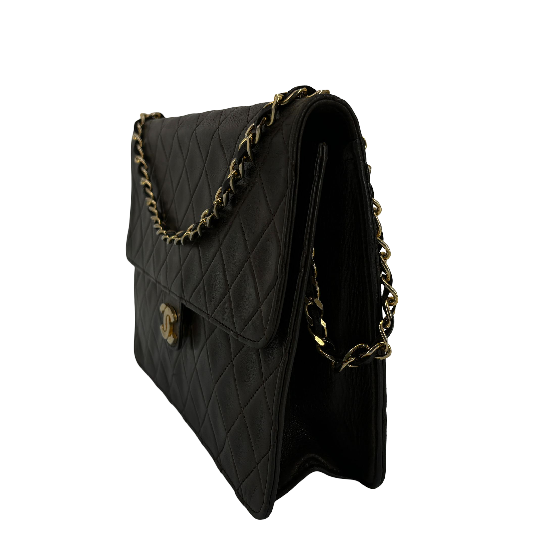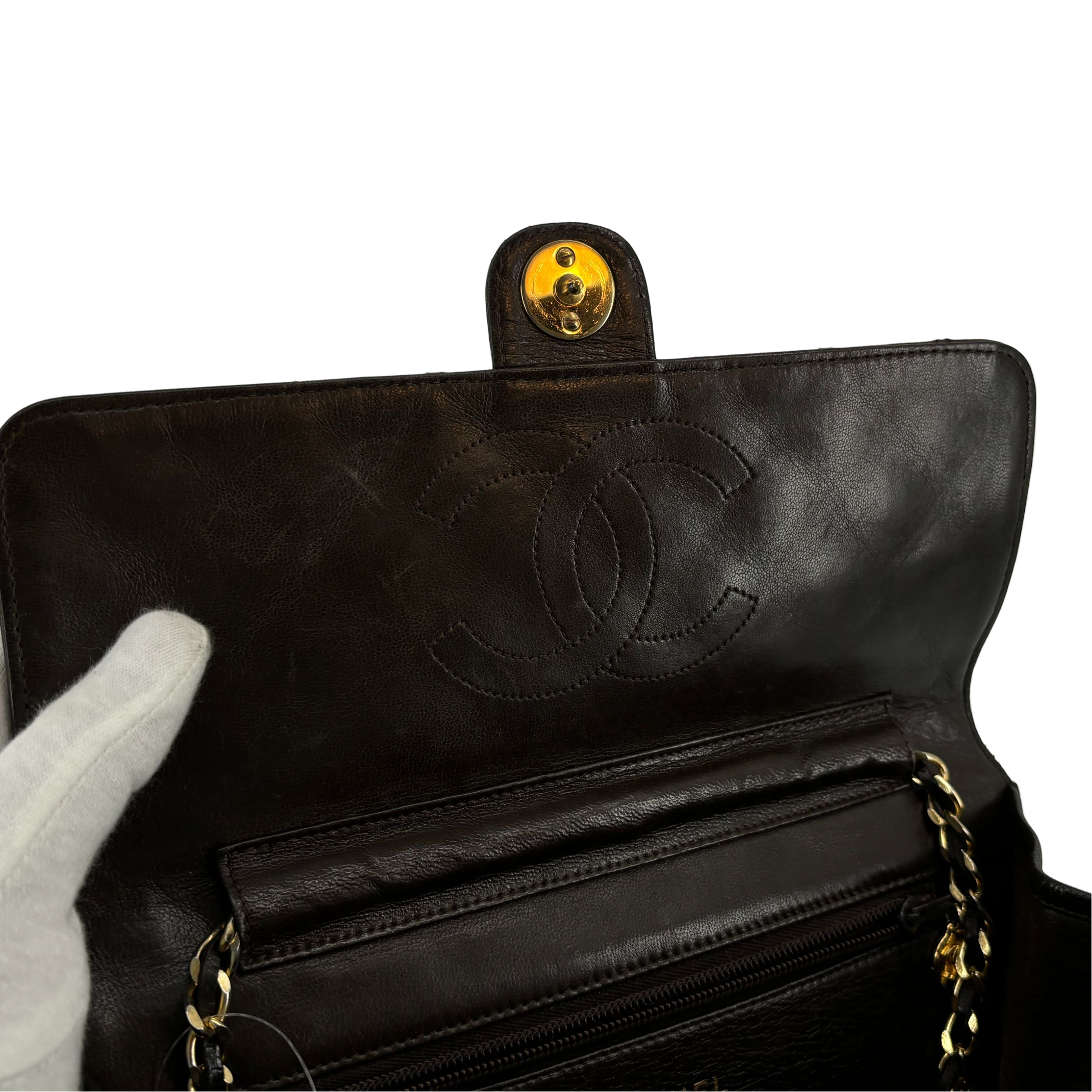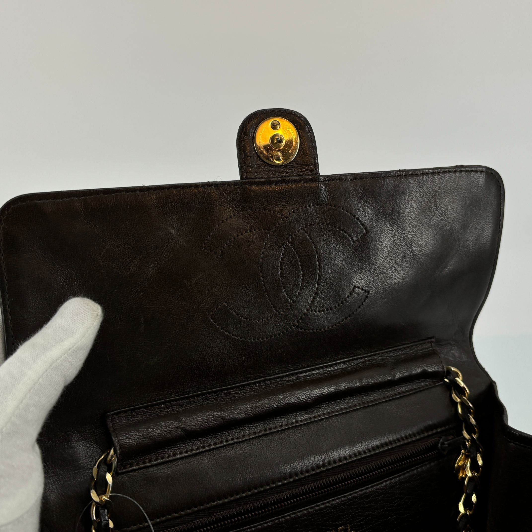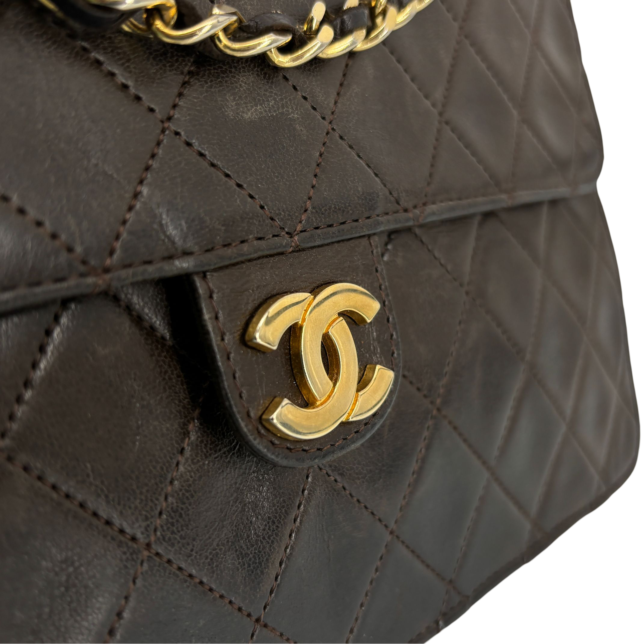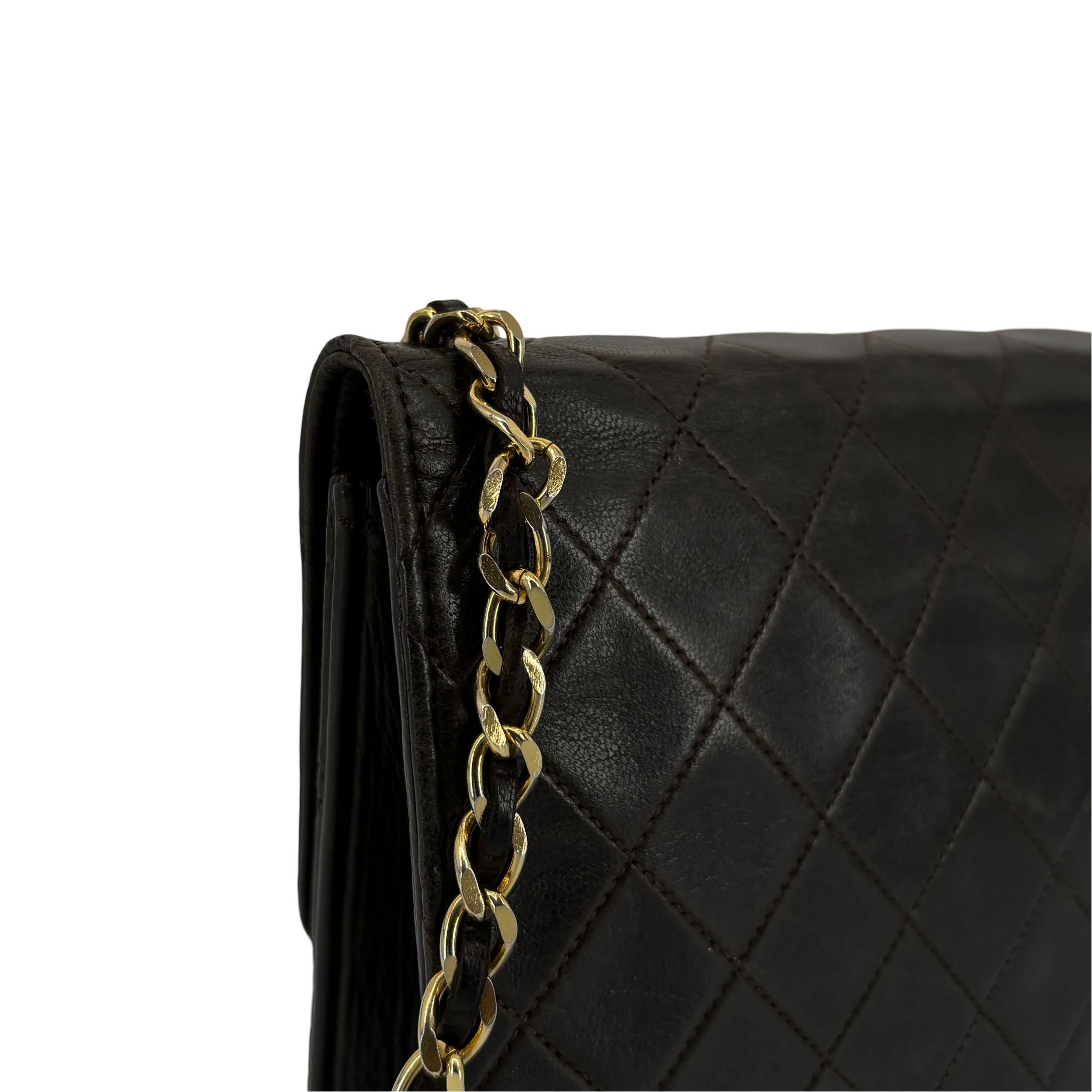 - Chanel Single Flap Bag Push-Lock Brown Matelassé Leather