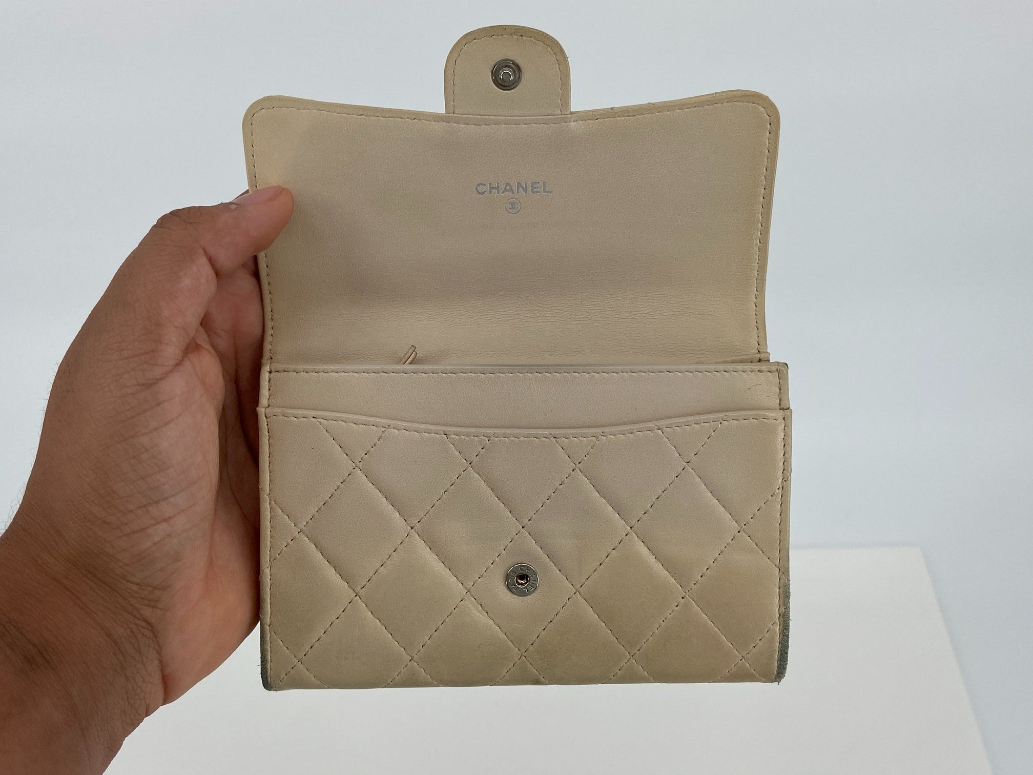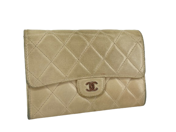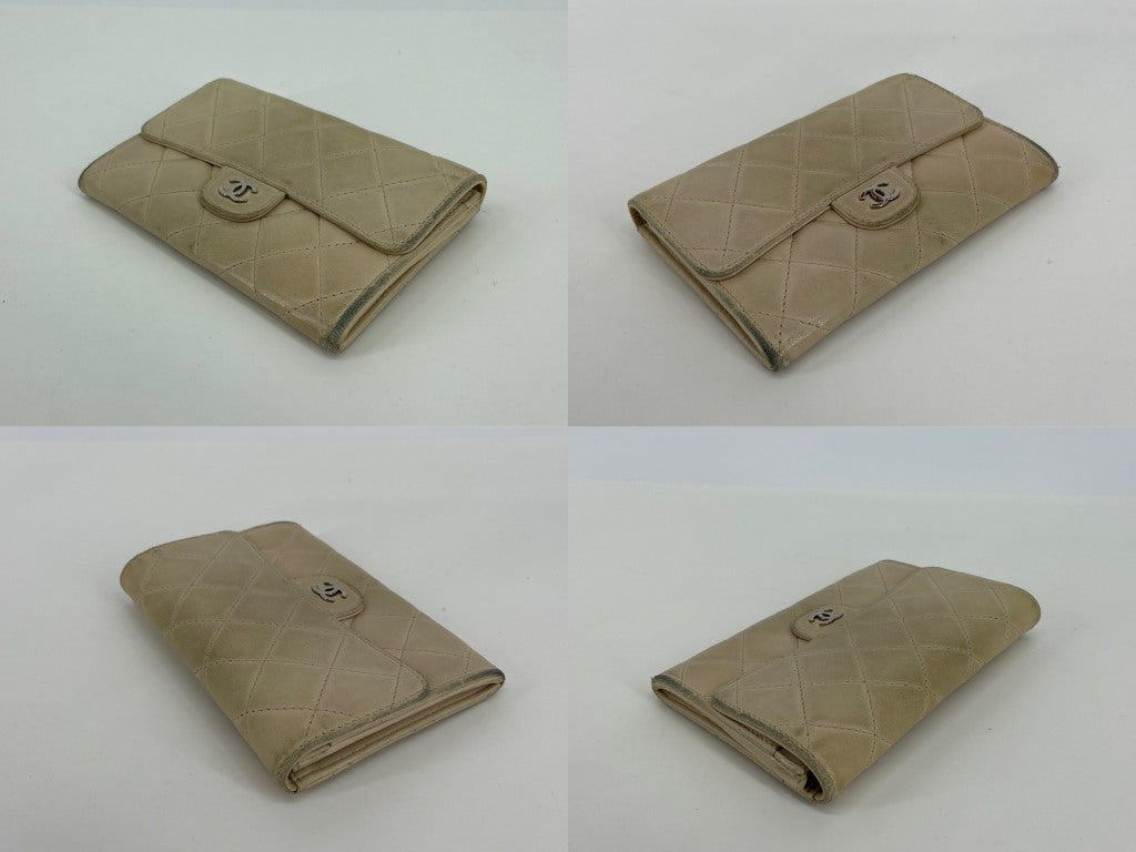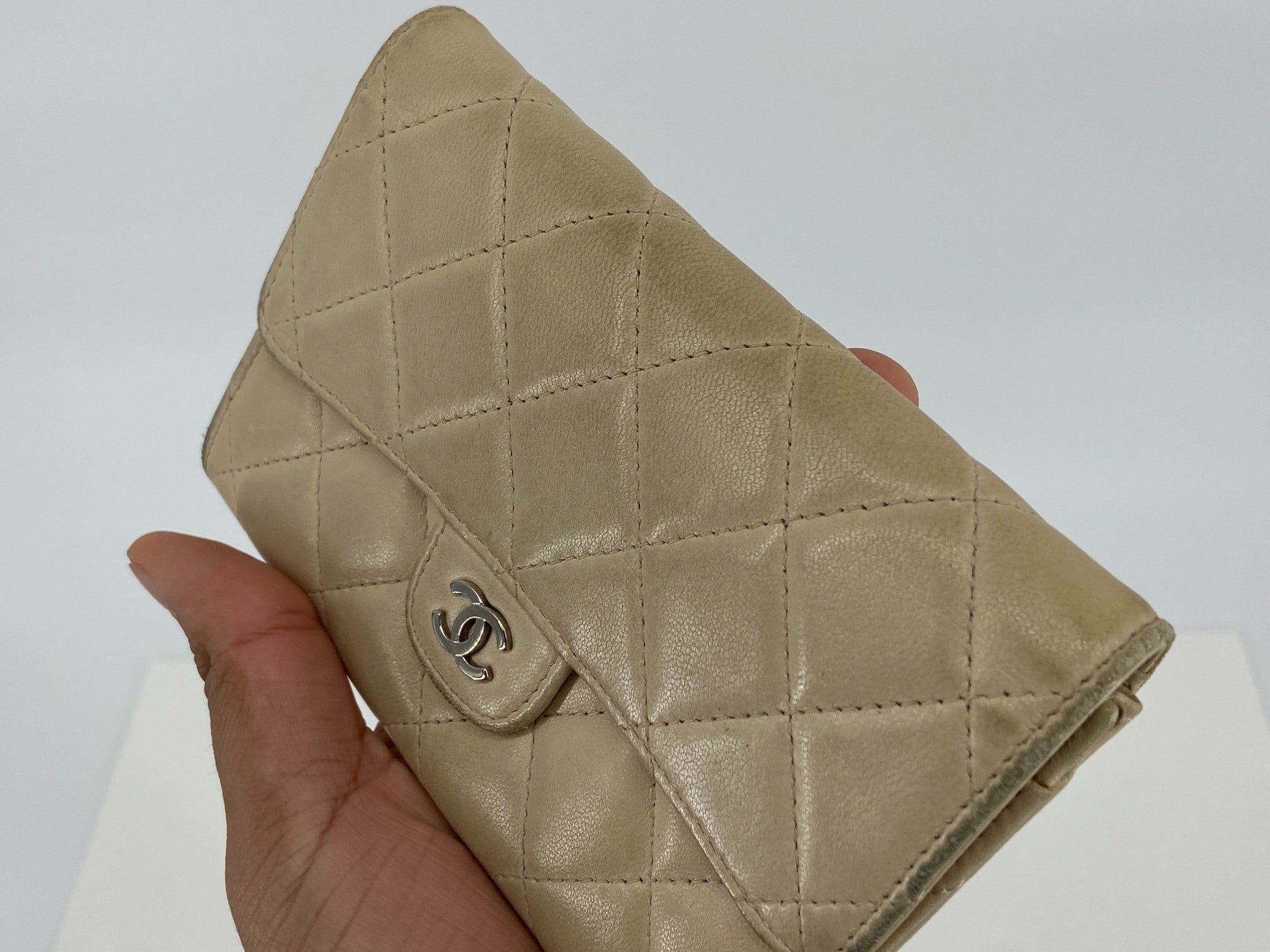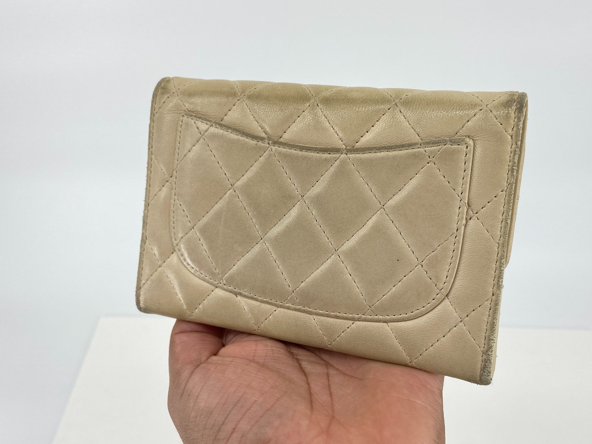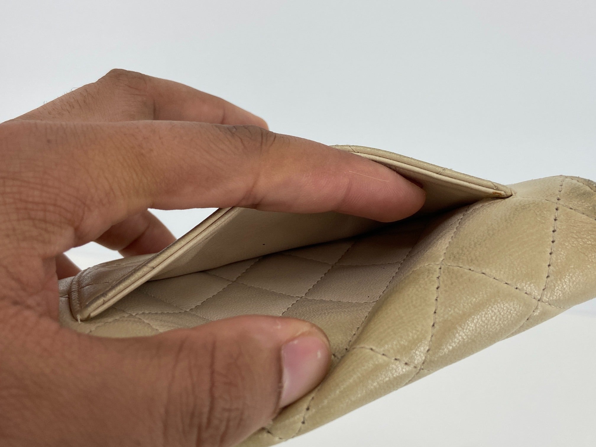 Chanel Timeless / Classic Matelasse Flap Wallet Beige Leather