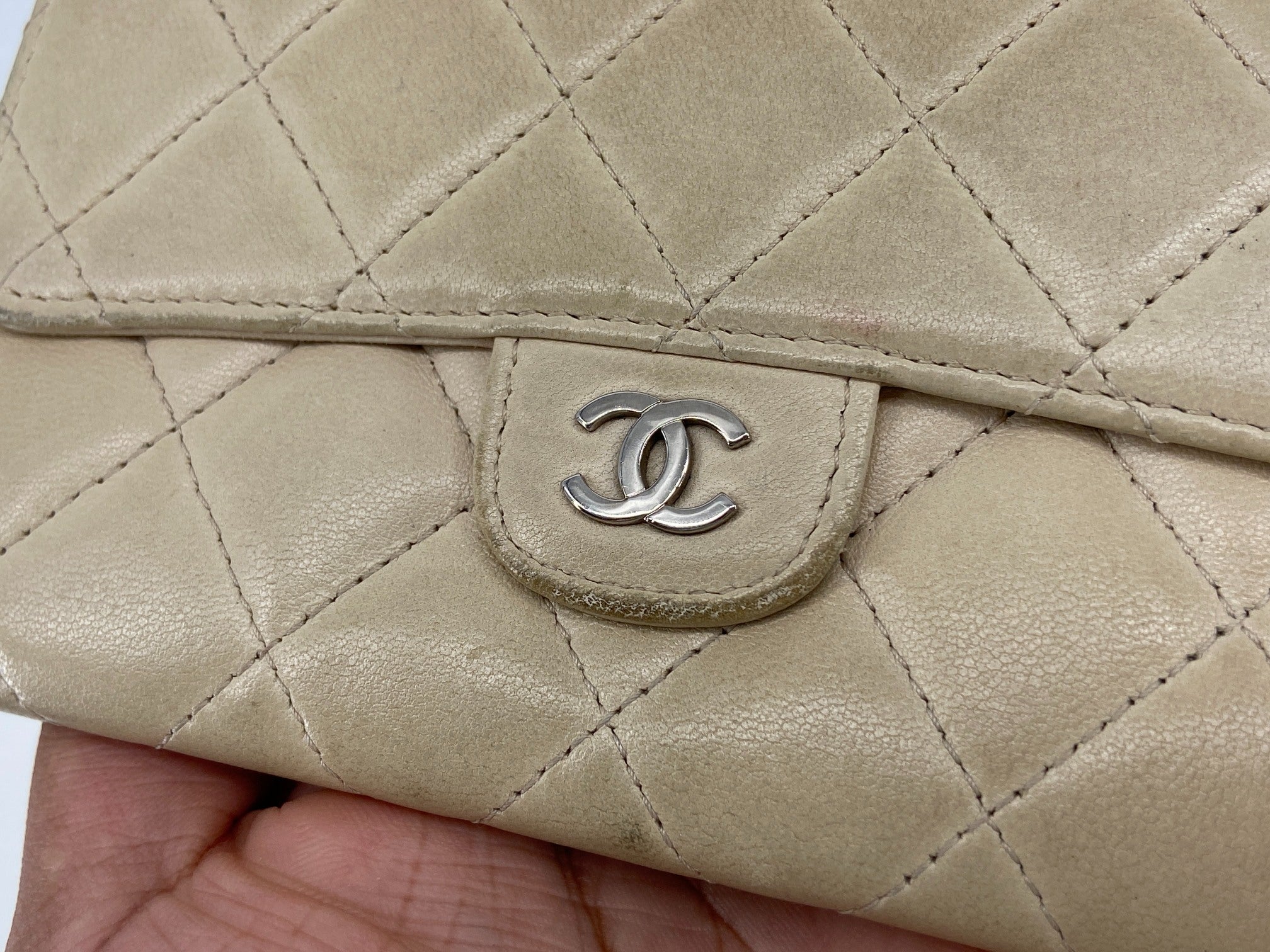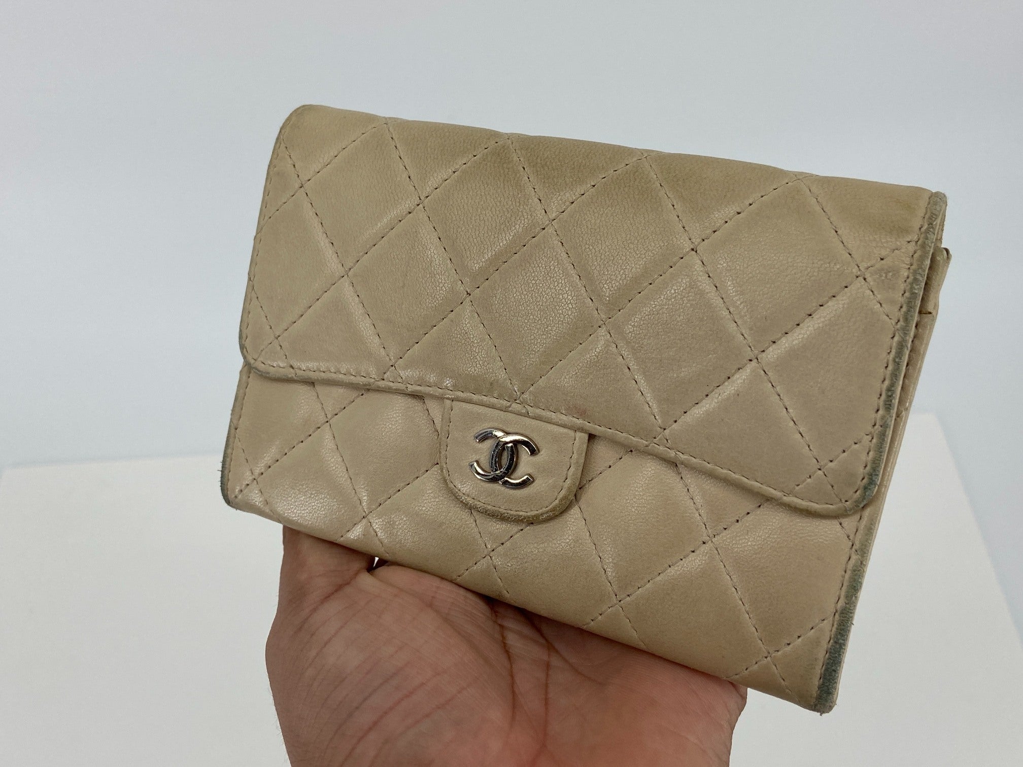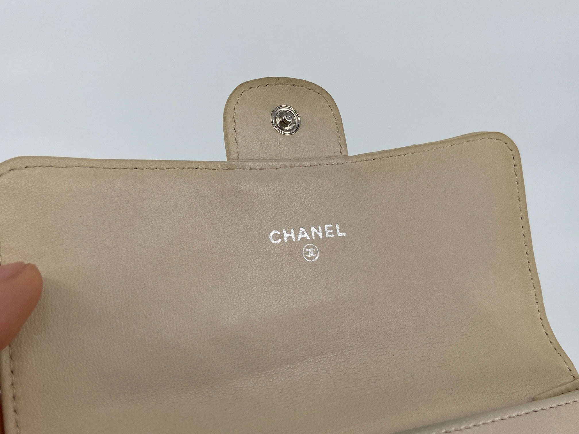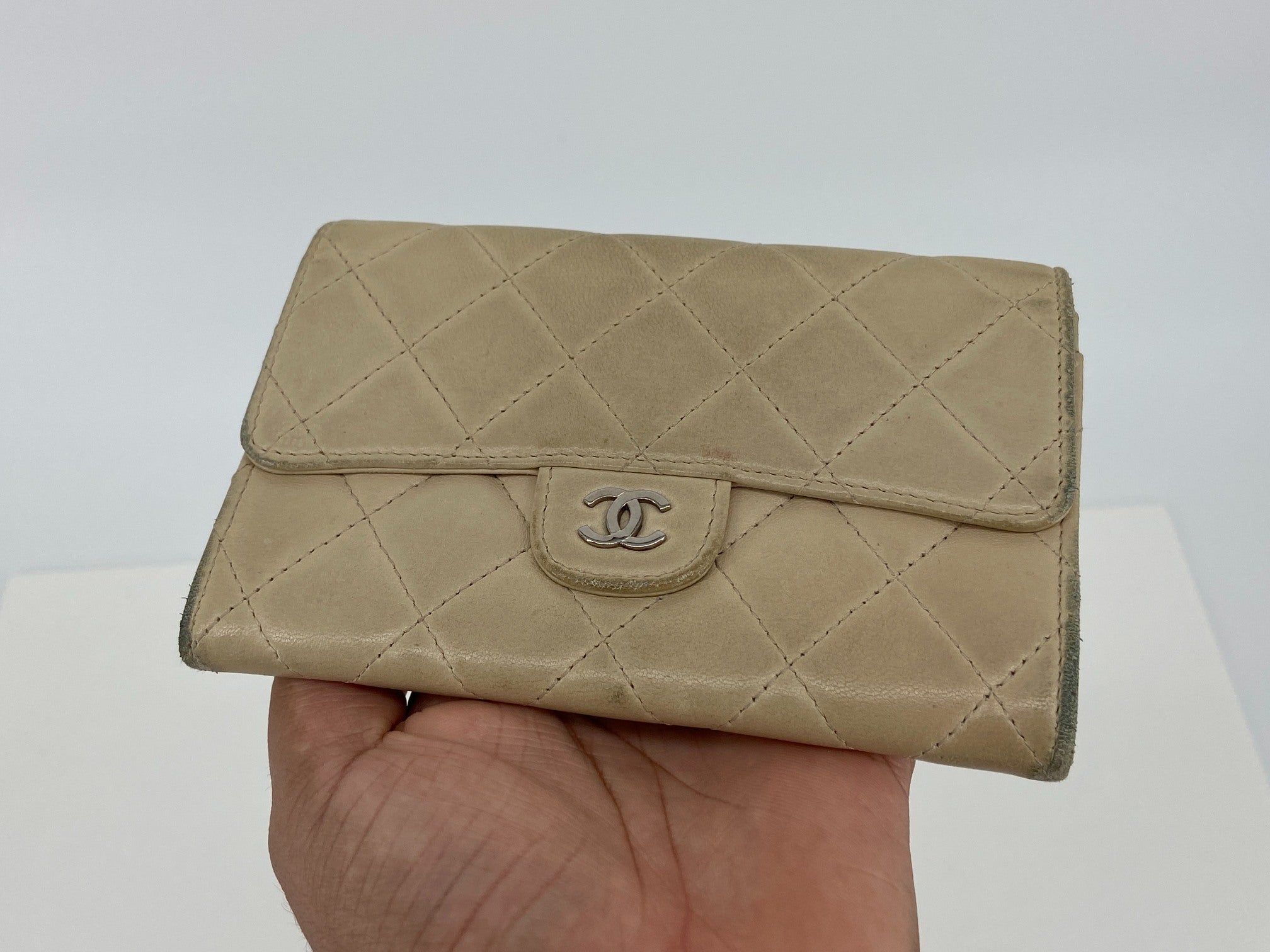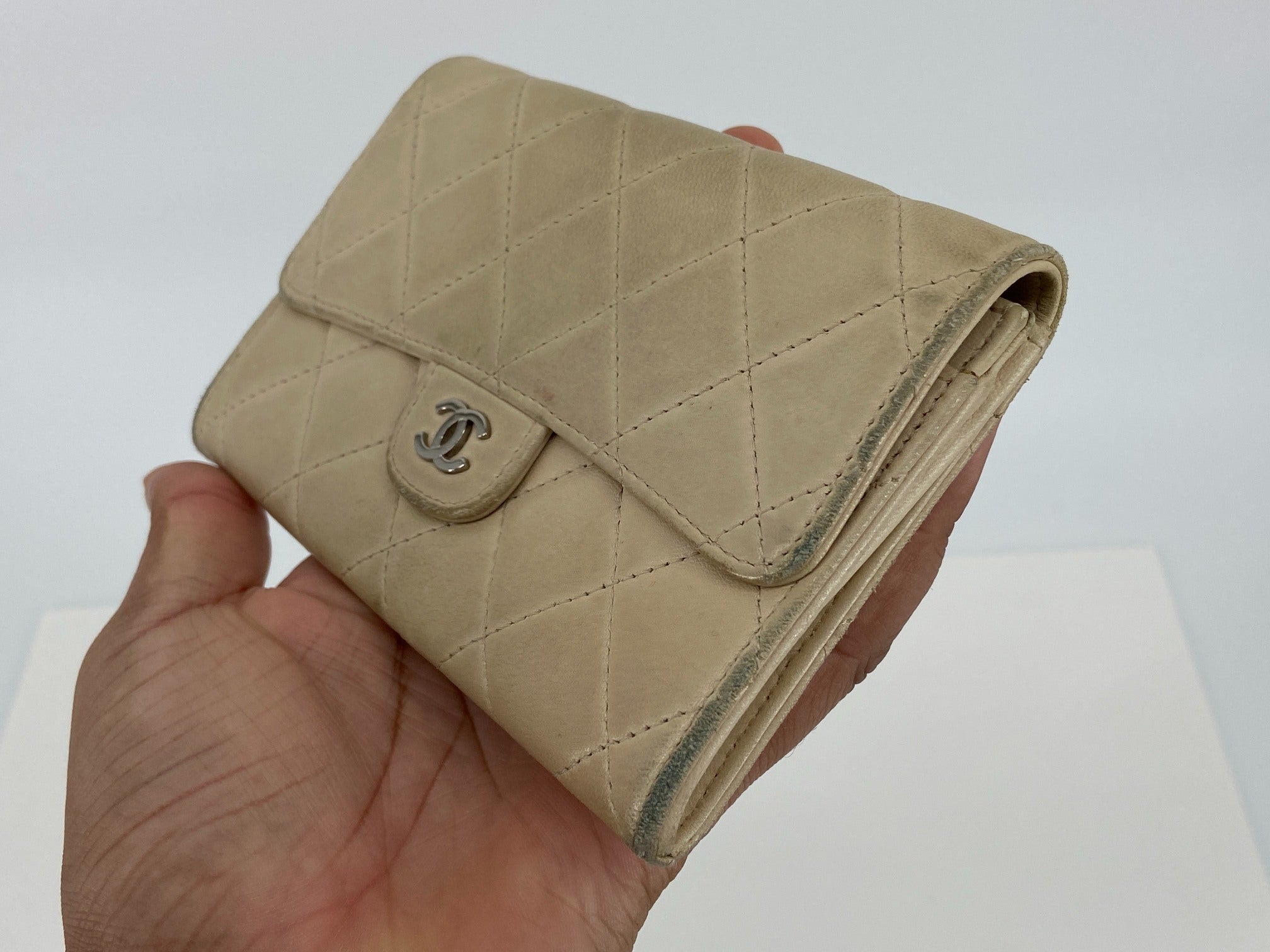 Chanel Timeless / Classic Matelasse Flap Wallet Beige Leather