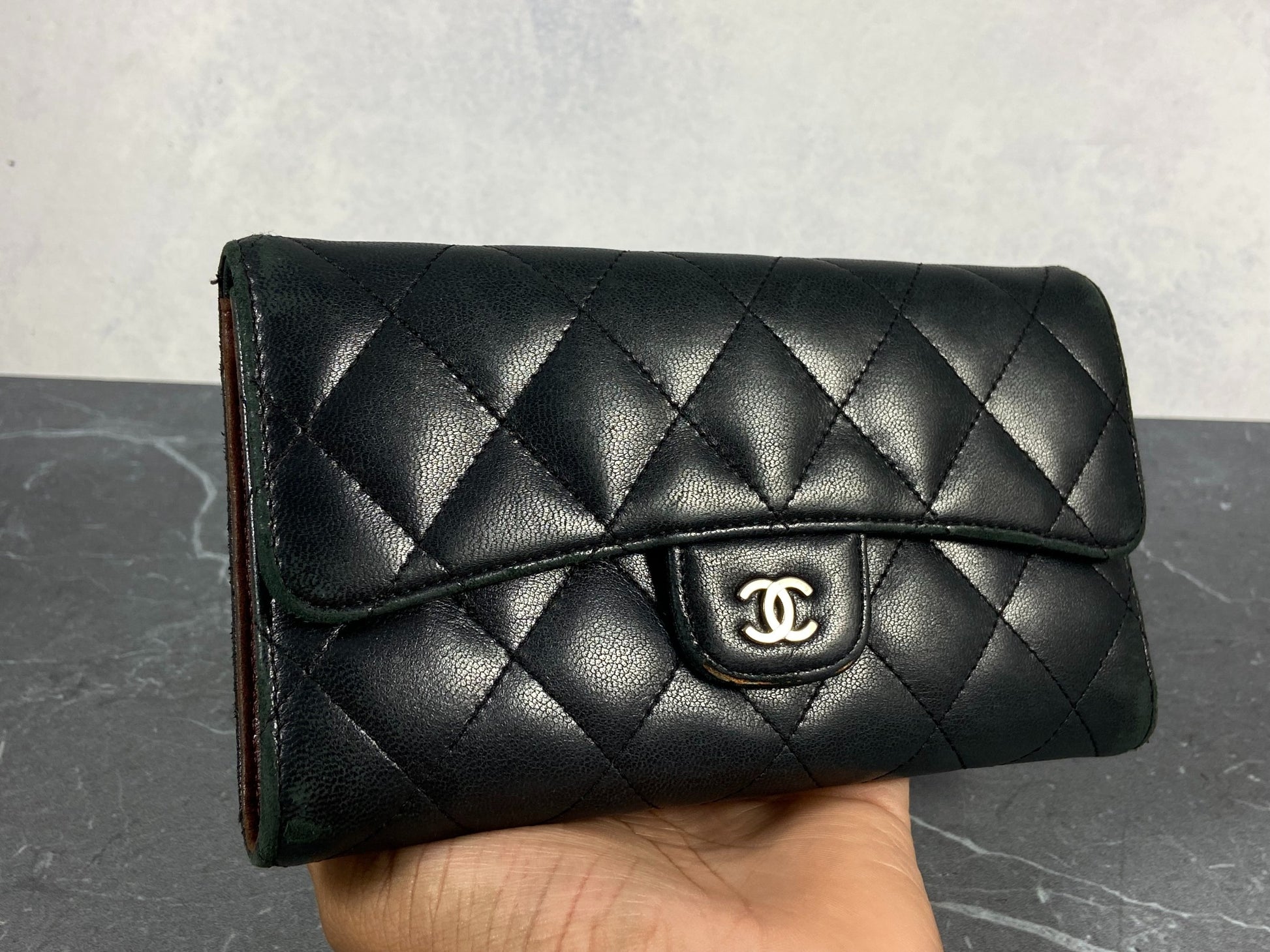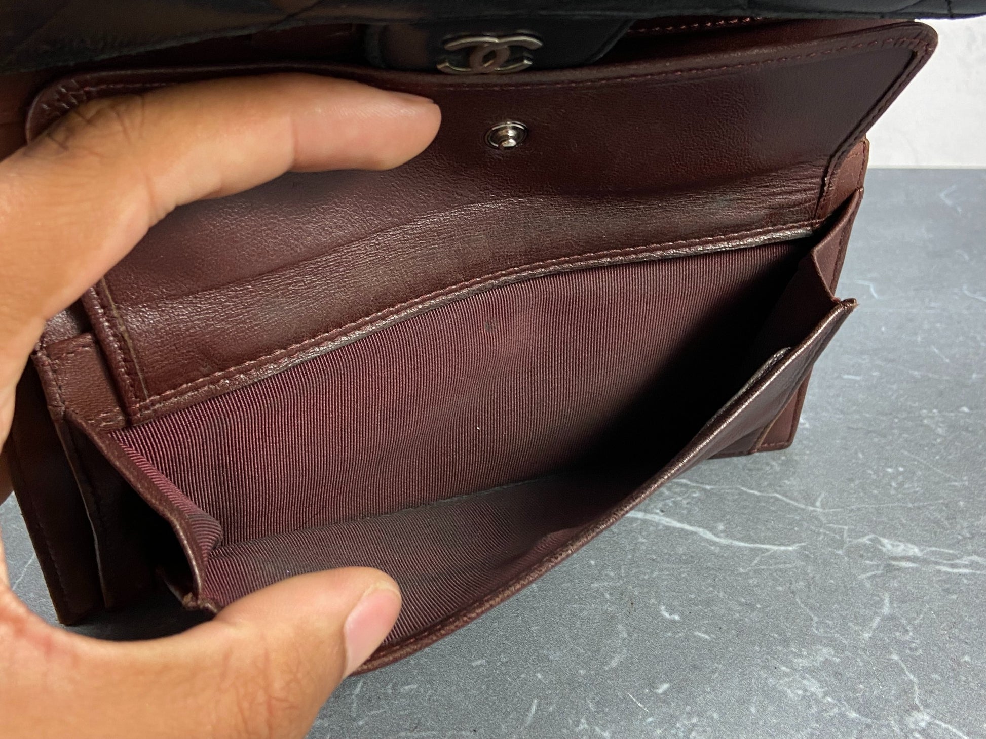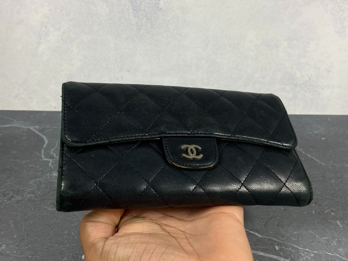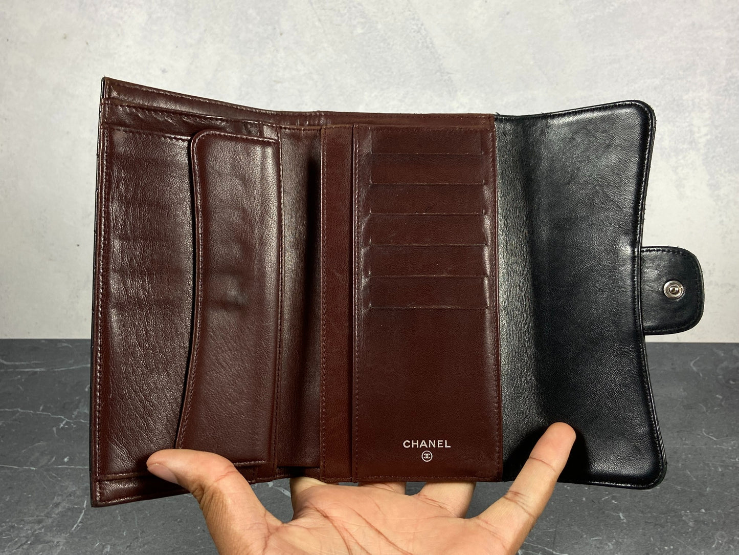 Chanel Timeless / Classic Matelasse Flap Wallet Black Leather