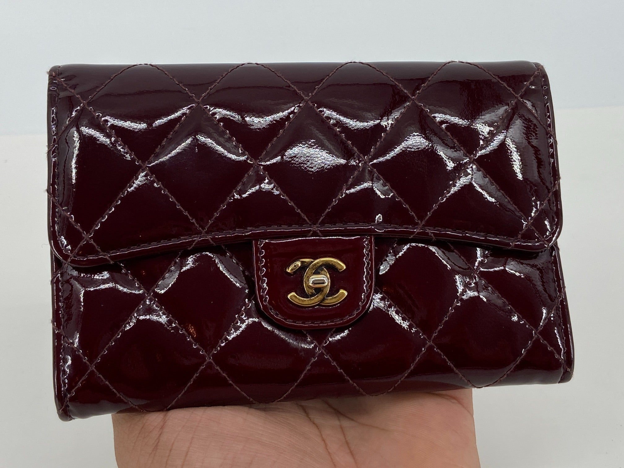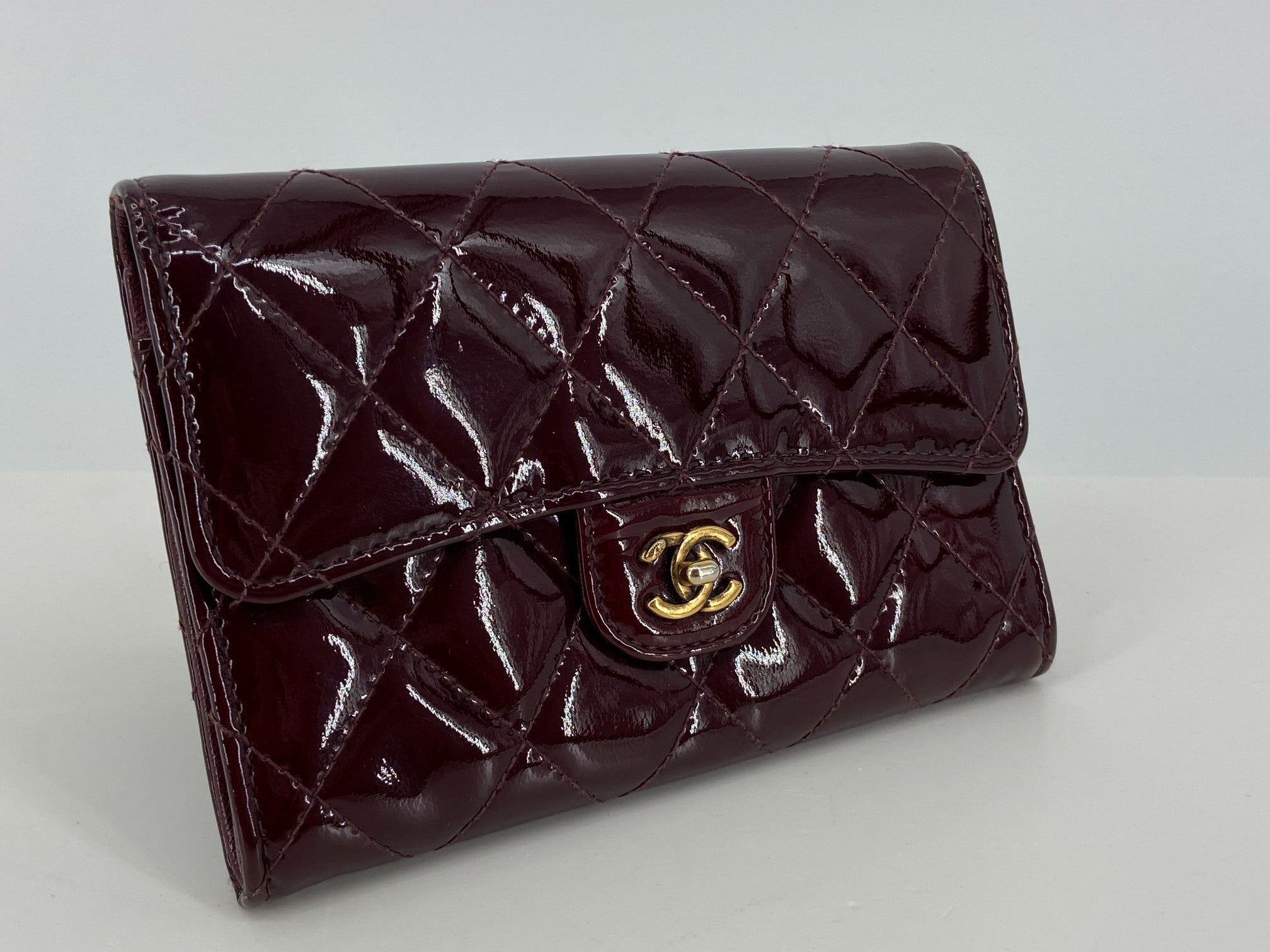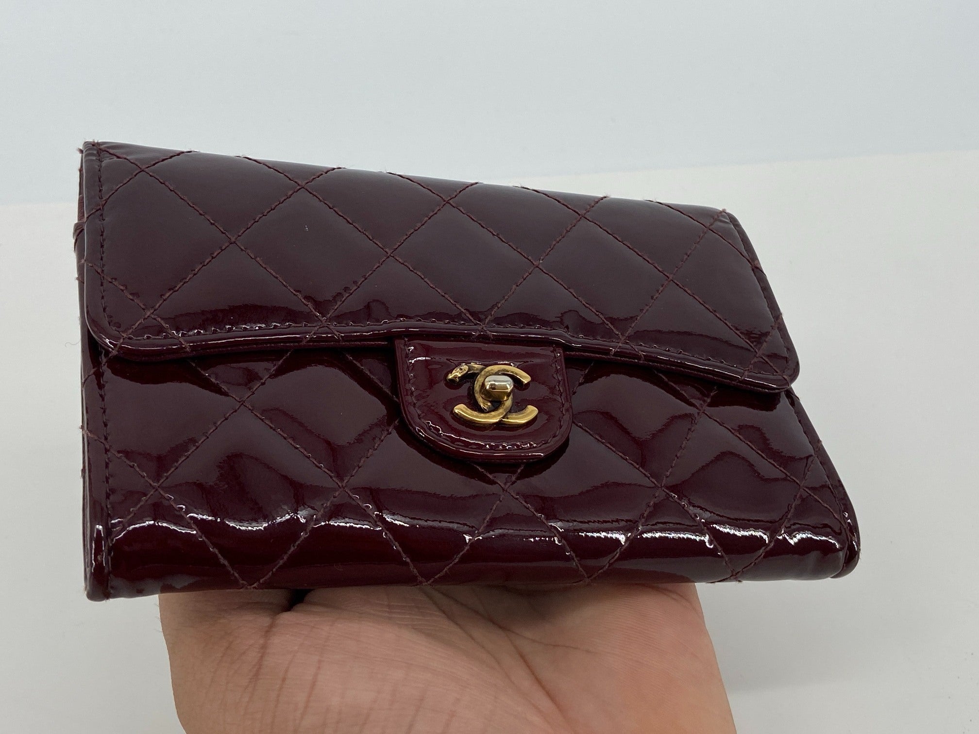 - Chanel Timeless / Classic Matelasse Flap Wallet Red Patent Leather