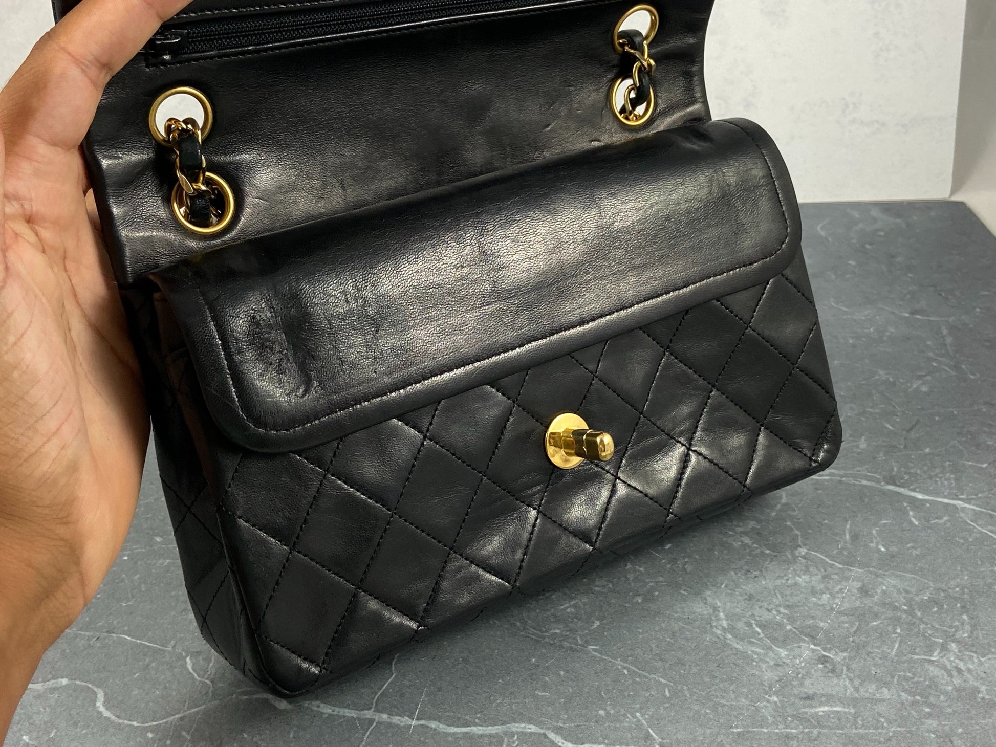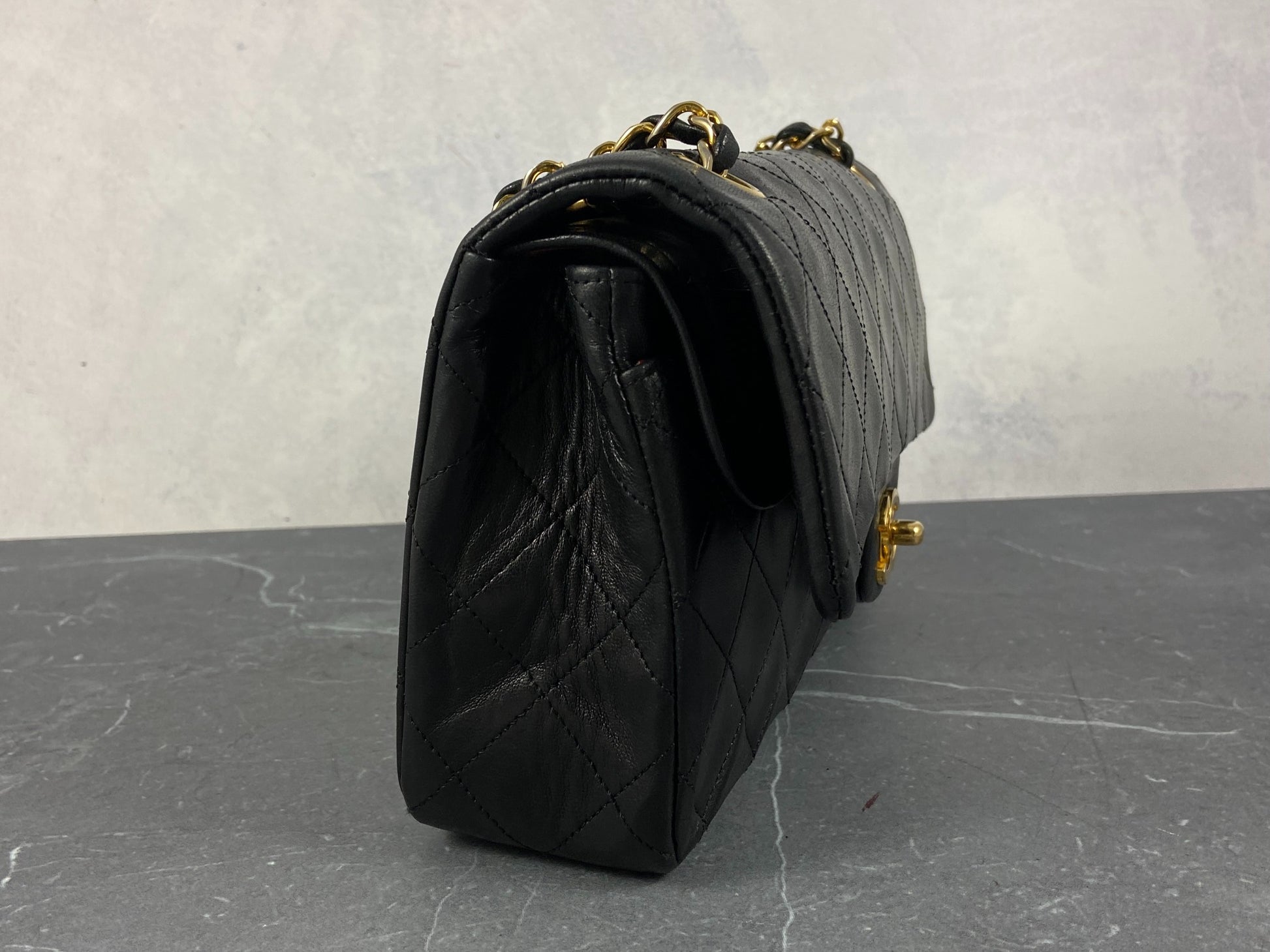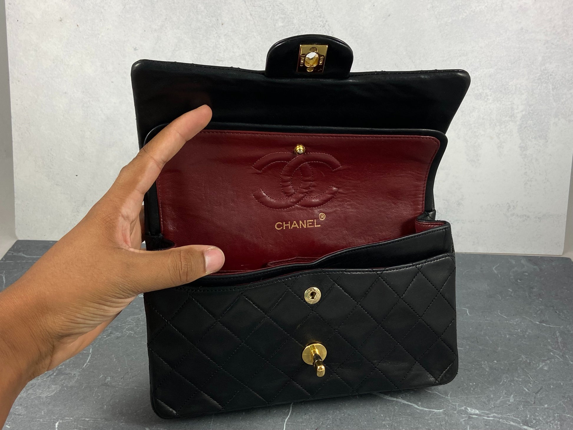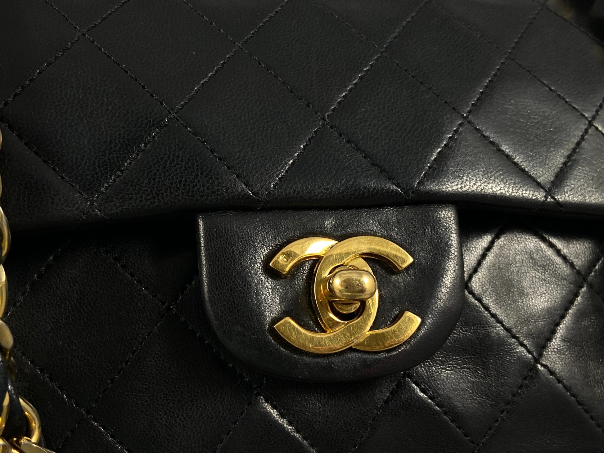 Invest in the Chanel Double Flap Bag in black lambskin leather and upgrade your accessory with a piece that is both functional and stylish.